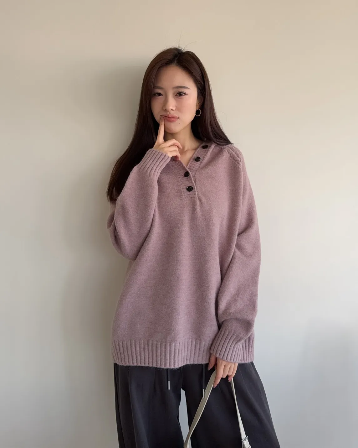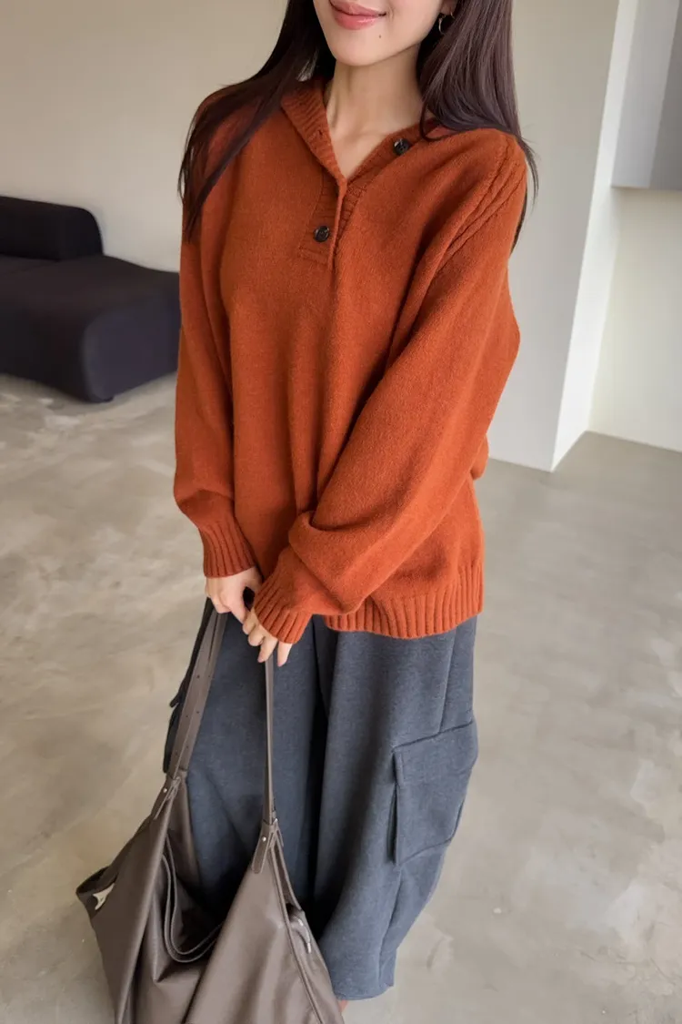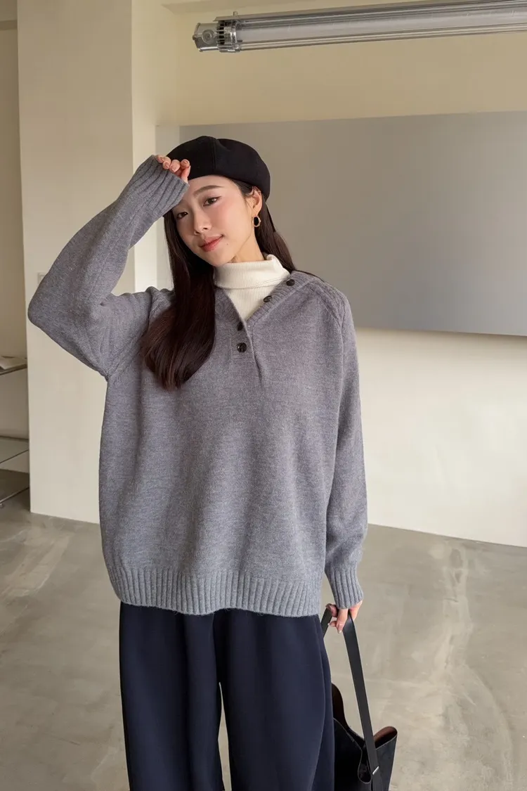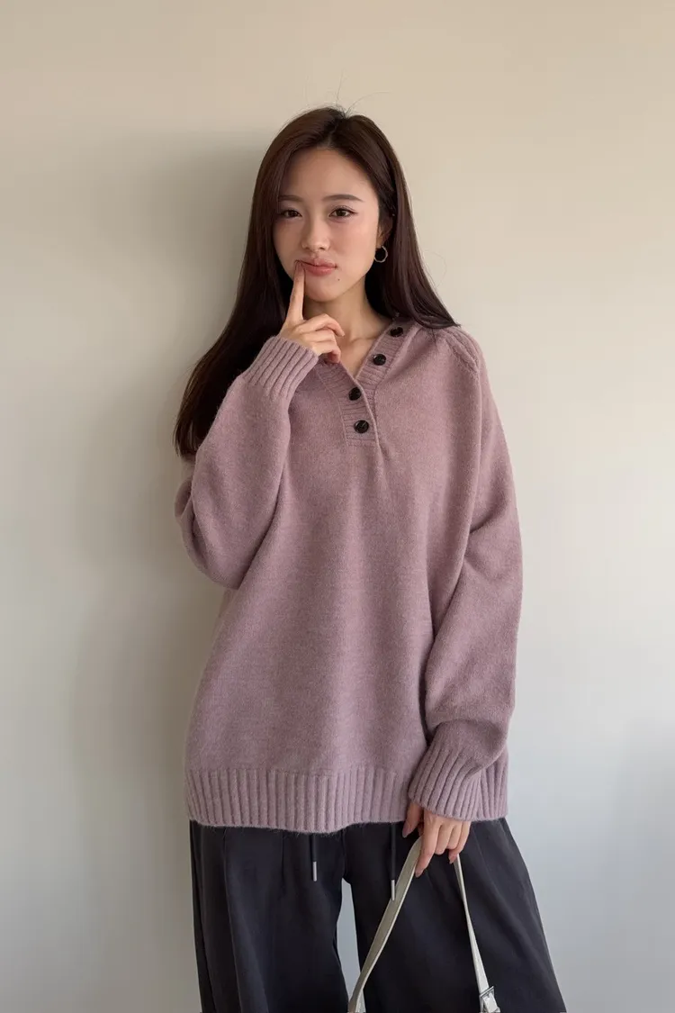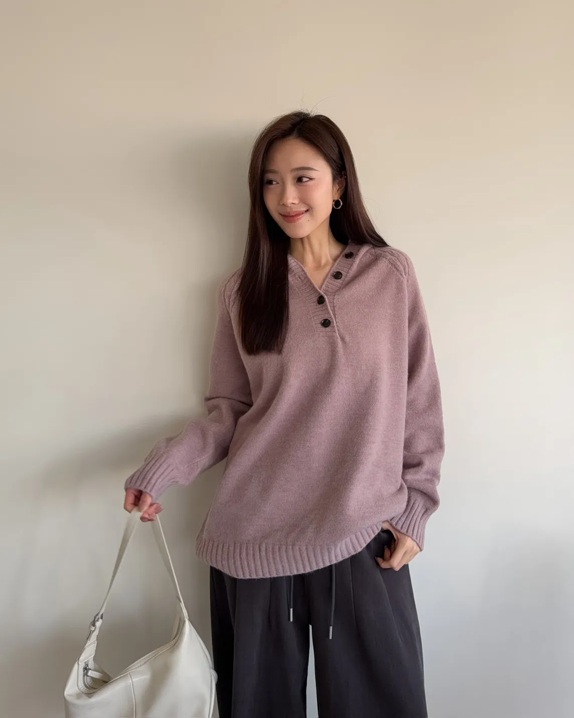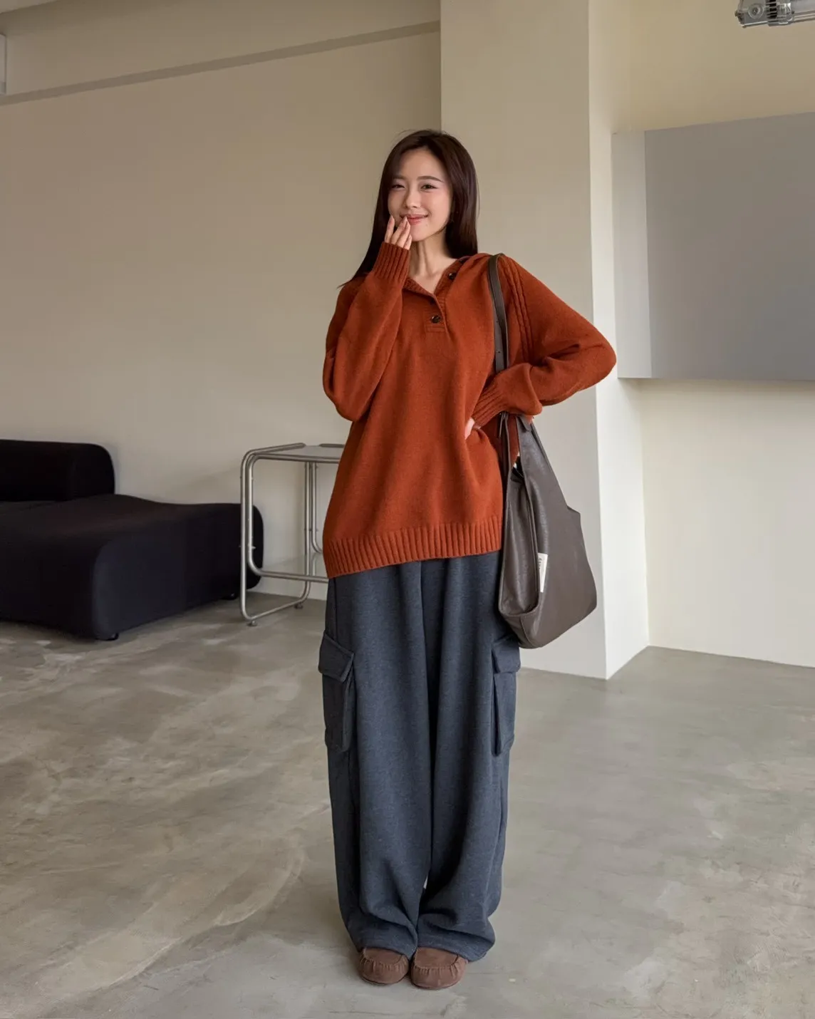X0038(五色)敲可愛鈕扣連帽毛衣(杏/粉紅/橘/淺藍/灰)