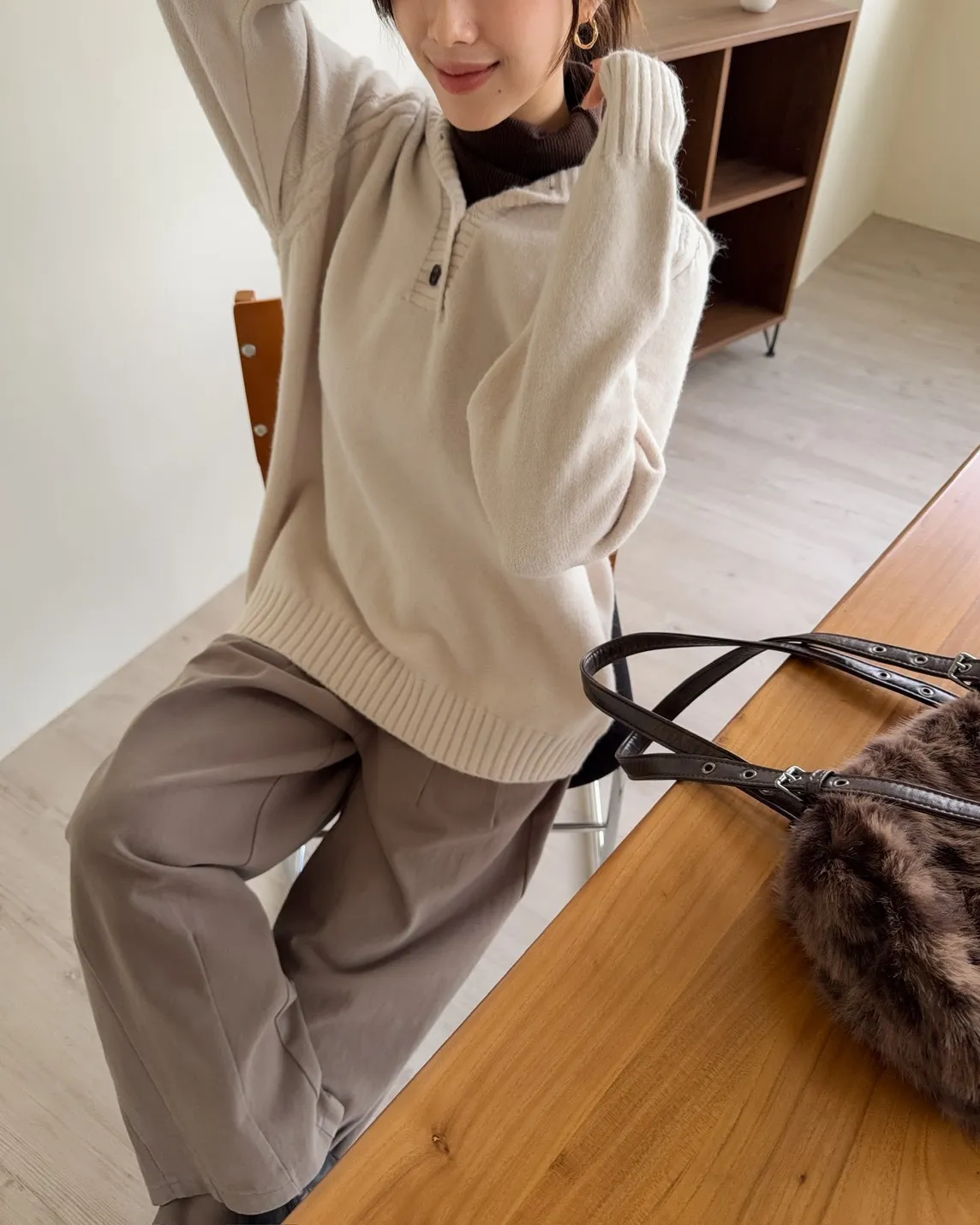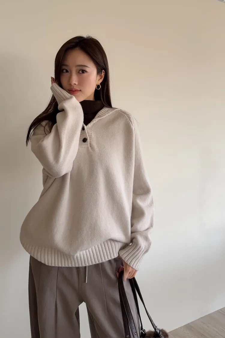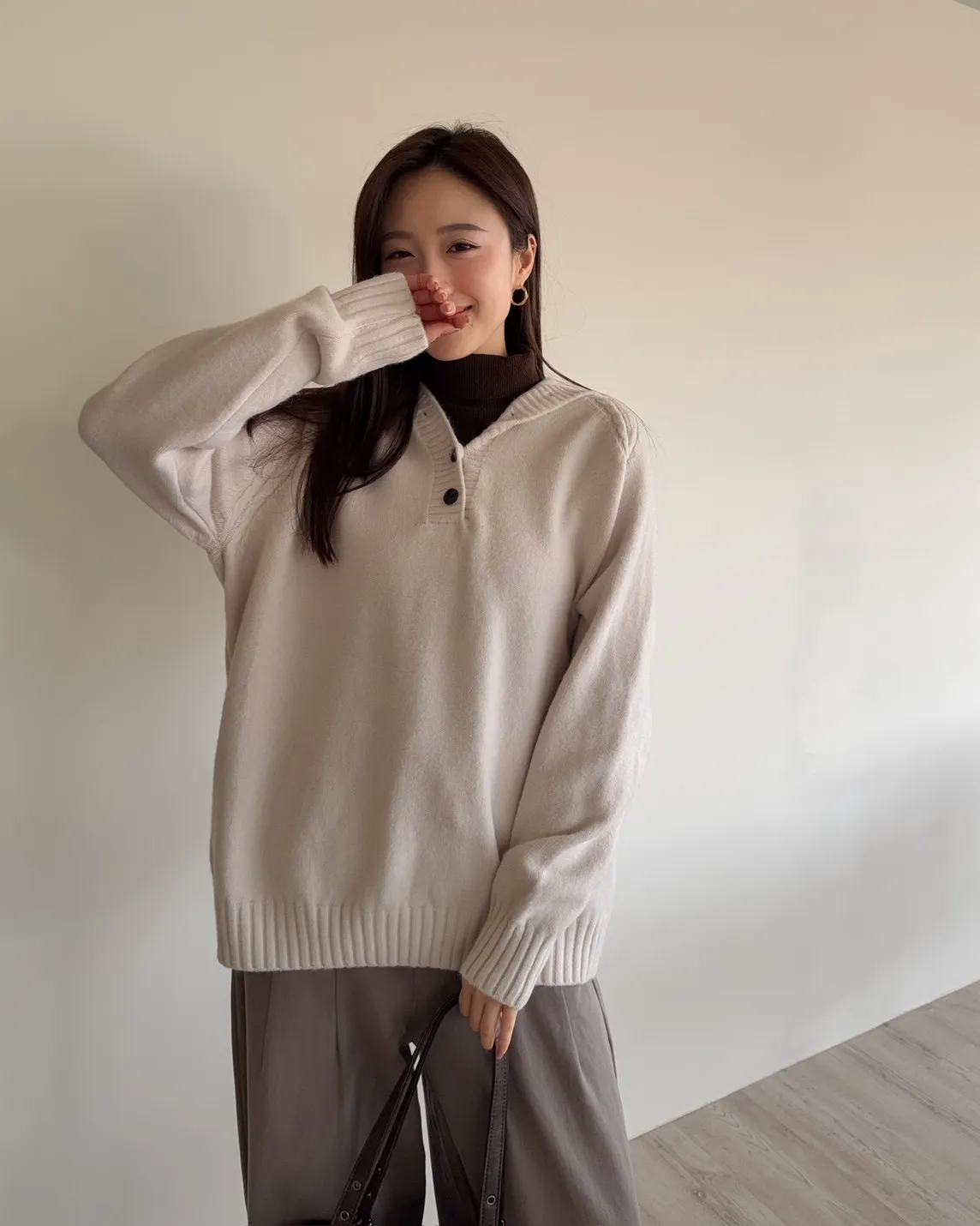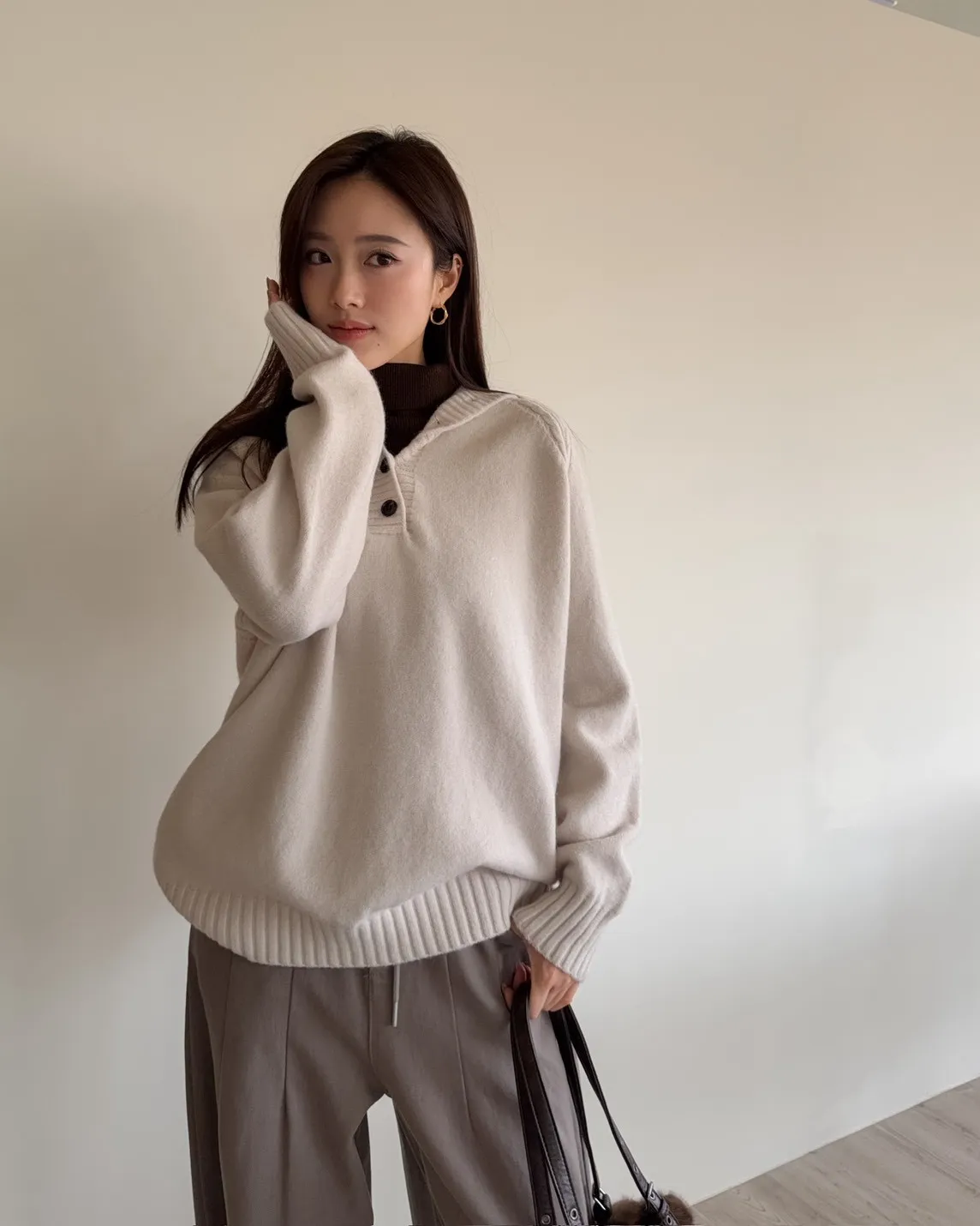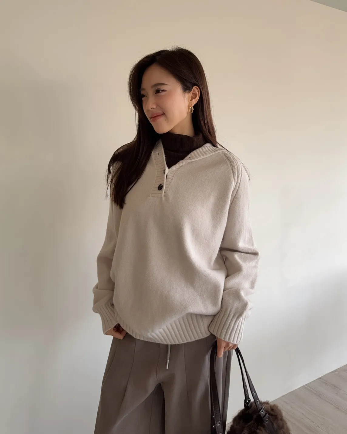 X0038(五色)敲可愛鈕扣連帽毛衣(杏/粉紅/橘/淺藍/灰)