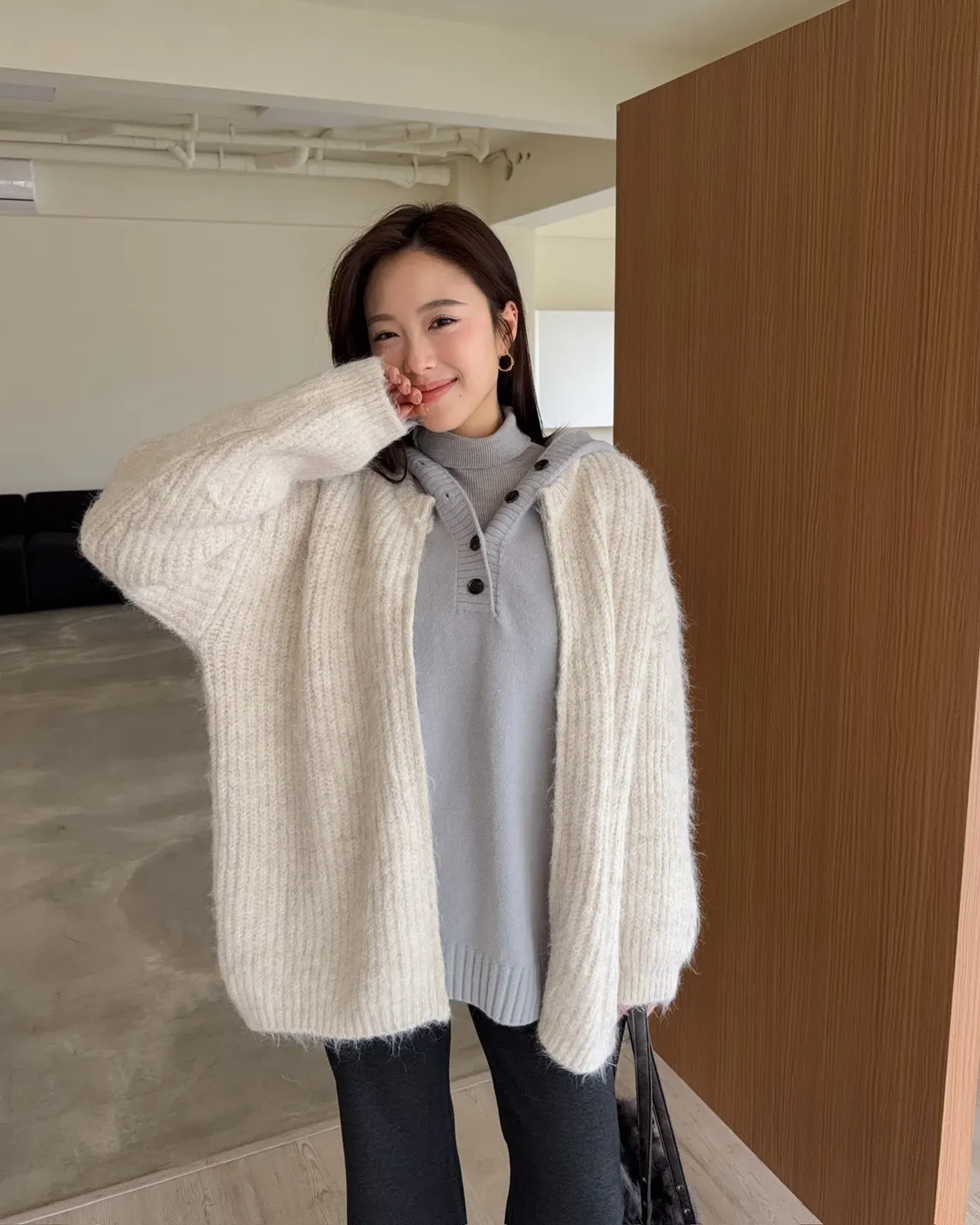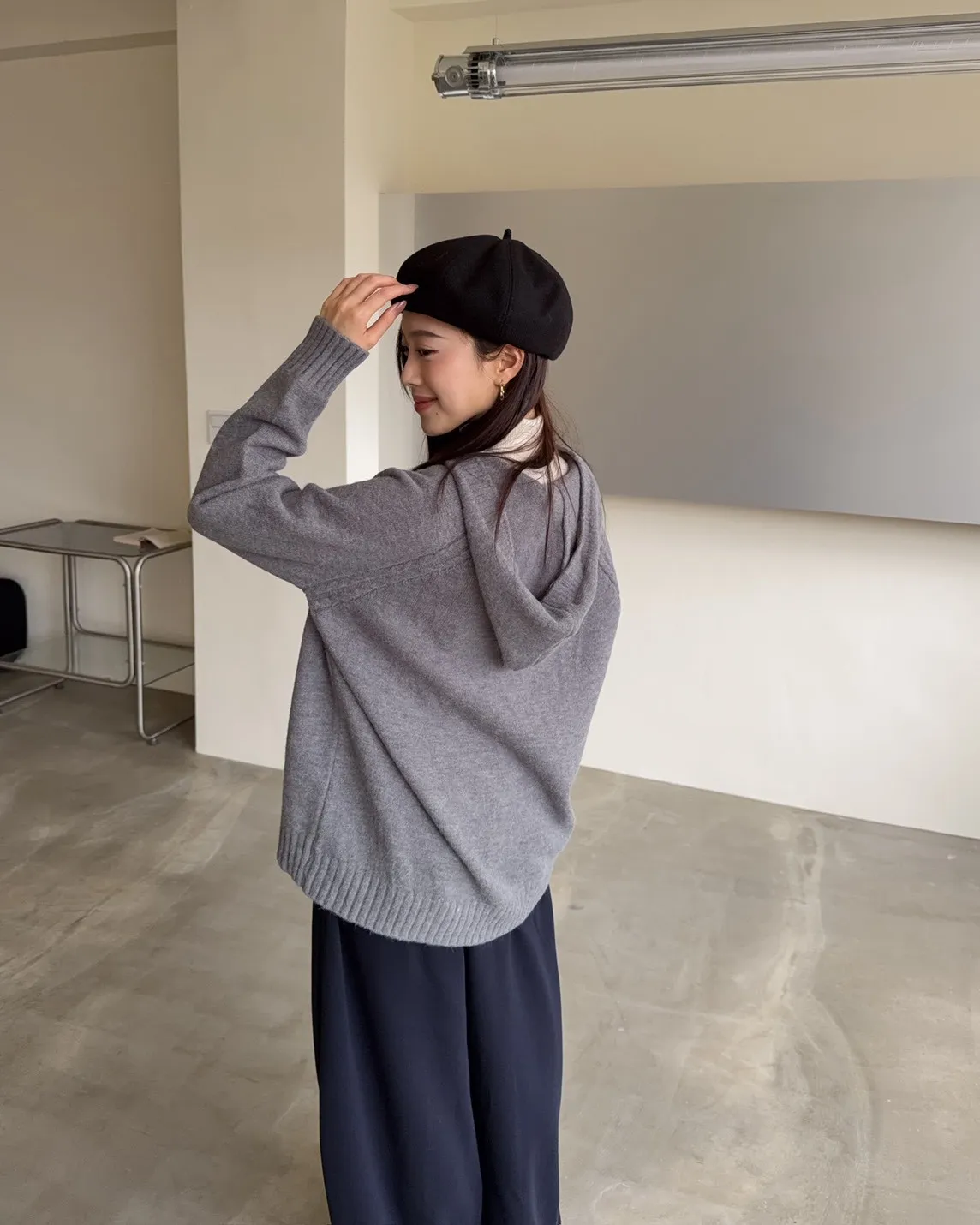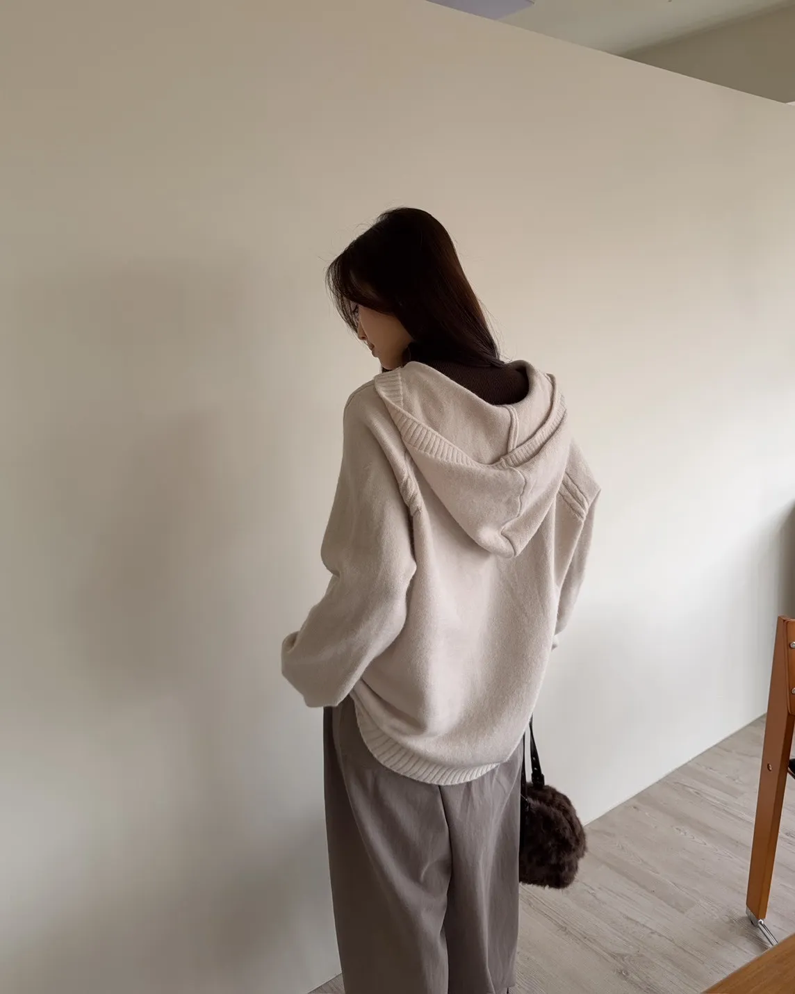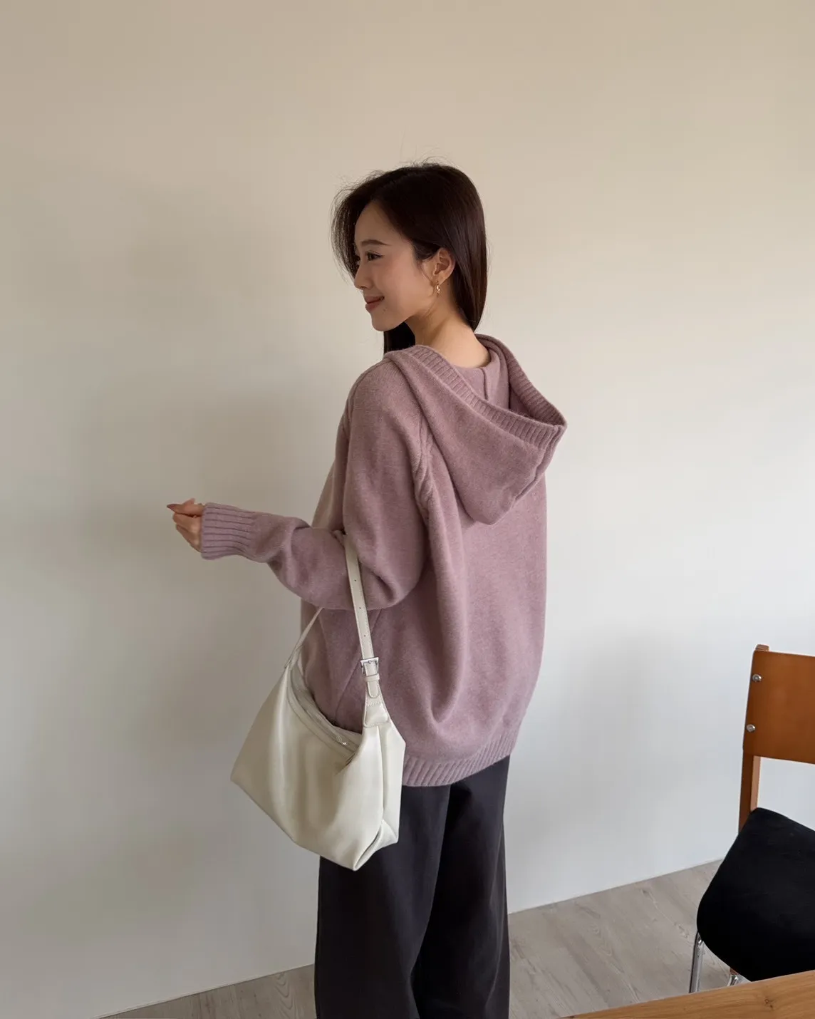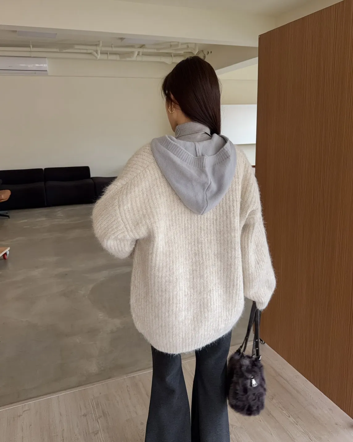 連帽 中長版 鈕扣 針織 顏色可愛 落肩 肩膀縫線造型
