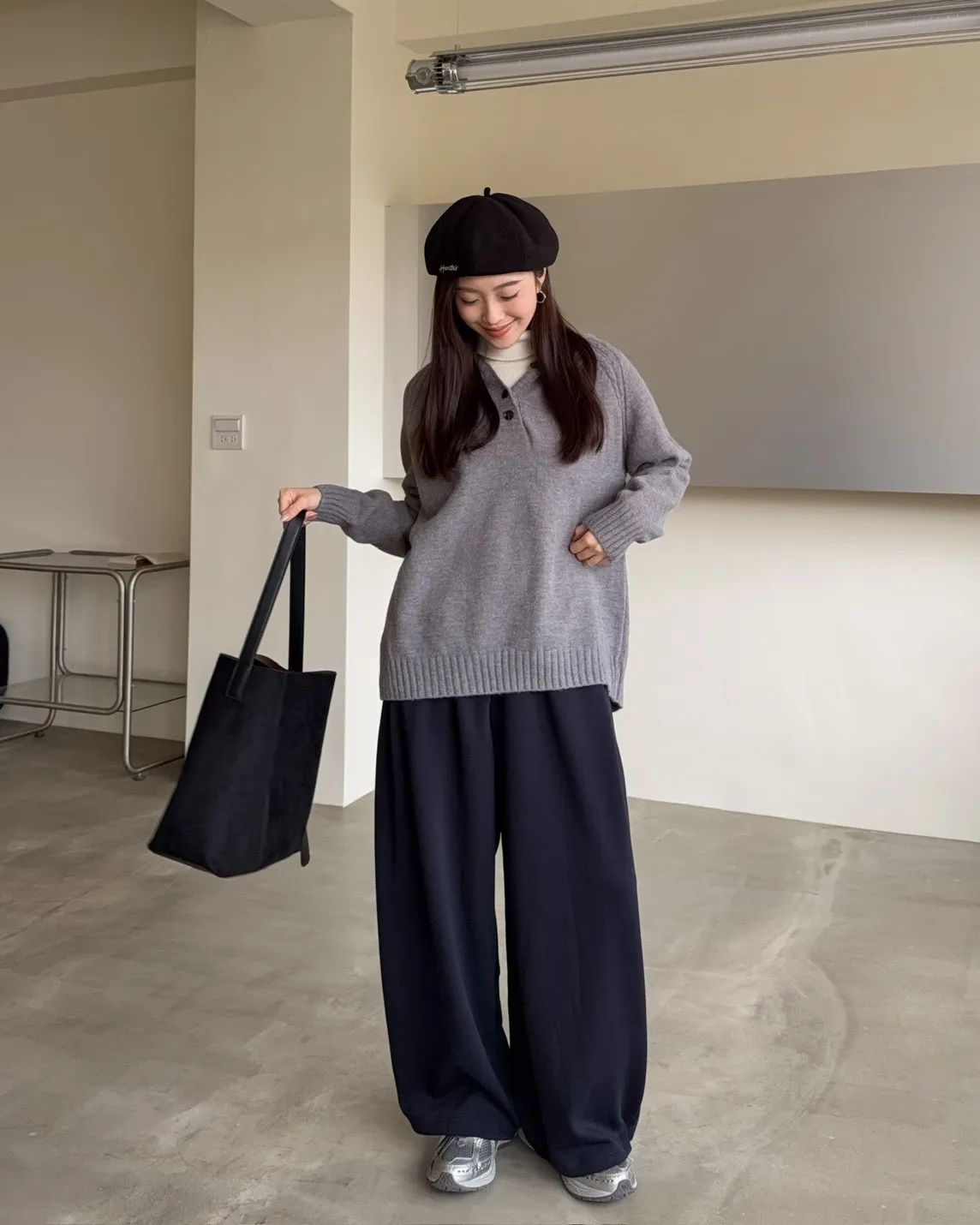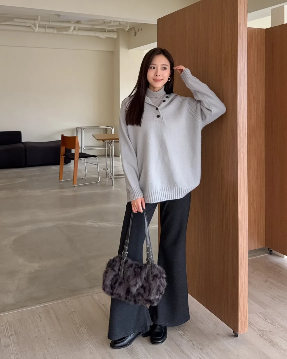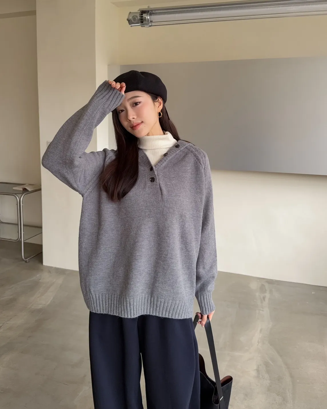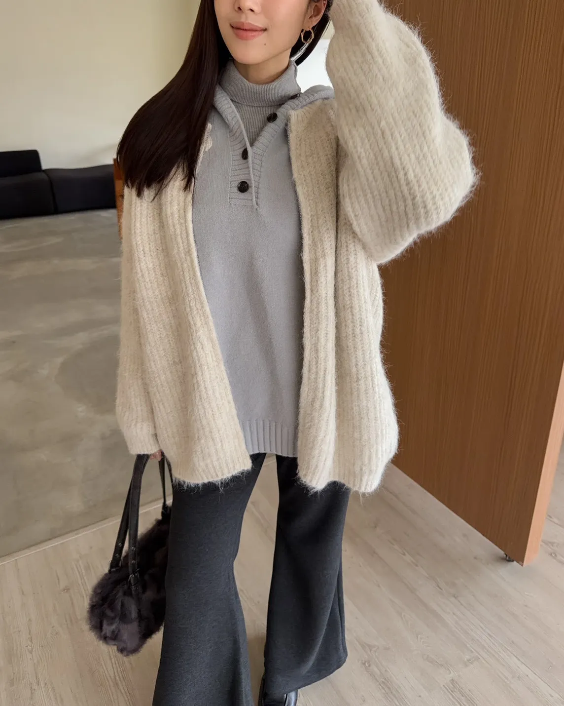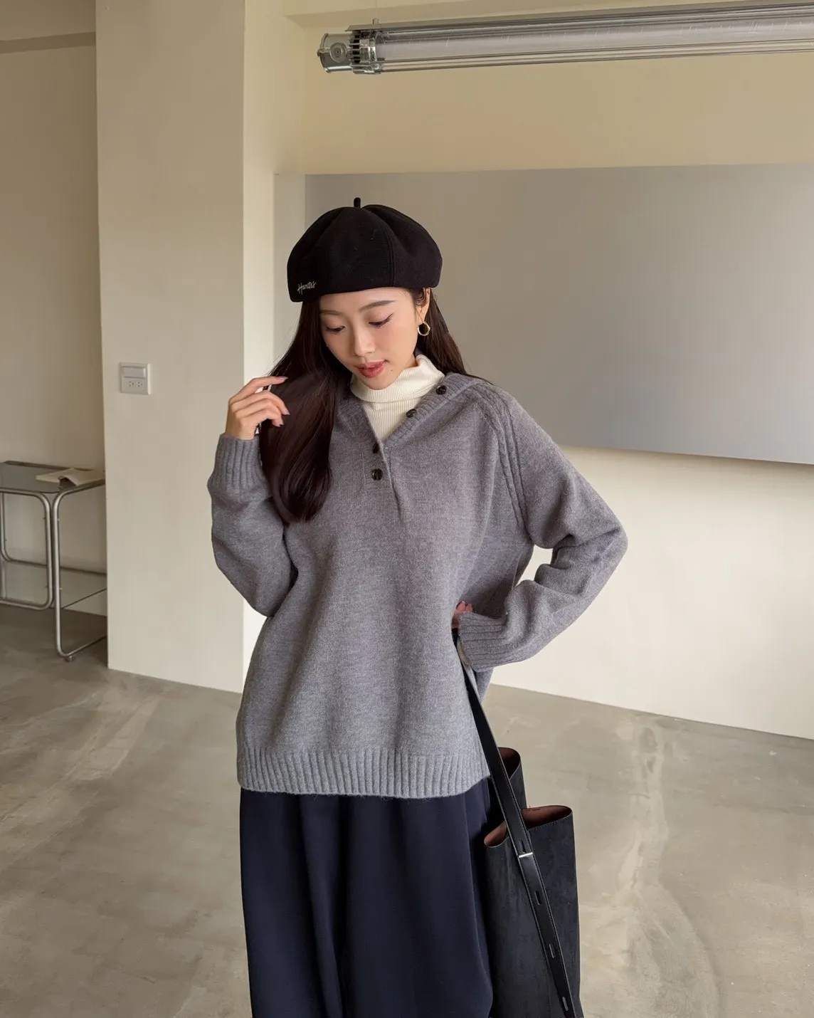 連帽 中長版 鈕扣 針織 顏色可愛 落肩 肩膀縫線造型