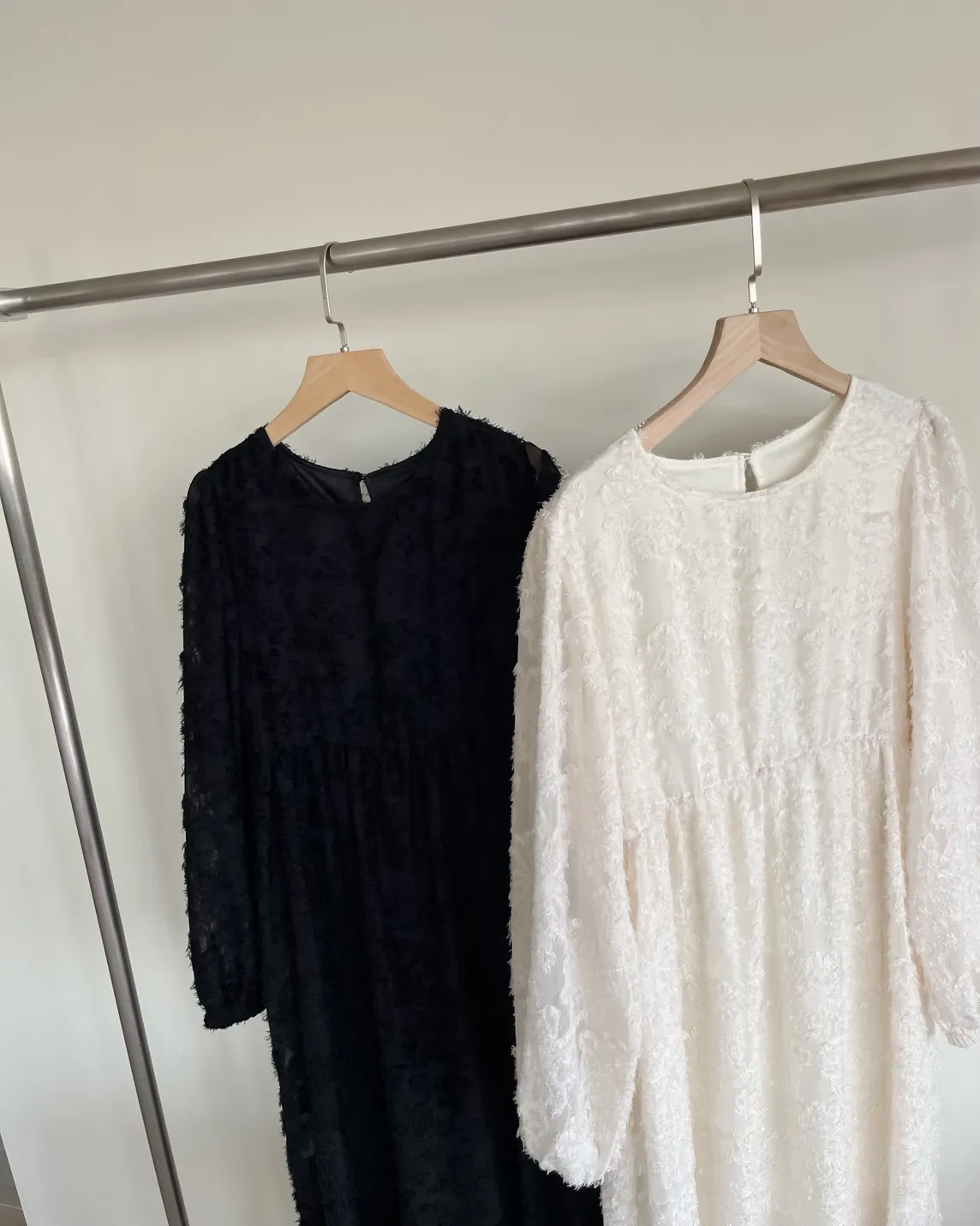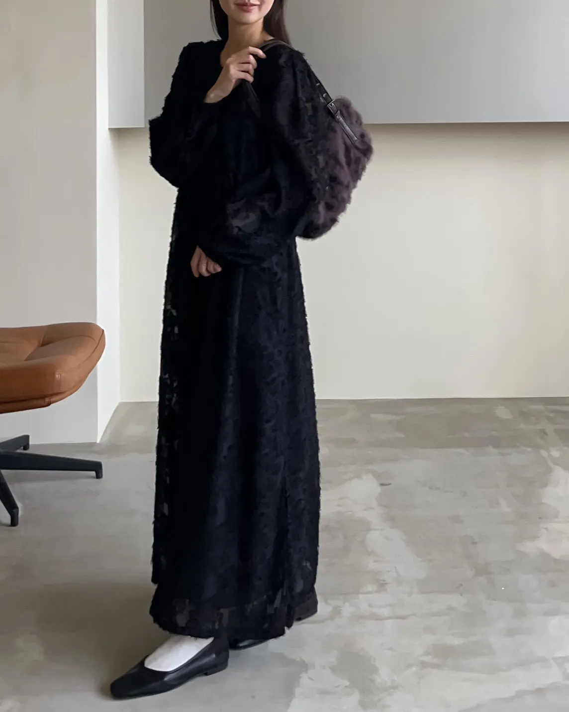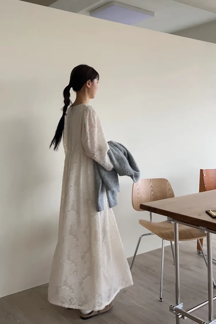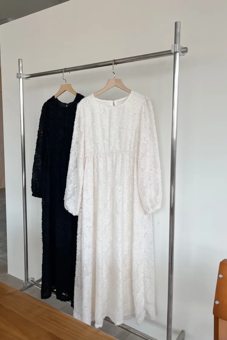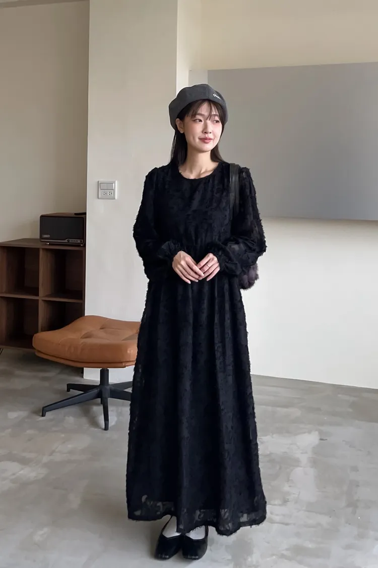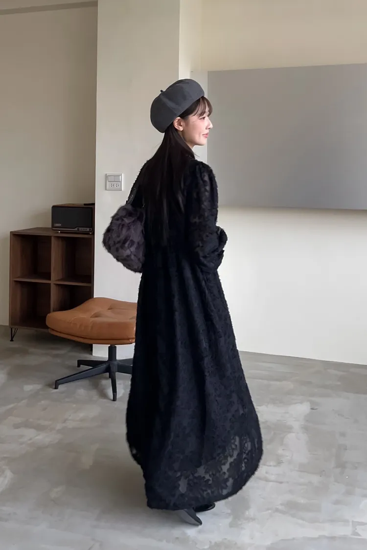 W0001仙女下凡寬鬆羽毛長洋(米/黑)