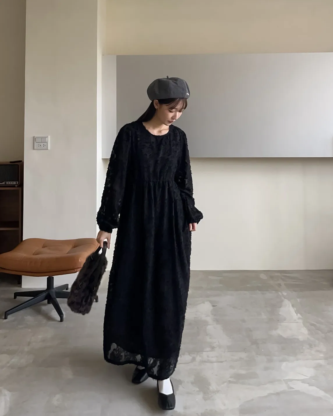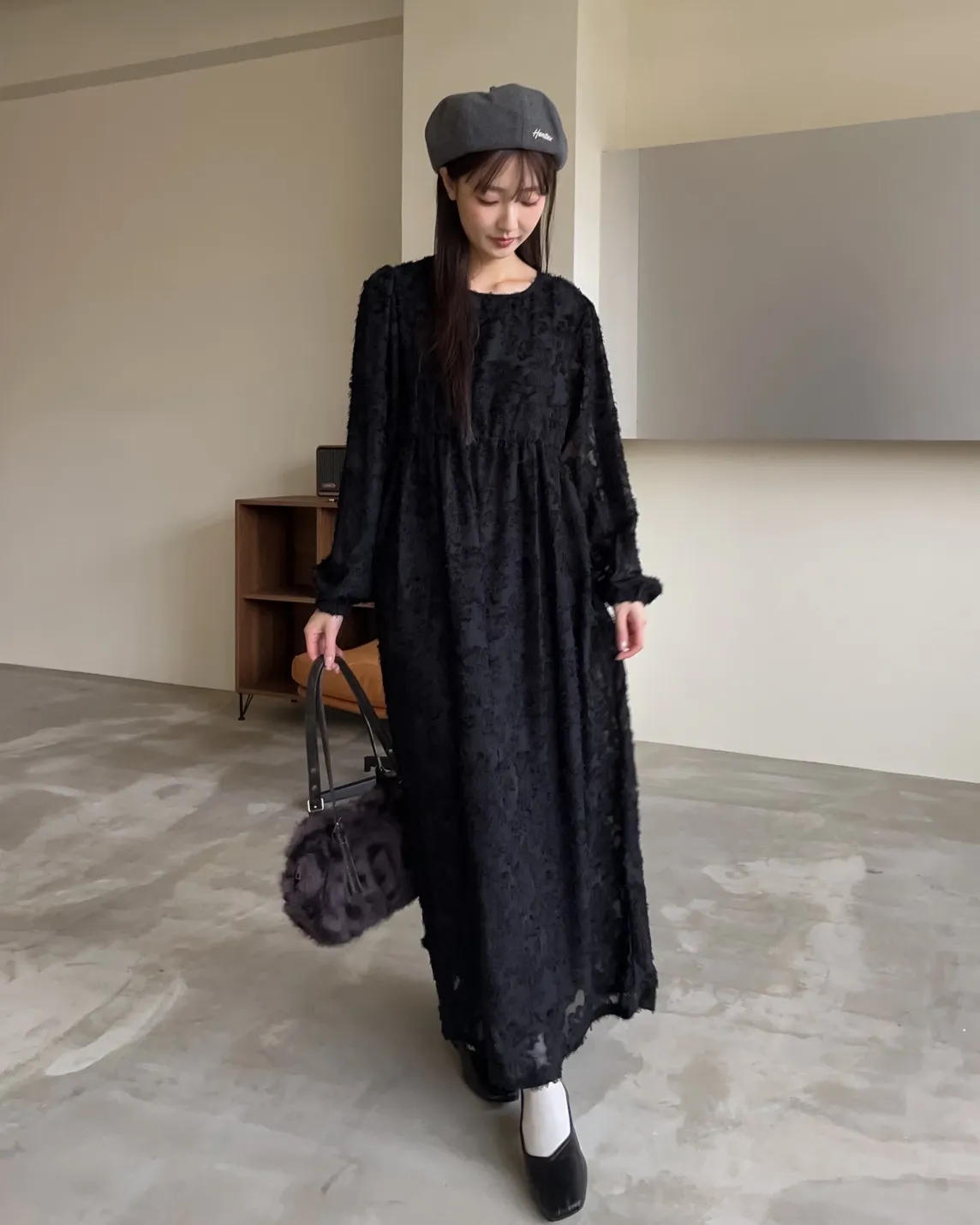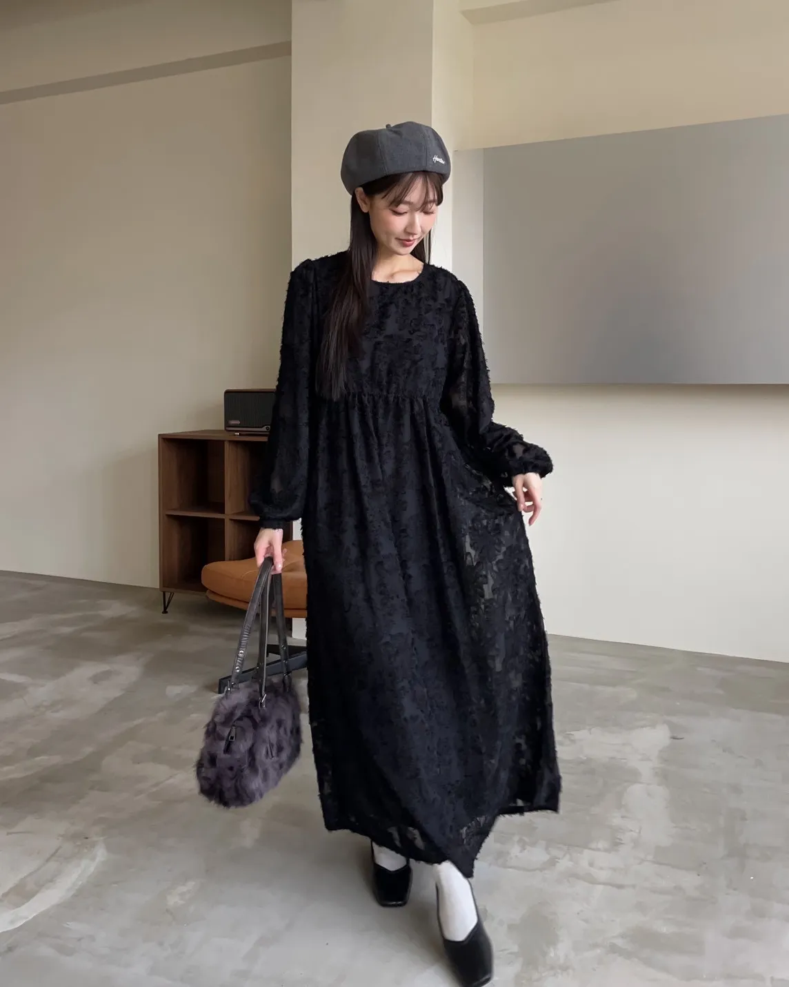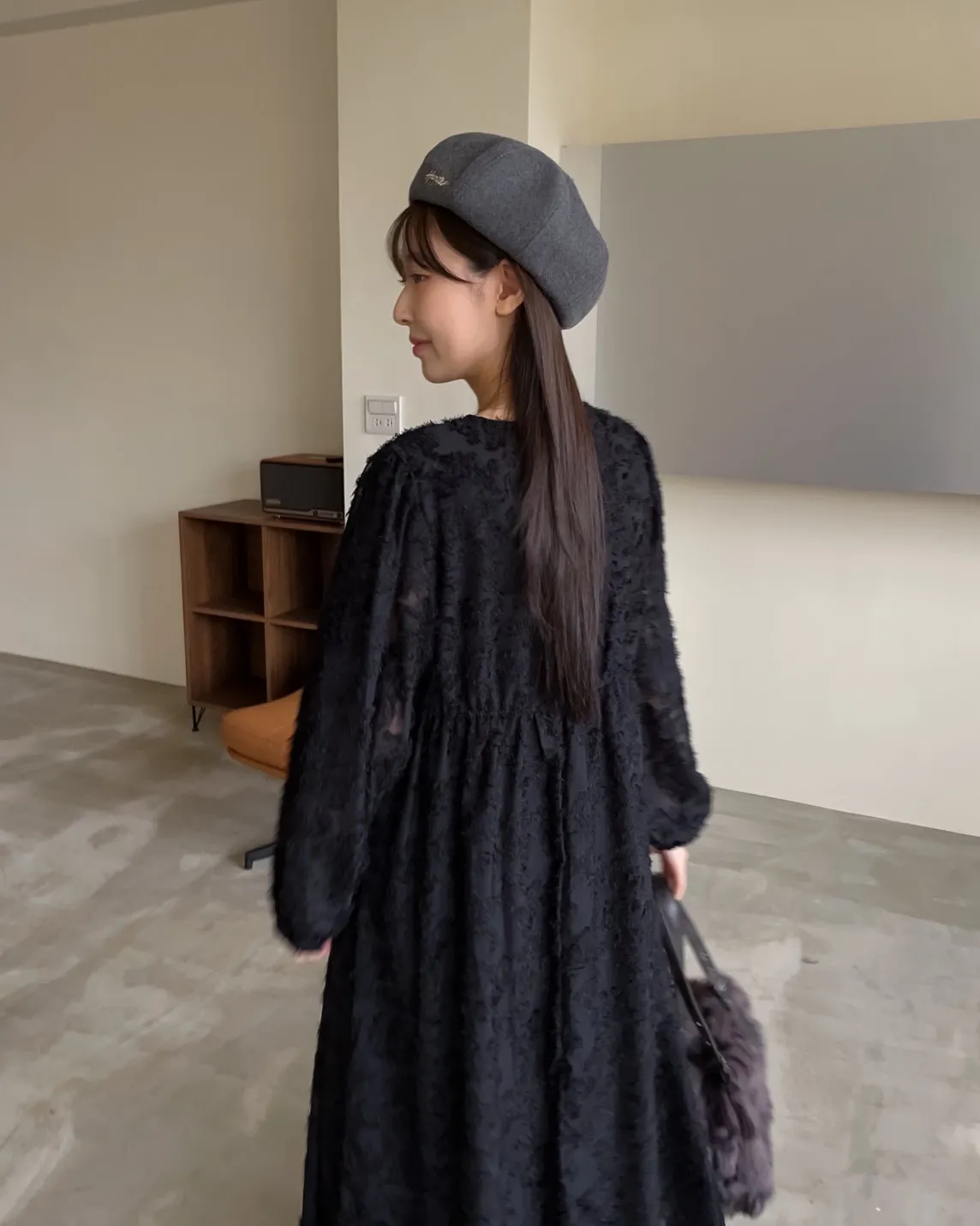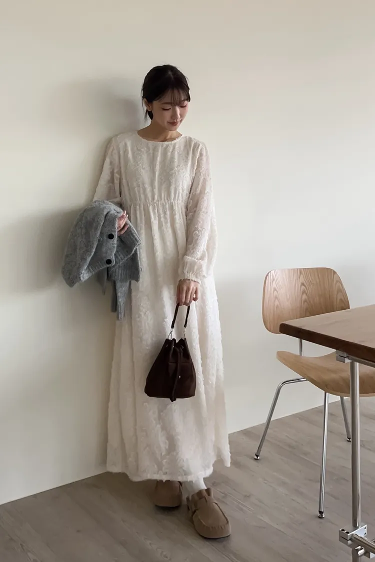W0001仙女下凡寬鬆羽毛長洋(米/黑)