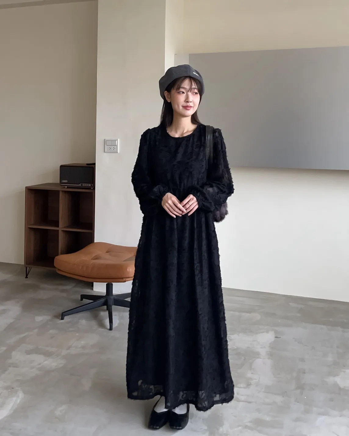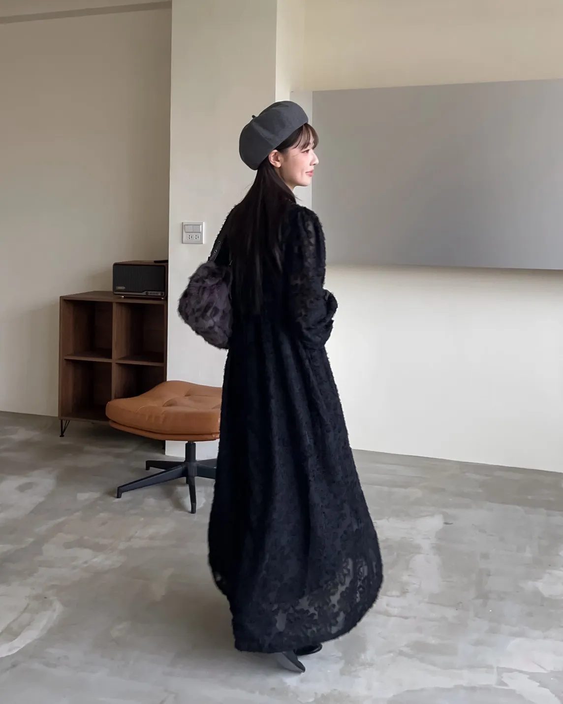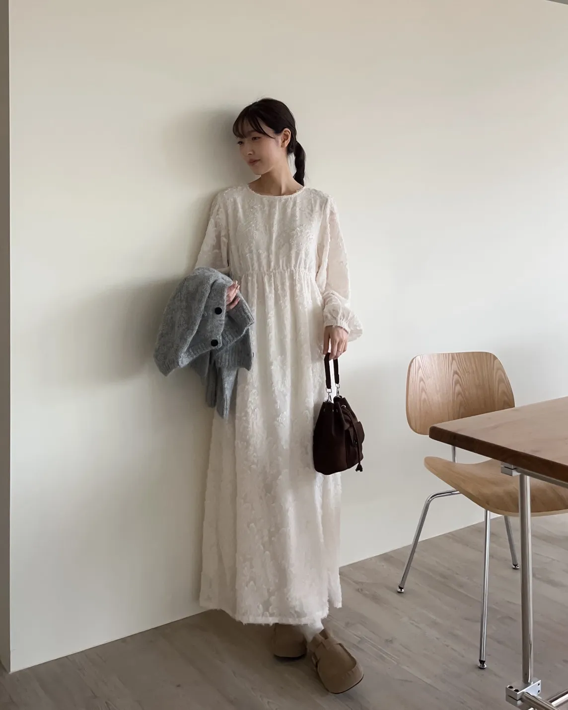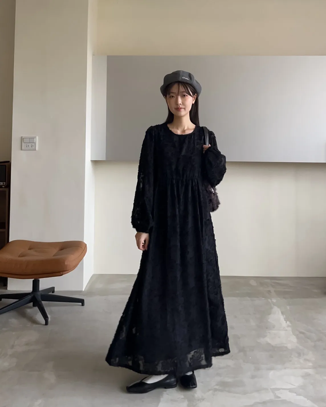 W0001仙女下凡寬鬆羽毛長洋(米/黑)