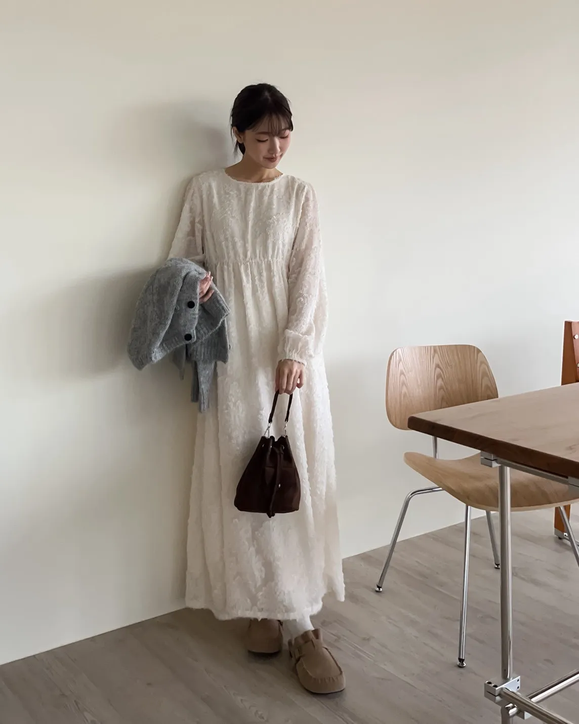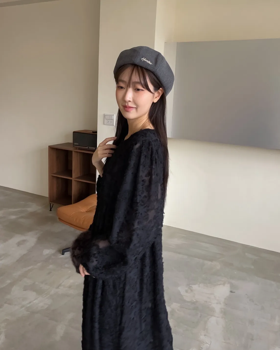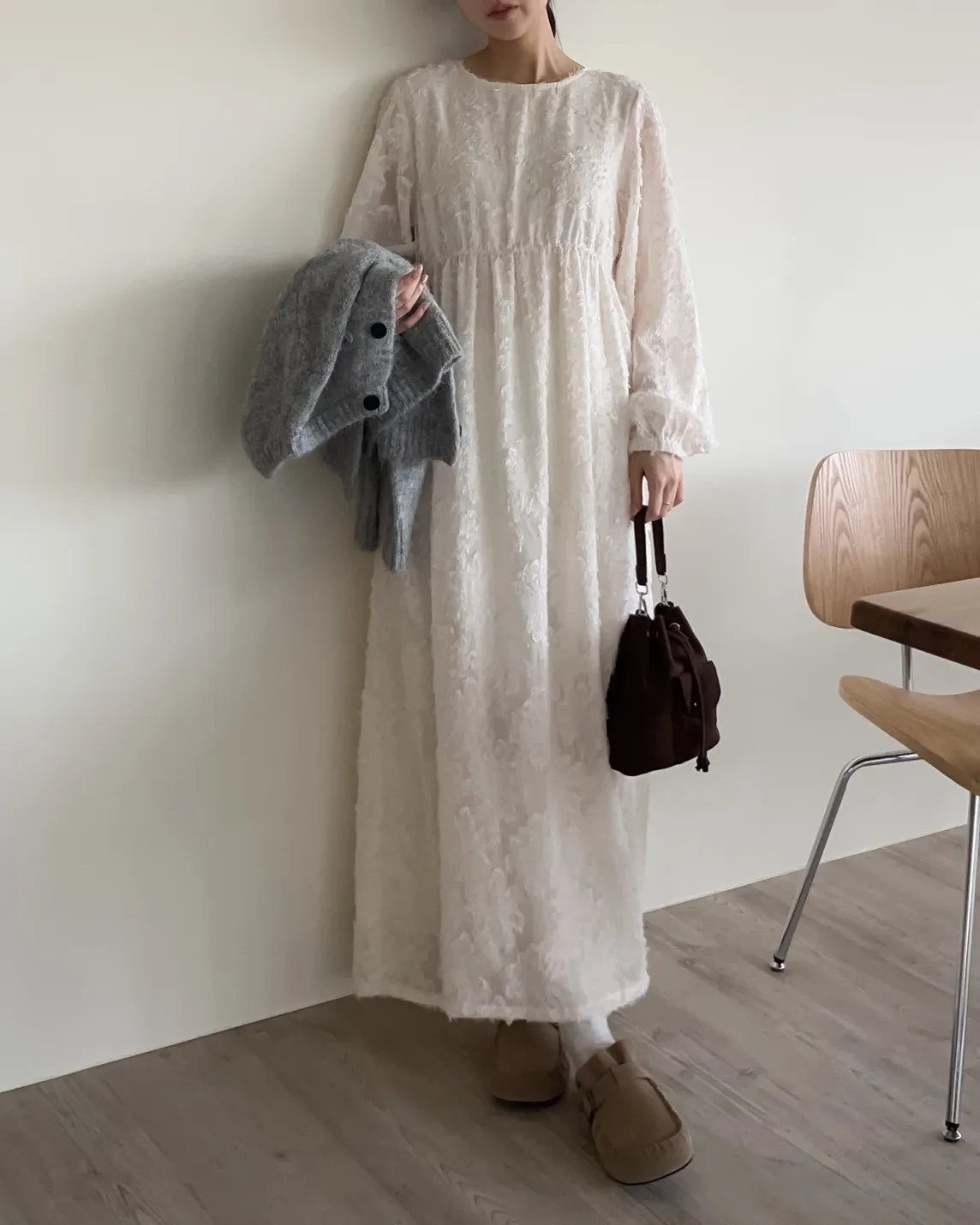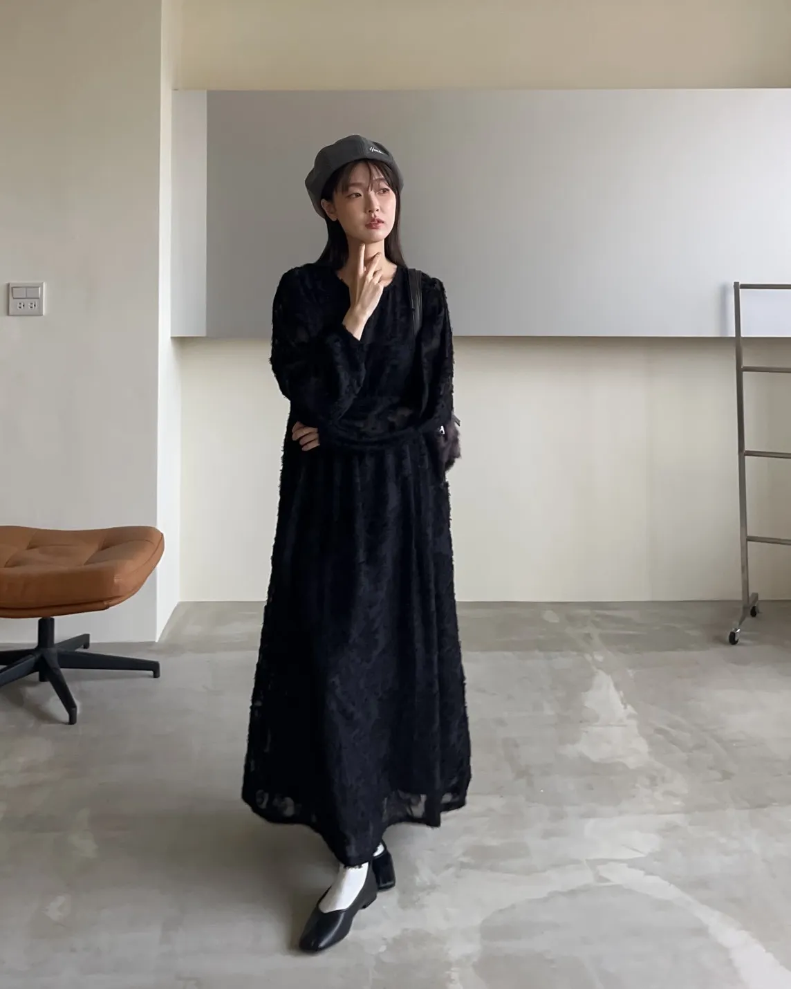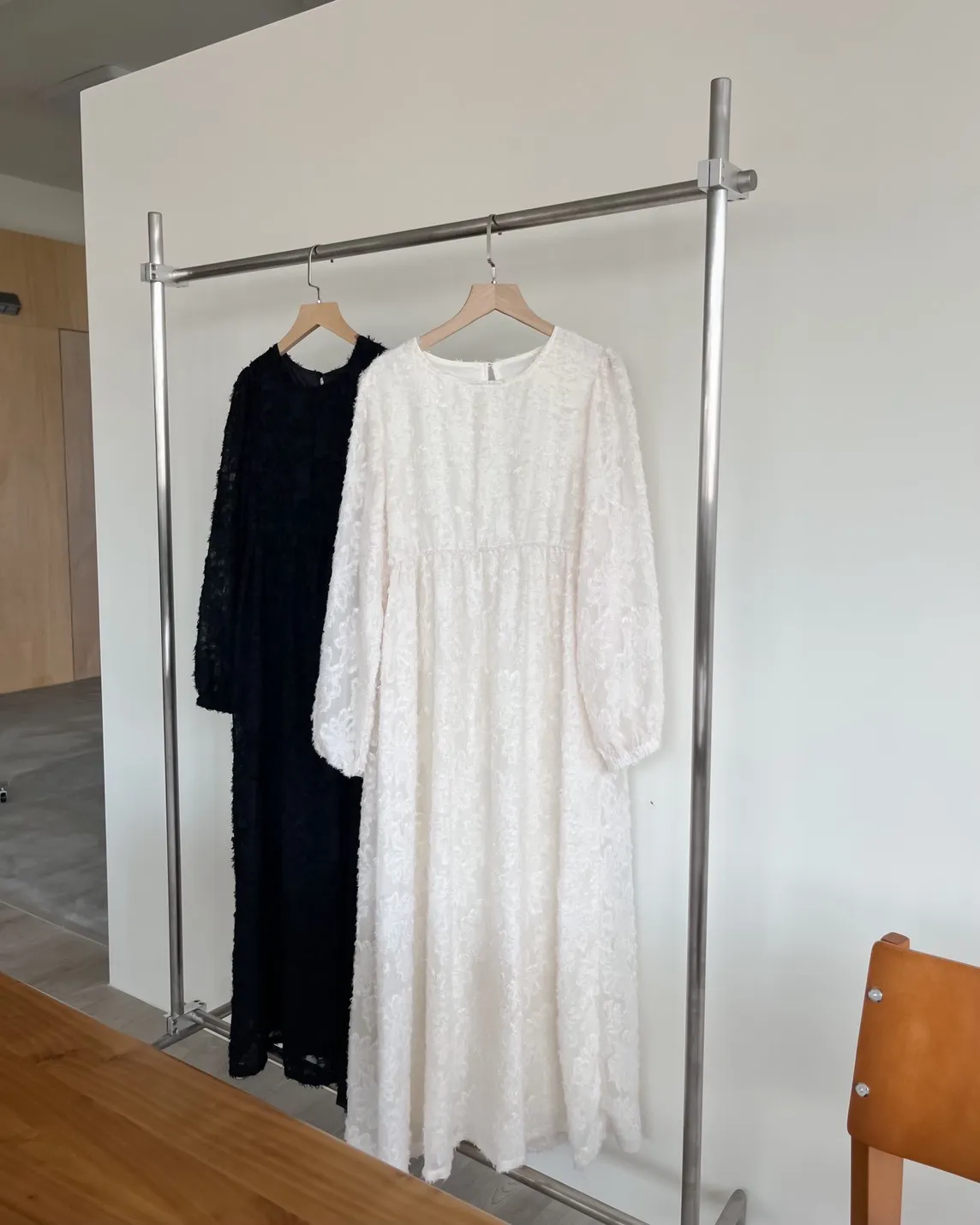 W0001仙女下凡寬鬆羽毛長洋(米/黑)