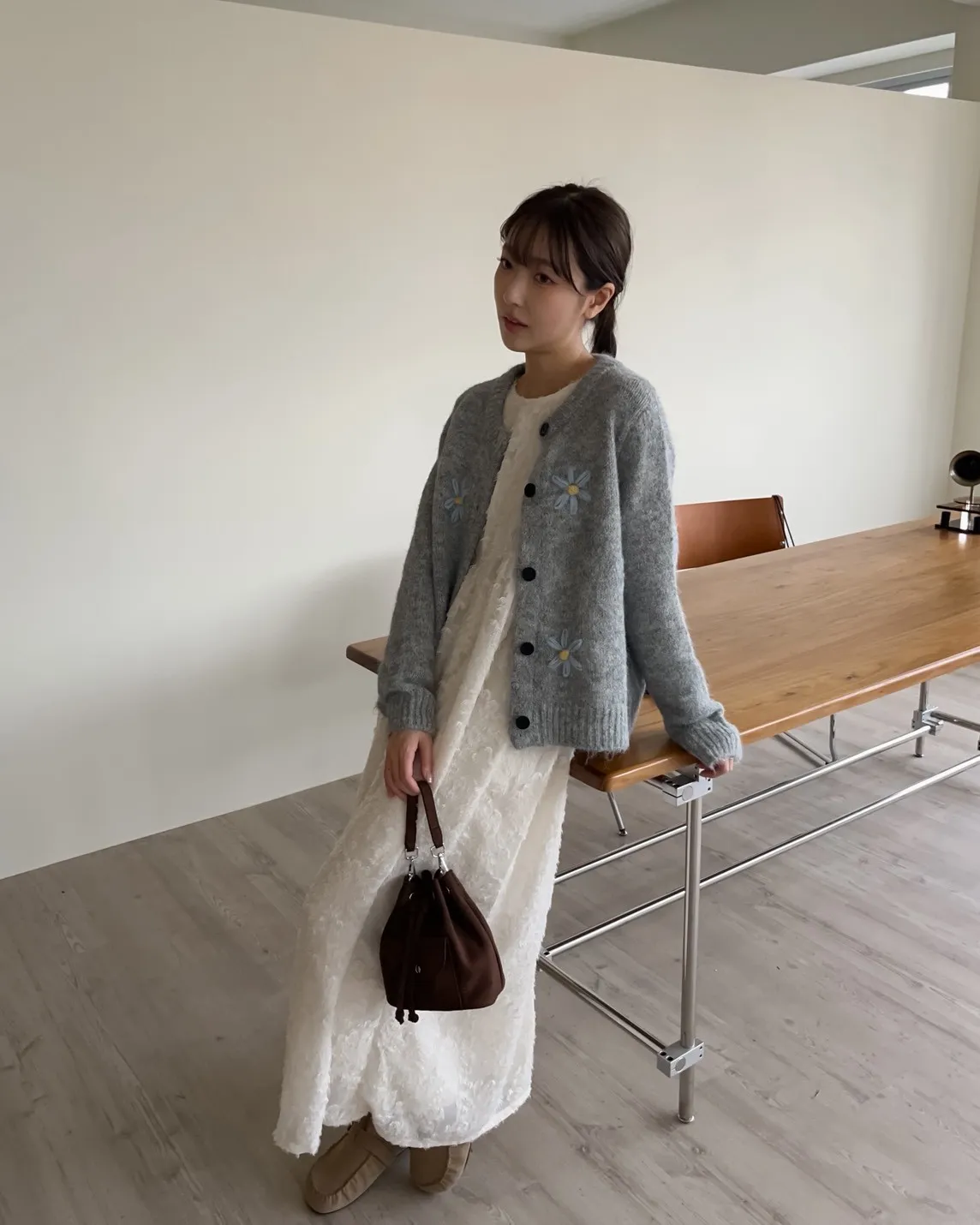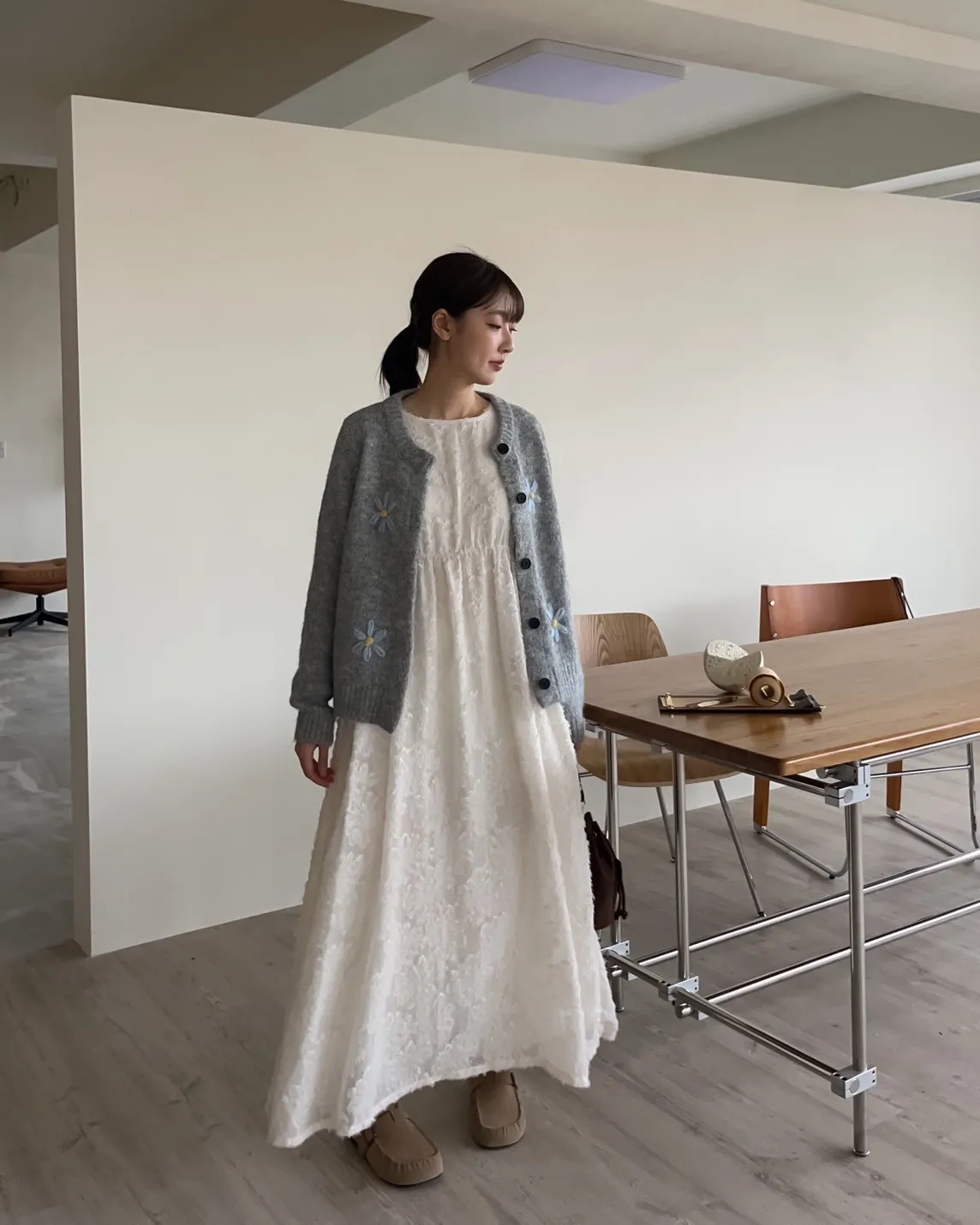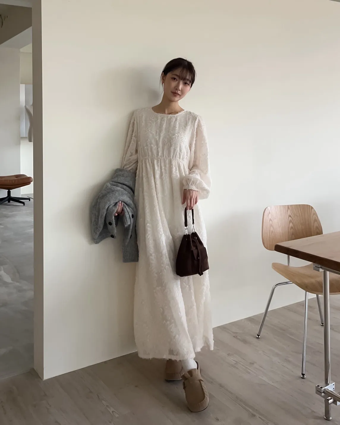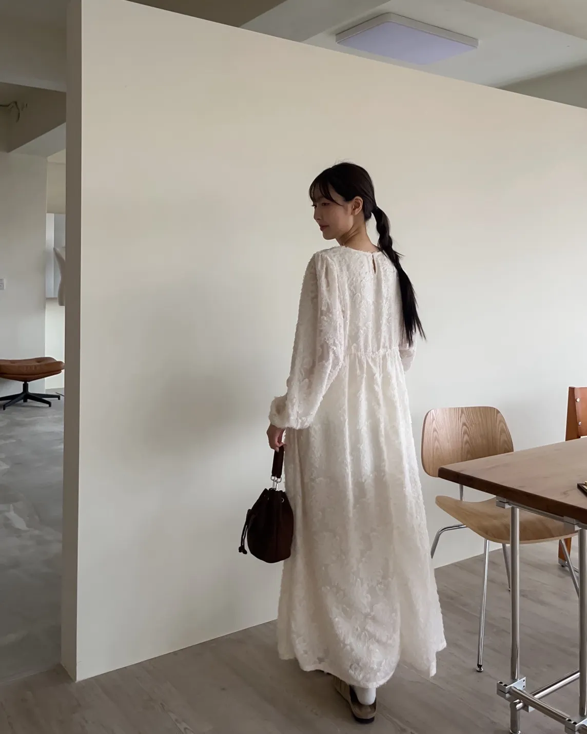 W0001仙女下凡寬鬆羽毛長洋(米/黑)