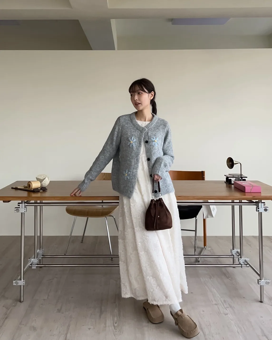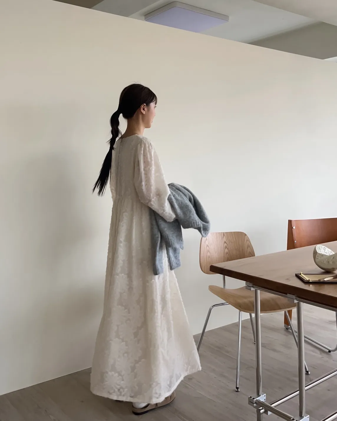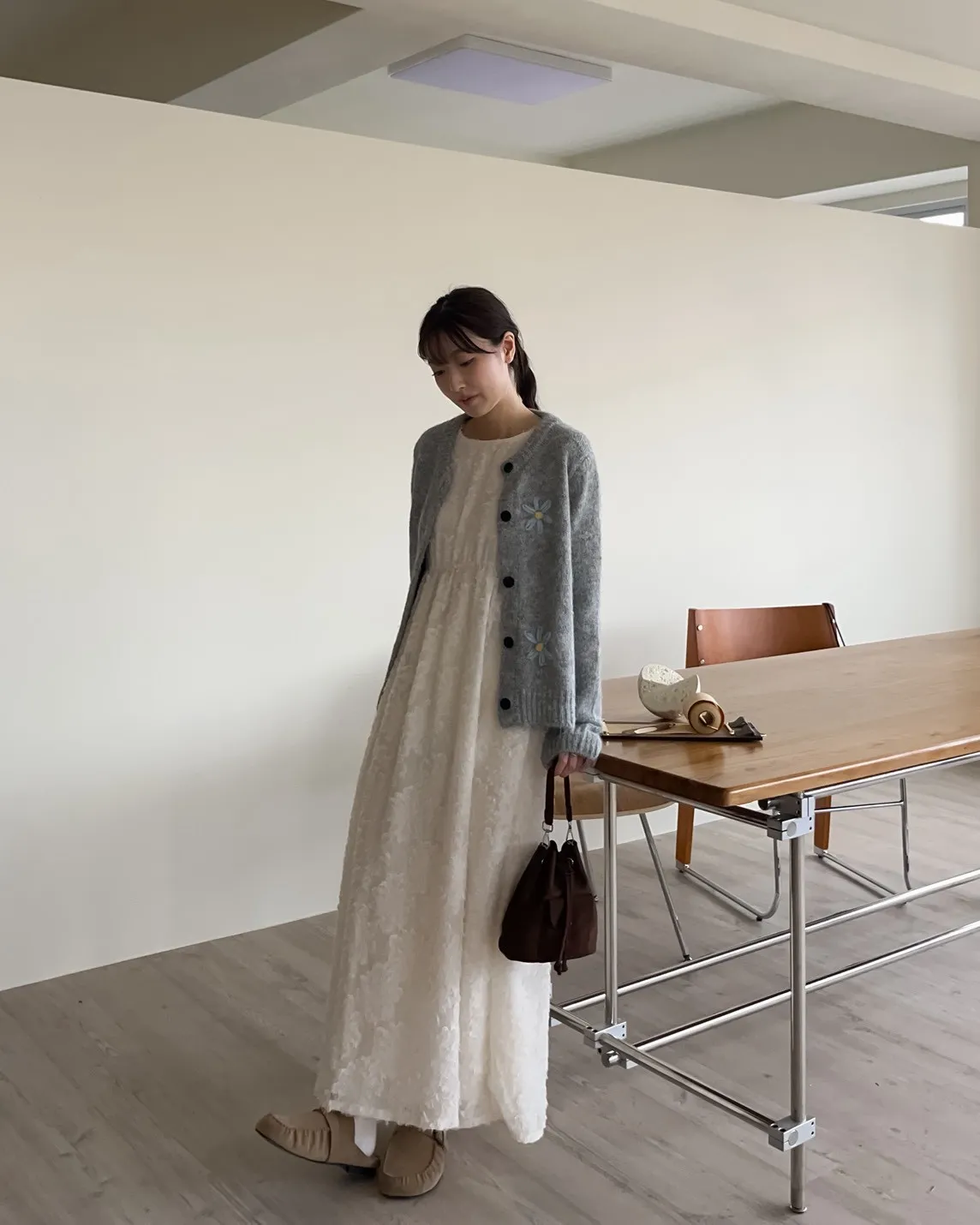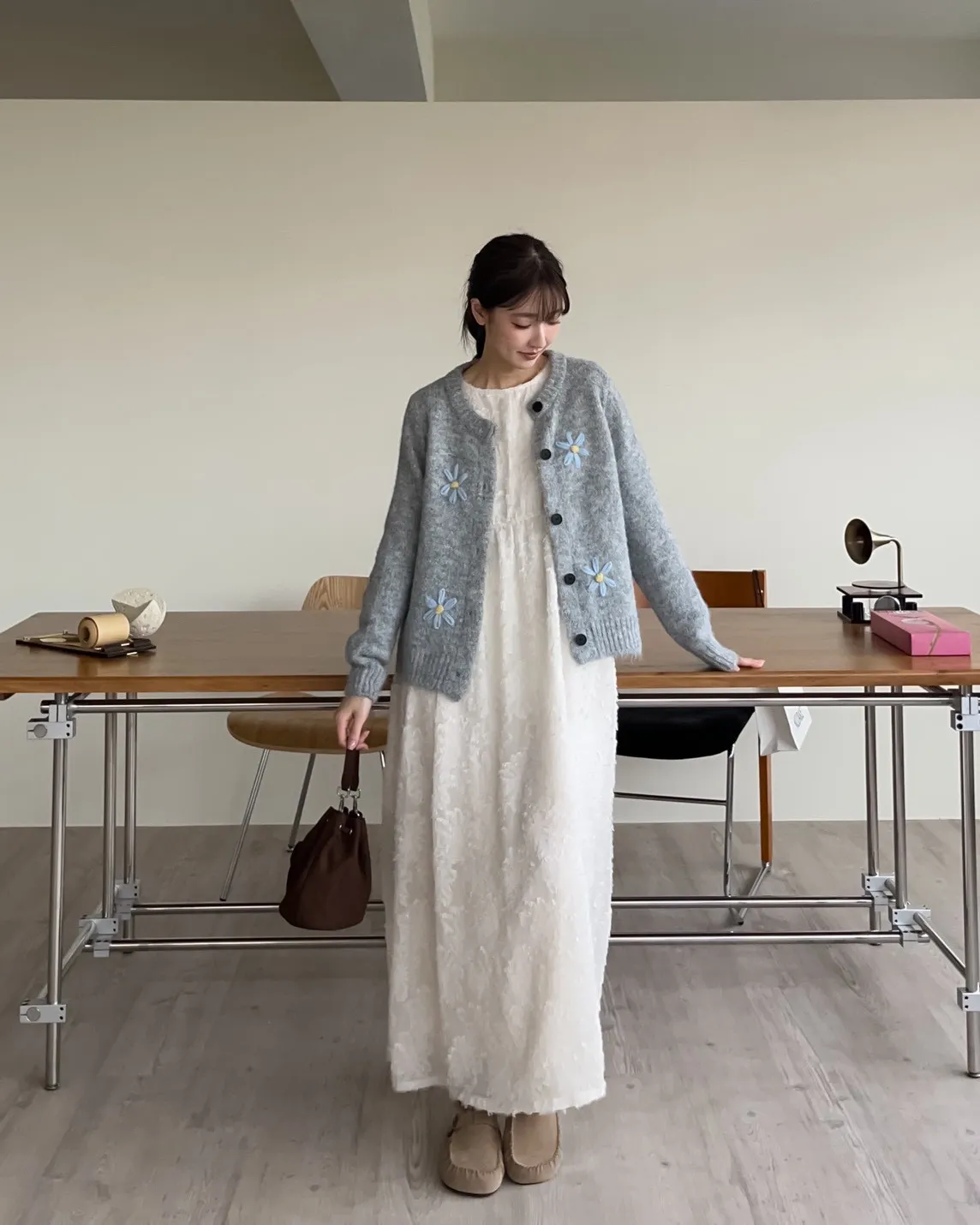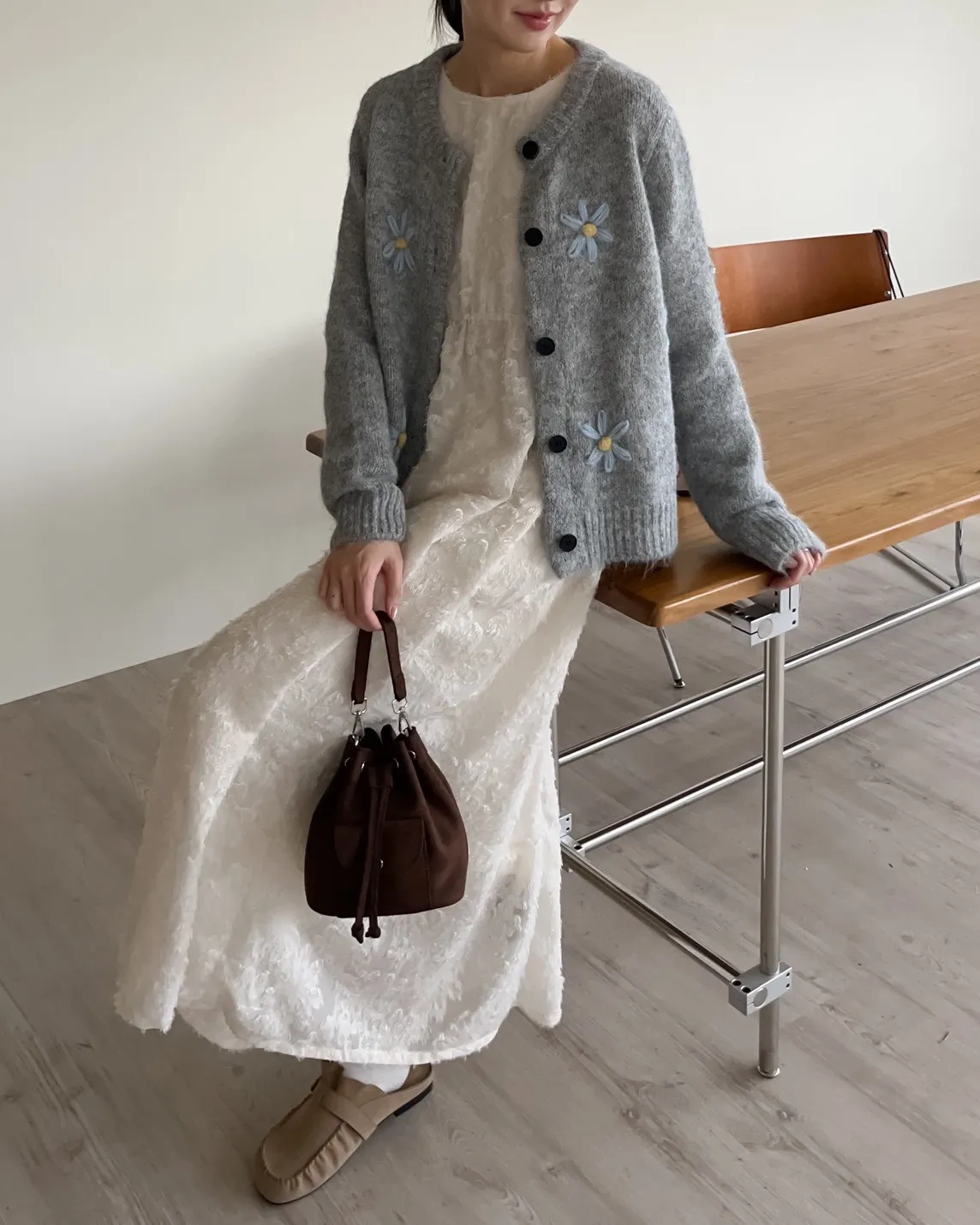 W0001仙女下凡寬鬆羽毛長洋(米/黑)