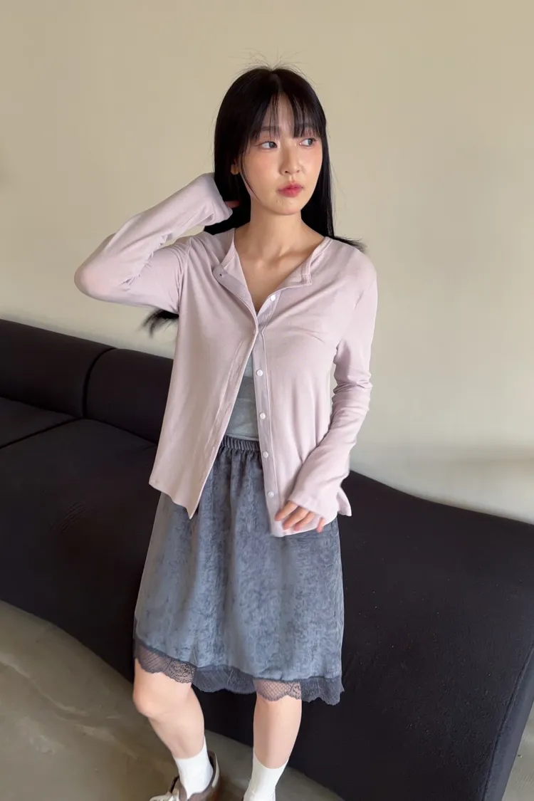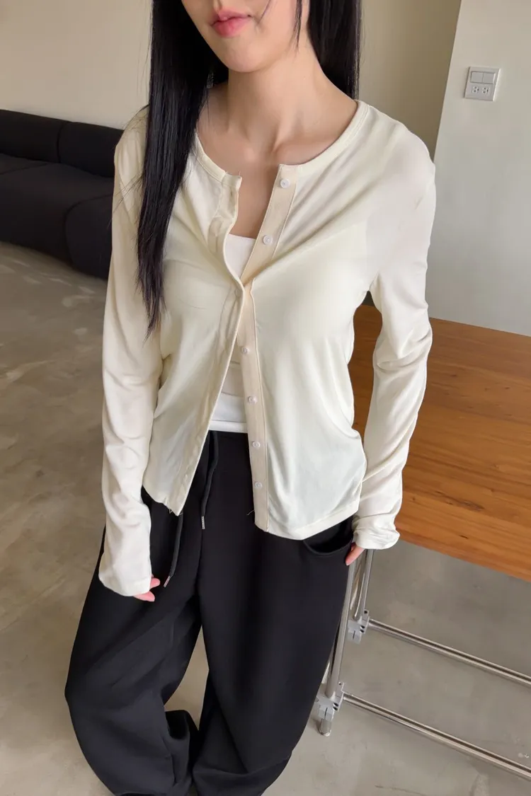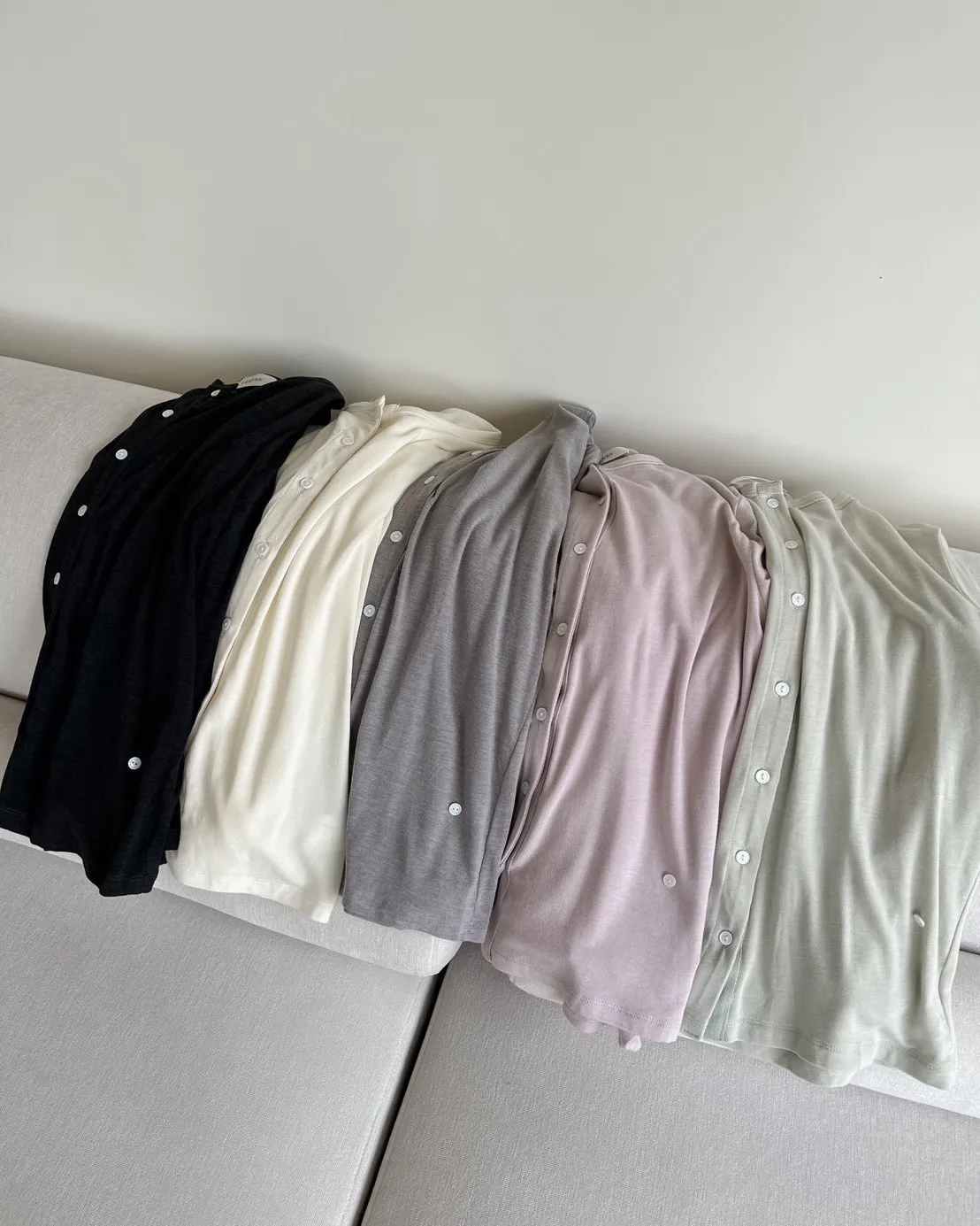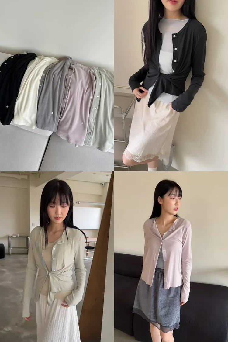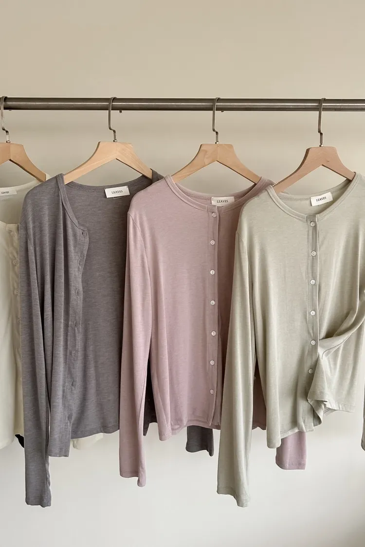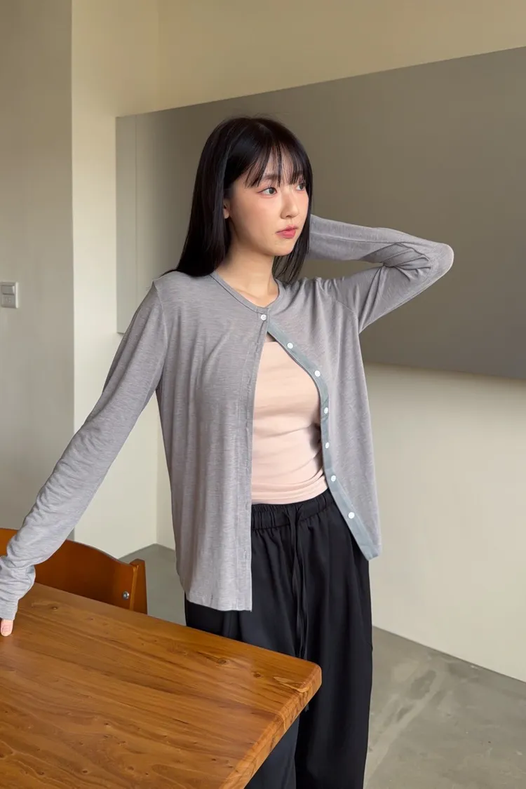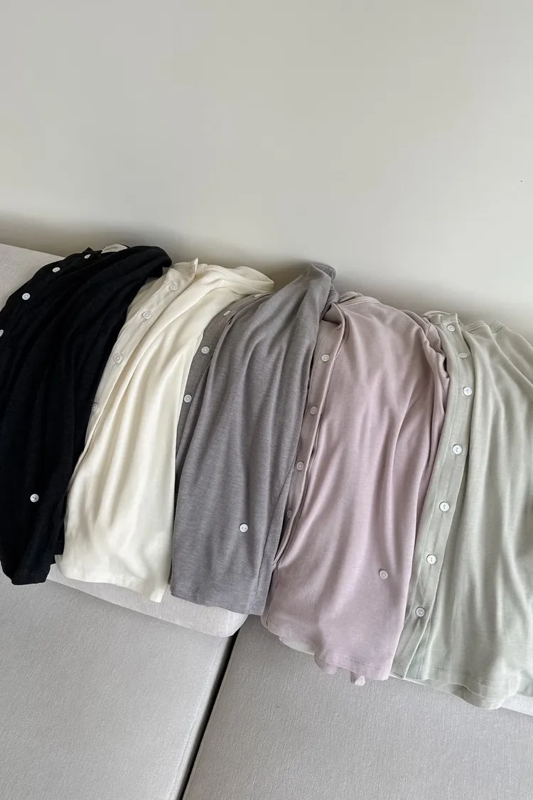 低飽和色系 排扣 薄透 彈性很好很親膚 單側鈕扣可做造型