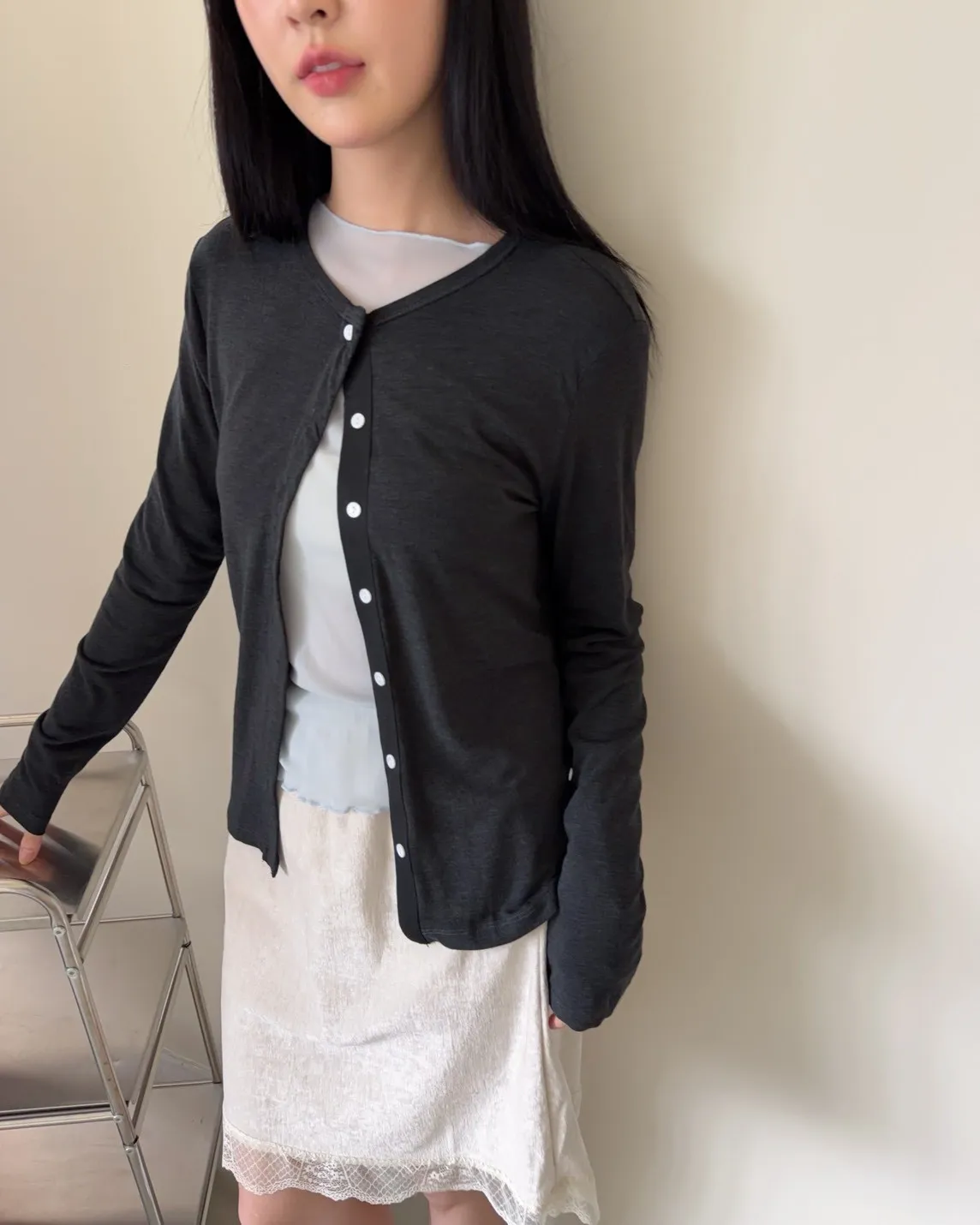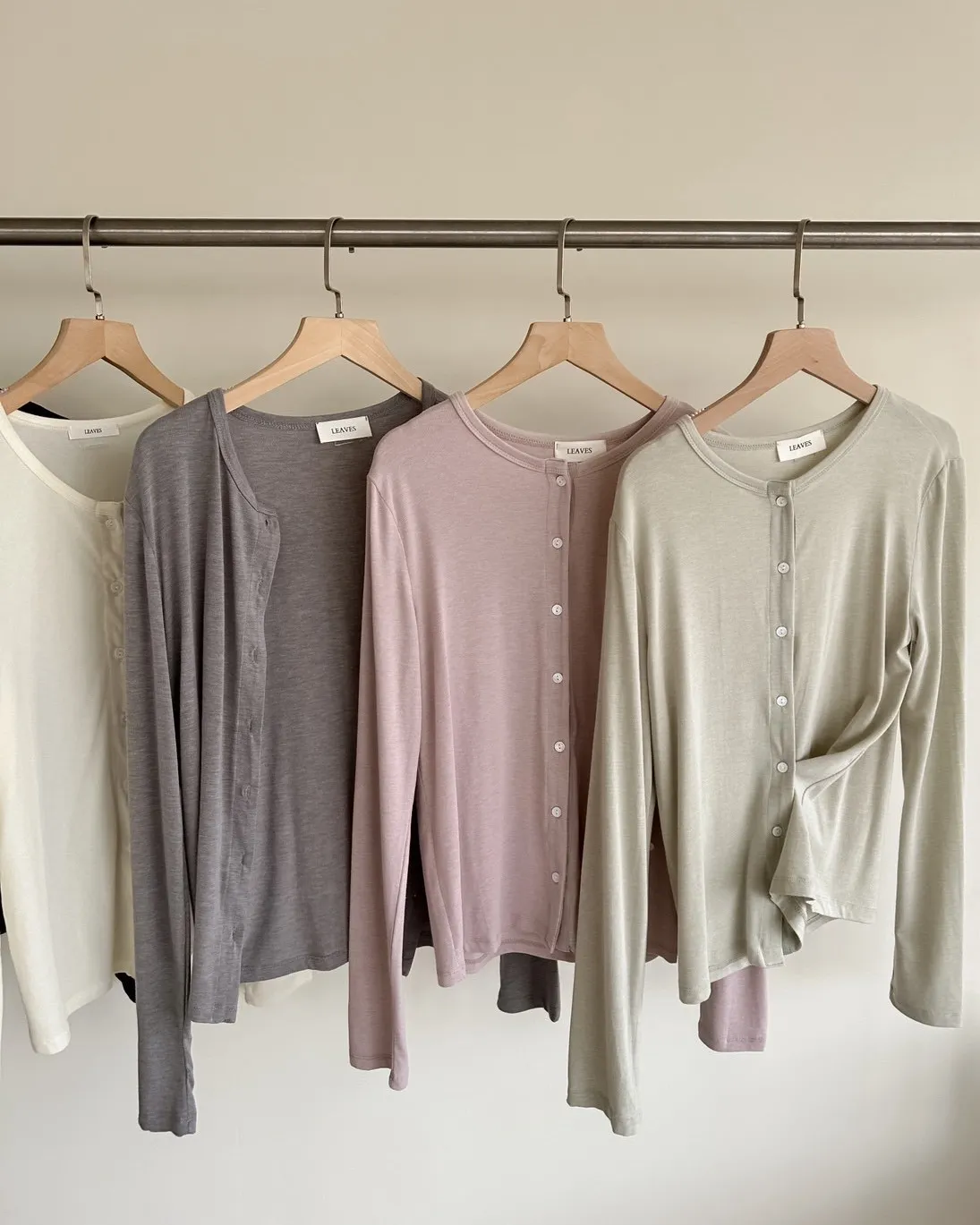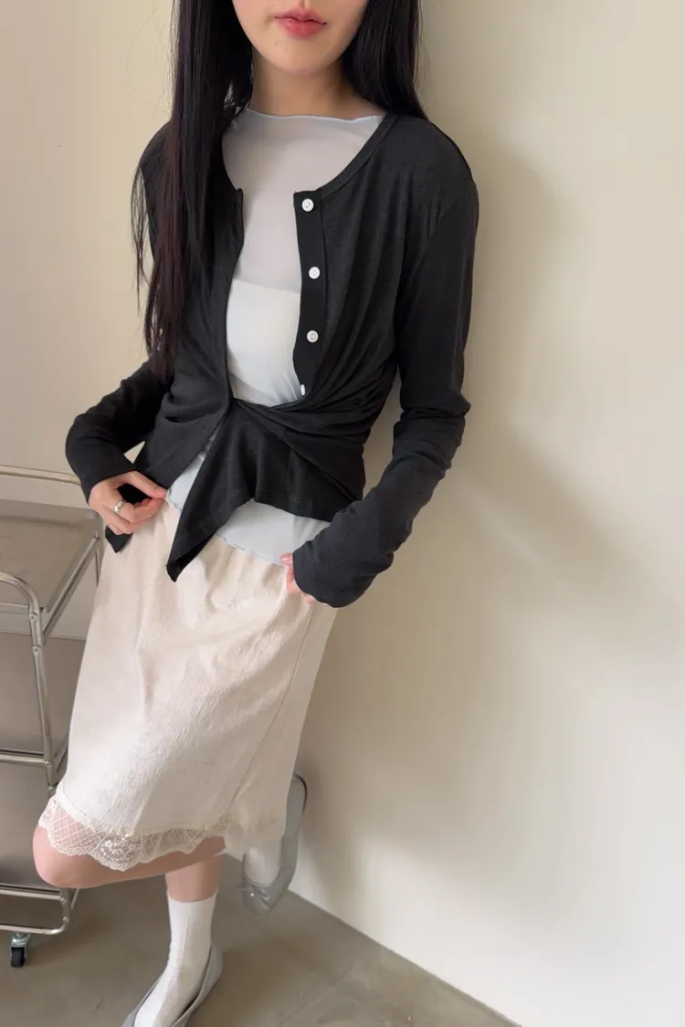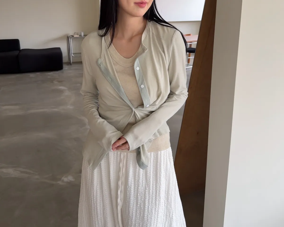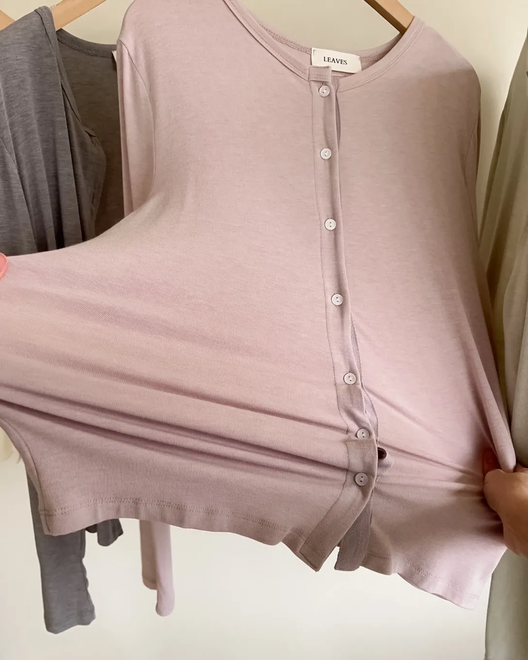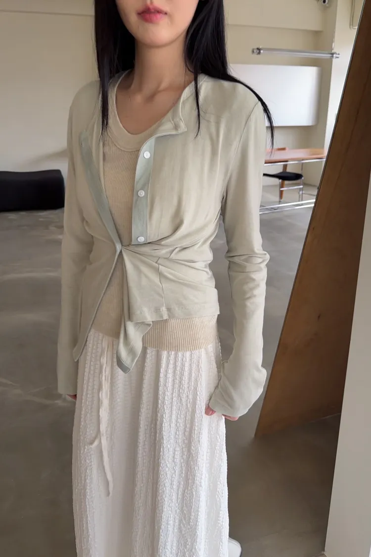 低飽和色系 排扣 薄透 彈性很好很親膚 單側鈕扣可做造型