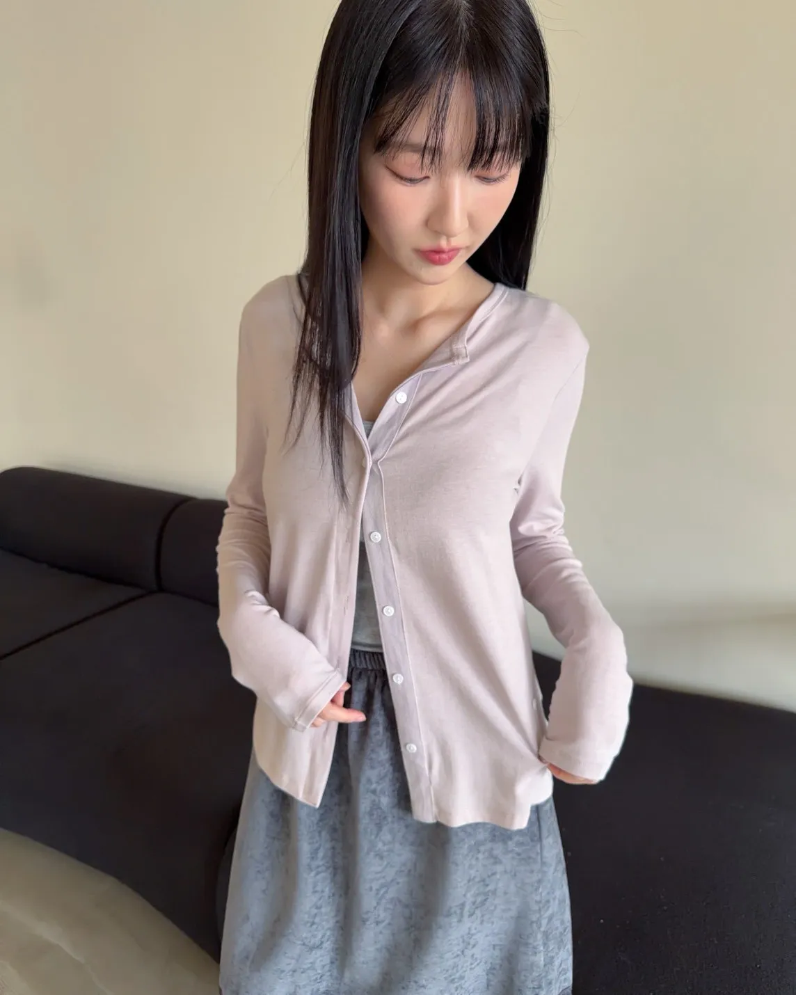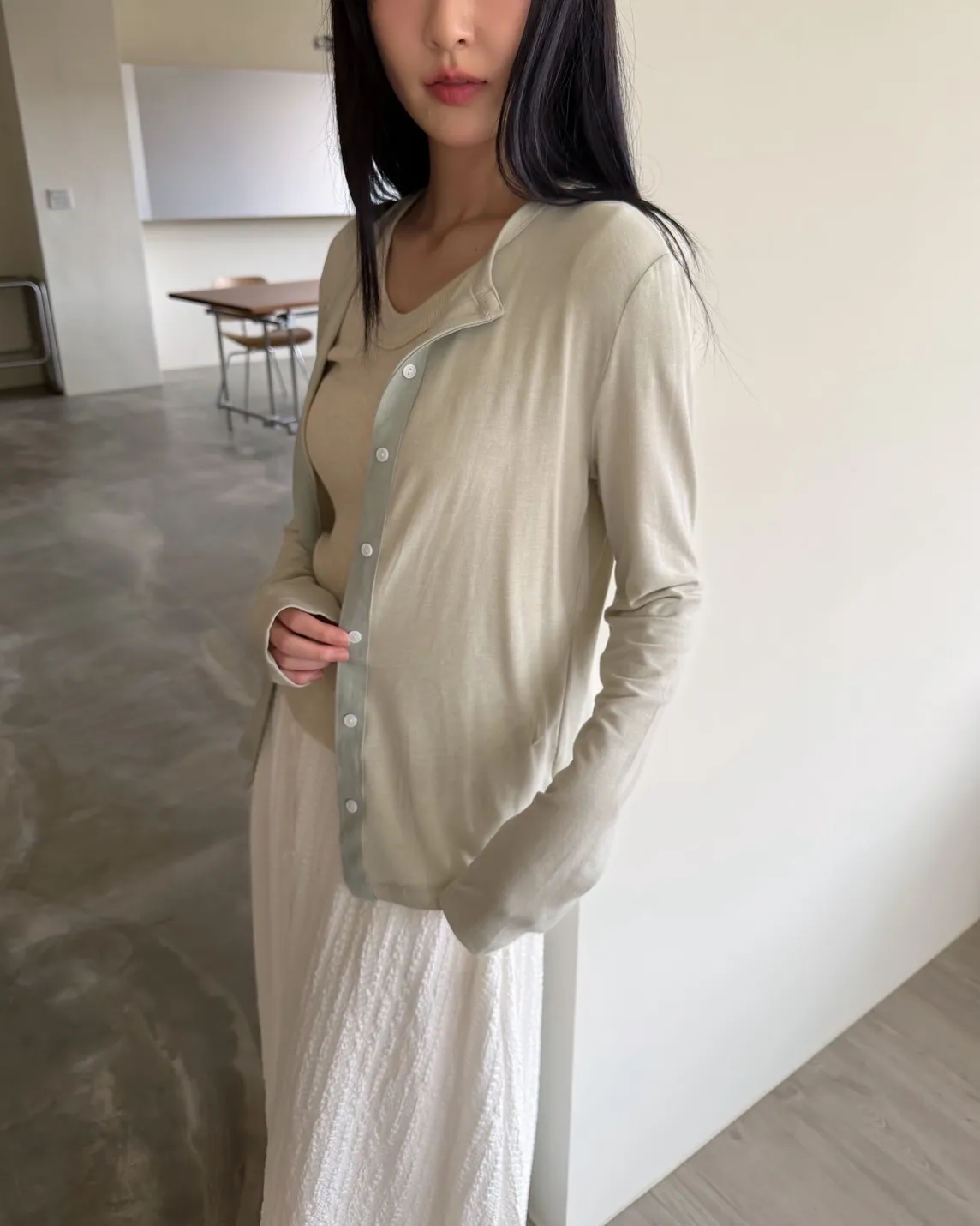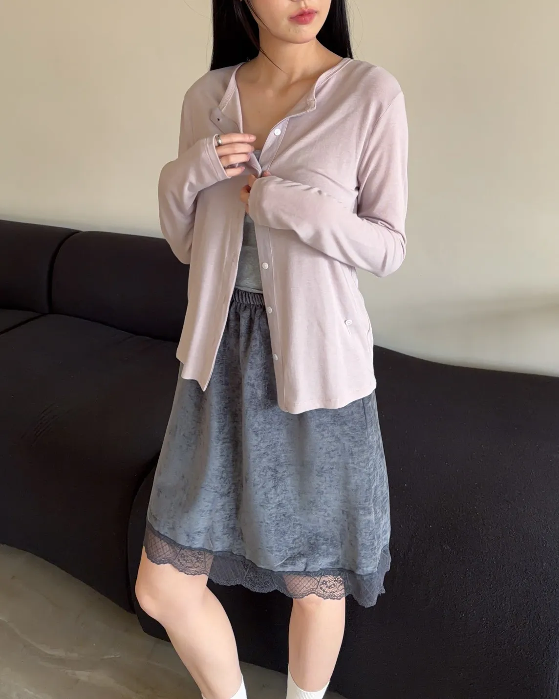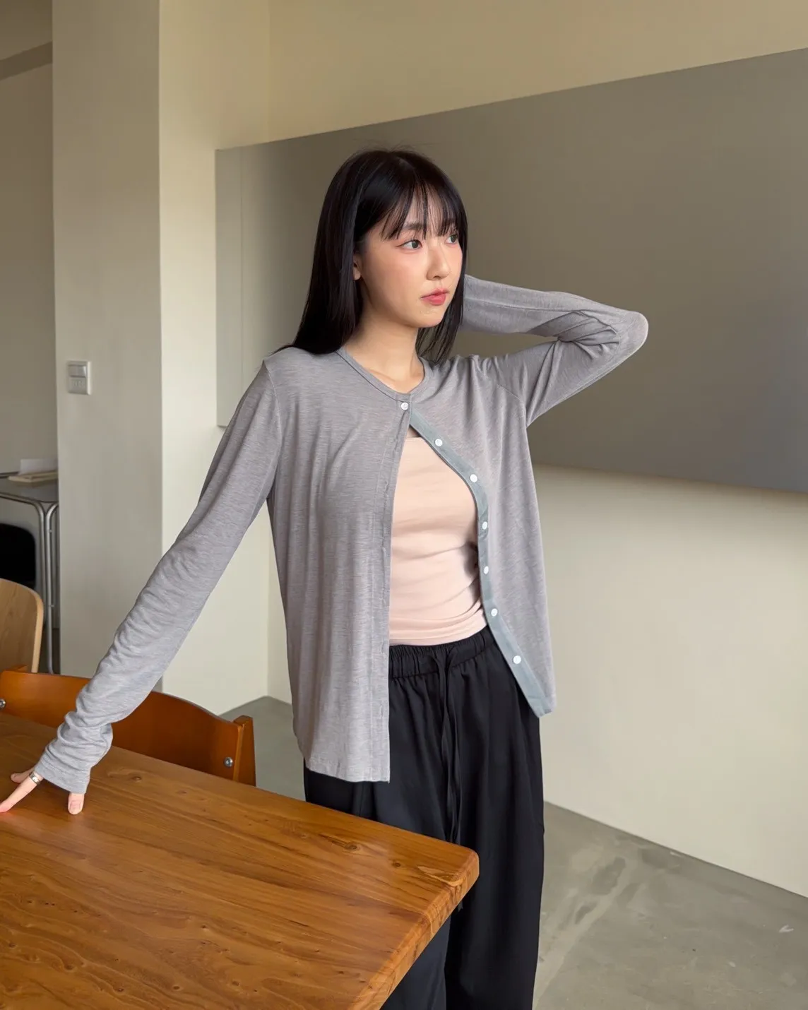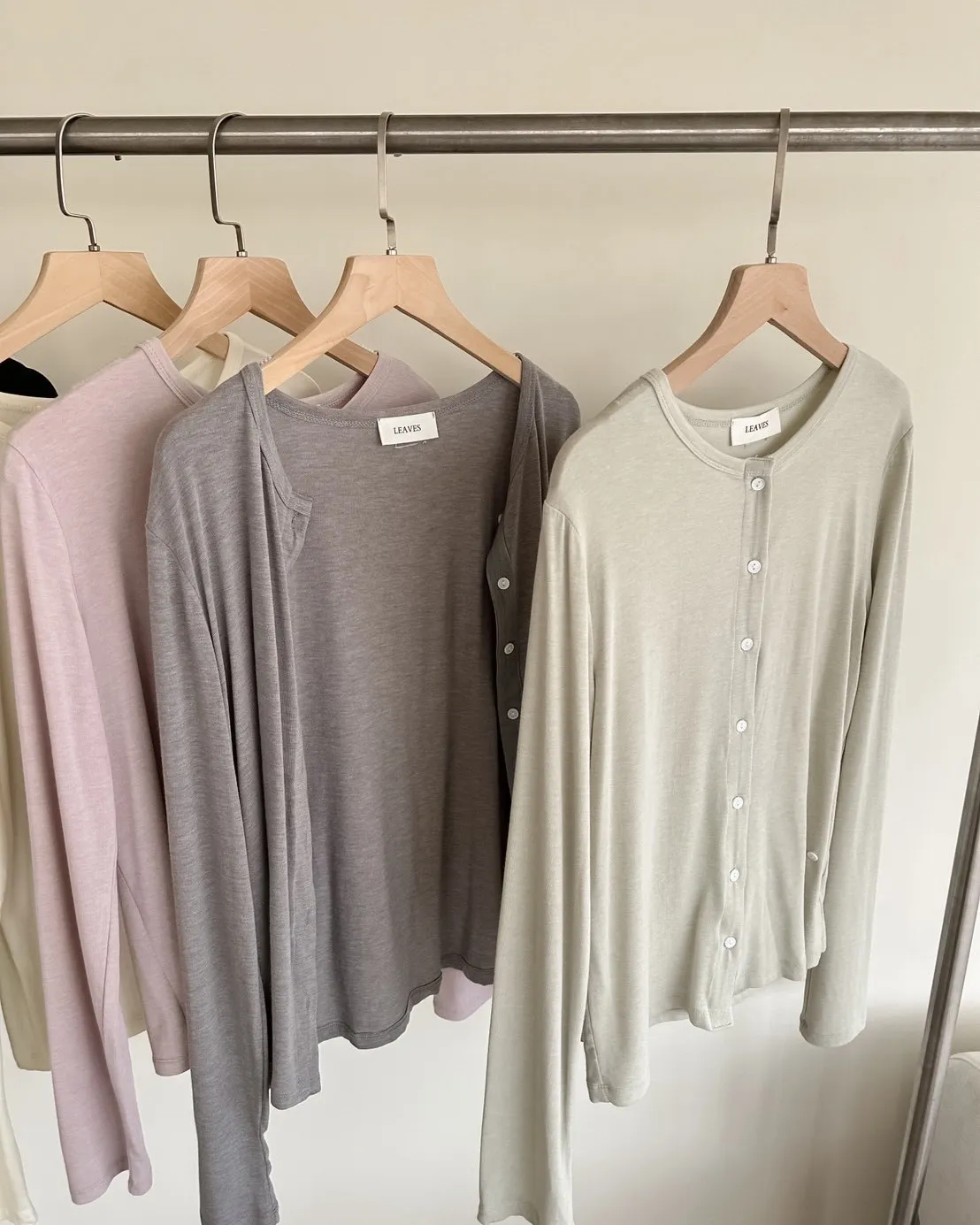 低飽和色系 排扣 薄透 彈性很好很親膚 單側鈕扣可做造型
