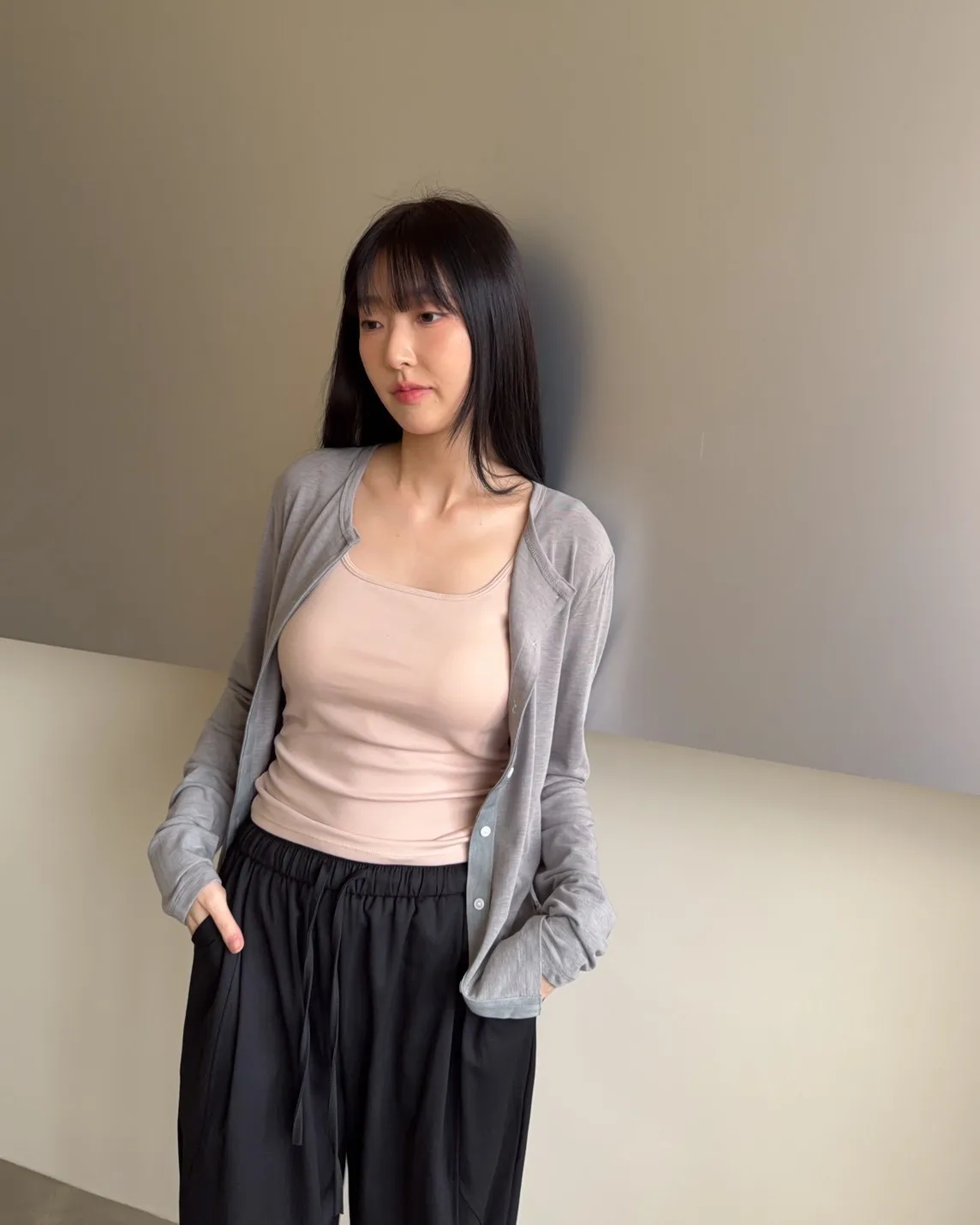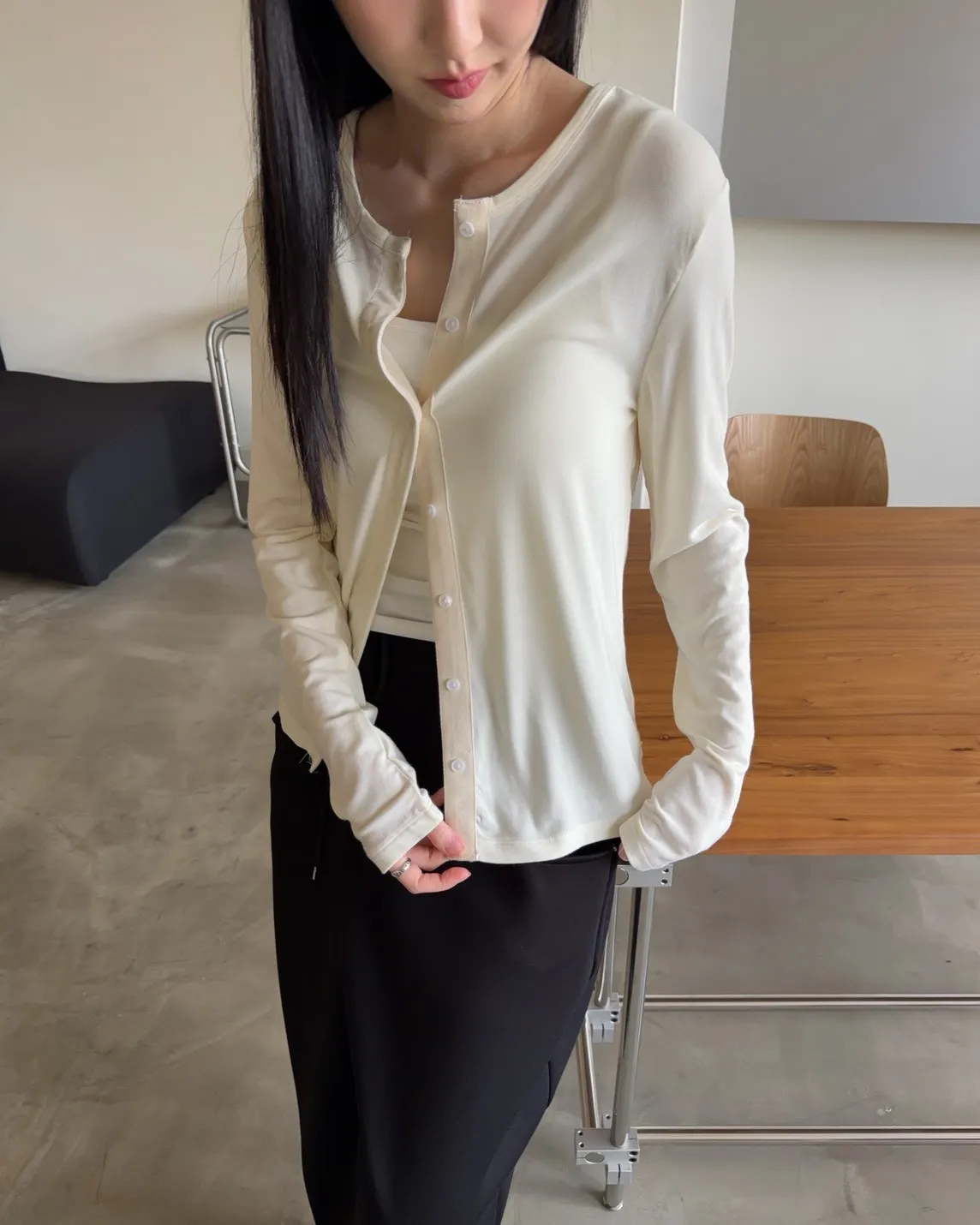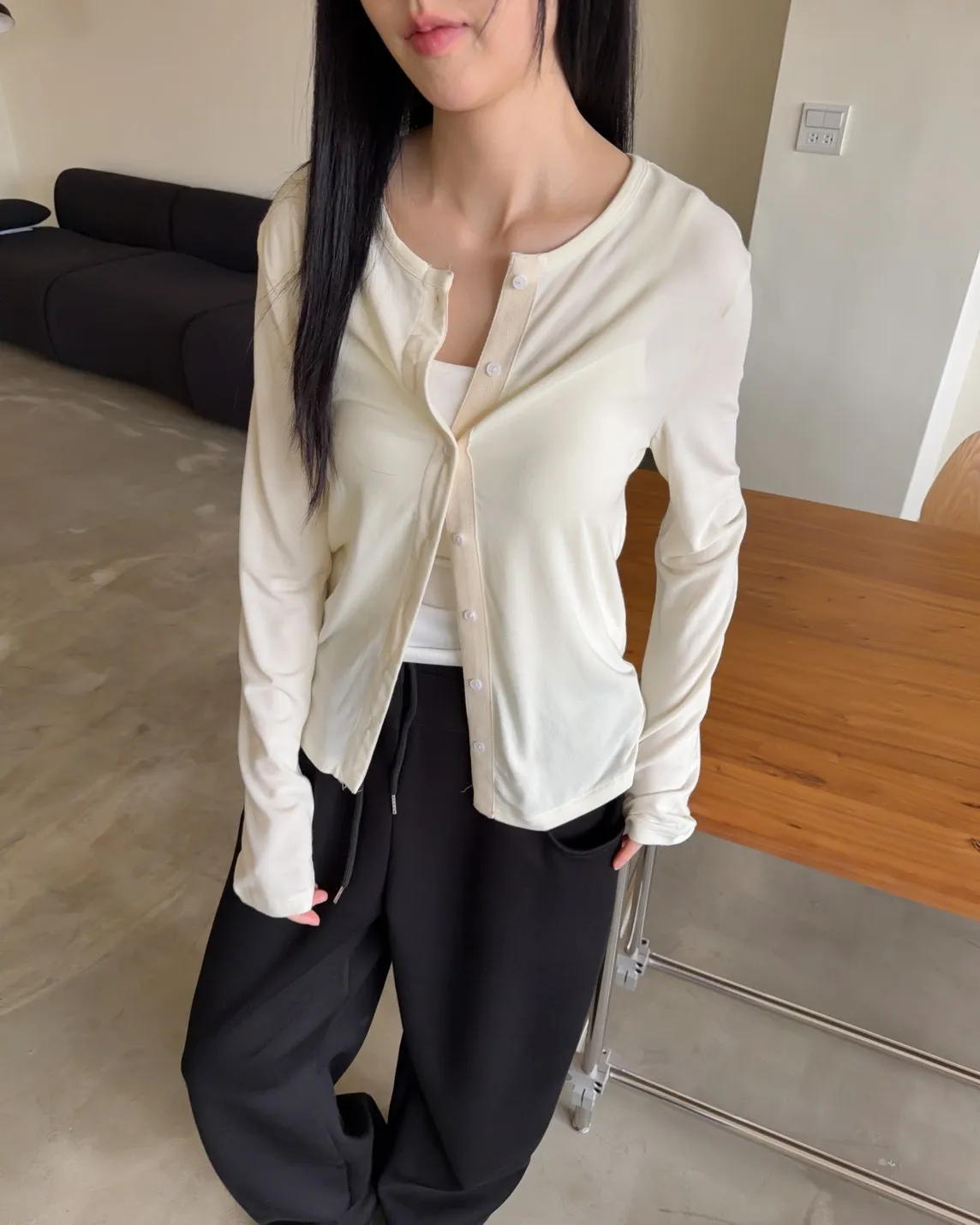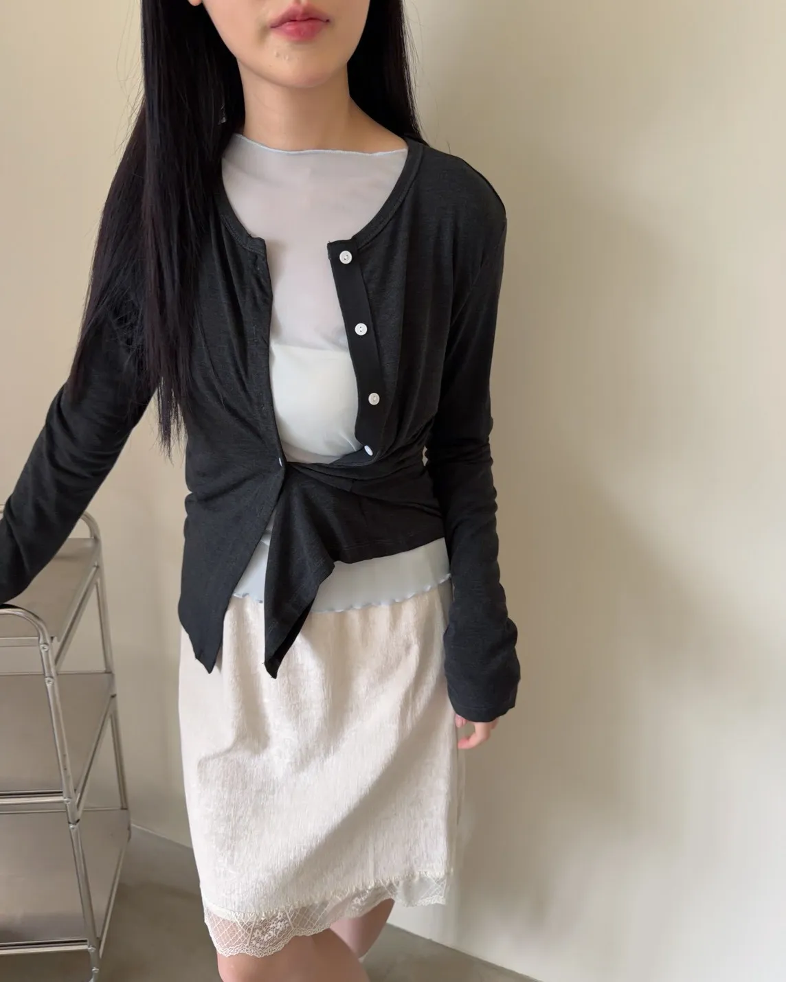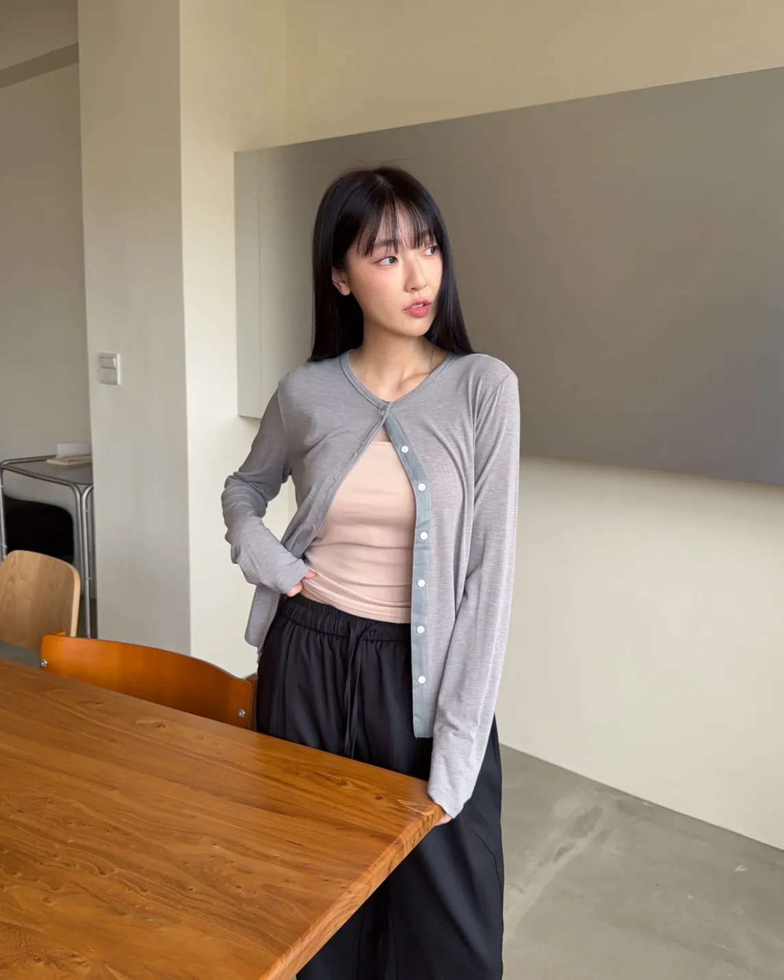 低飽和色系 排扣 薄透 彈性很好很親膚 單側鈕扣可做造型