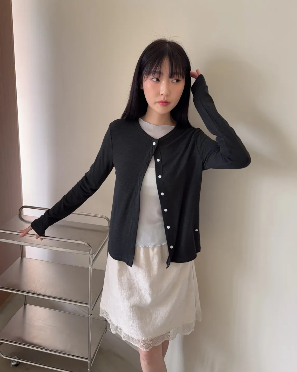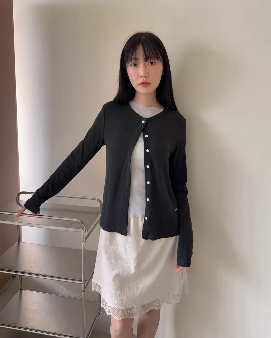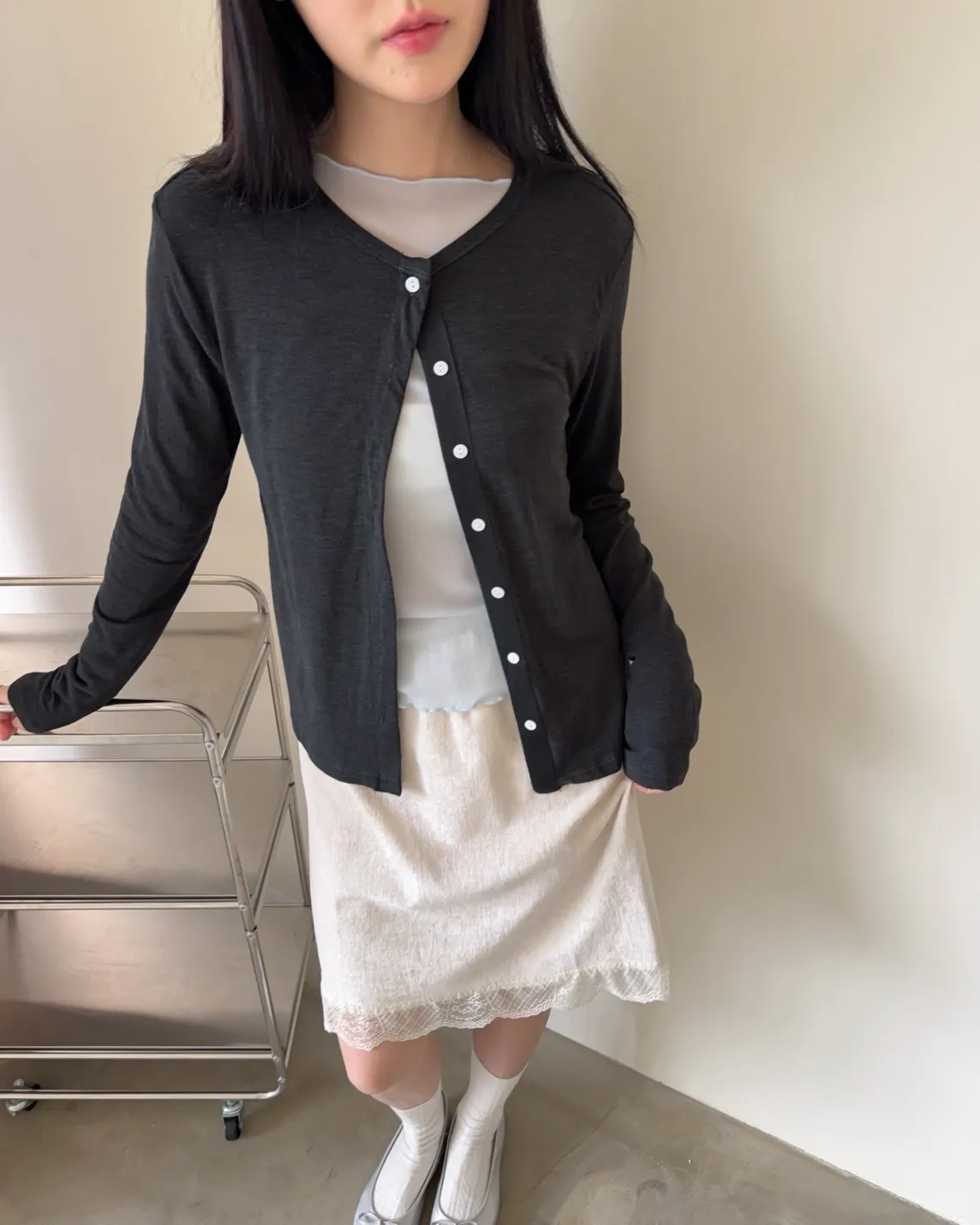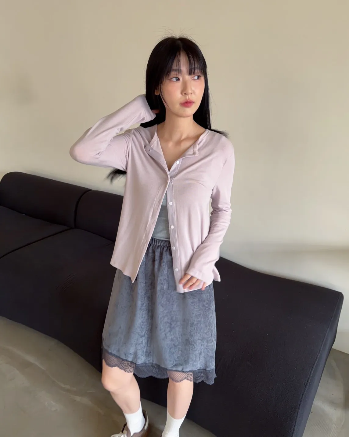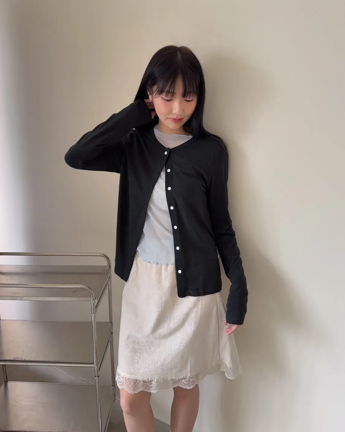 低飽和色系 排扣 薄透 彈性很好很親膚 單側鈕扣可做造型