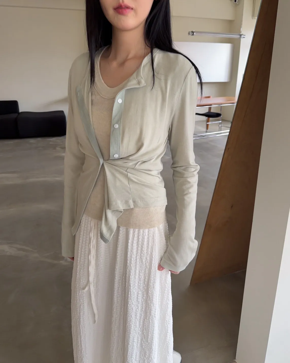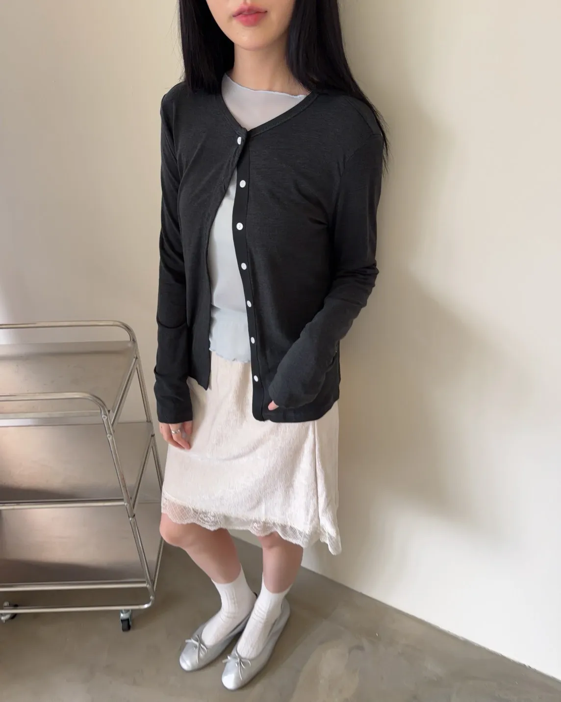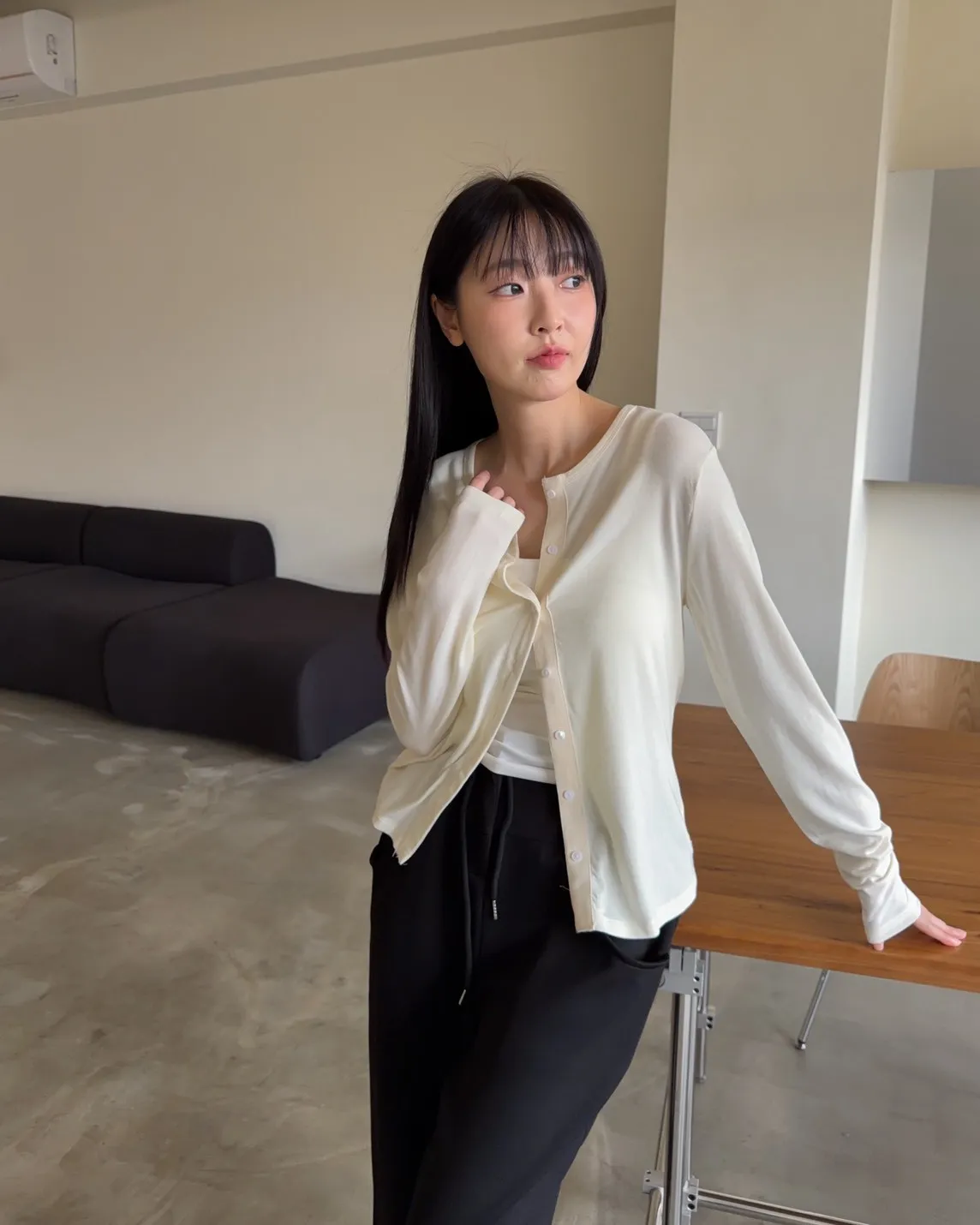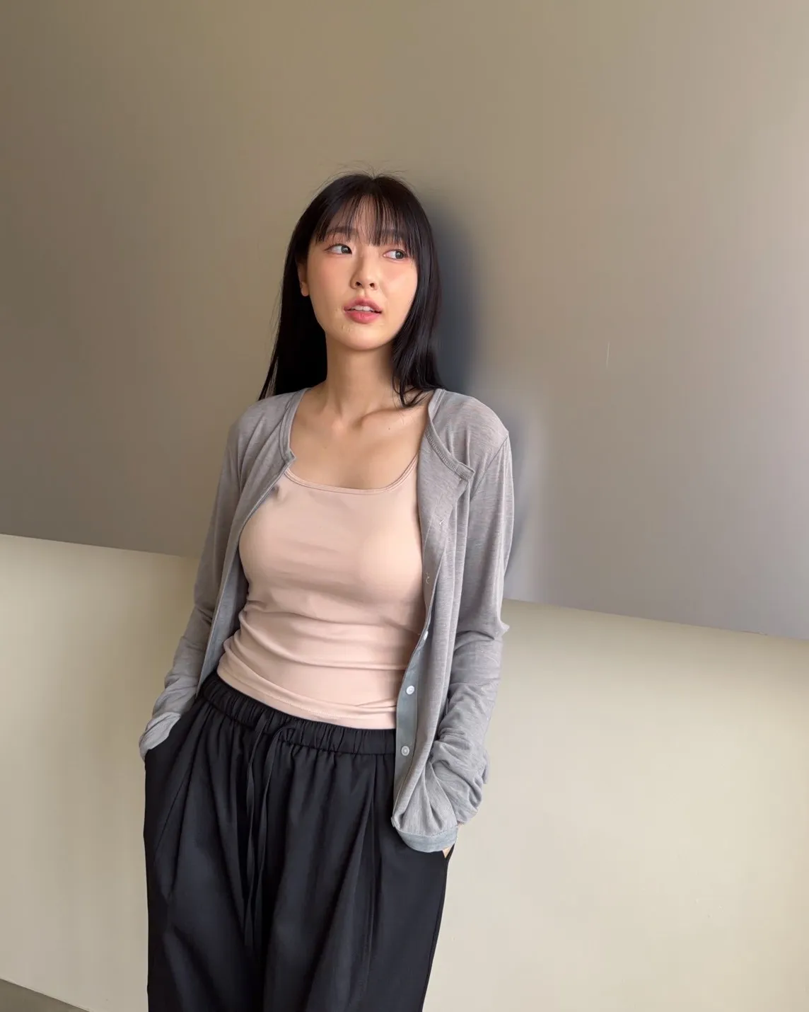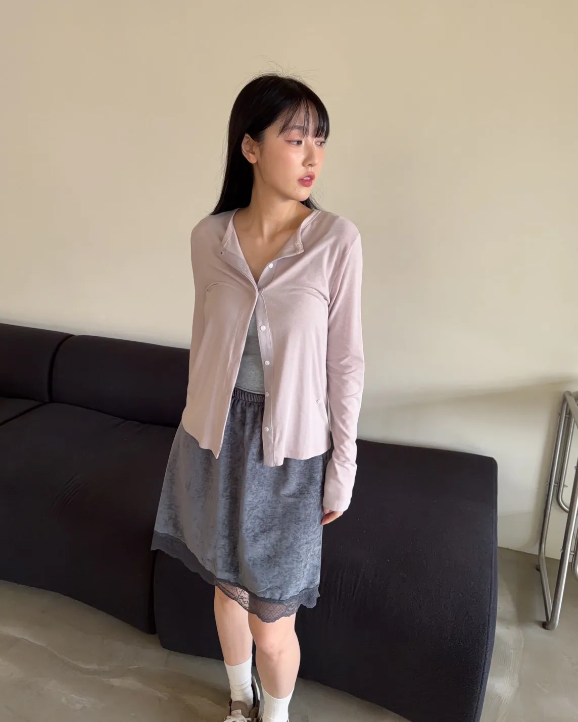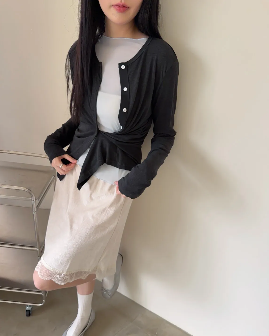 低飽和色系 排扣 薄透 彈性很好很親膚 單側鈕扣可做造型
