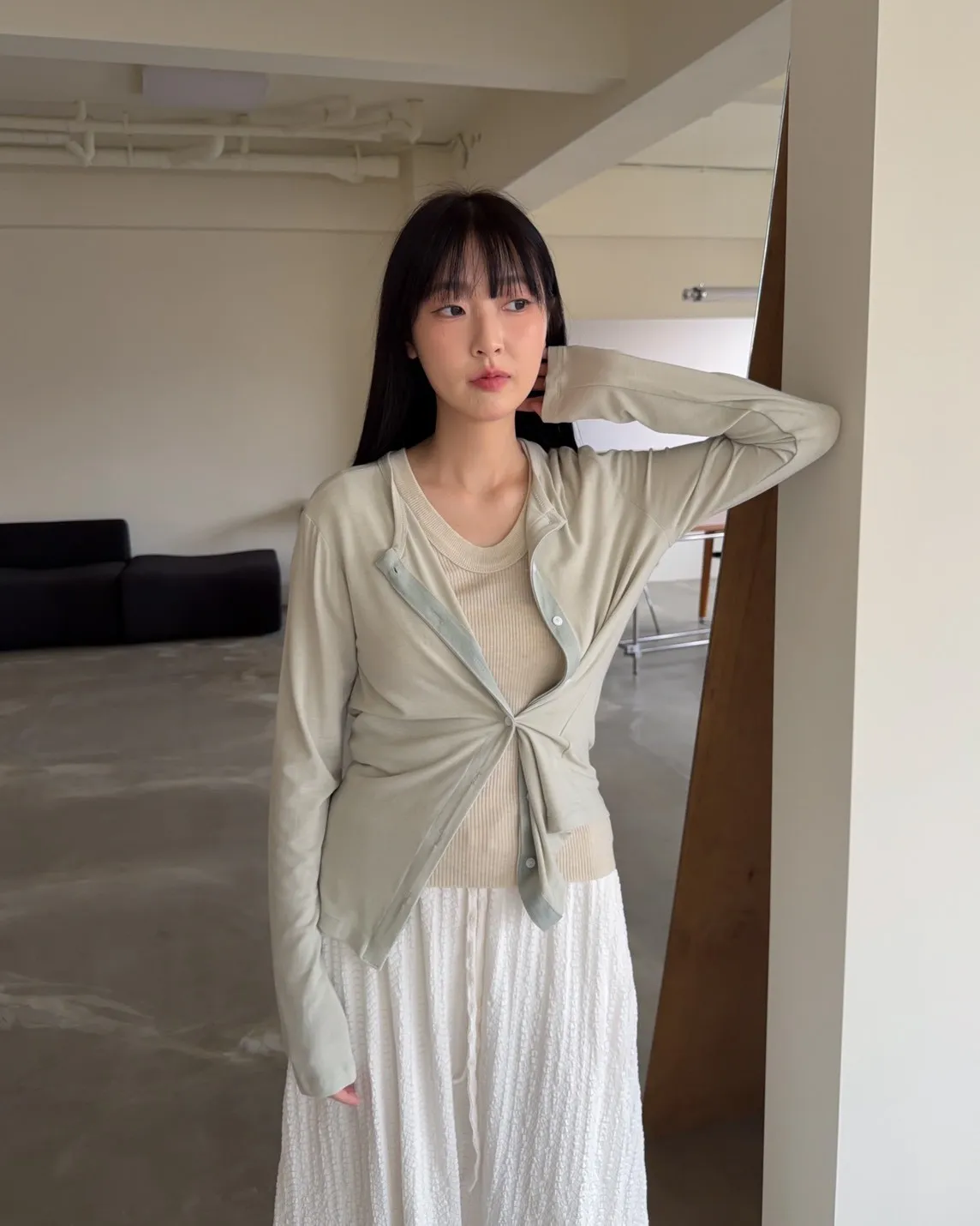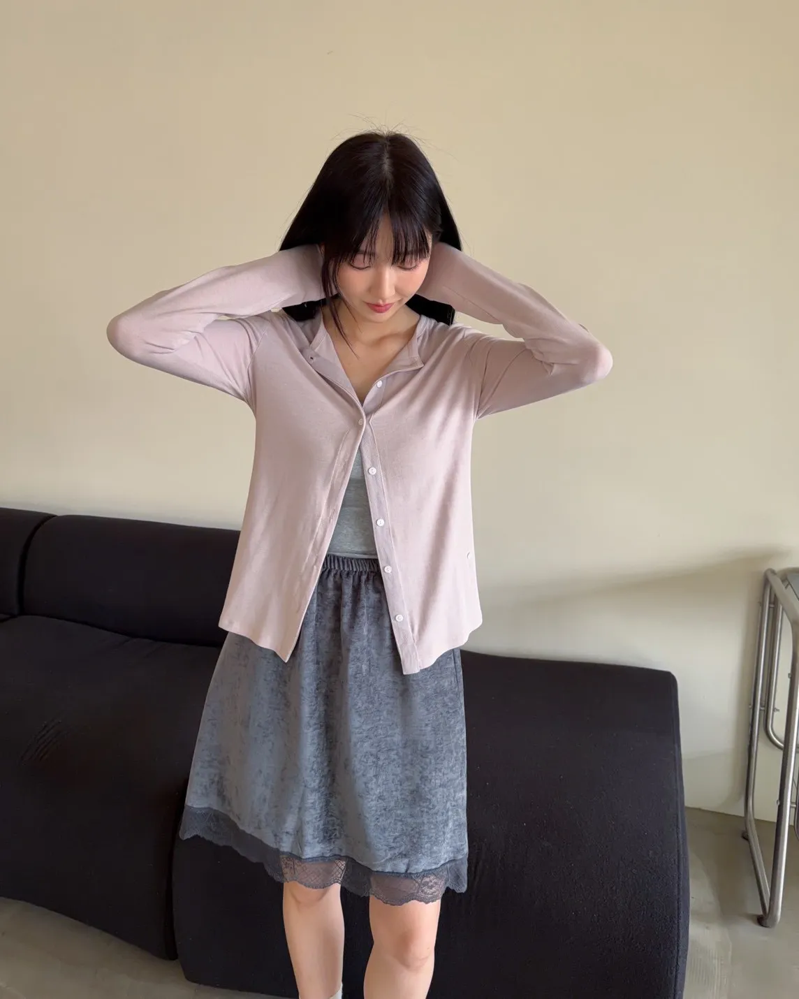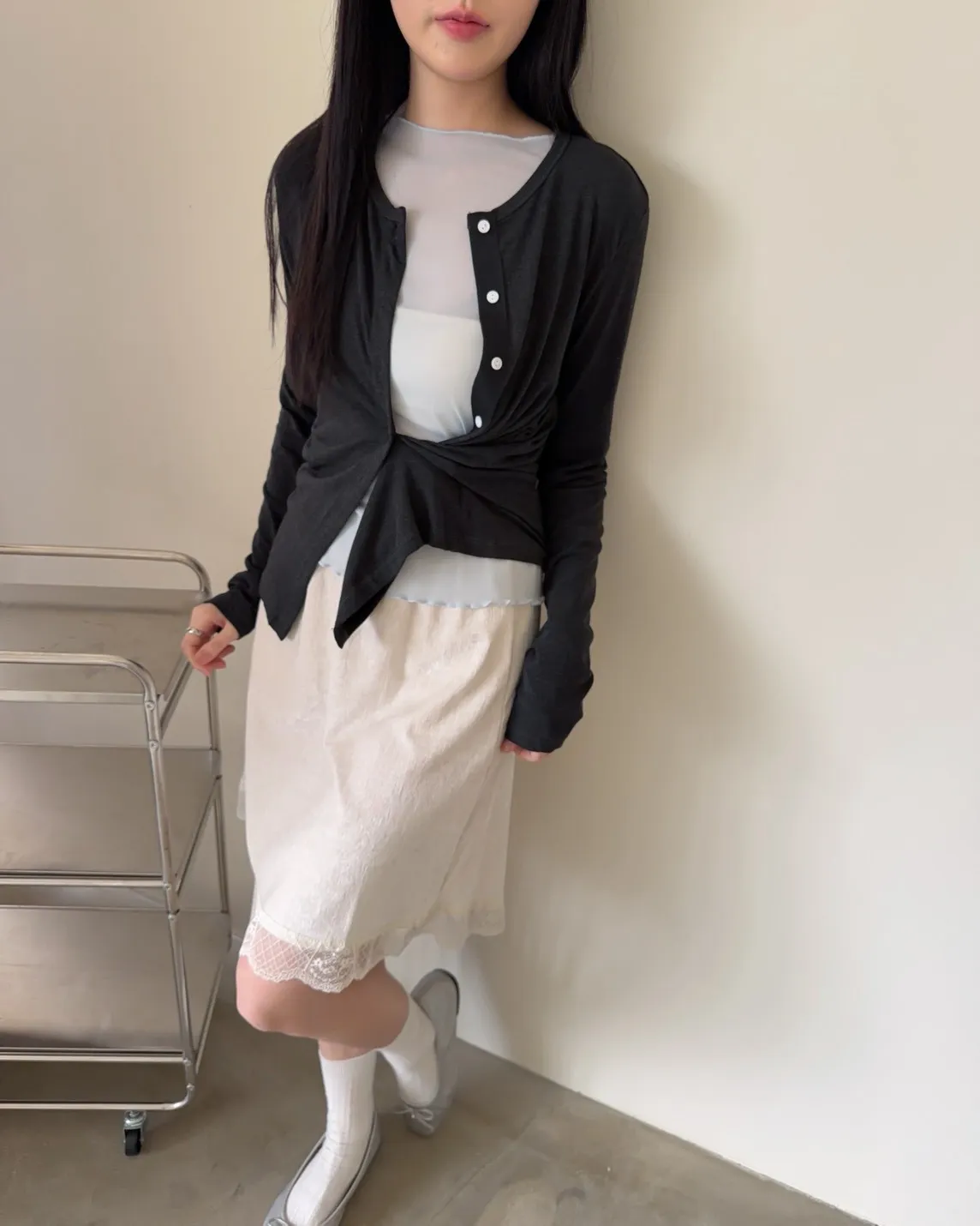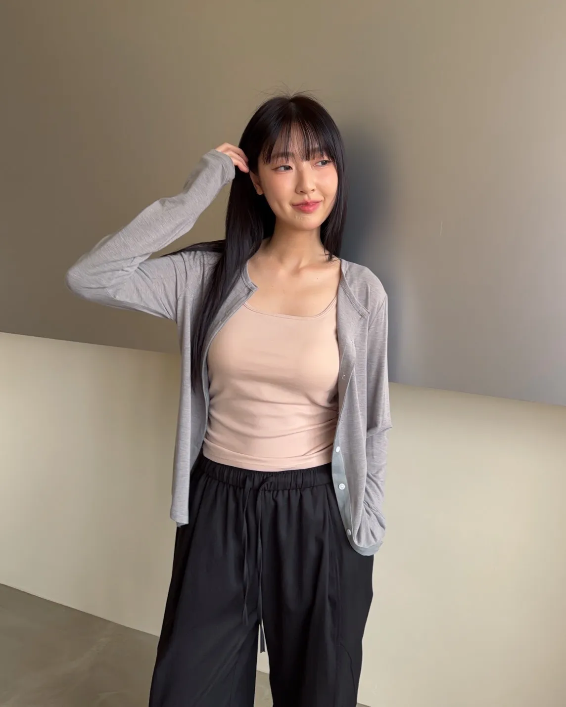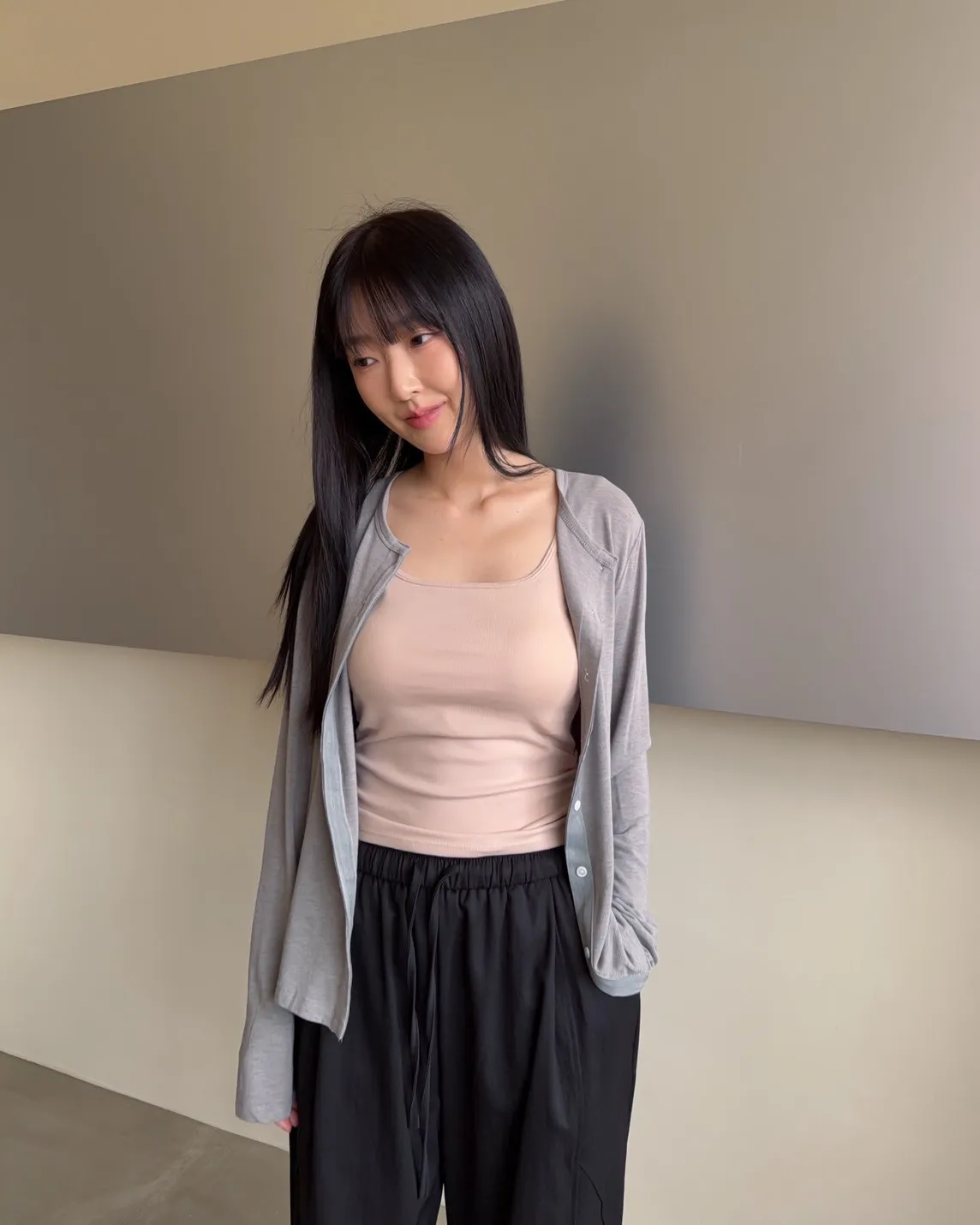 低飽和色系 排扣 薄透 彈性很好很親膚 單側鈕扣可做造型