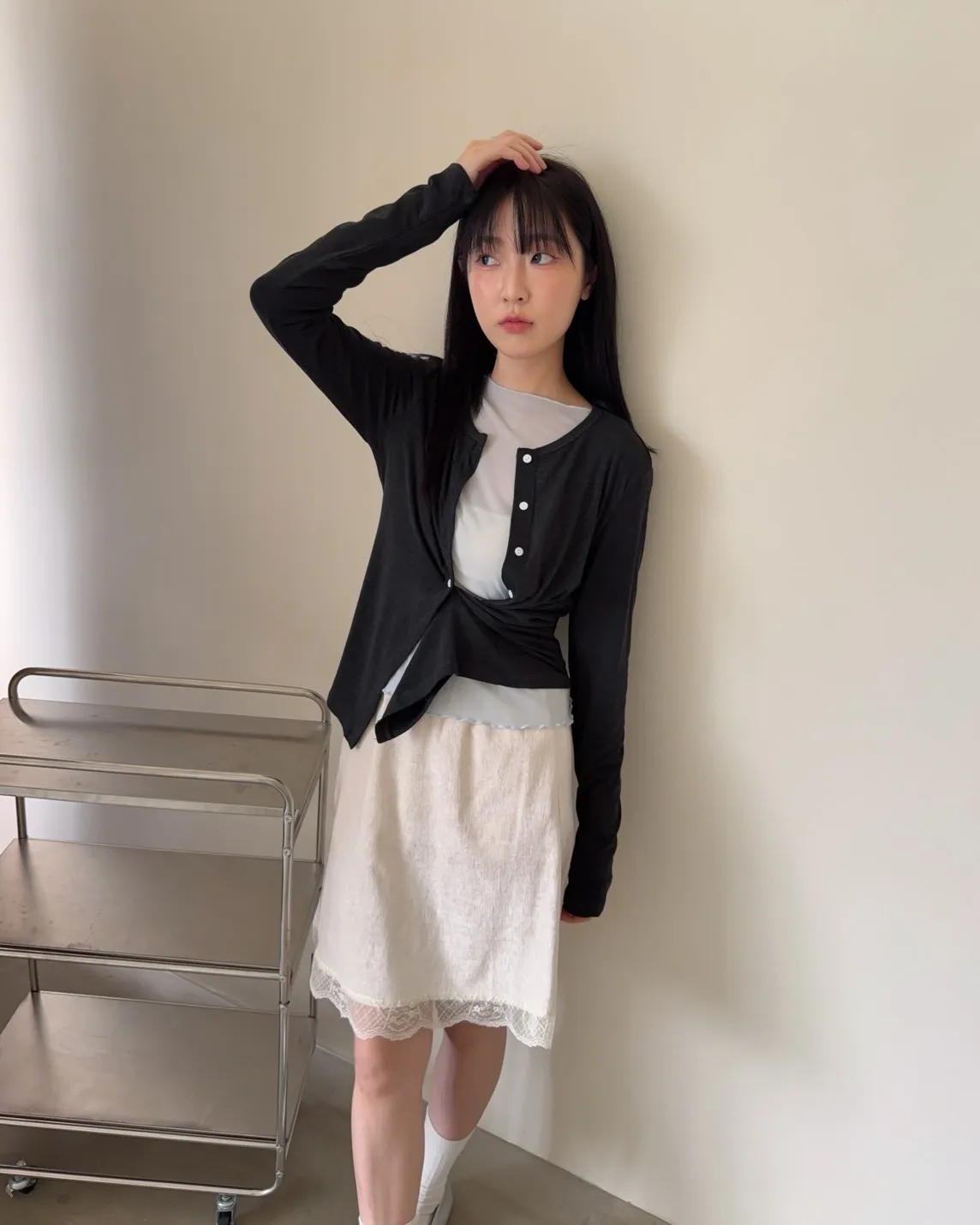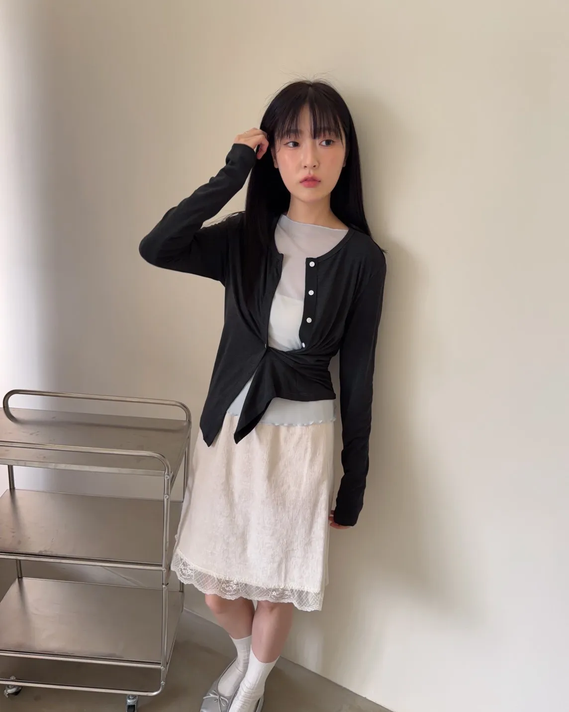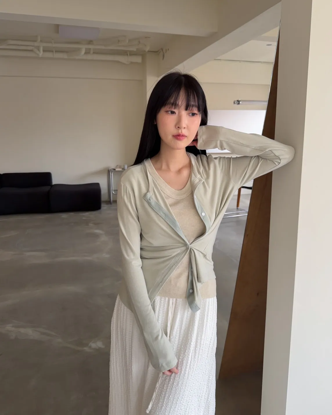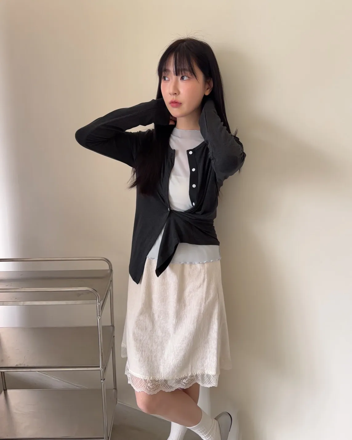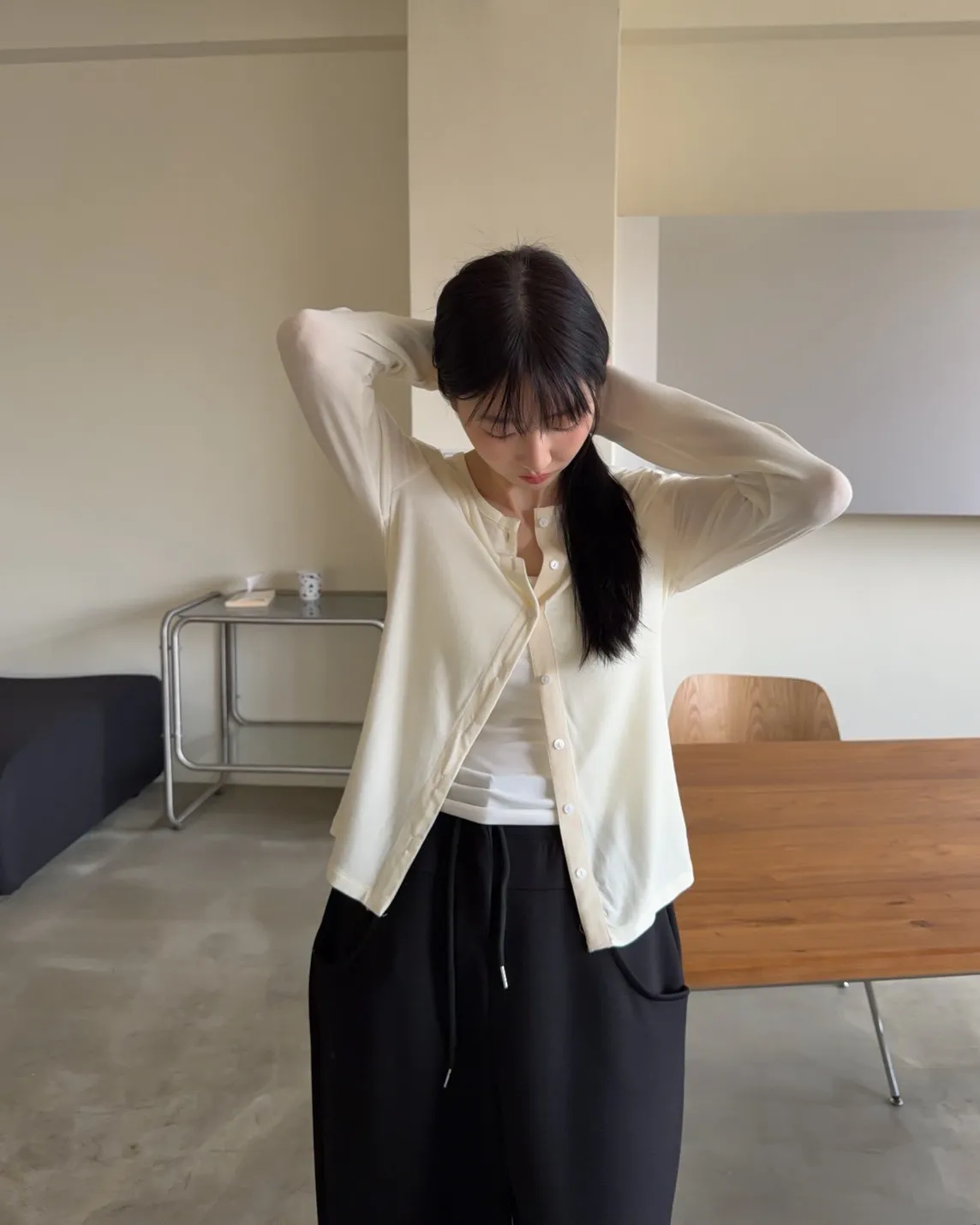 低飽和色系 排扣 薄透 彈性很好很親膚 單側鈕扣可做造型