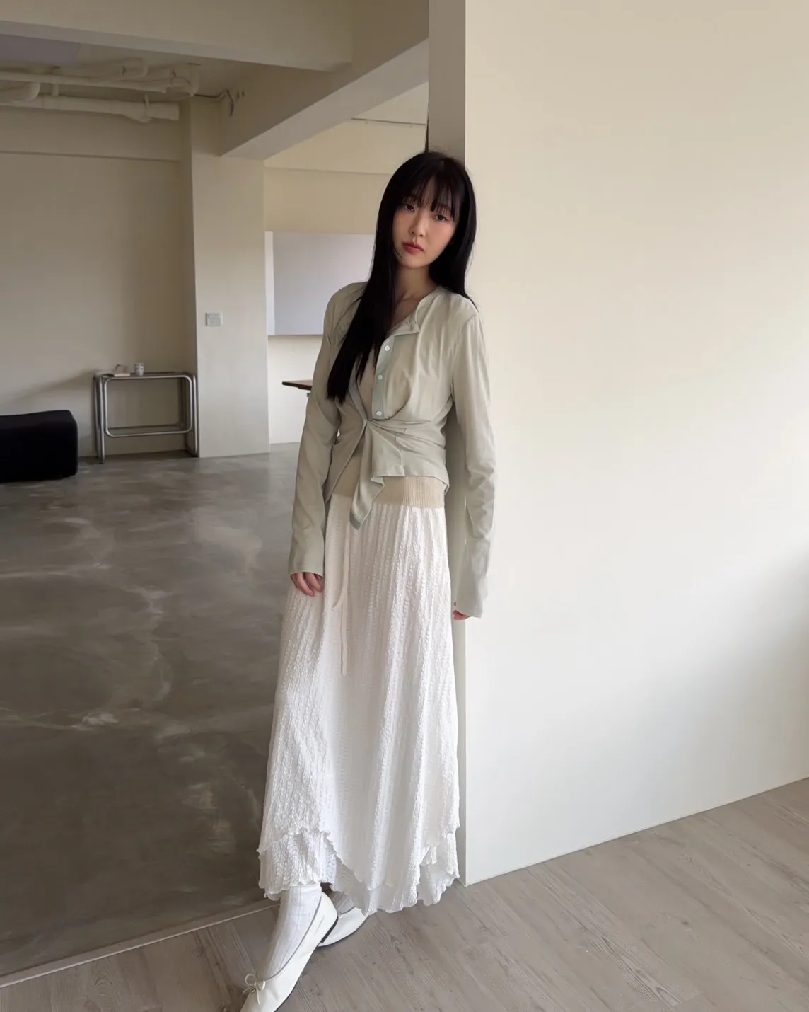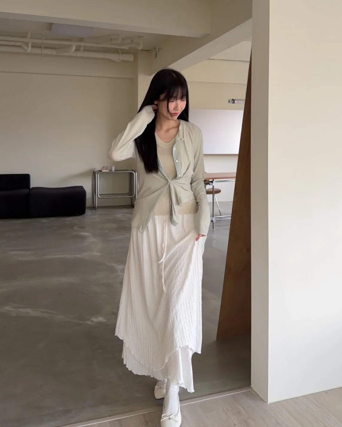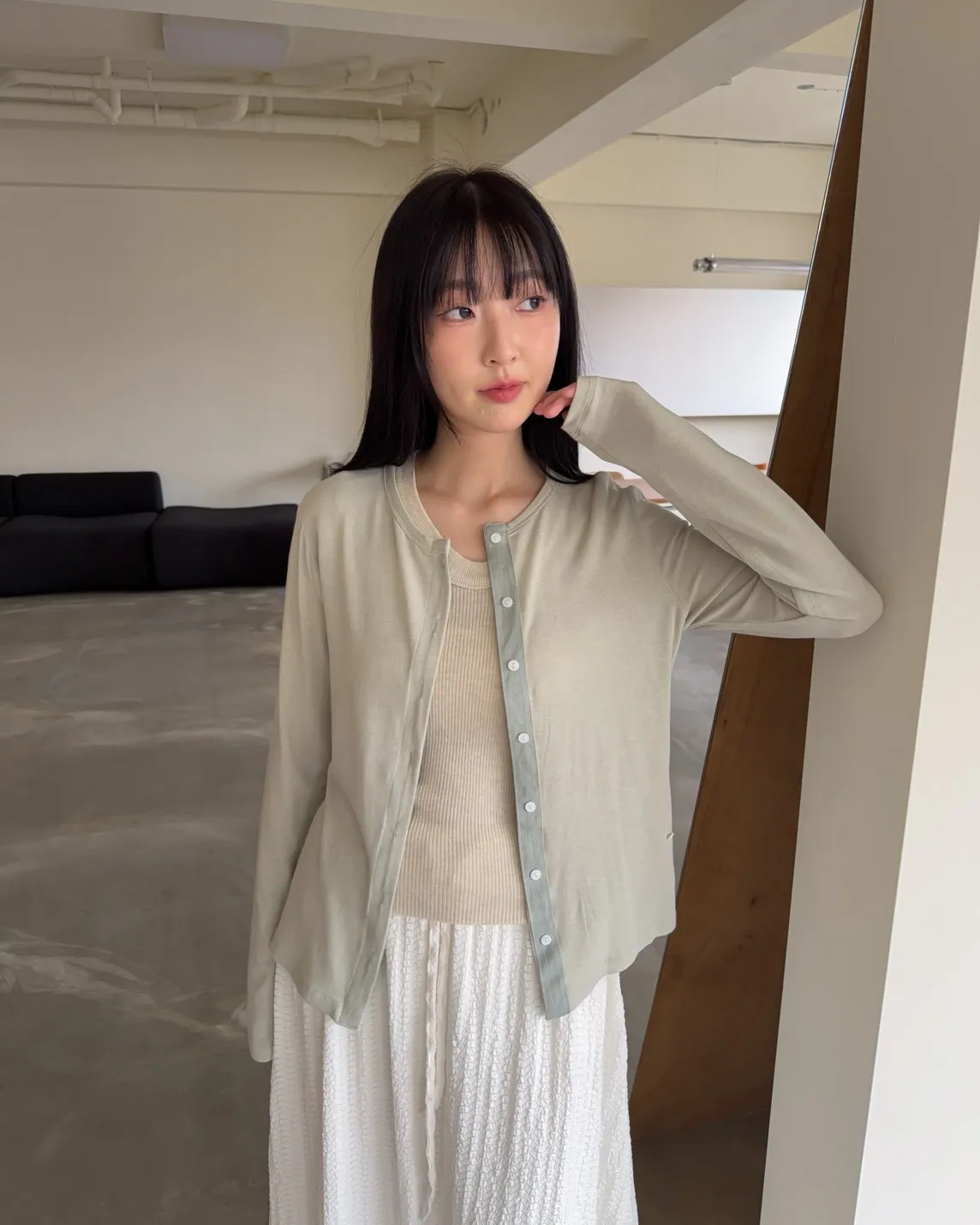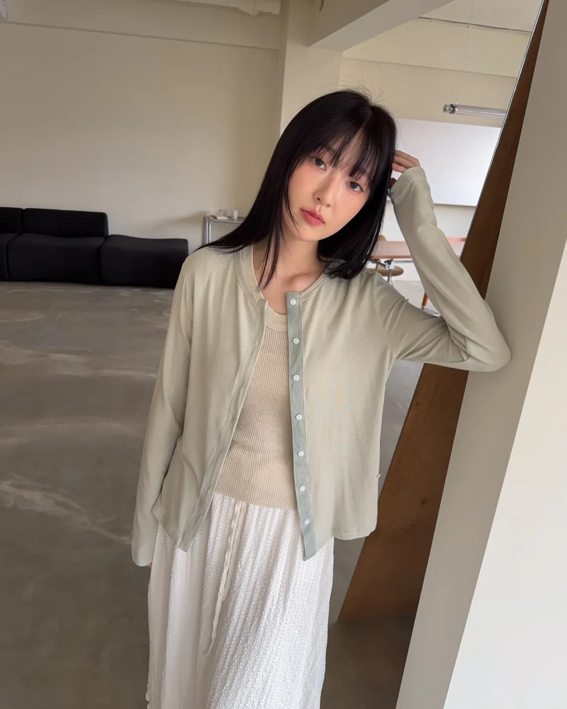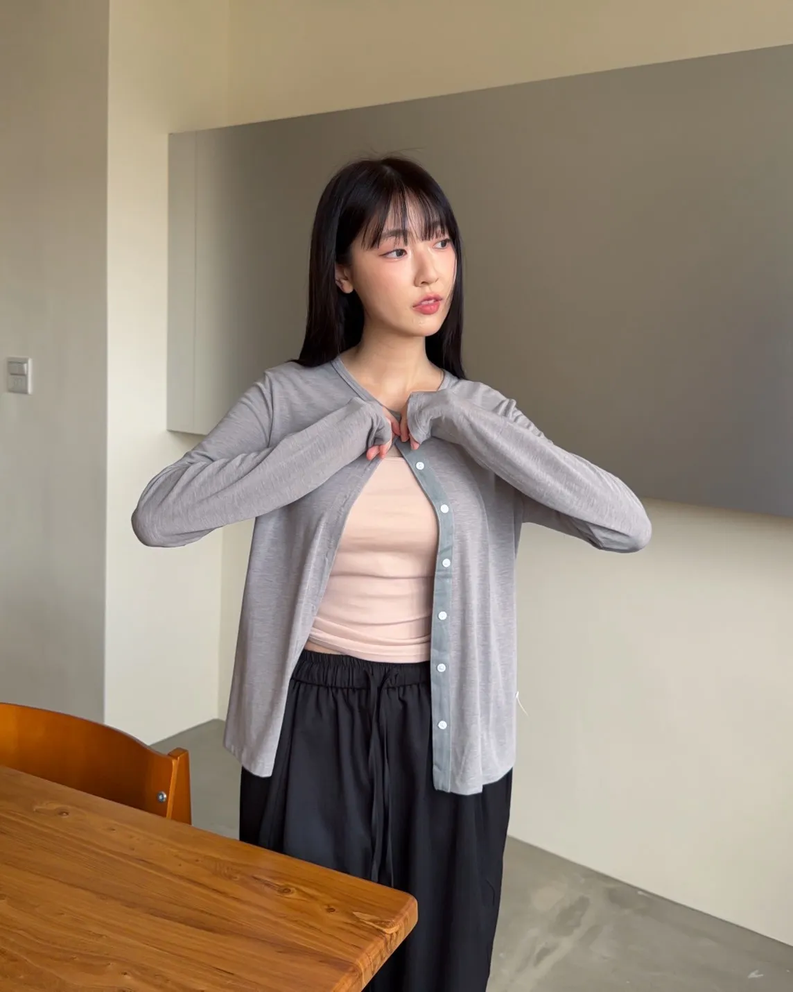A0033(五色)春日顏色薄透排釦衫(米/綠/粉紅/灰/黑灰)