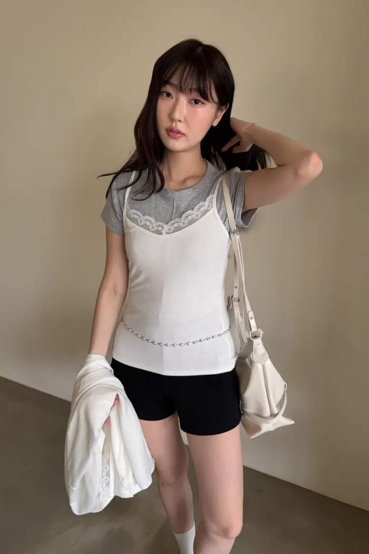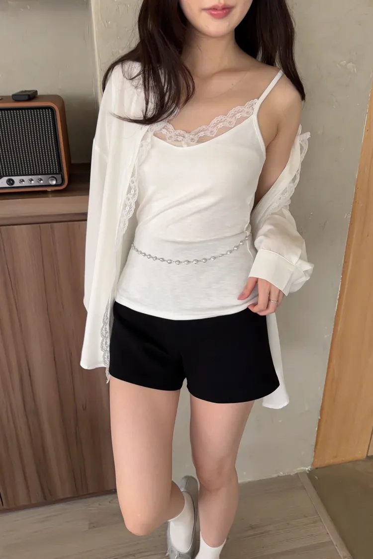 小背心-肩帶可調 薄棉彈性好 修身剪裁 領口寬蕾絲滾邊