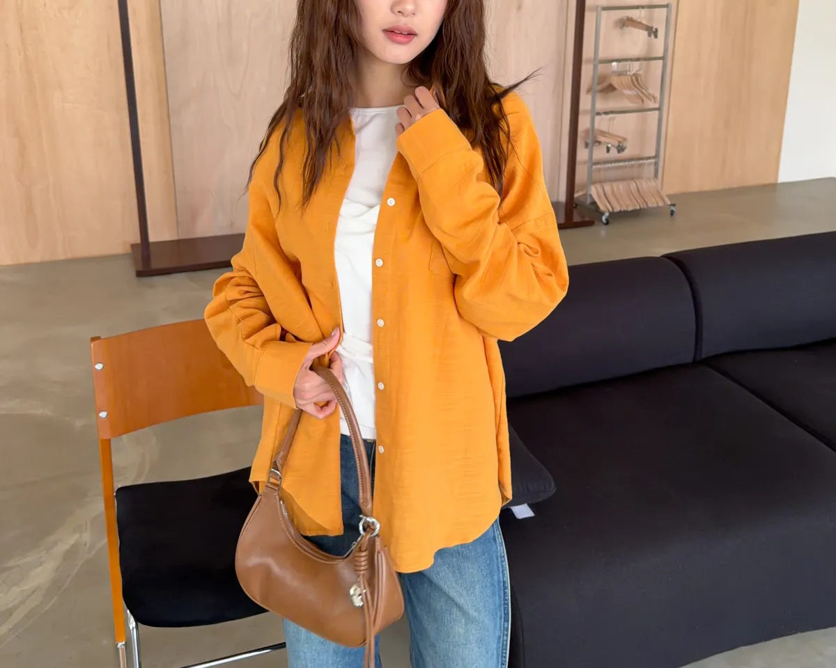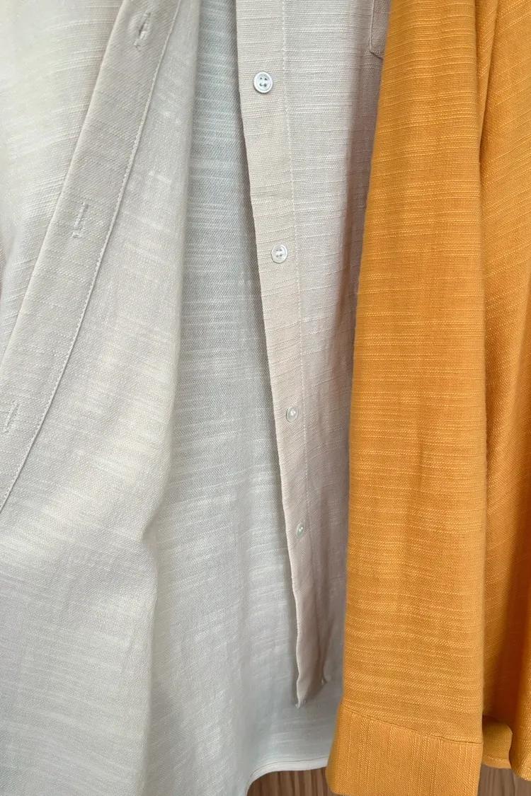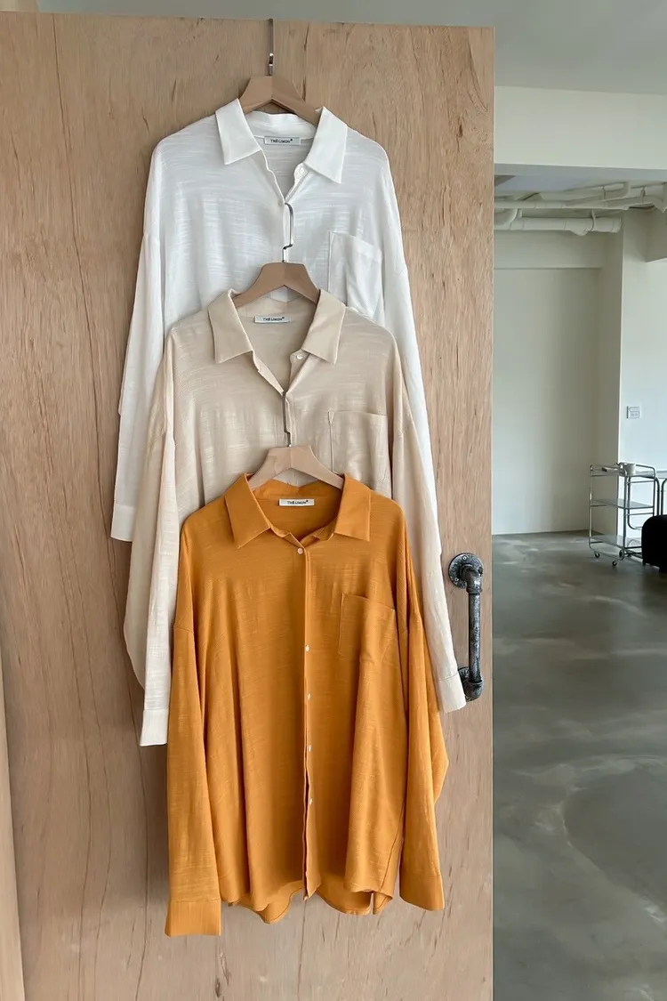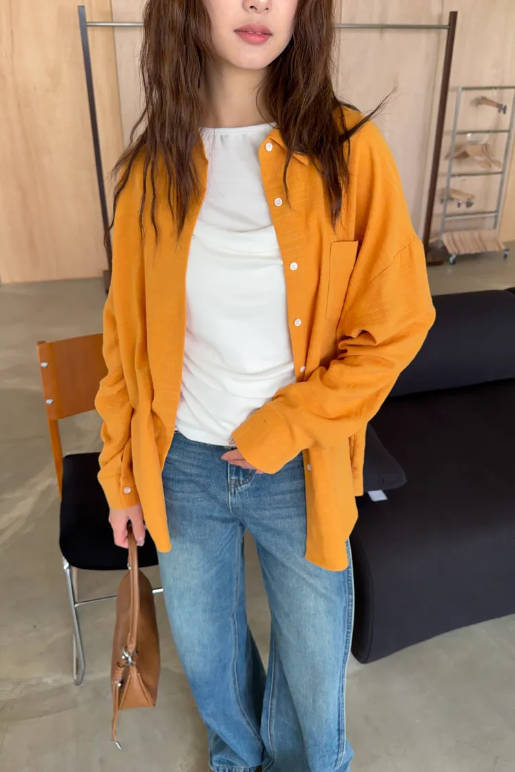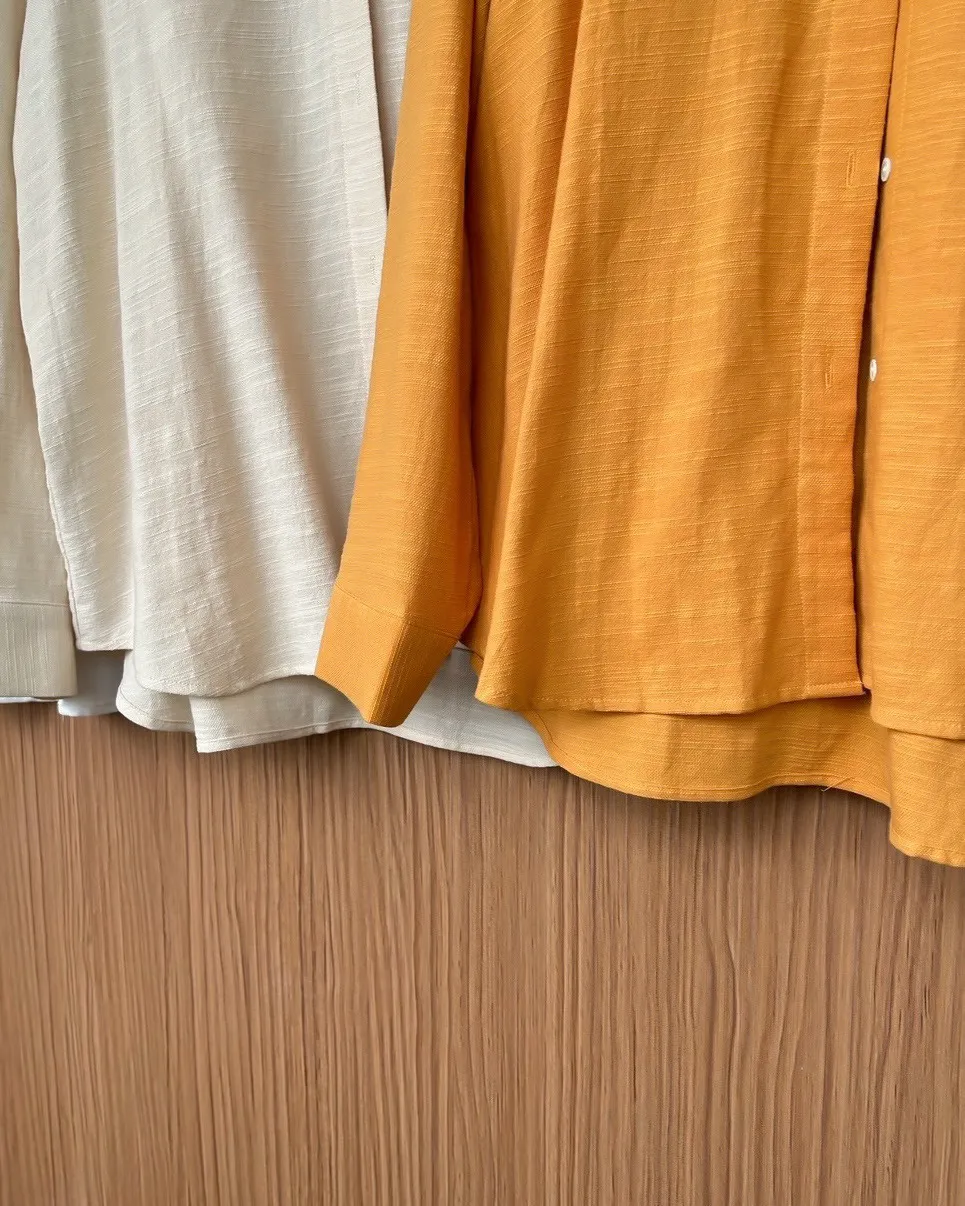 B0026走呀度假去~寬鬆棉麻襯衫(白/杏/橘)