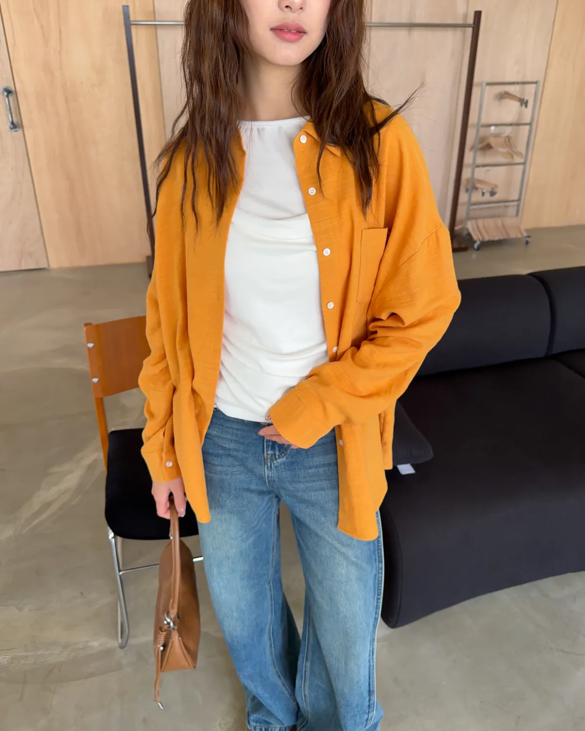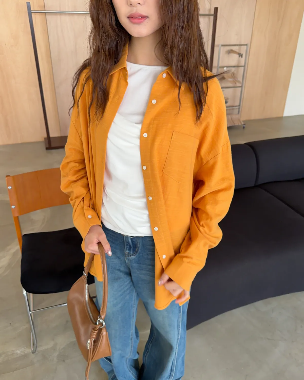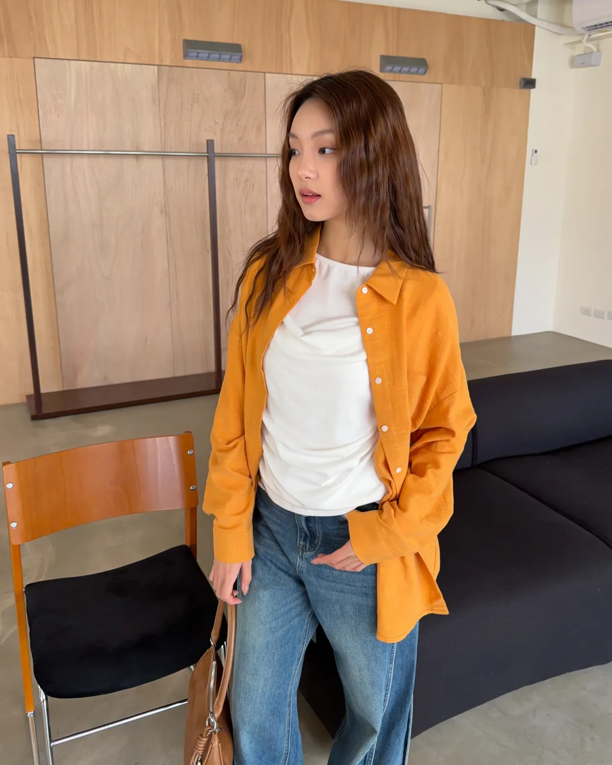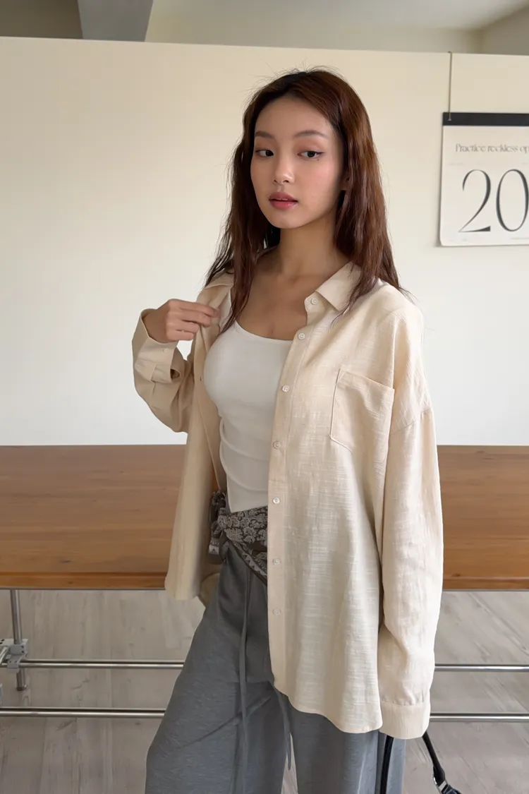 B0026走呀度假去~寬鬆棉麻襯衫(白/杏/橘)