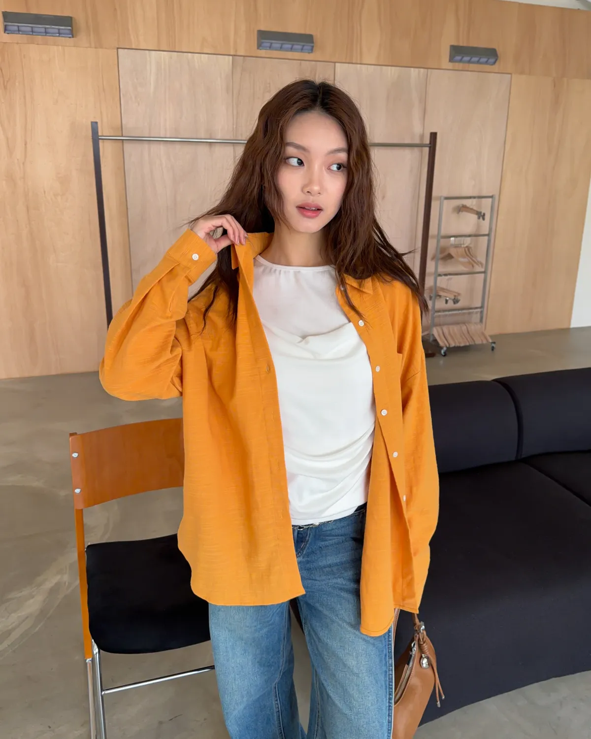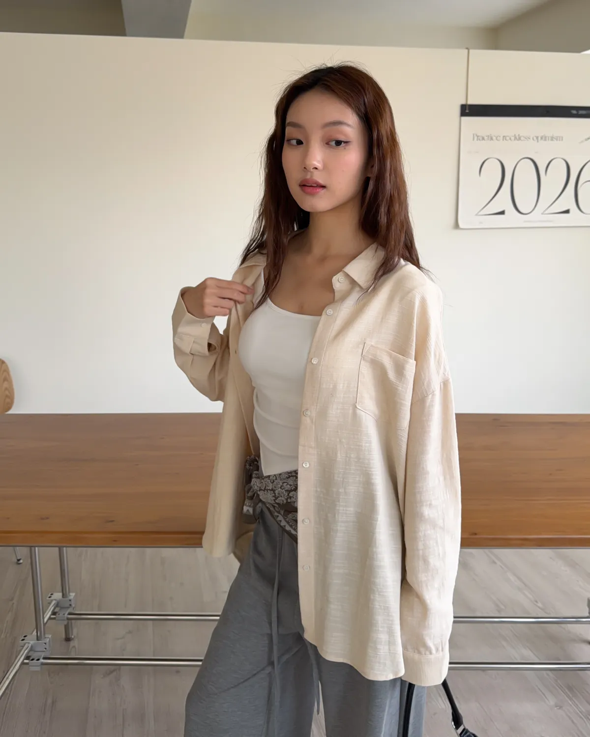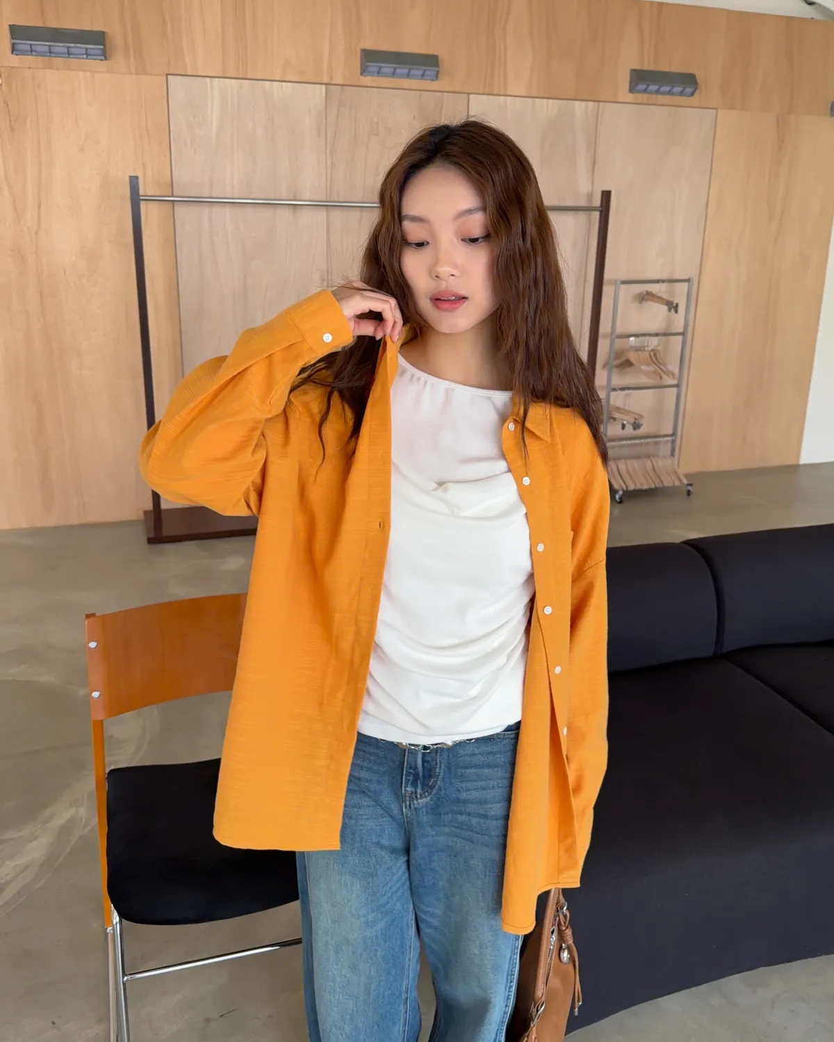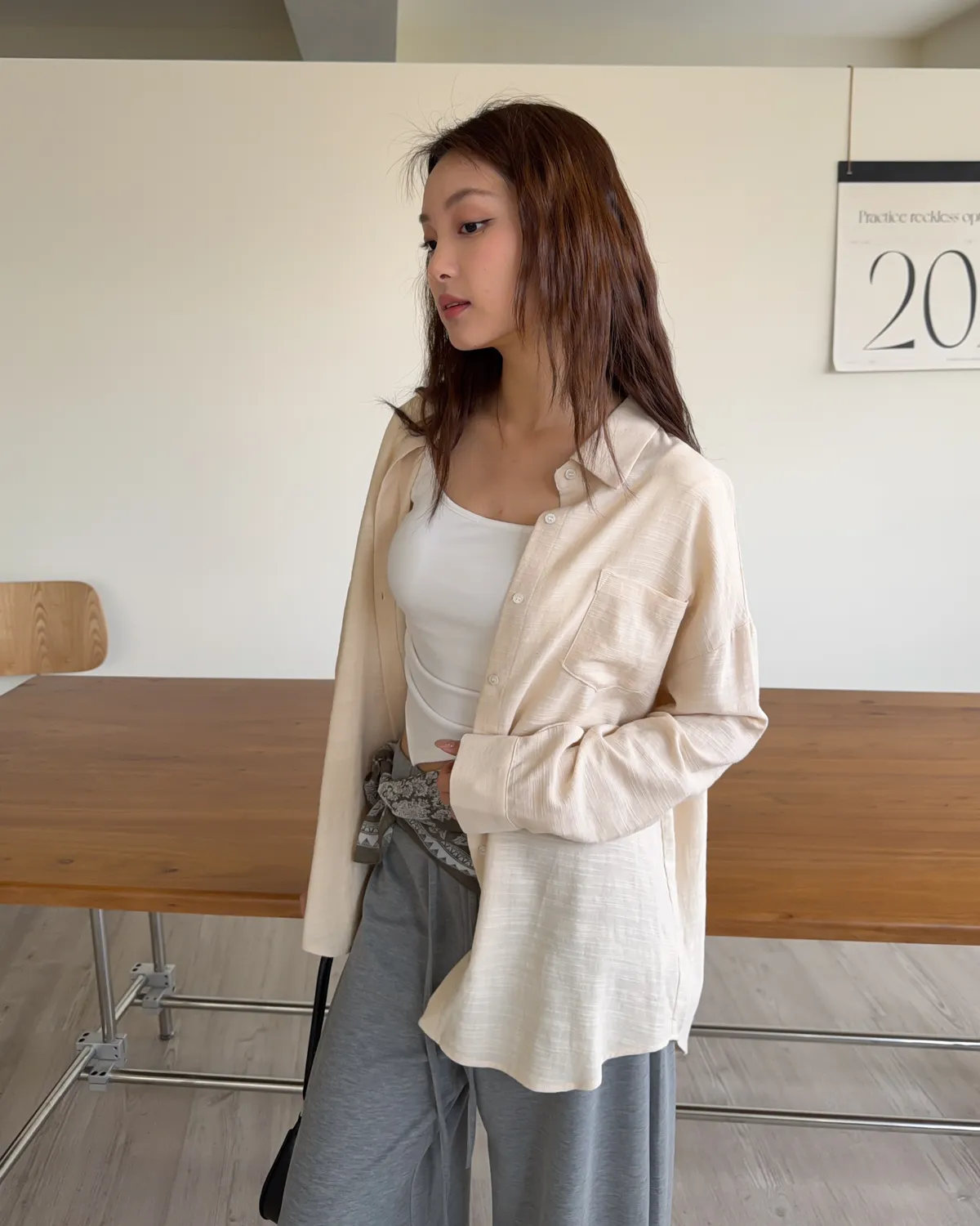 B0026走呀度假去~寬鬆棉麻襯衫(白/杏/橘)