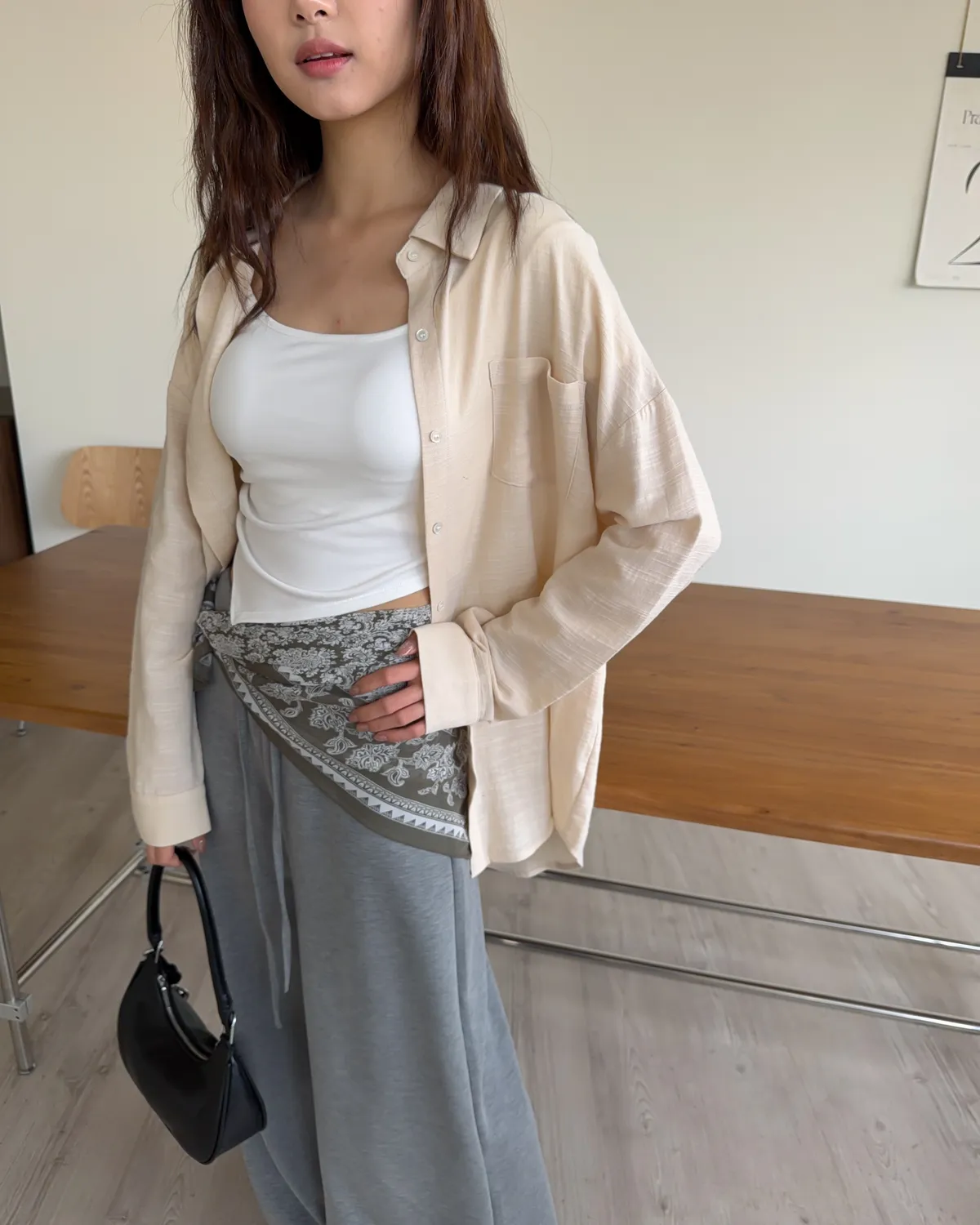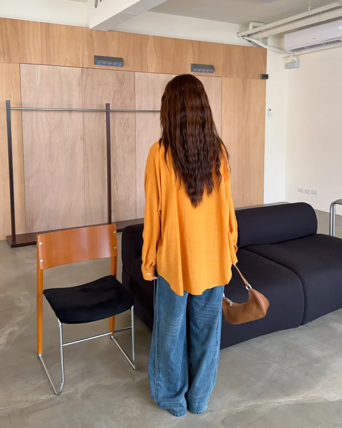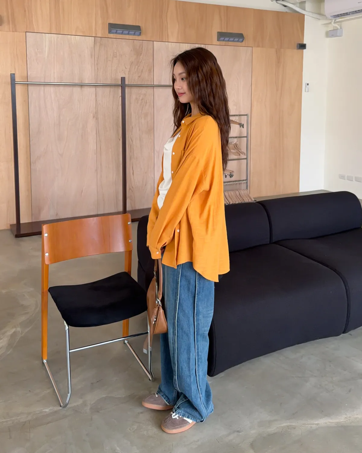 棉麻布料 寬鬆落肩 前短後長 暖色調