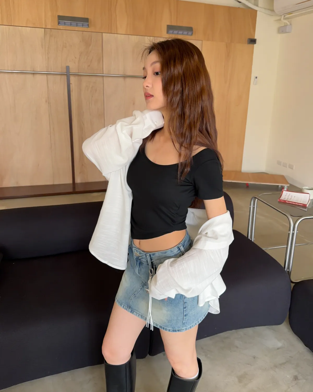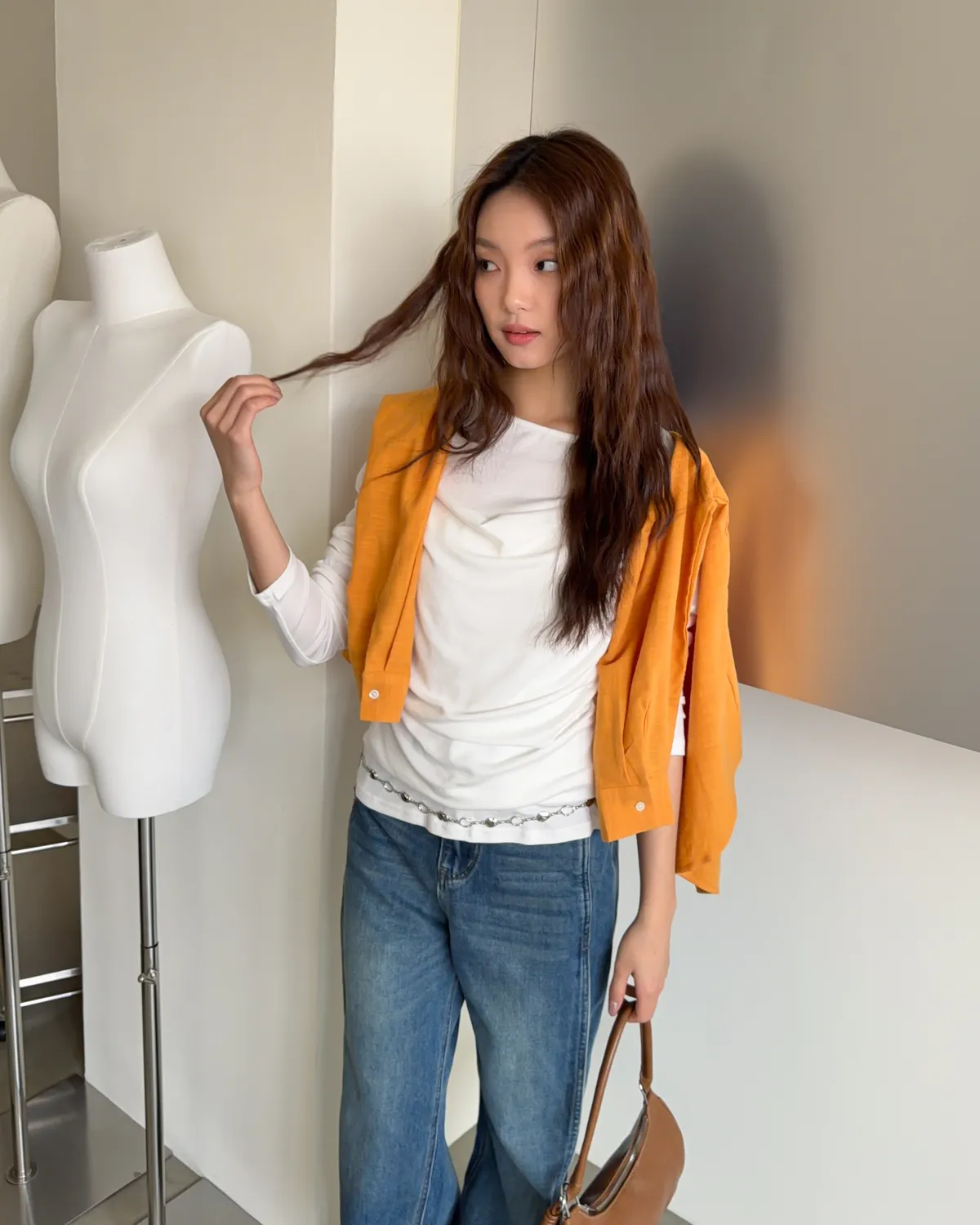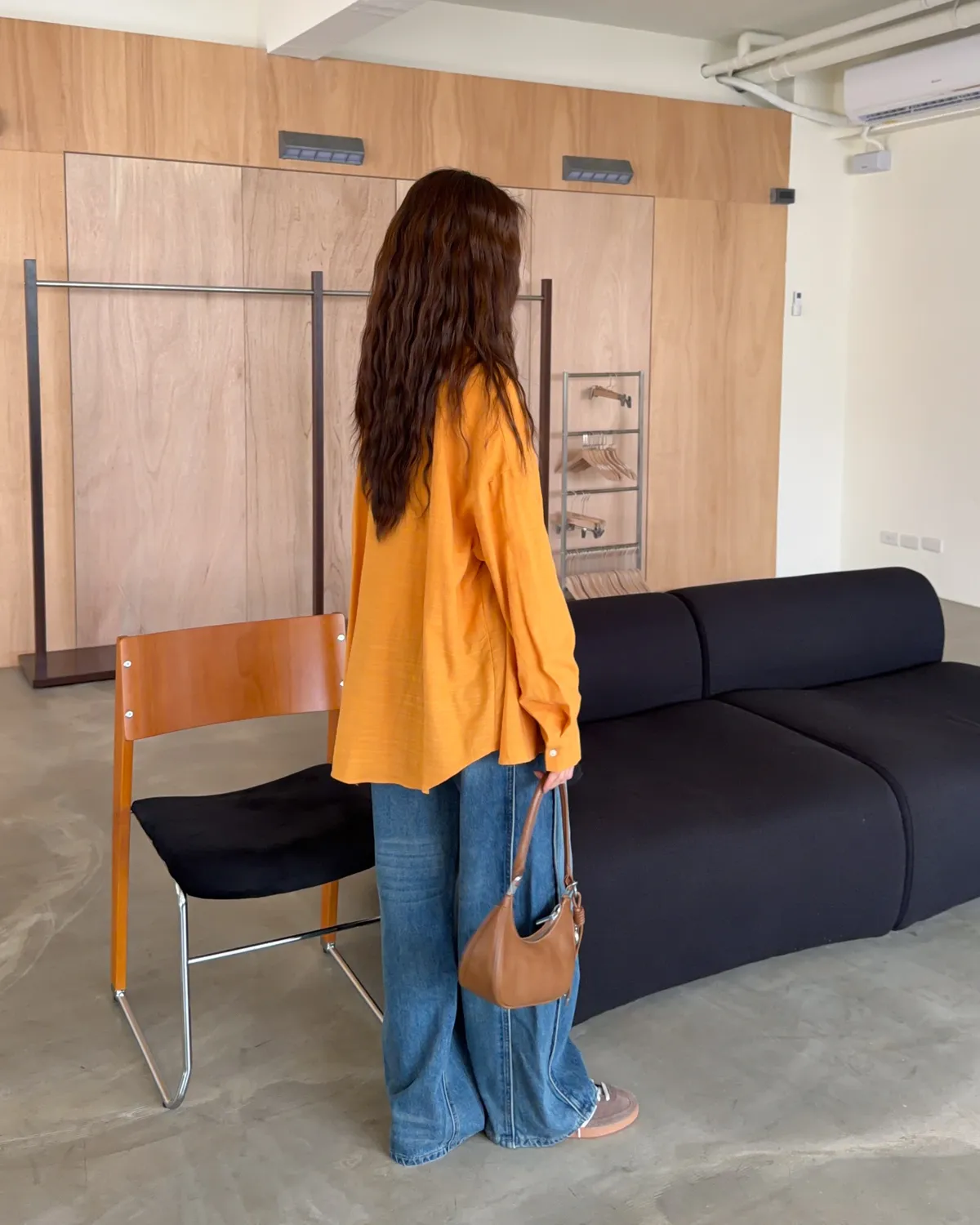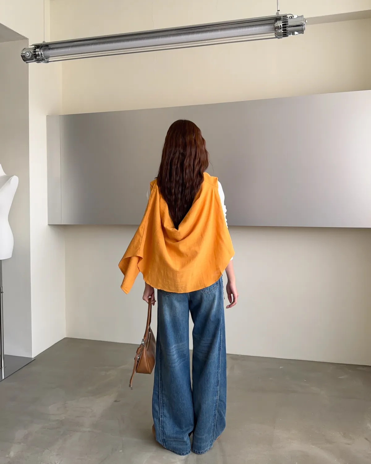 棉麻布料 寬鬆落肩 前短後長 暖色調