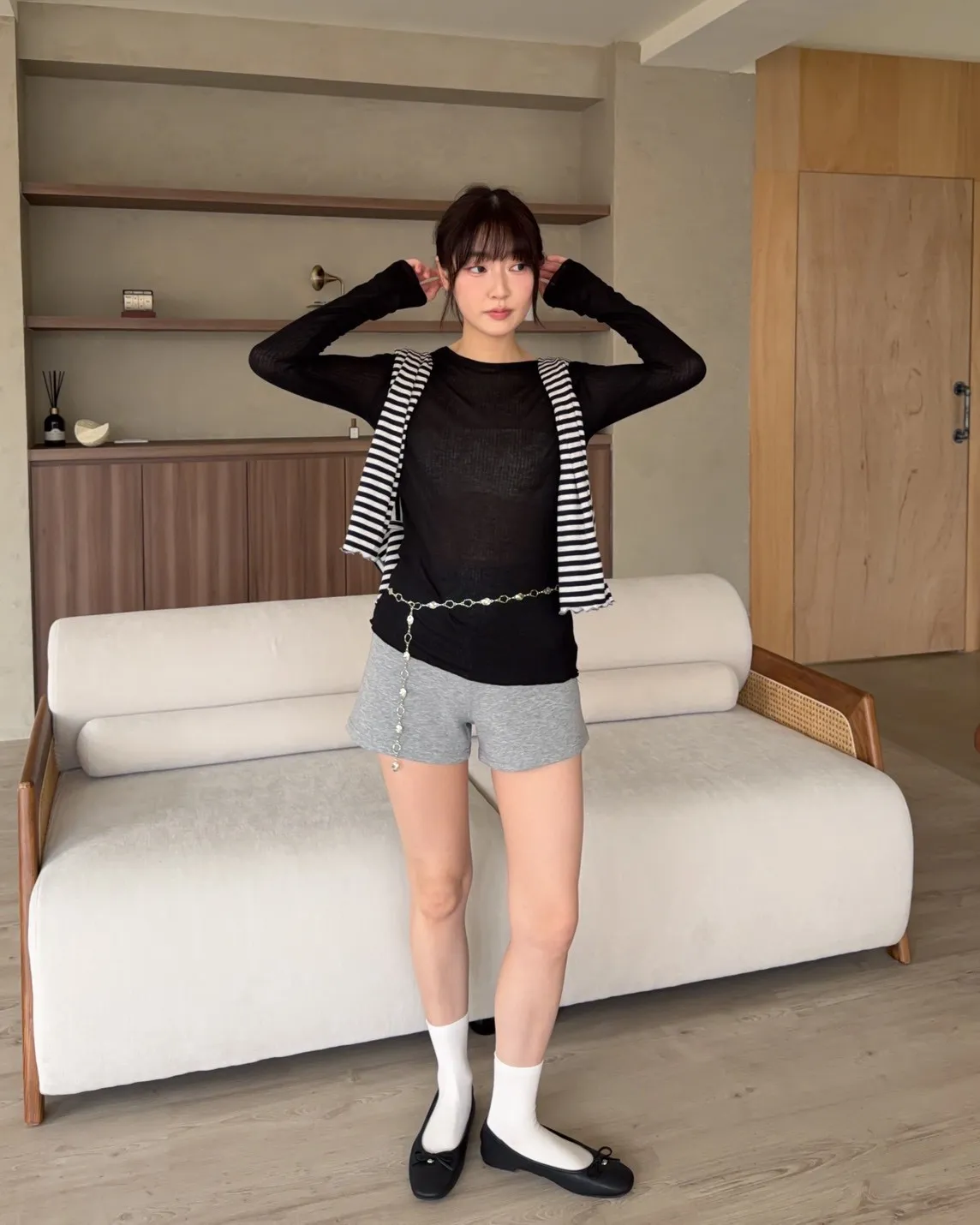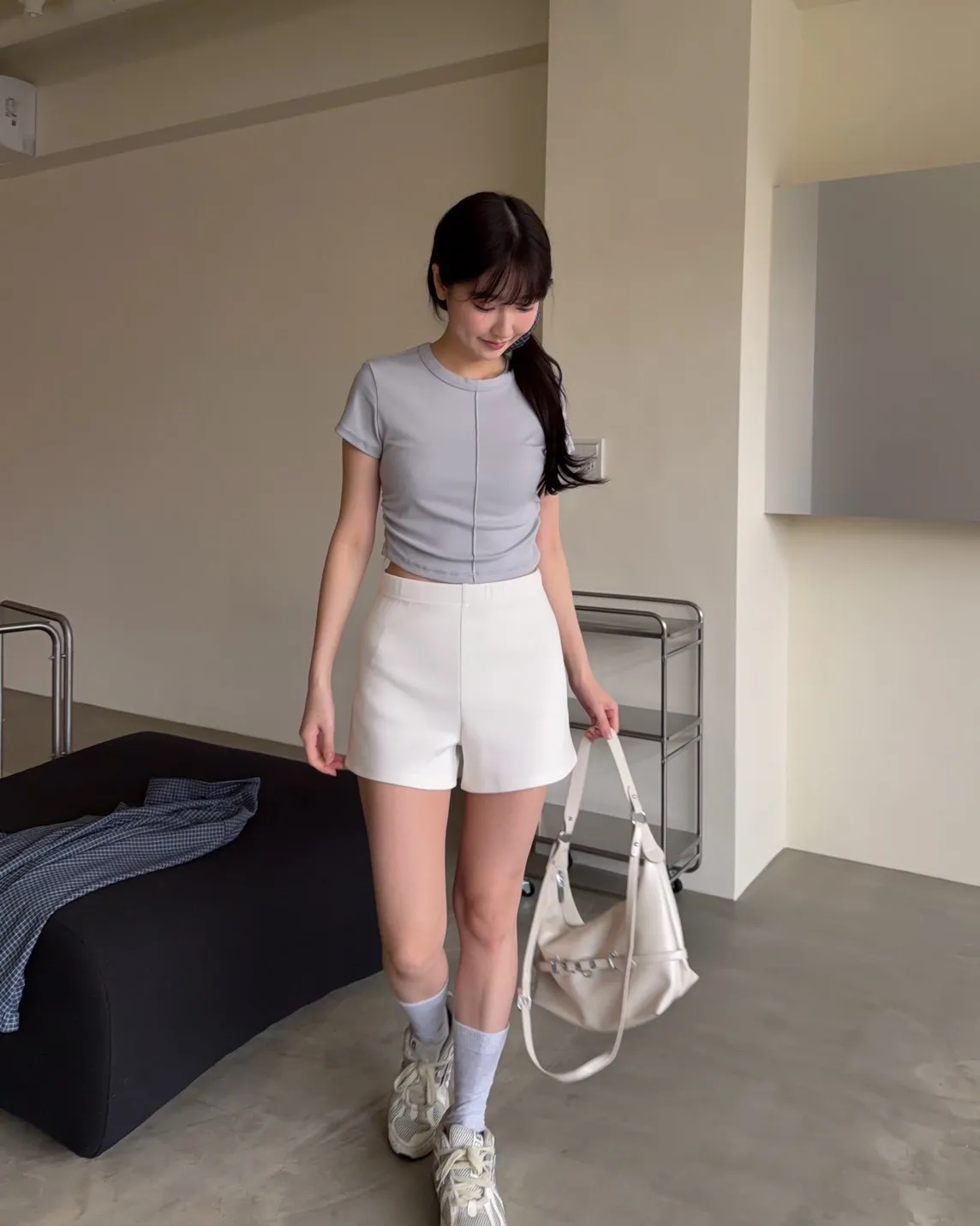 B0012修修圖太空棉短褲(白/灰/黑)