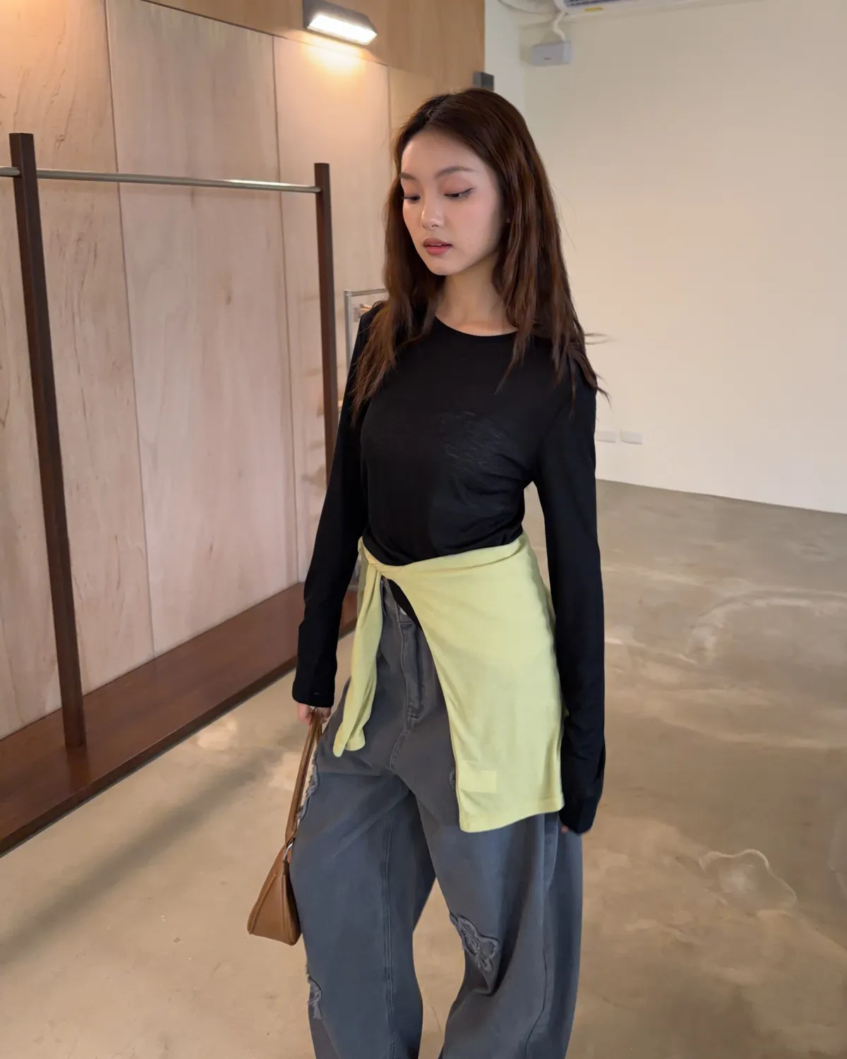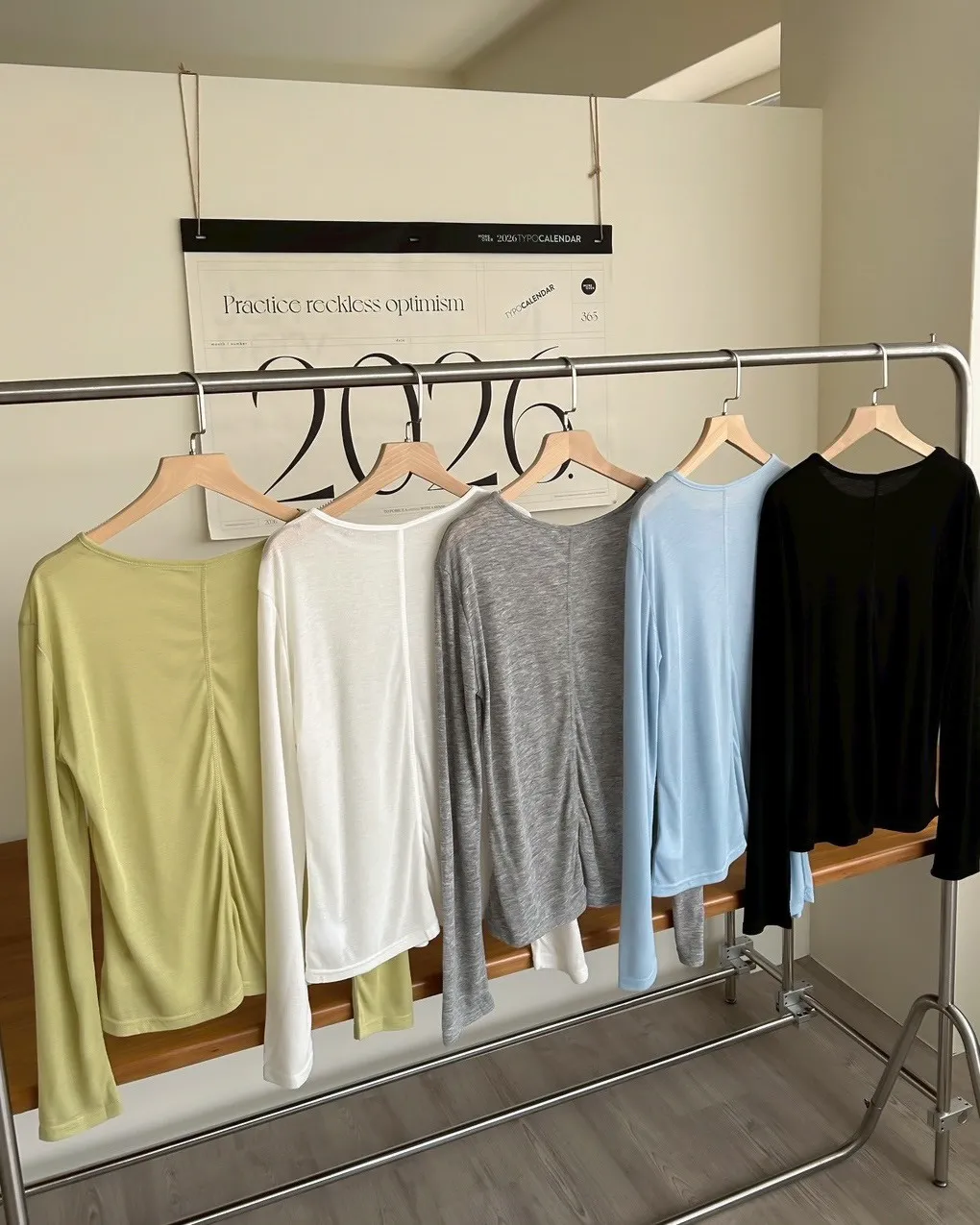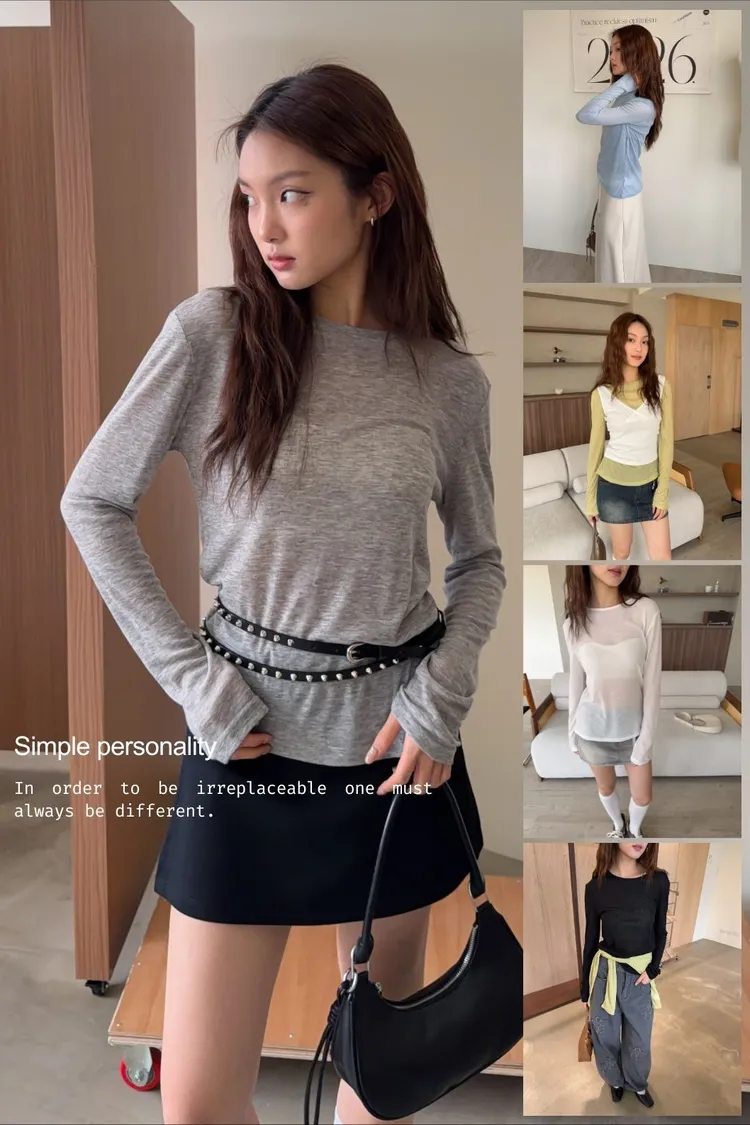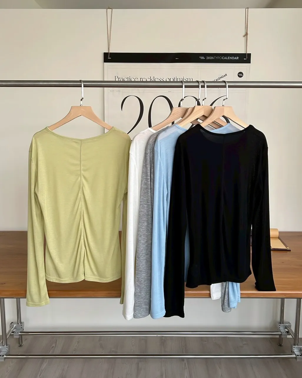 B0041(五色)顏色好看!後中線薄上衣(售完不補)(白/藍/黃綠/灰/黑)