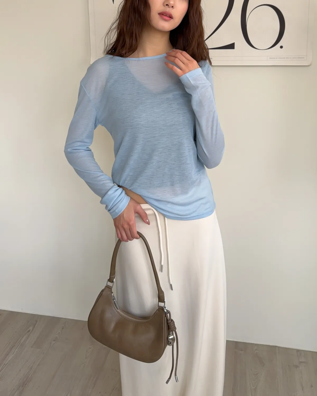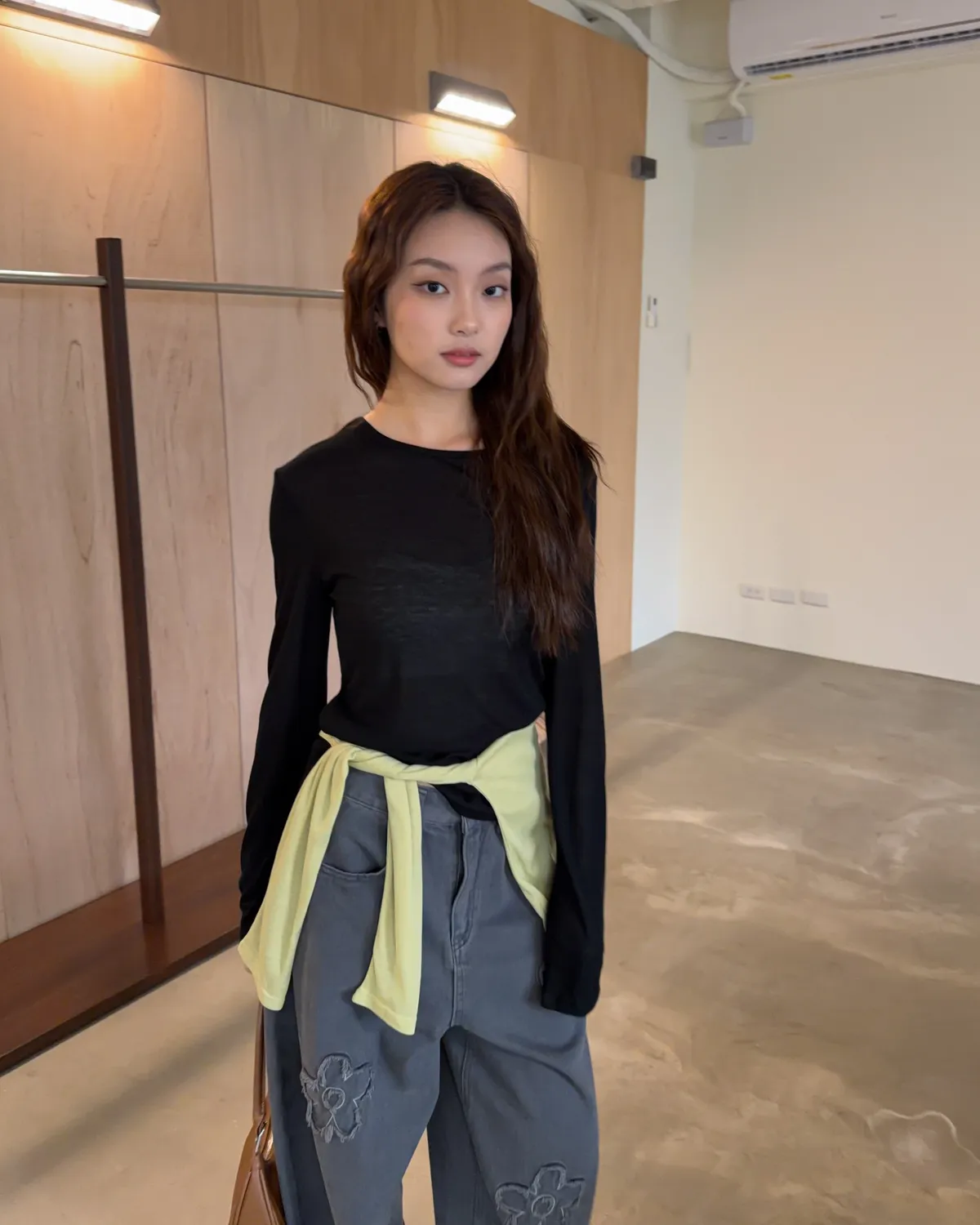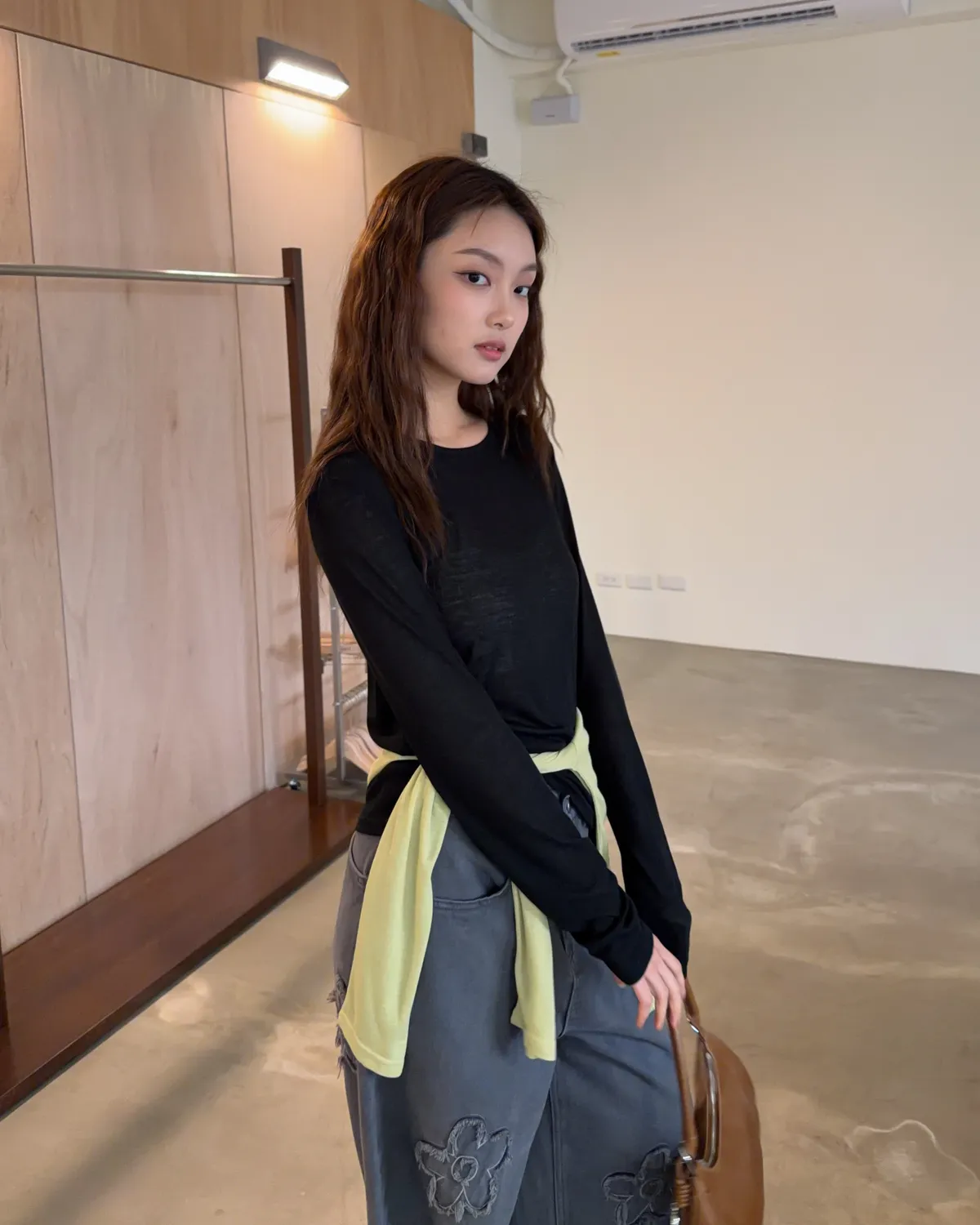 B0041(五色)顏色好看!後中線薄上衣(售完不補)(白/藍/黃綠/灰/黑)