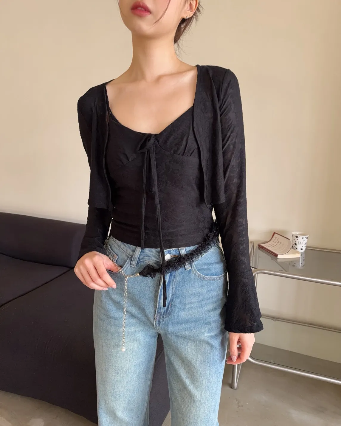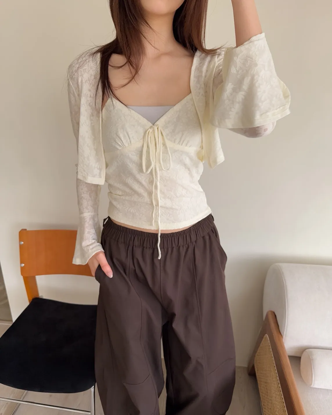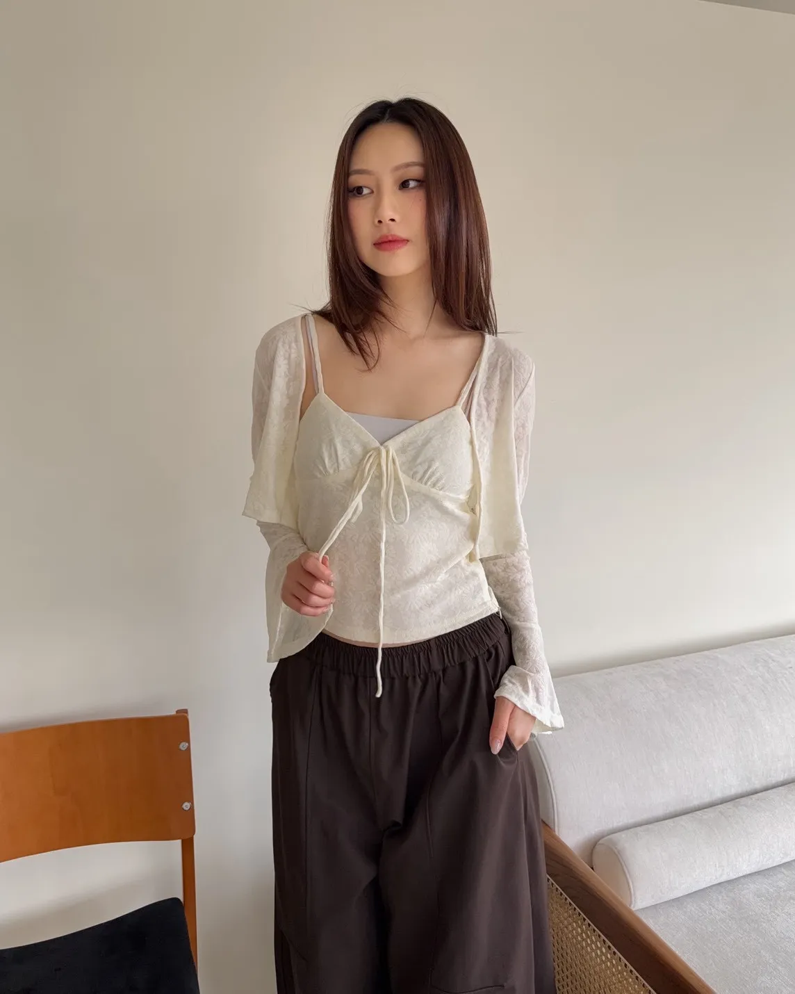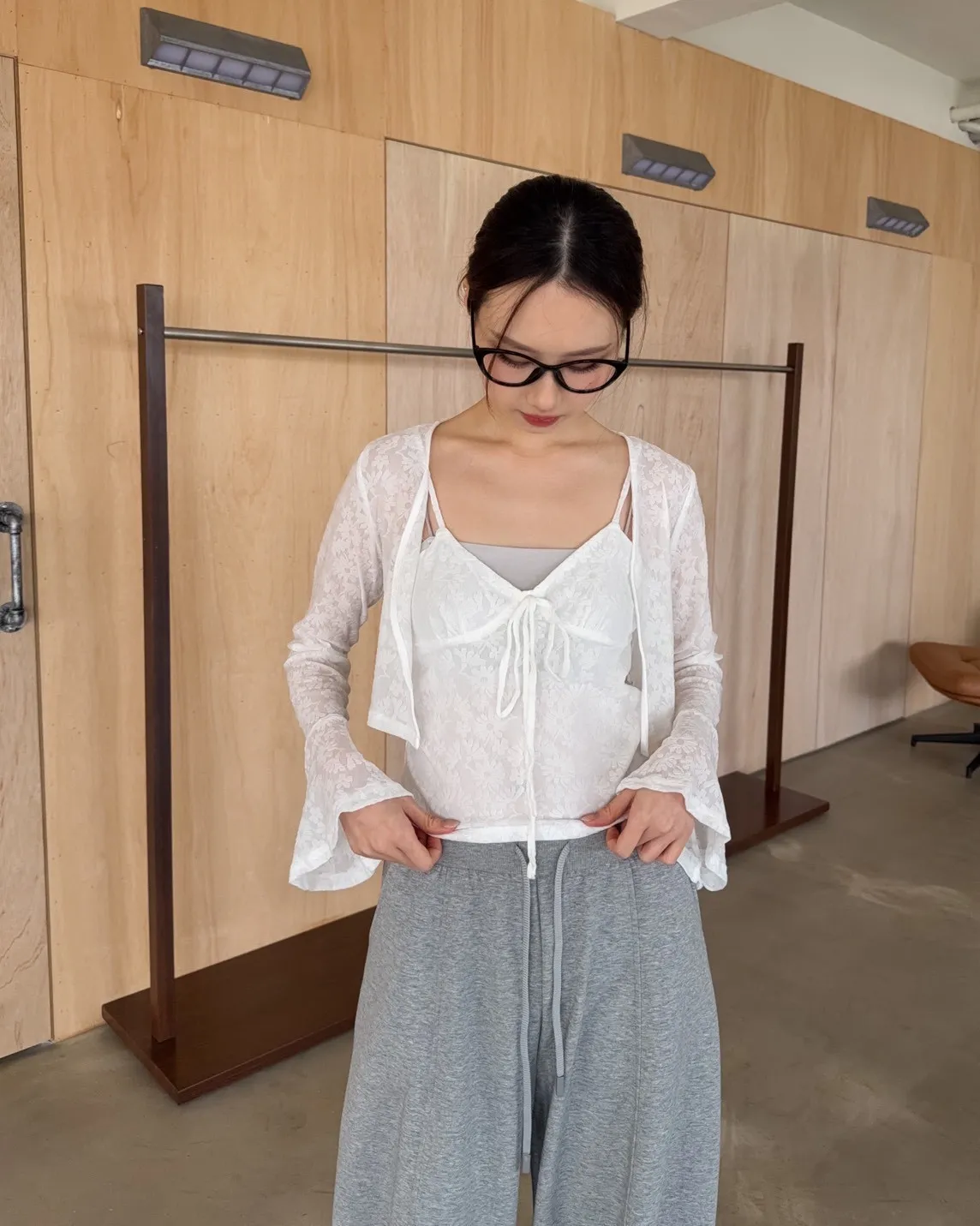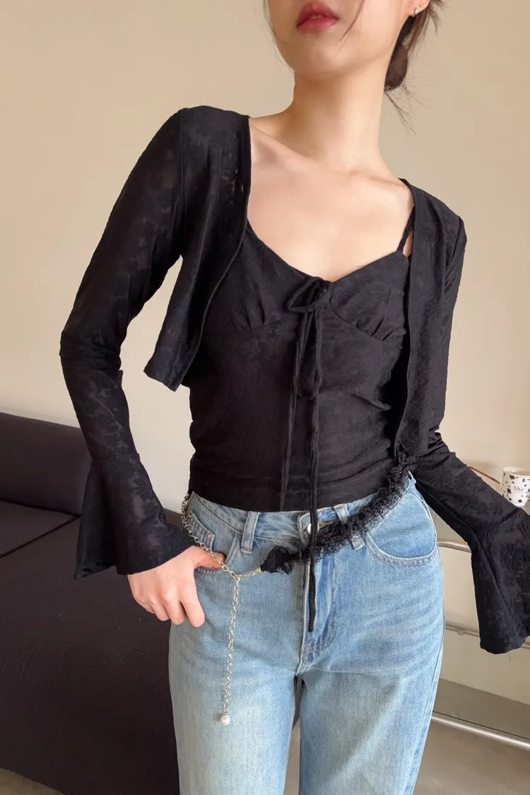 A0001(SET)心花開小背心+短版喇叭袖外套(白/米/黑)