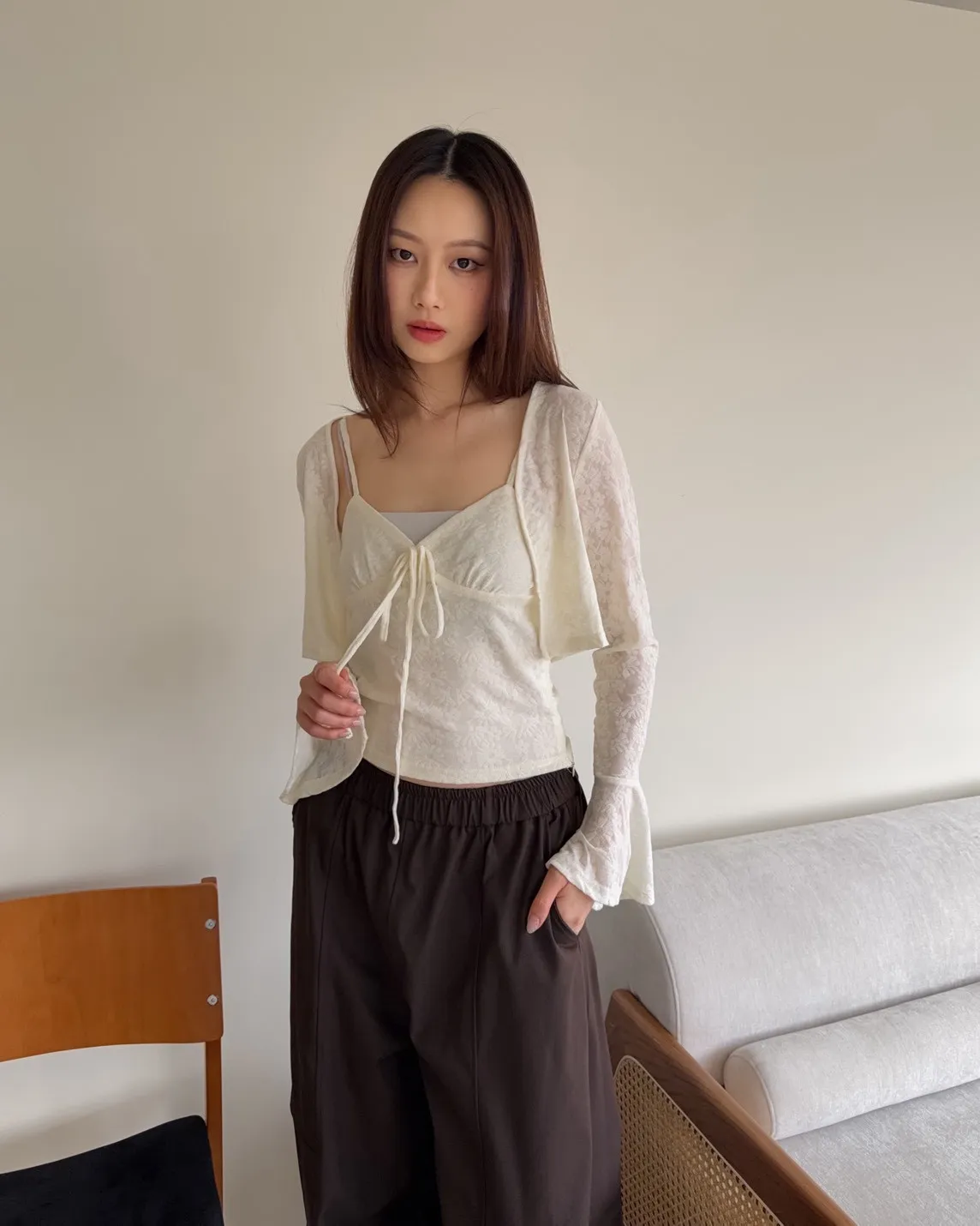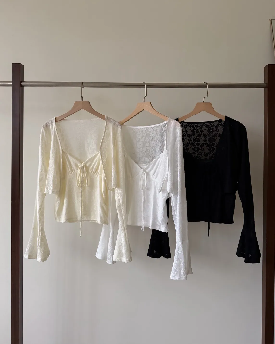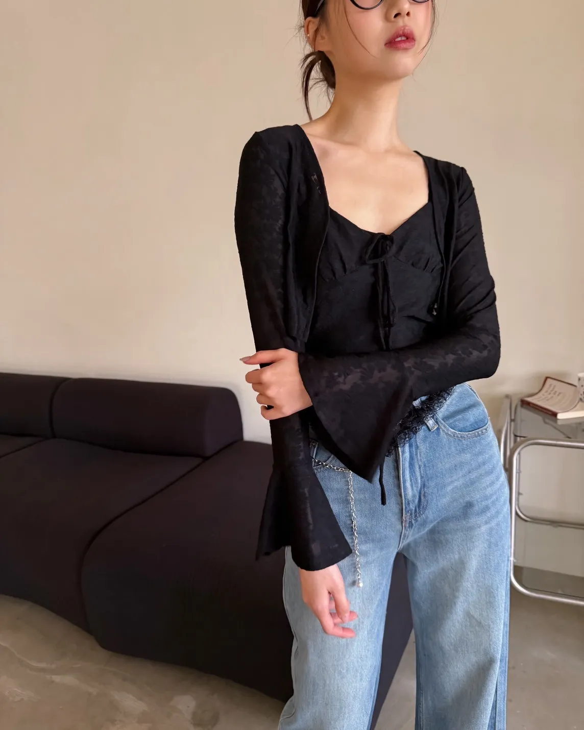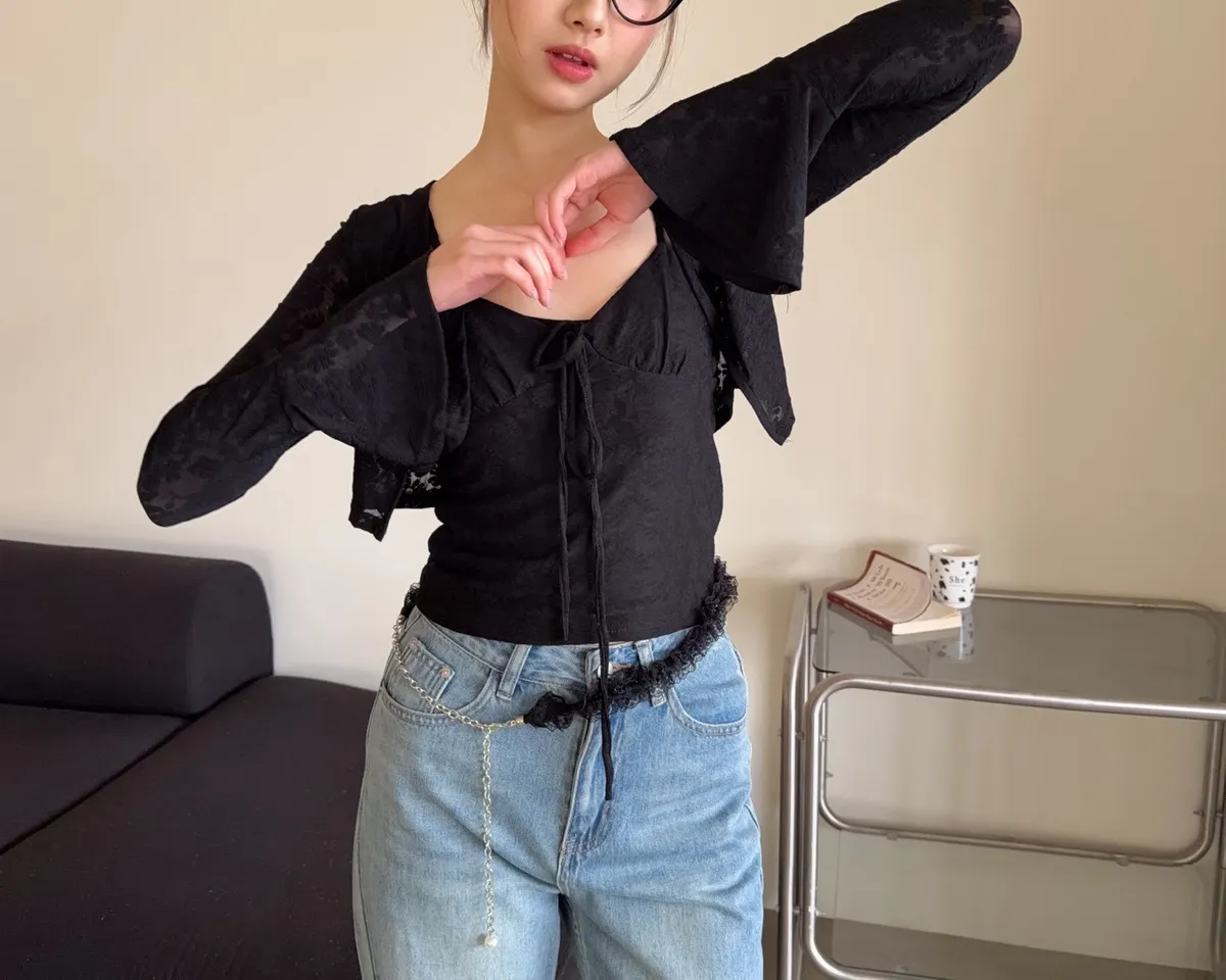 A0001(SET)心花開小背心+短版喇叭袖外套(白/米/黑)