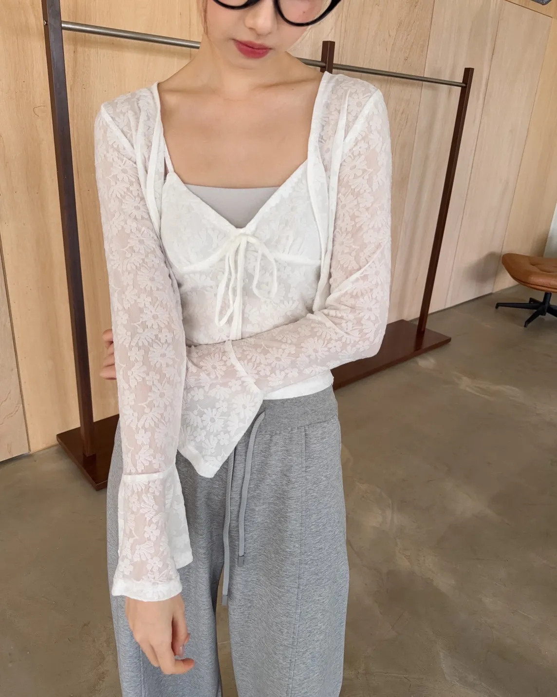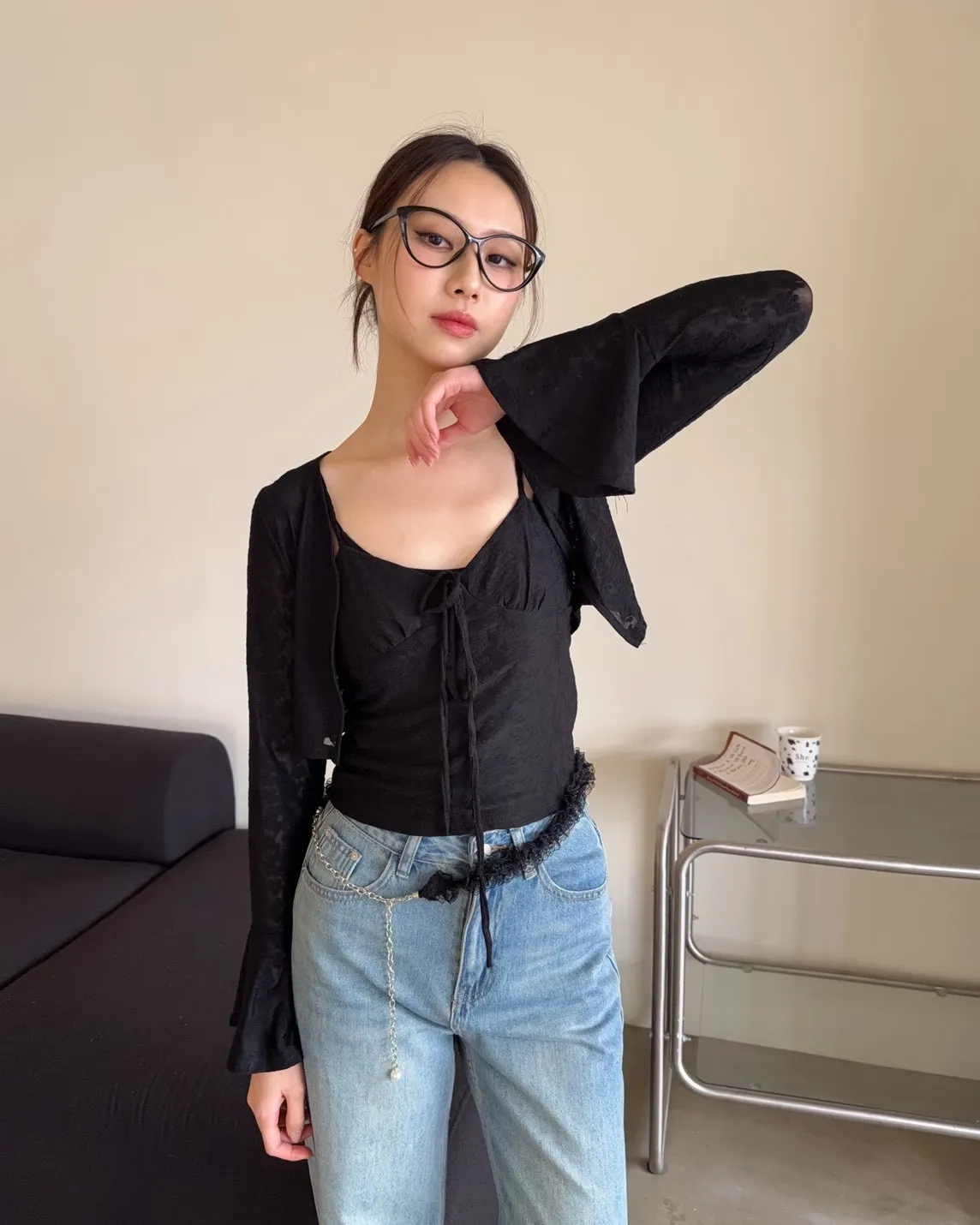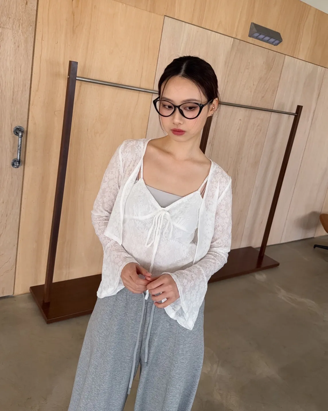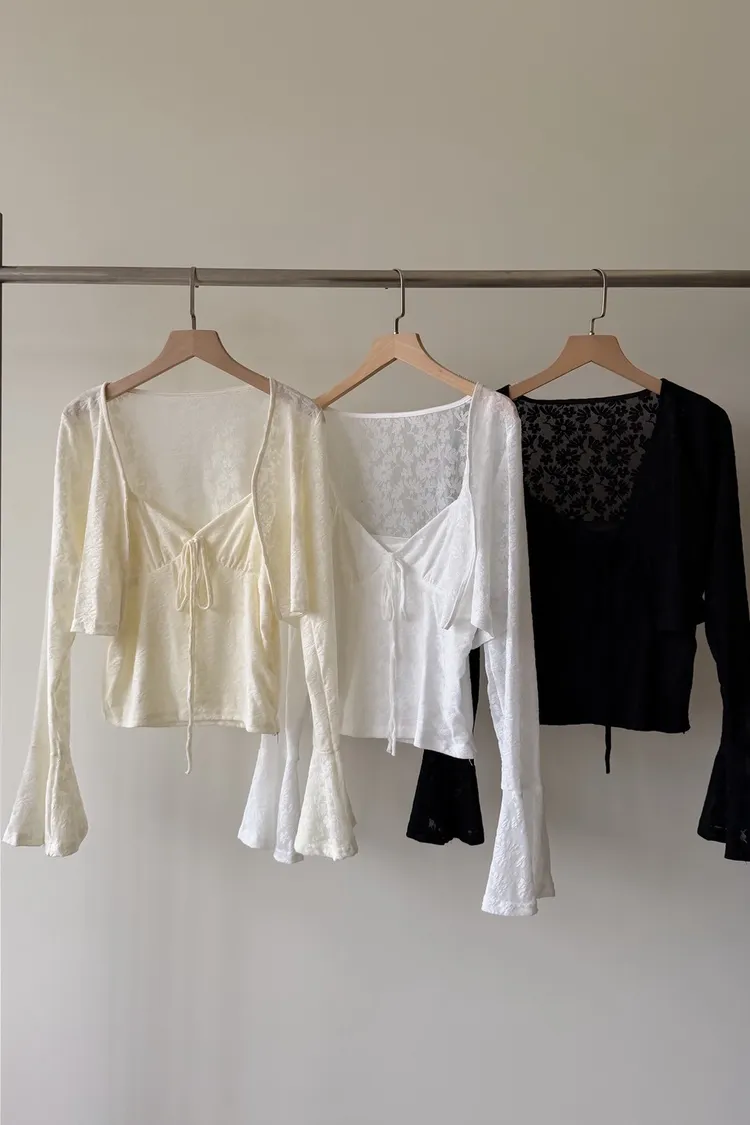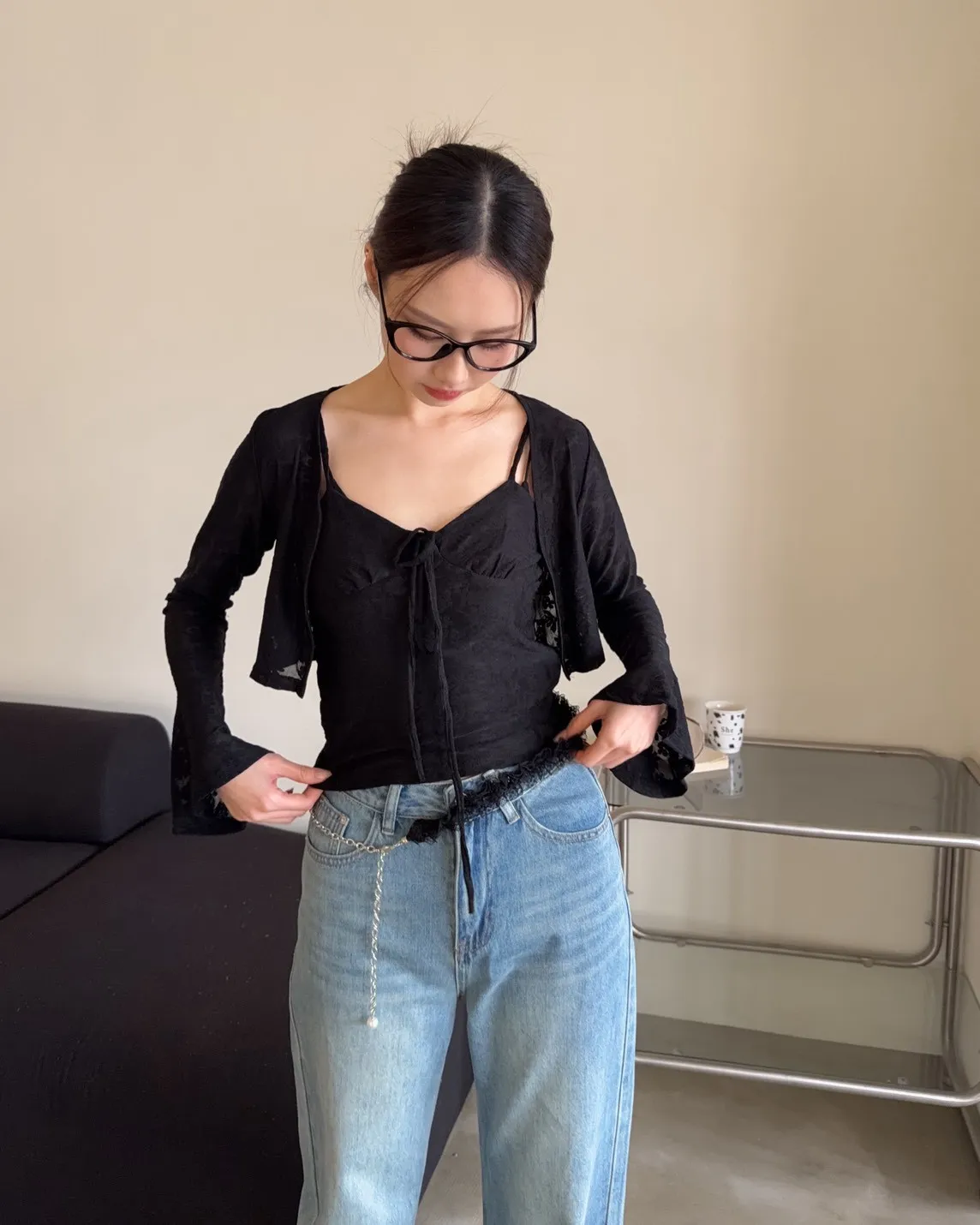 A0001(SET)心花開小背心+短版喇叭袖外套(白/米/黑)