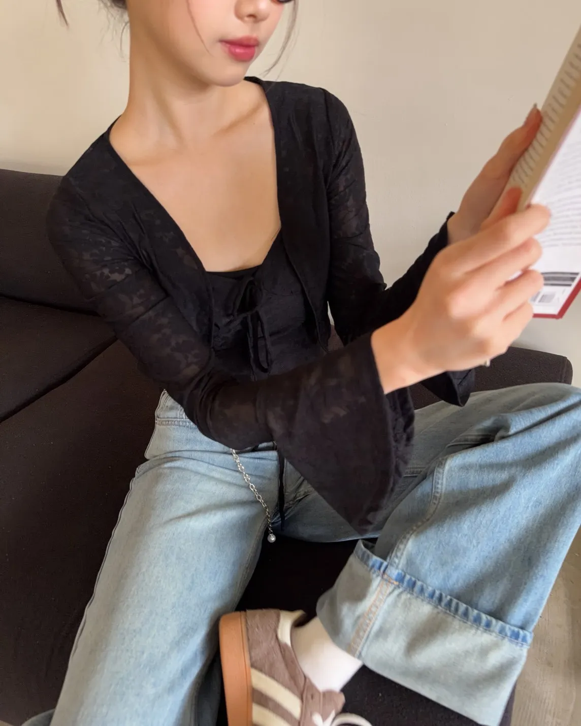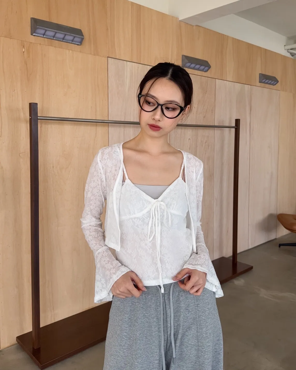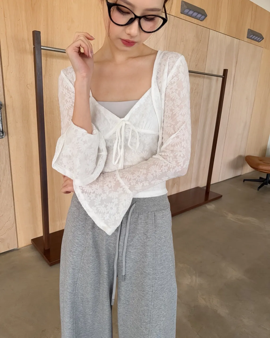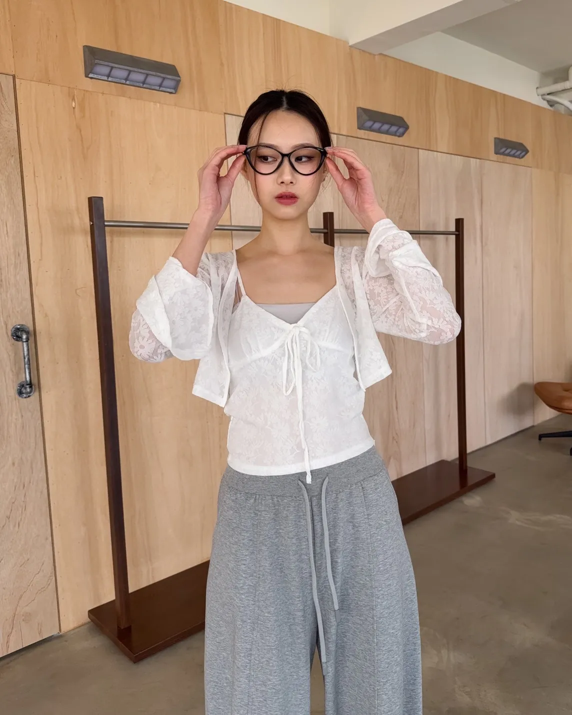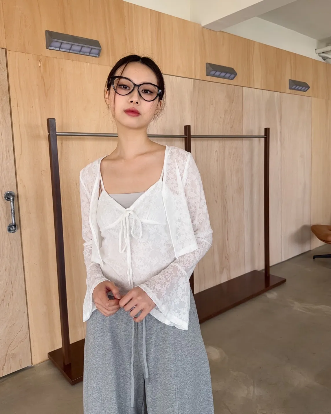 A0001(SET)心花開小背心+短版喇叭袖外套(白/米/黑)