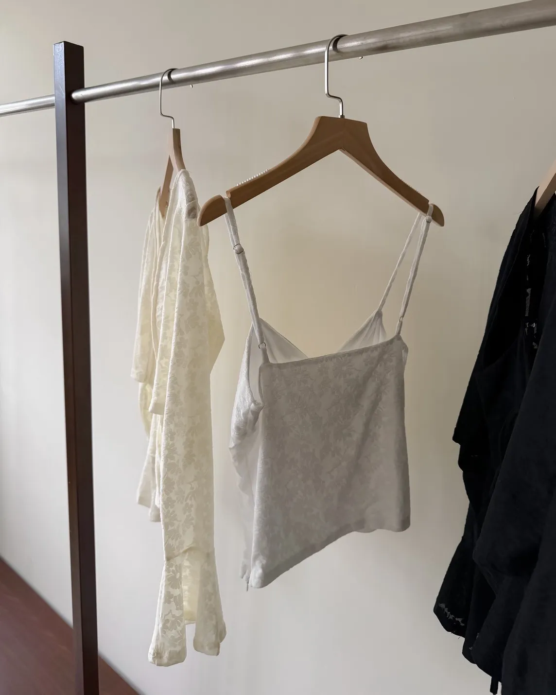 背心-肩帶可調 法式縫線 側邊拉鍊 花朵立體印花