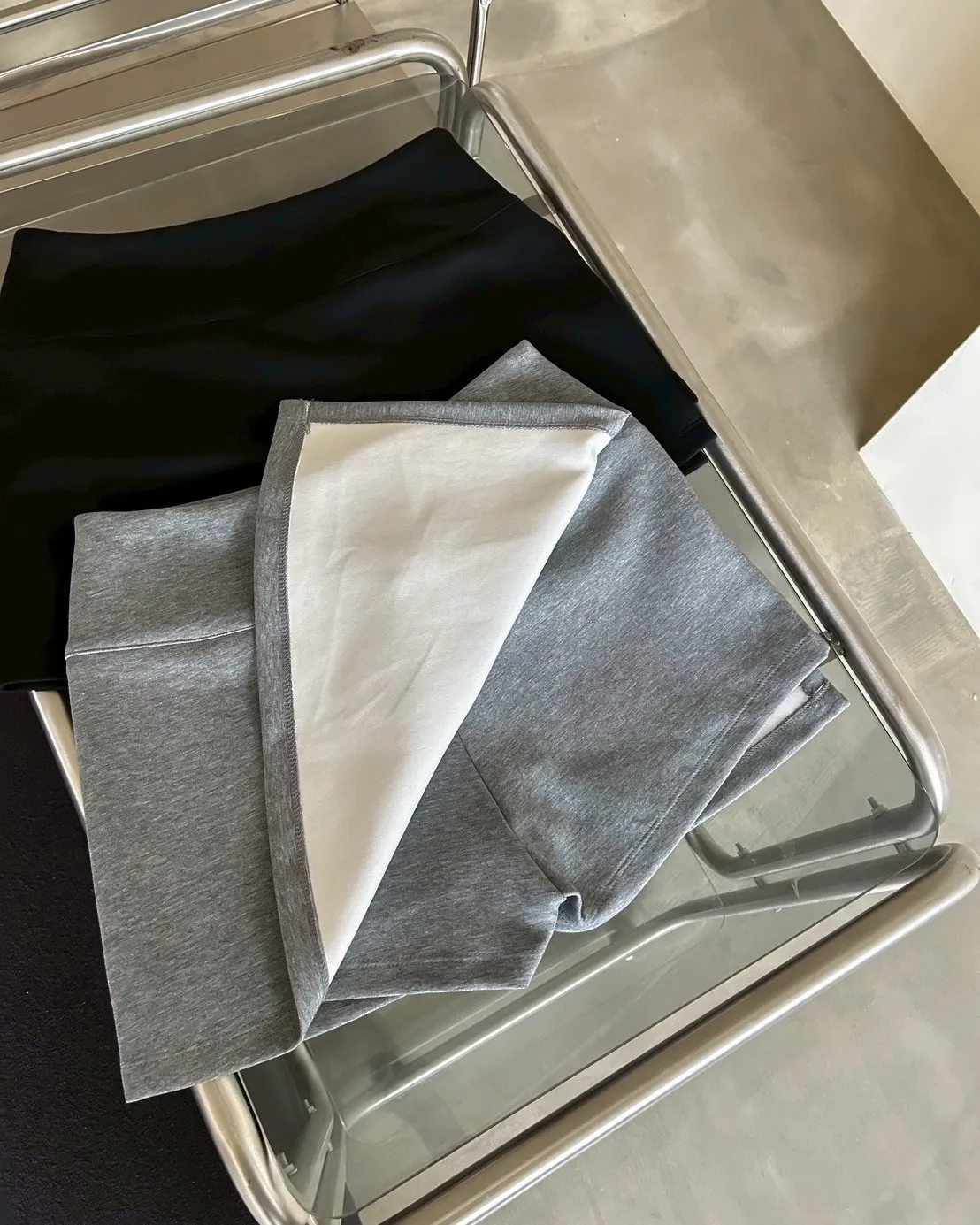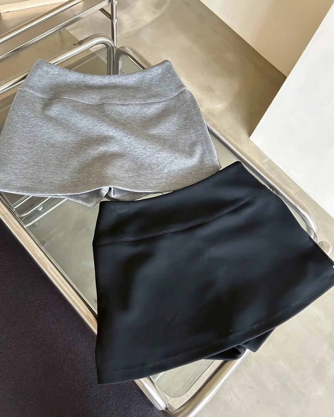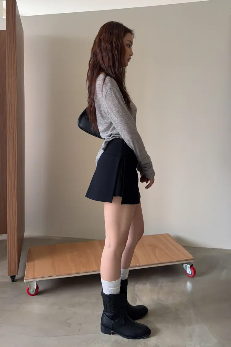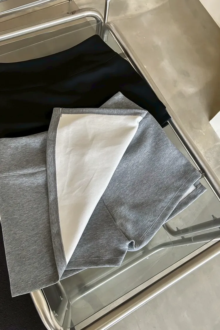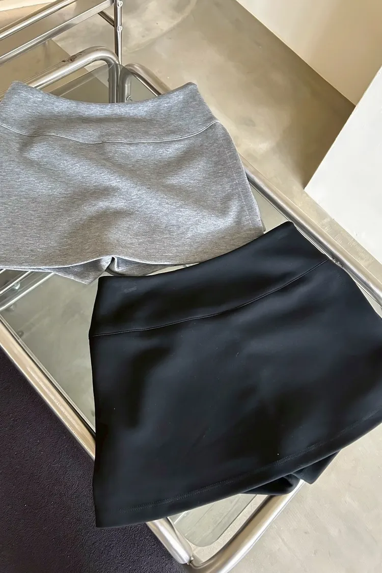 B0031側開衩棉短褲裙(灰/黑)