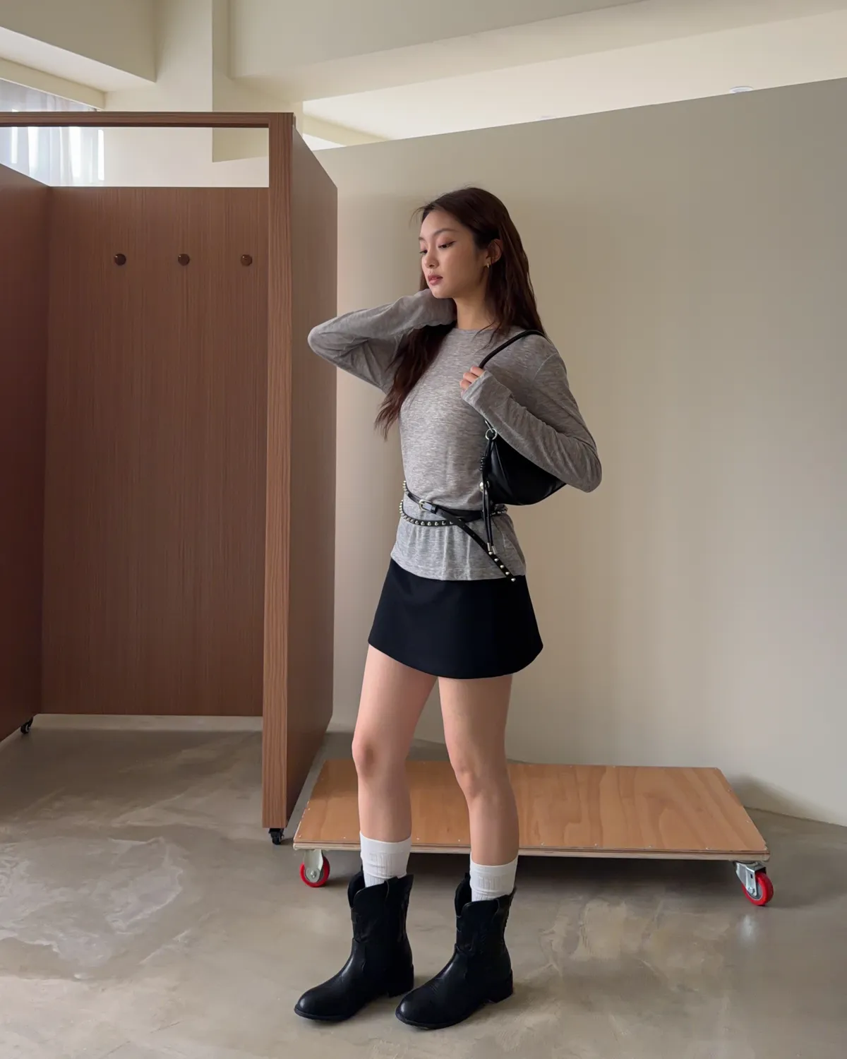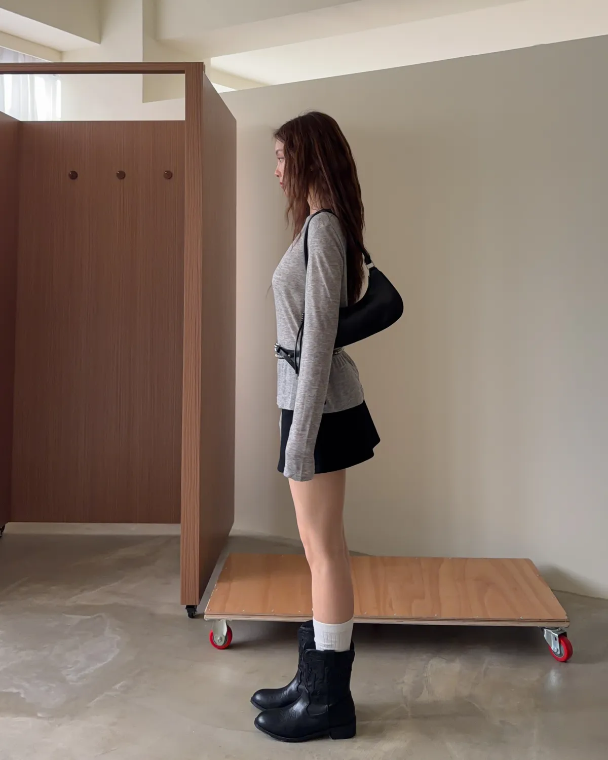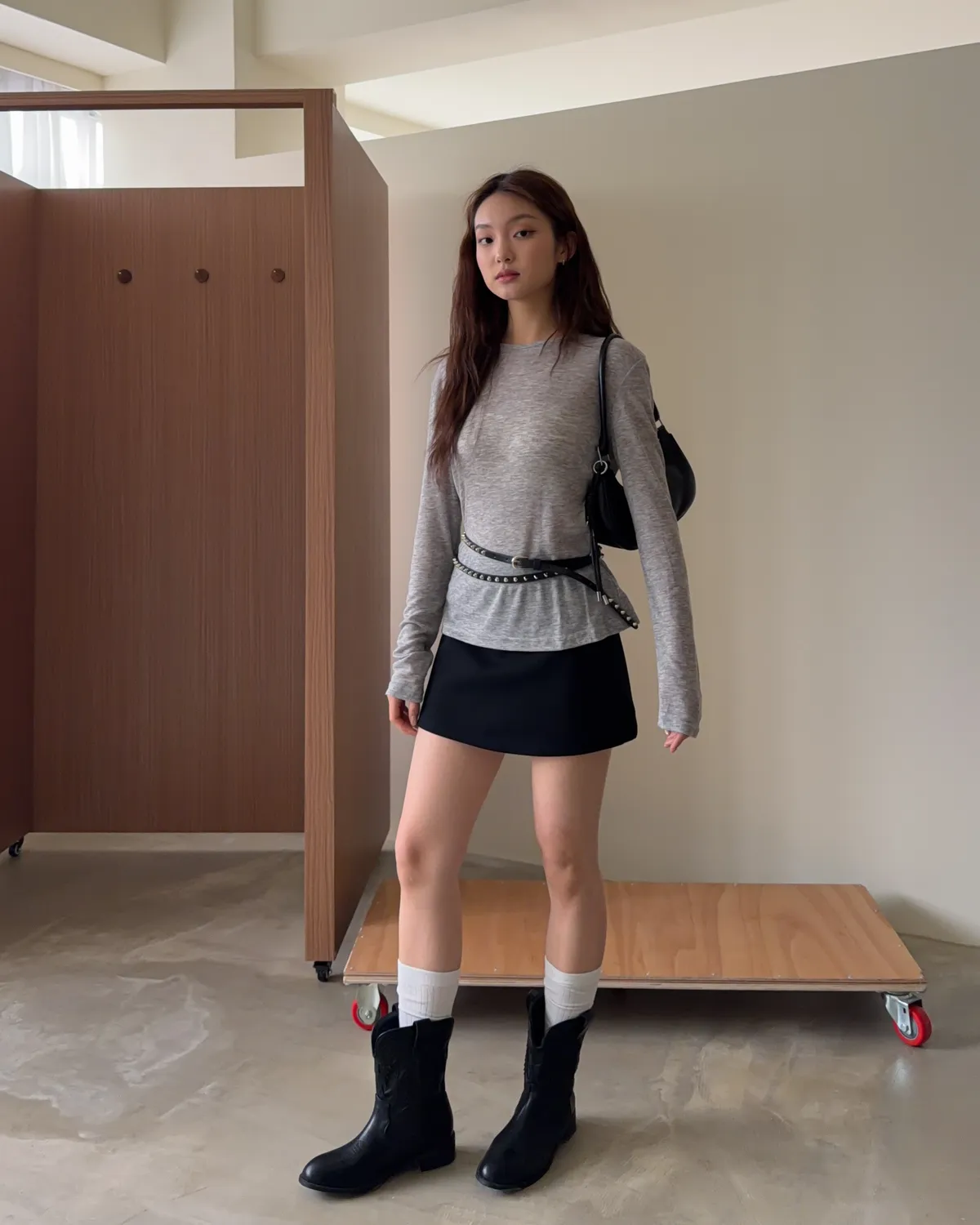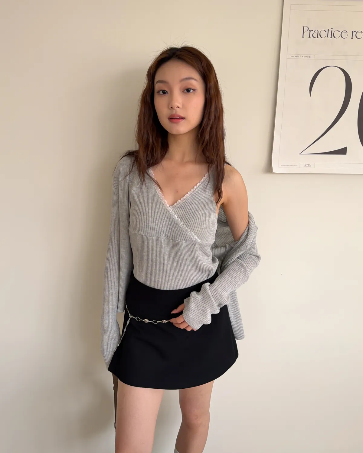 B0031側開衩棉短褲裙(灰/黑)