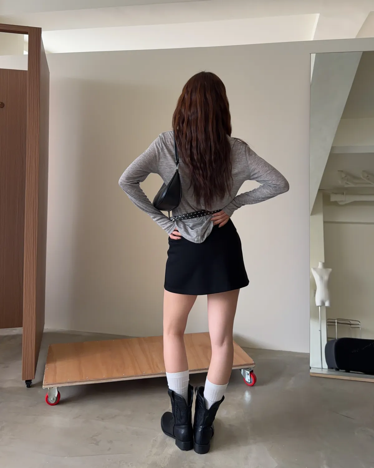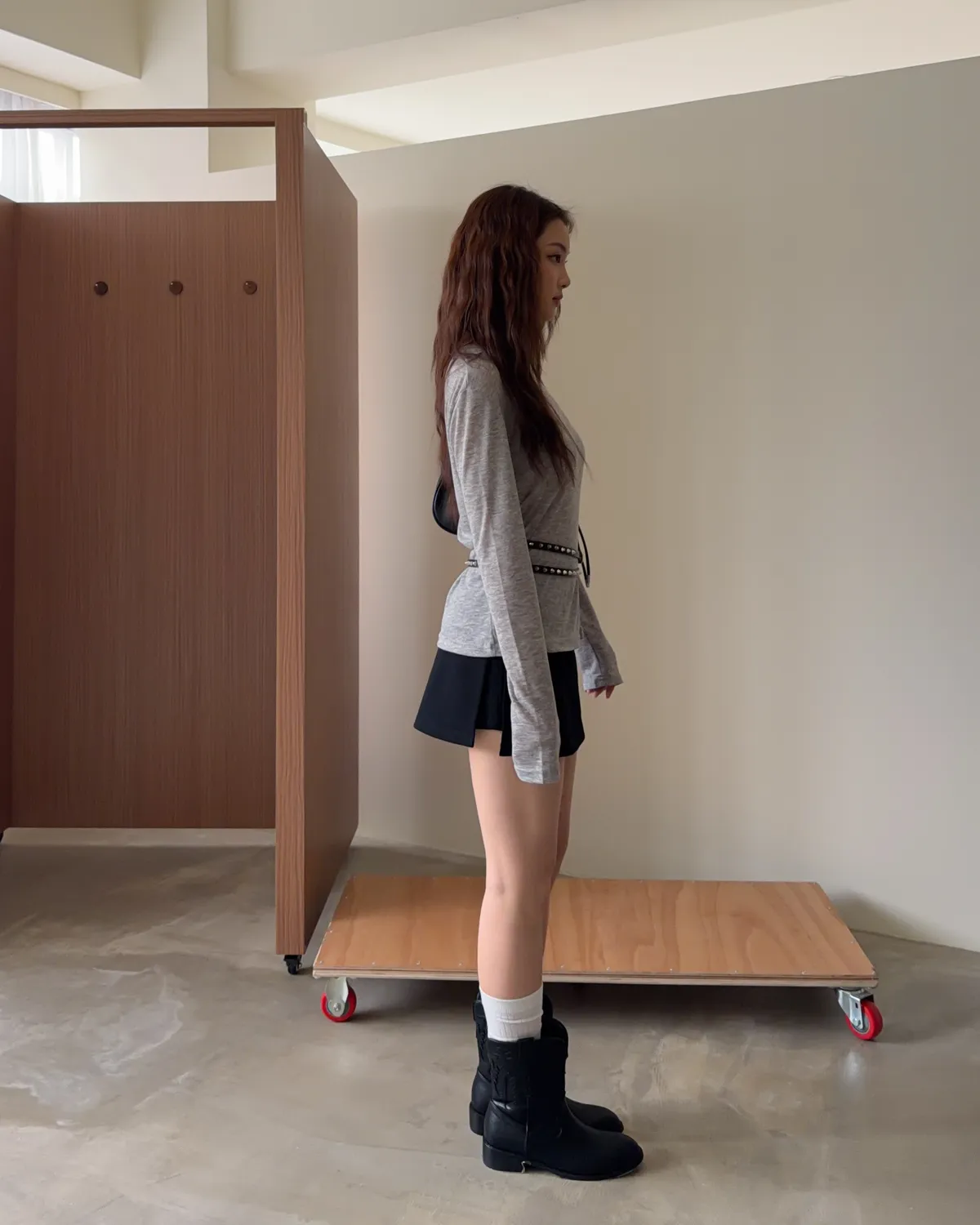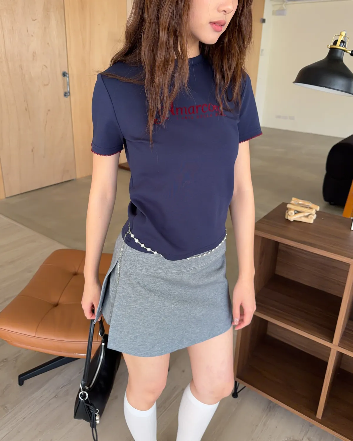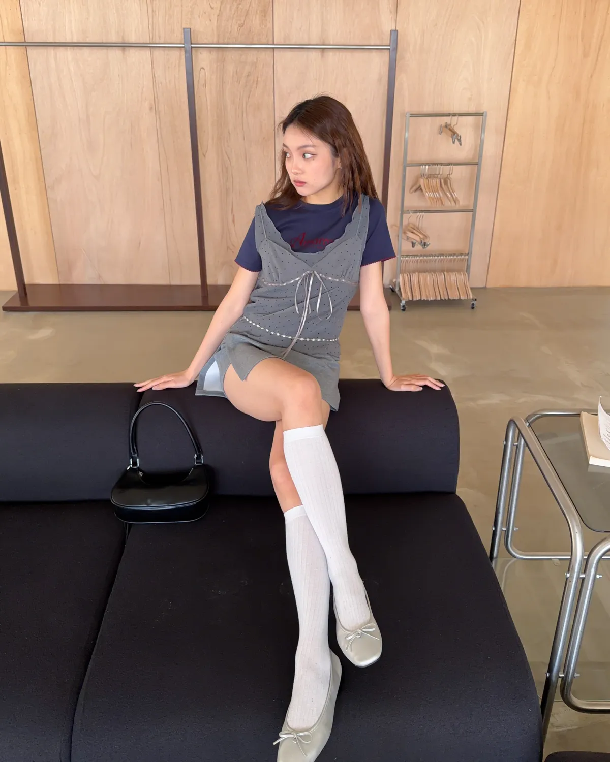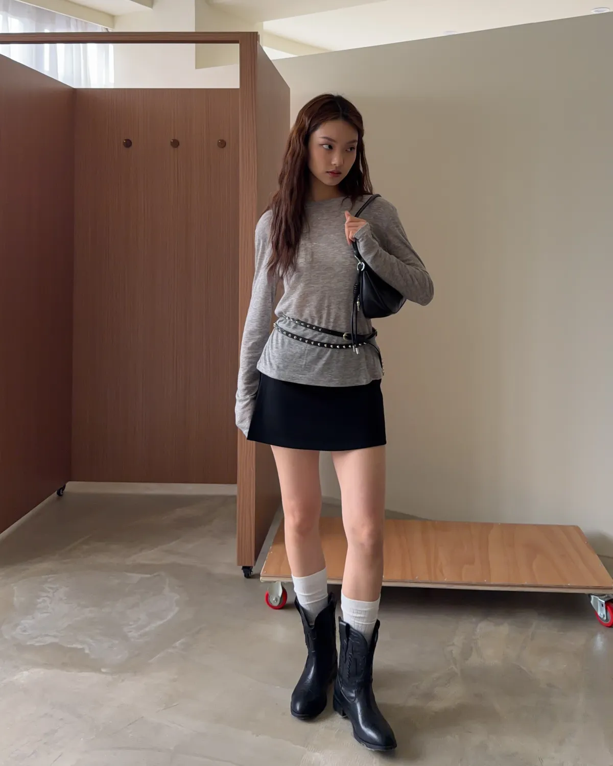 B0031側開衩棉短褲裙(灰/黑)