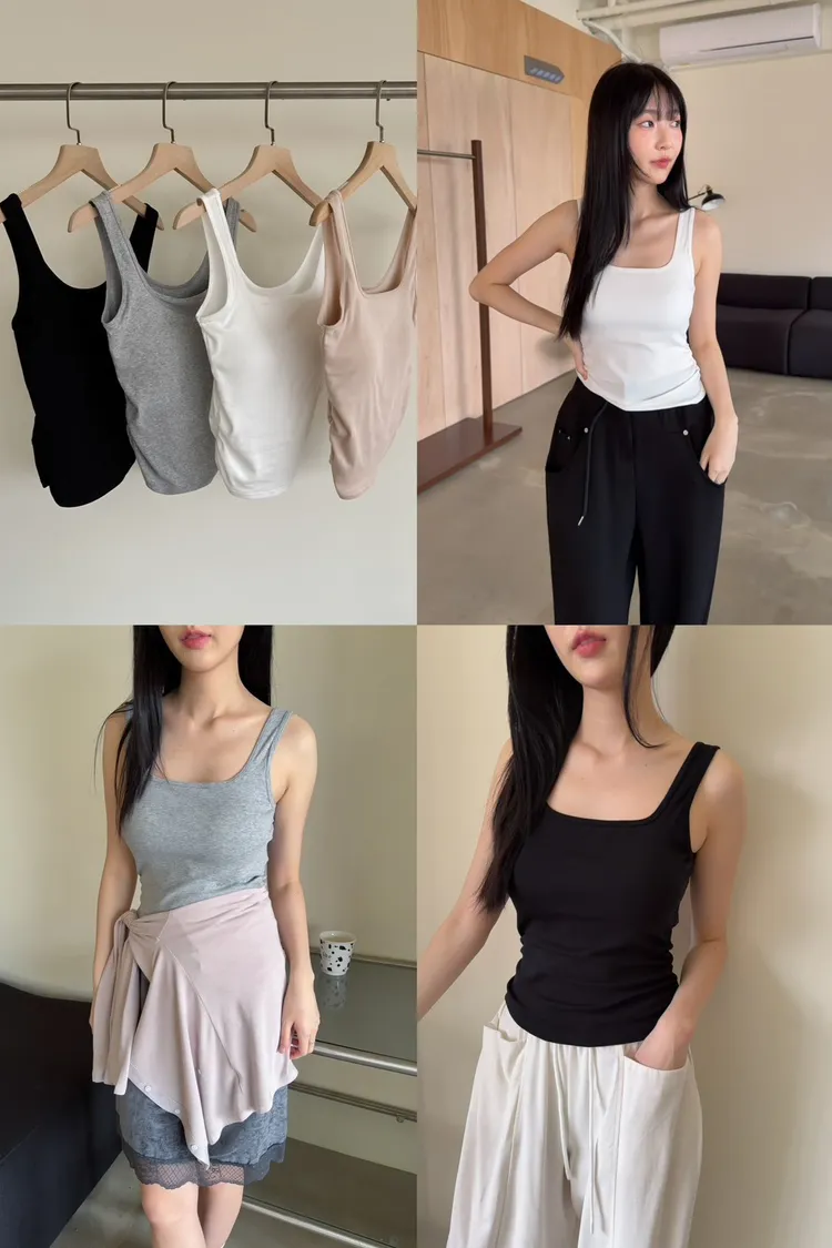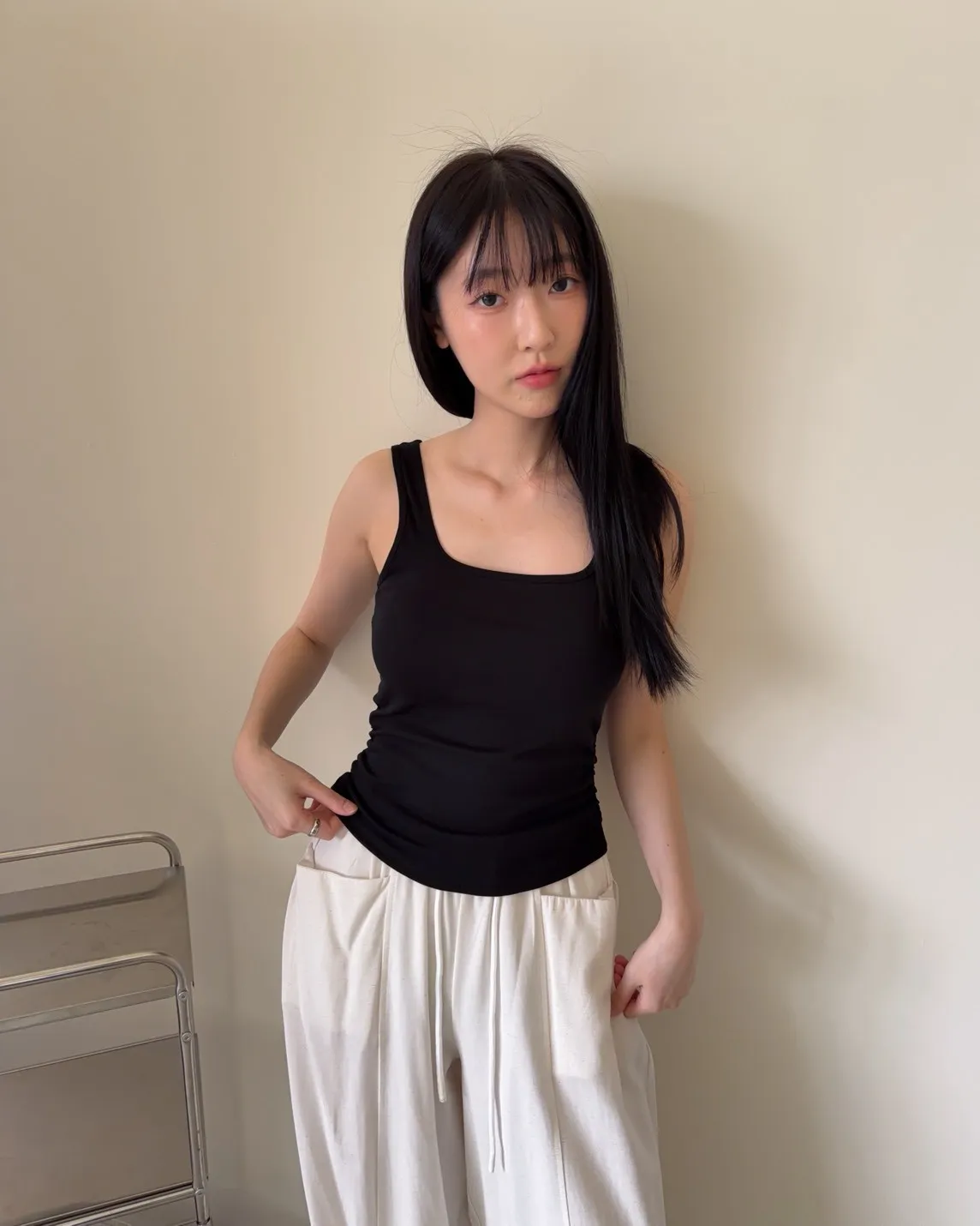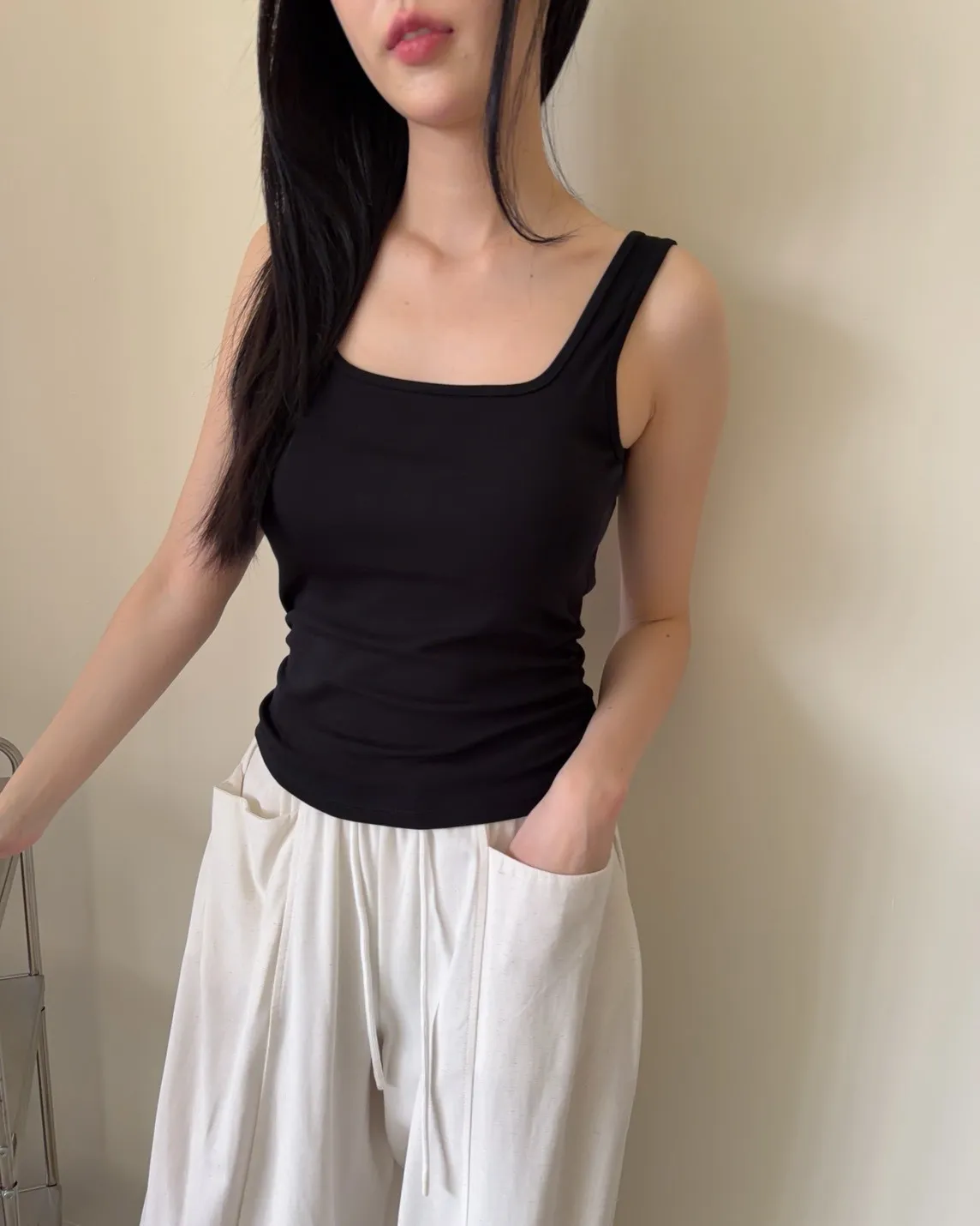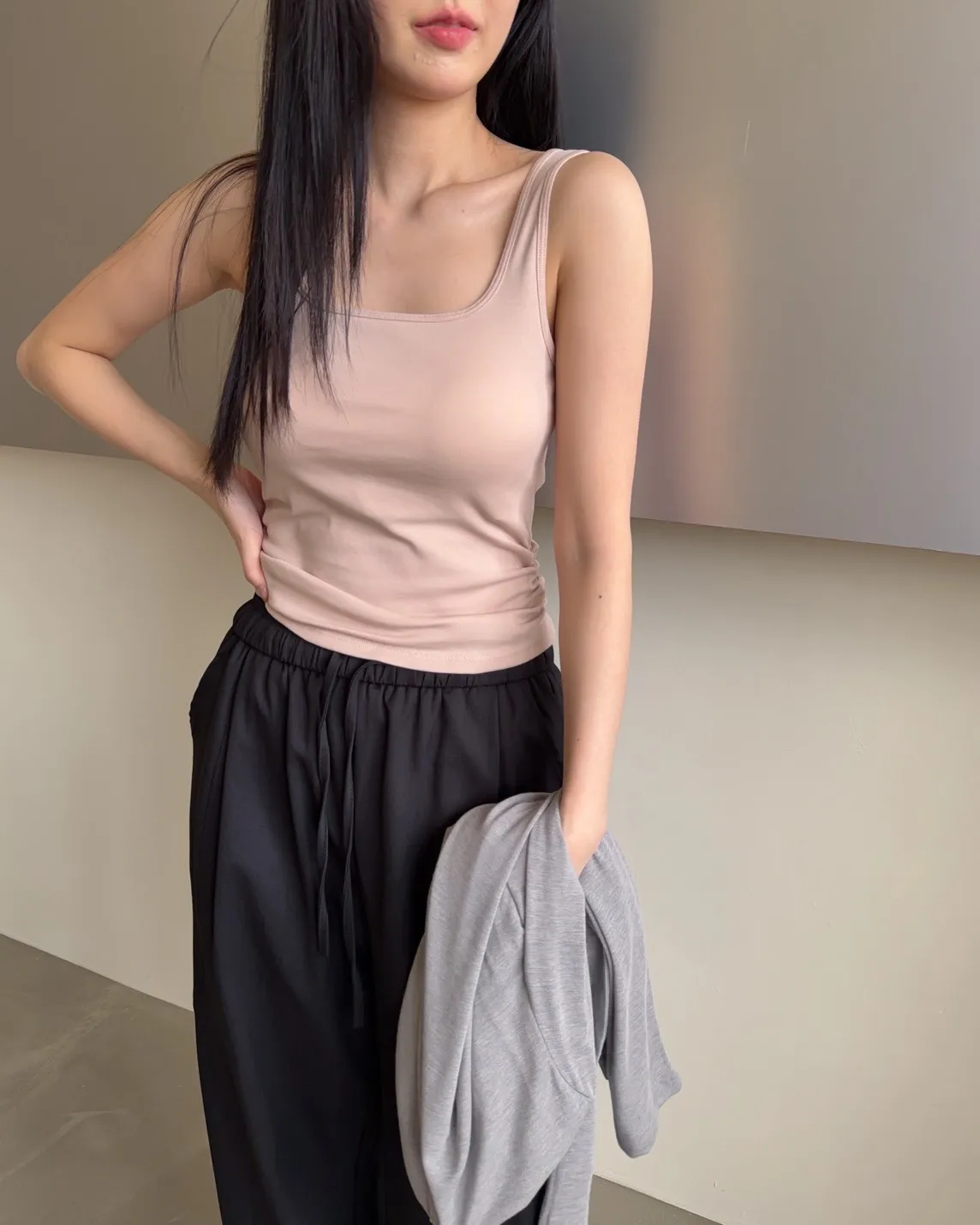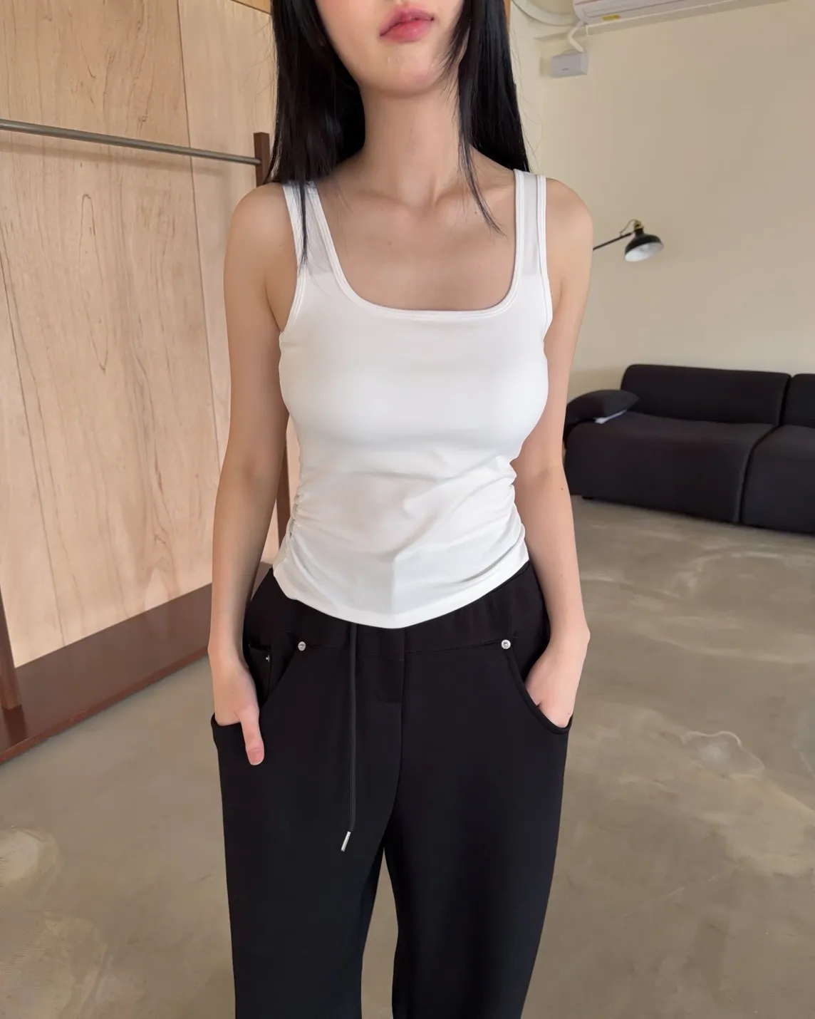 A0020顯瘦抓皺方領罩杯背心(白/粉紅/灰/黑)
