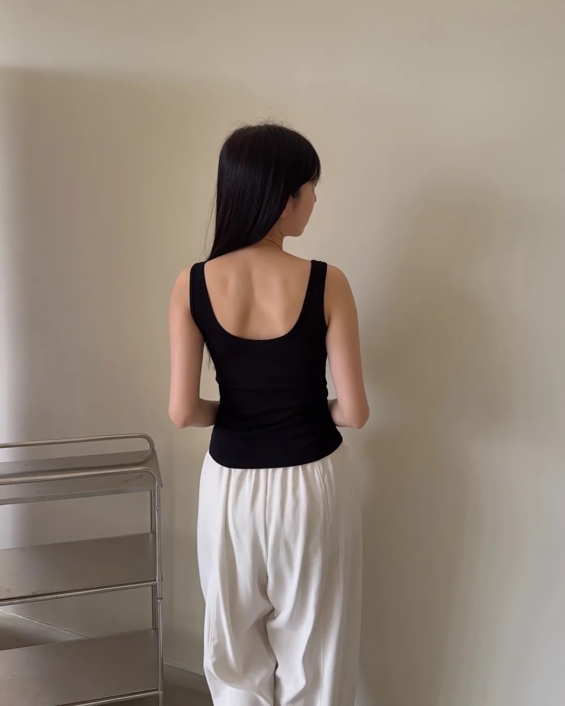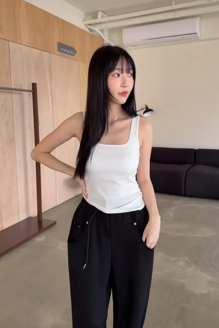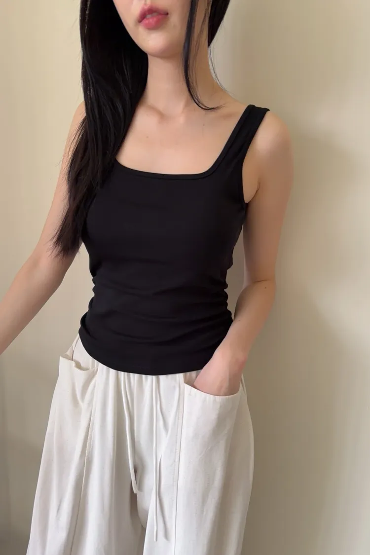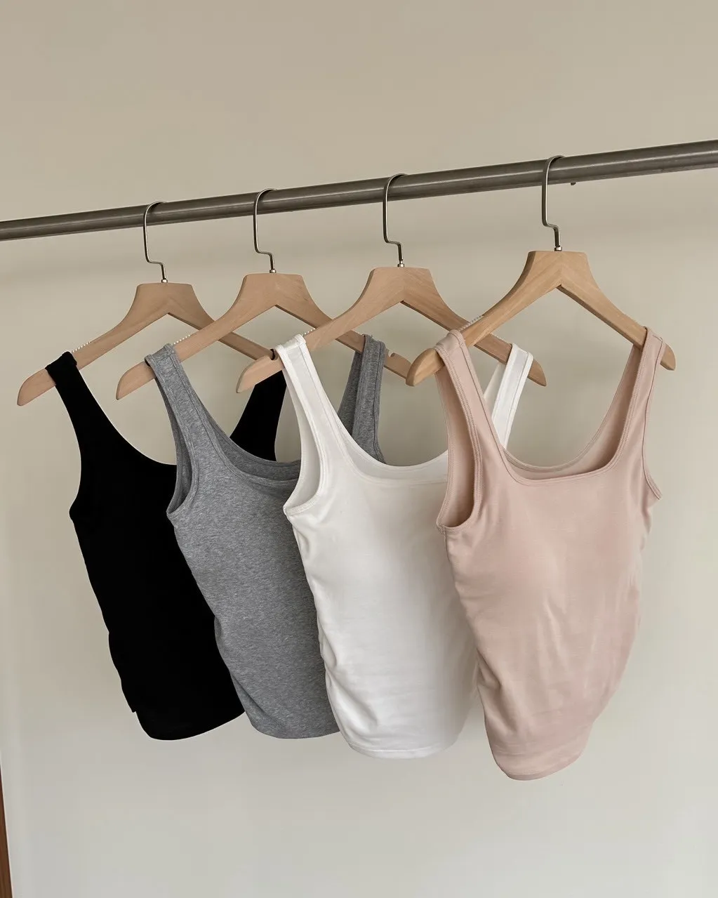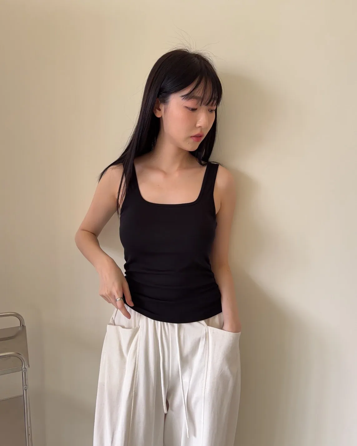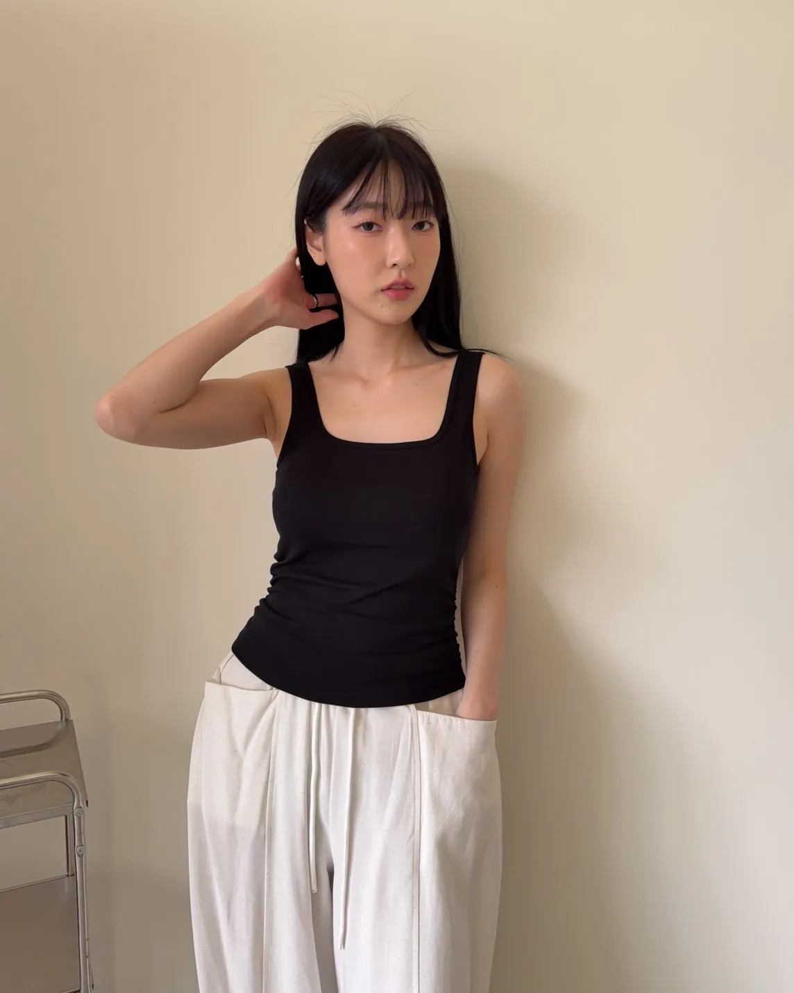 A0020顯瘦抓皺方領罩杯背心(白/粉紅/灰/黑)