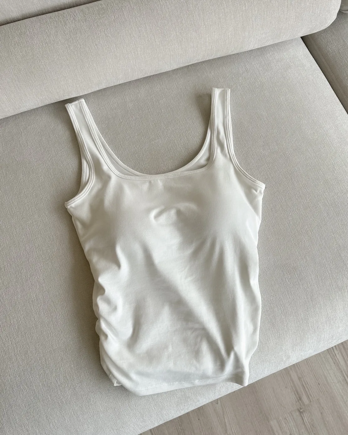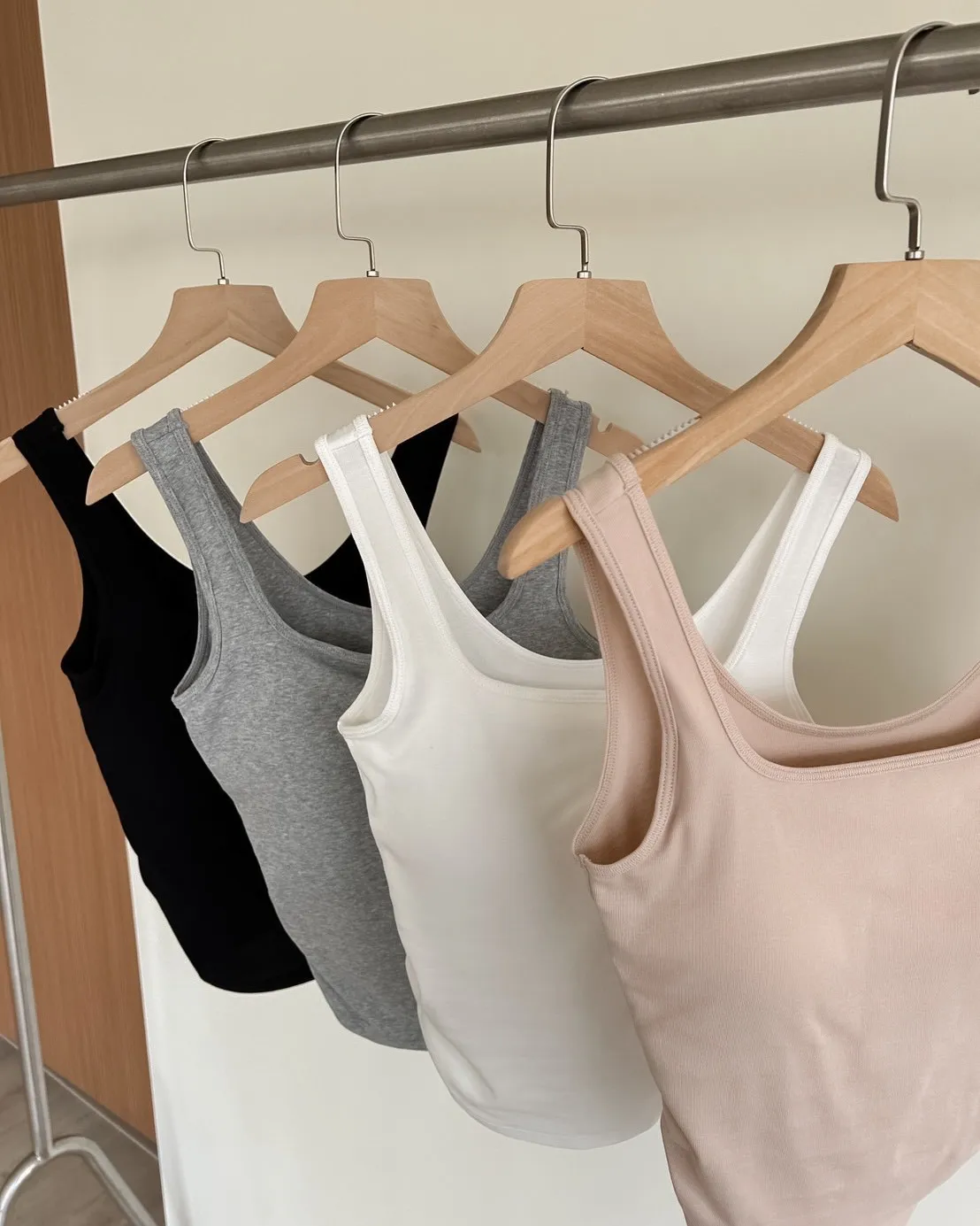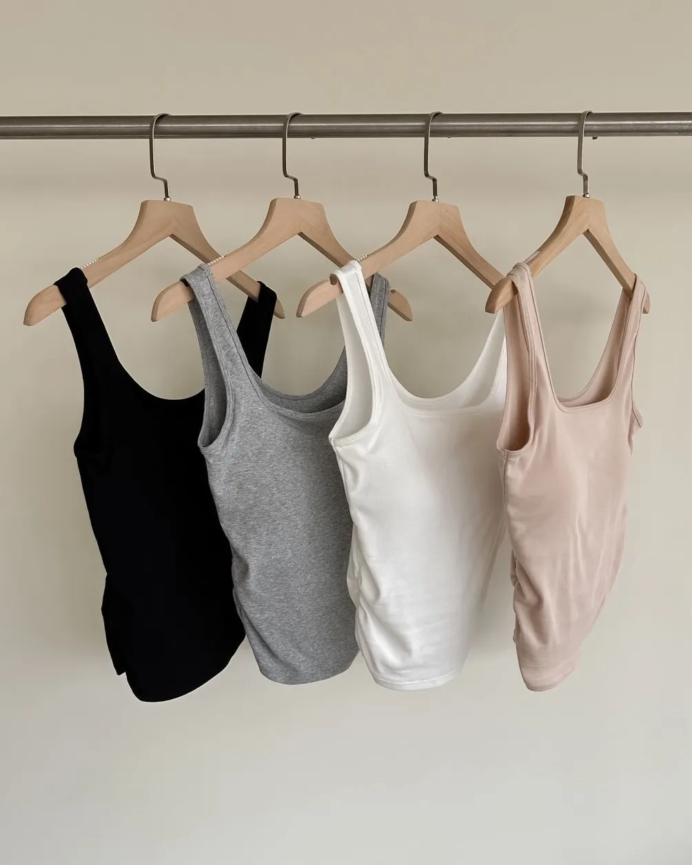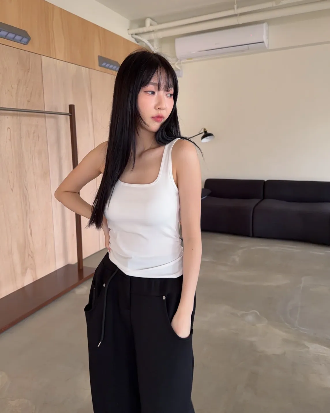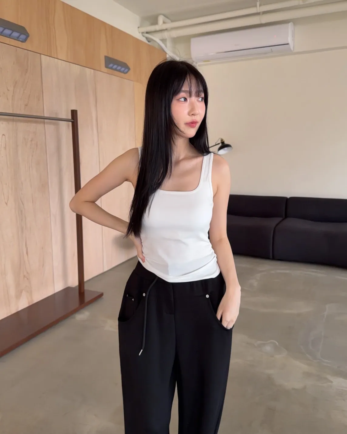 A0020顯瘦抓皺方領罩杯背心(白/粉紅/灰/黑)