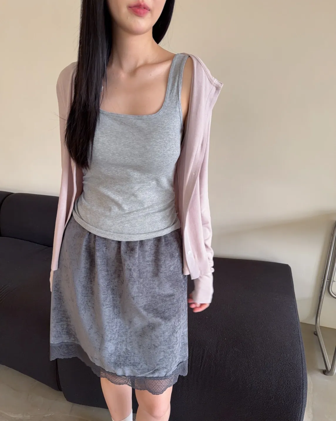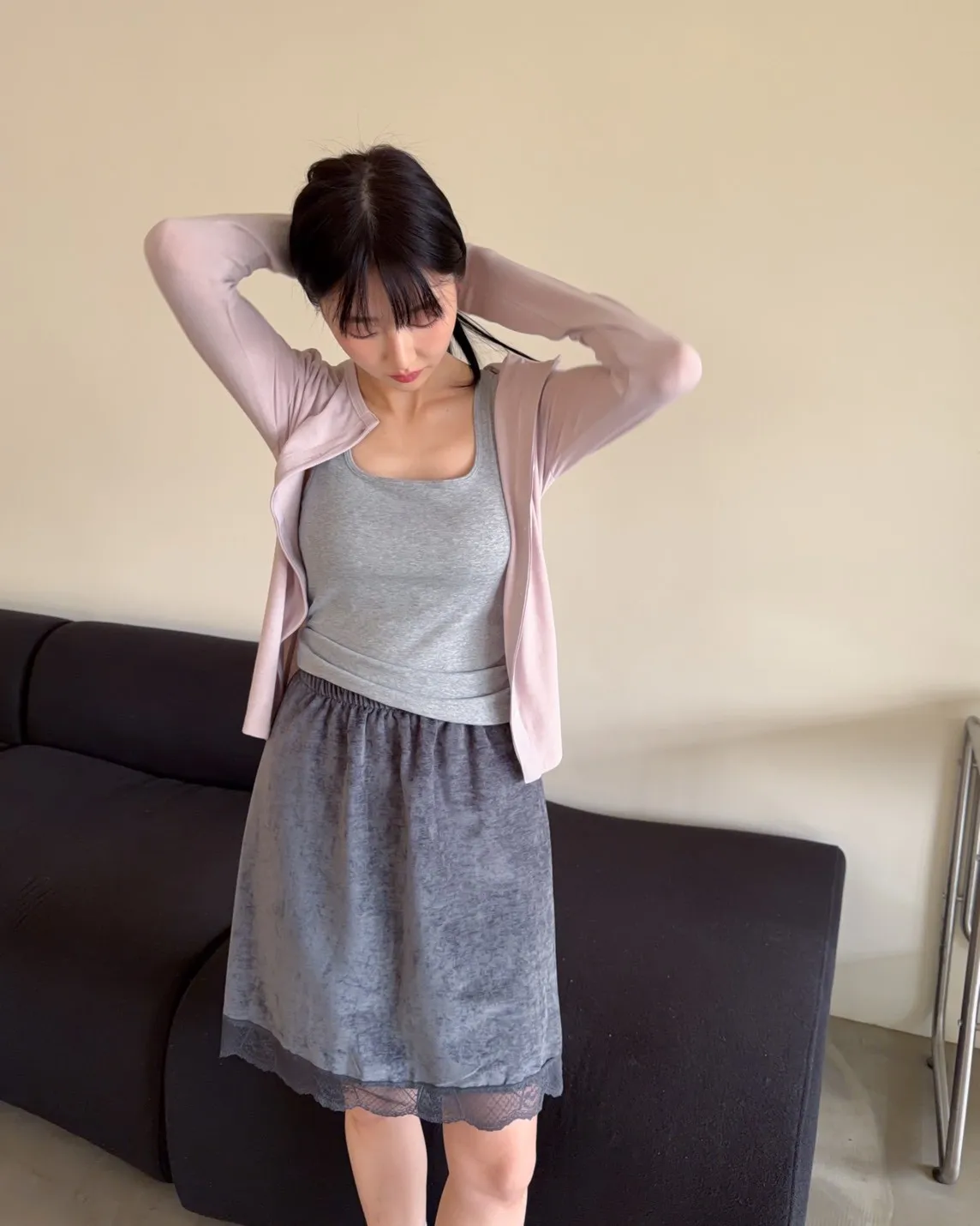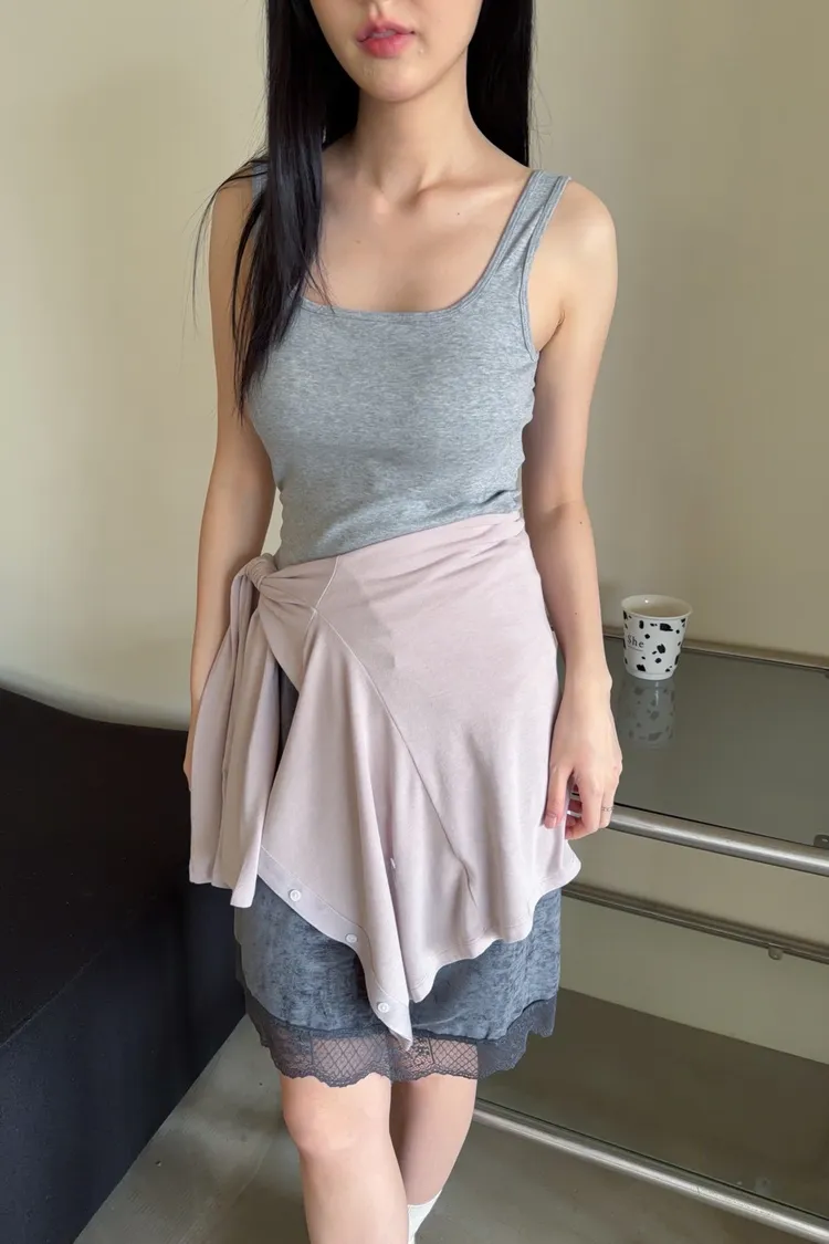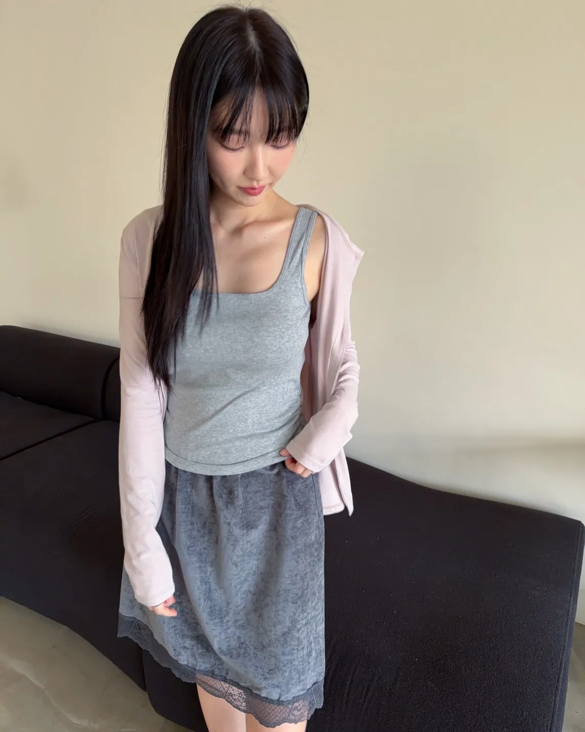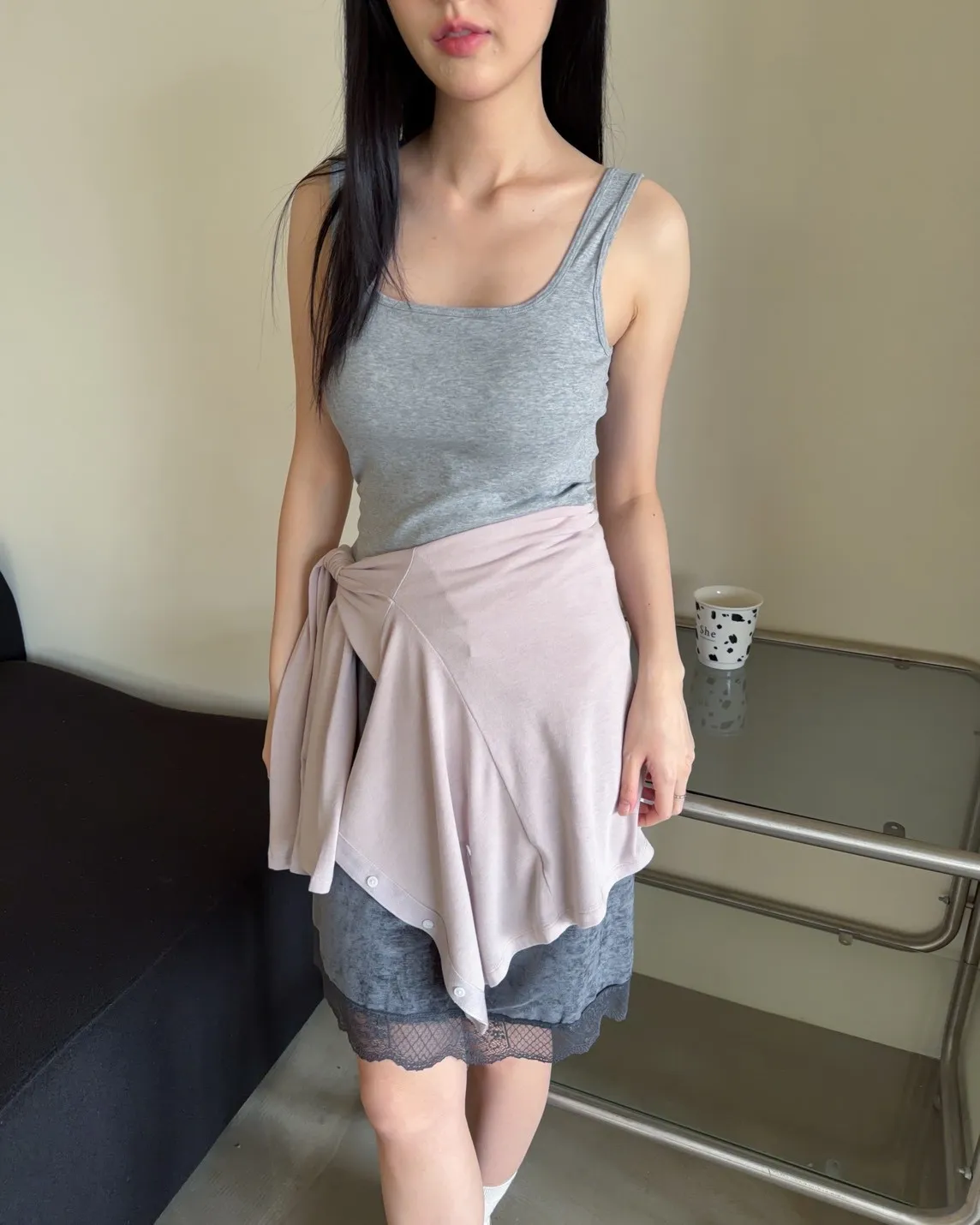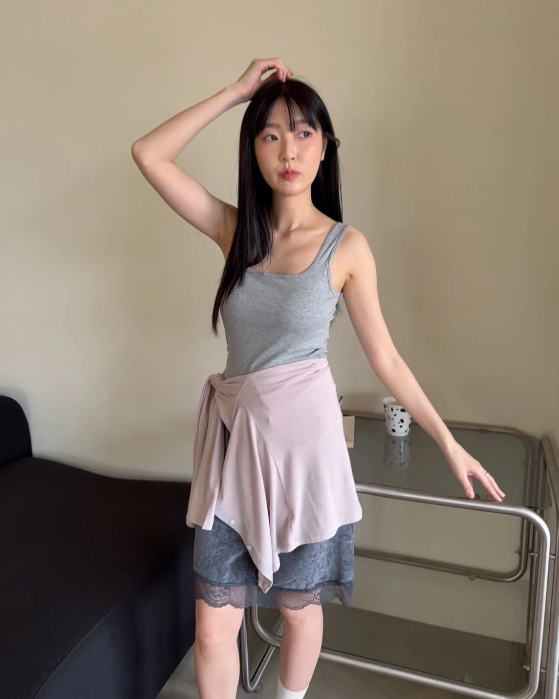 A0020顯瘦抓皺方領罩杯背心(白/粉紅/灰/黑)