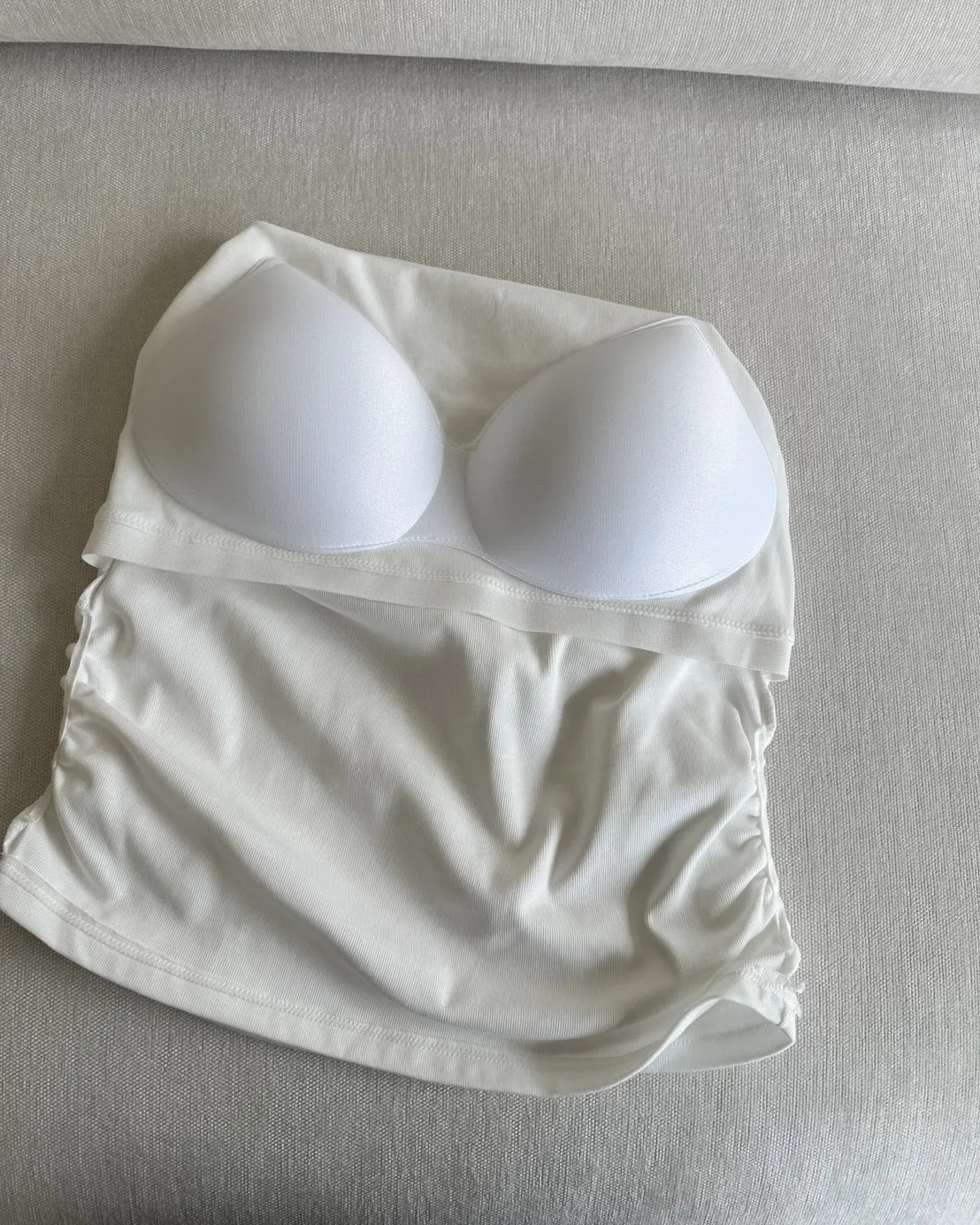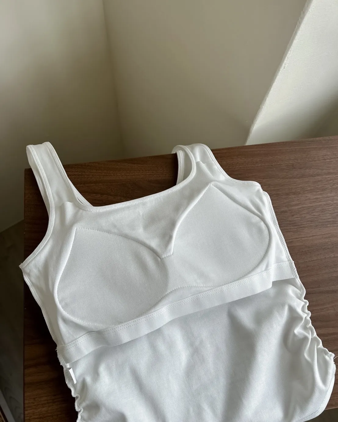 固定式罩杯不可拆 方領 兩邊腰抓皺