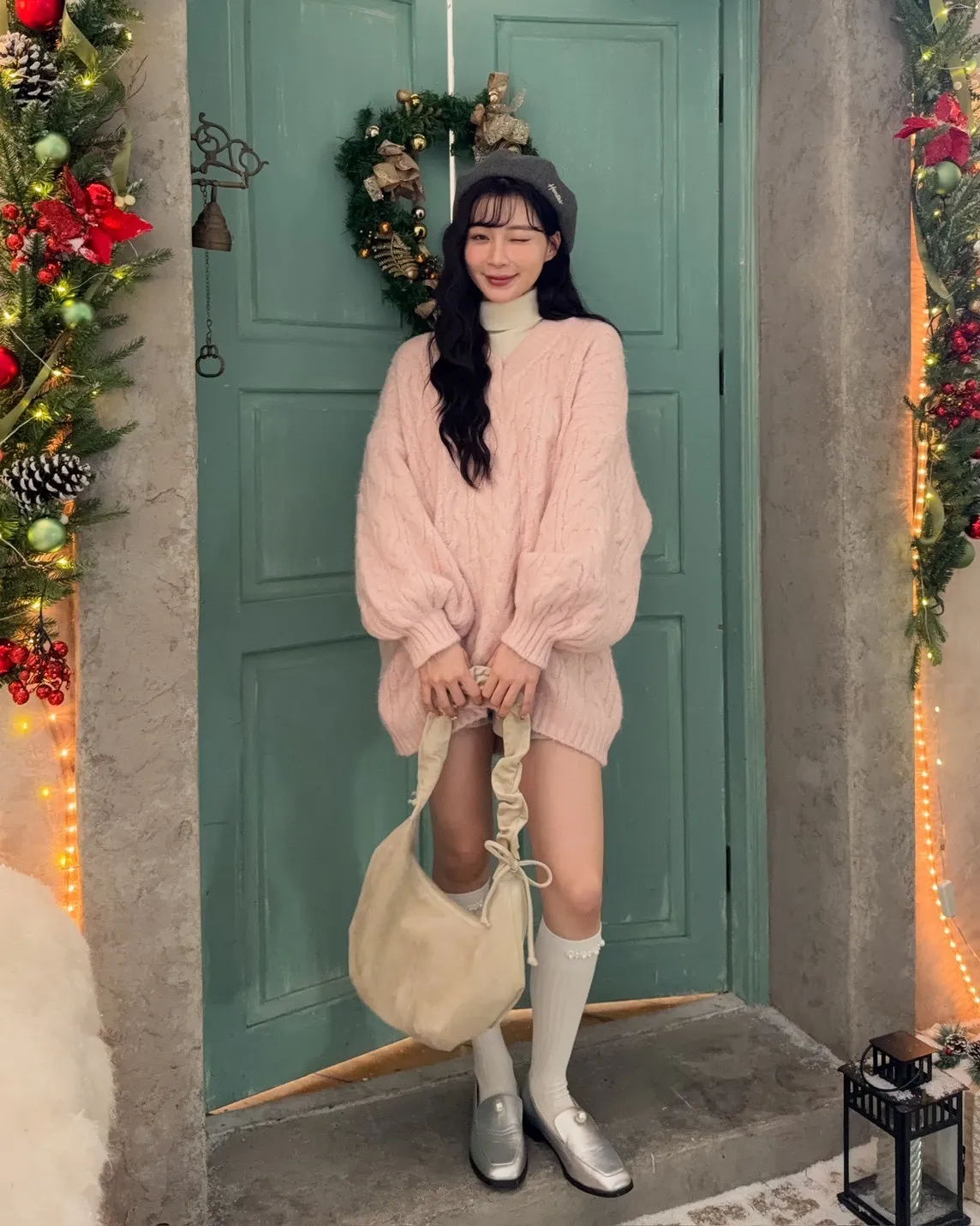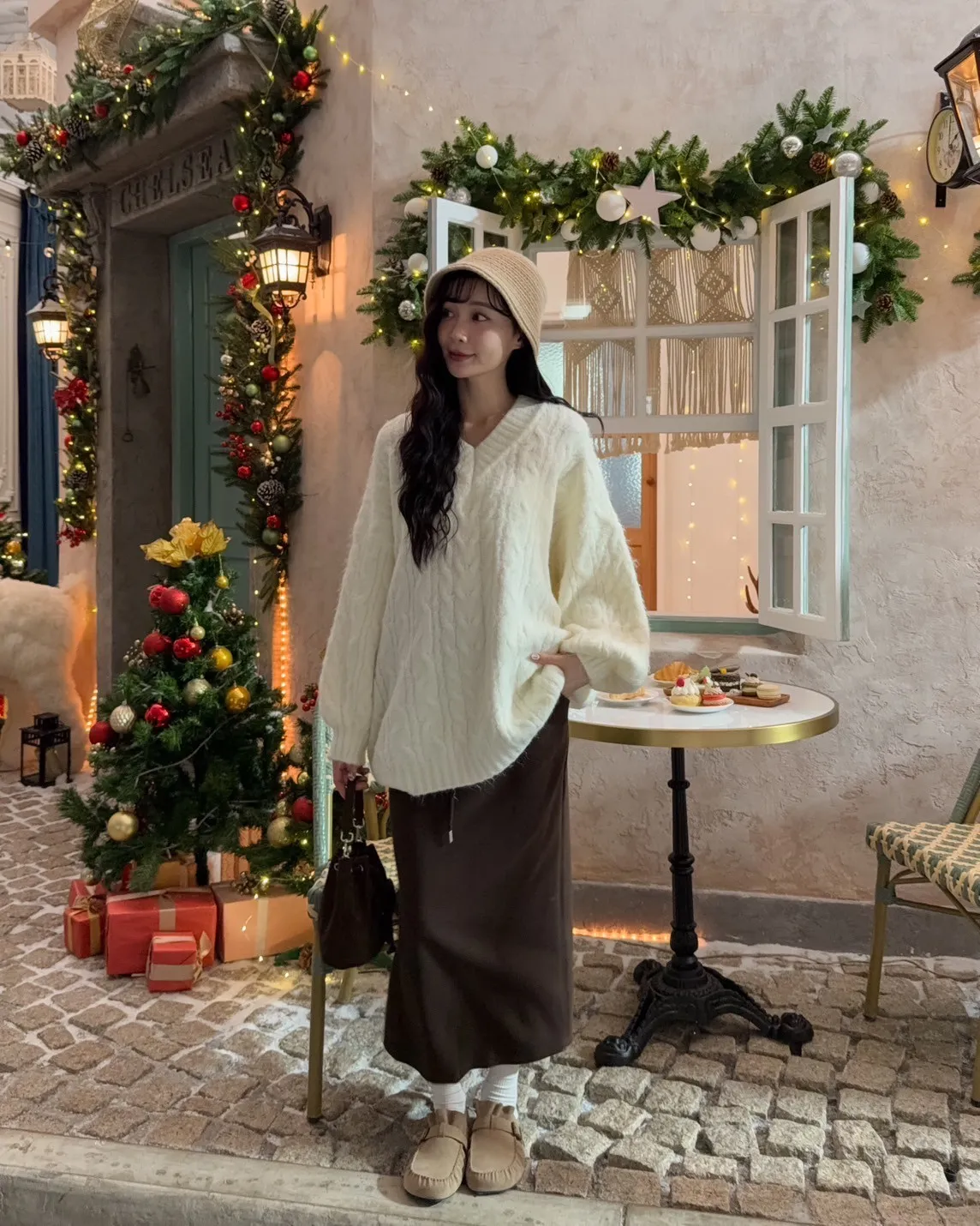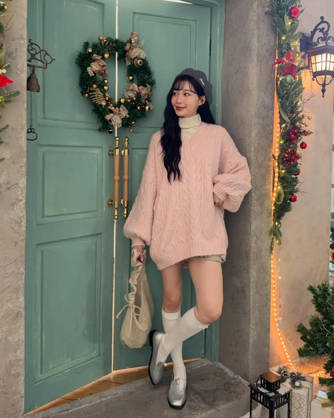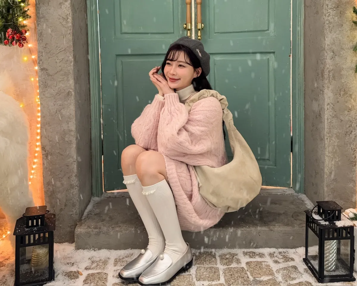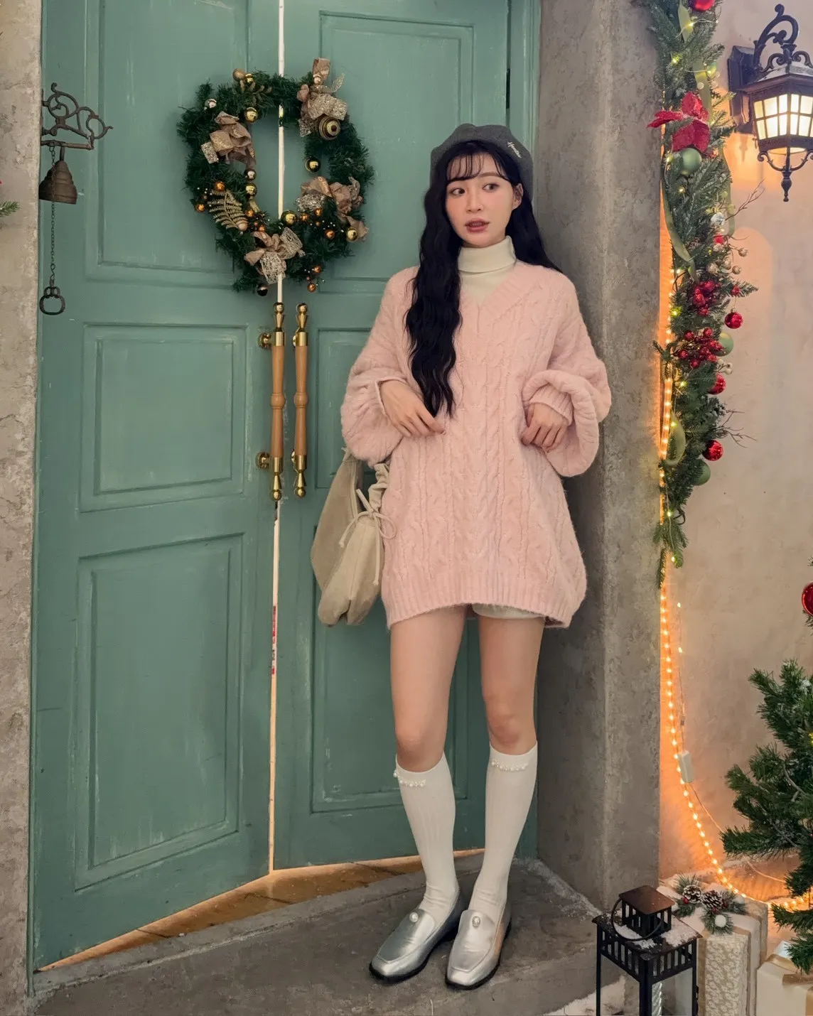 X0062酸甜初戀大件V領麻花毛衣(米白/粉紅/淡綠)