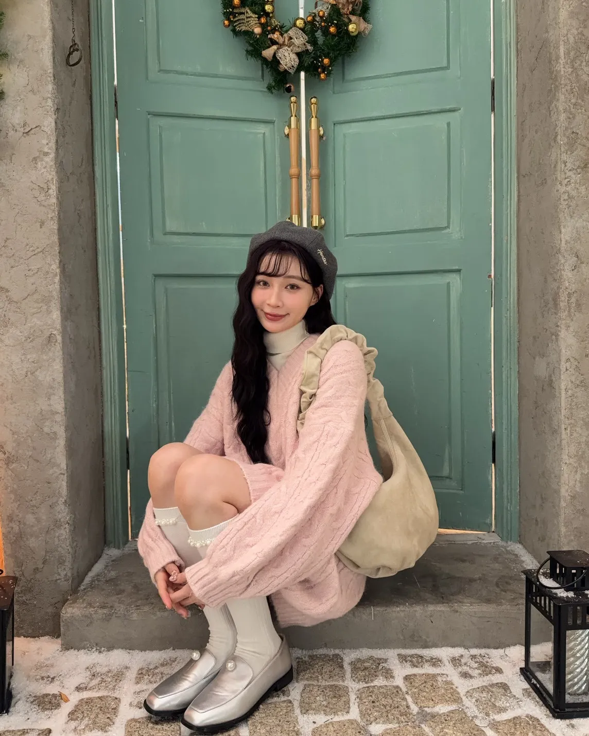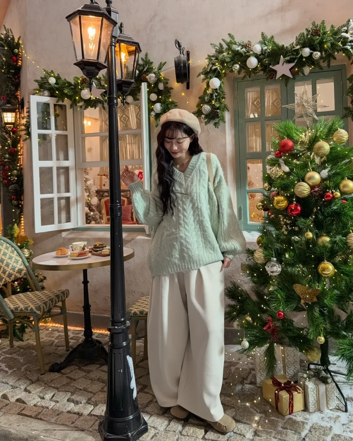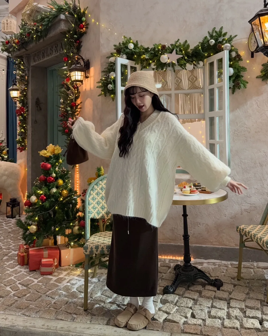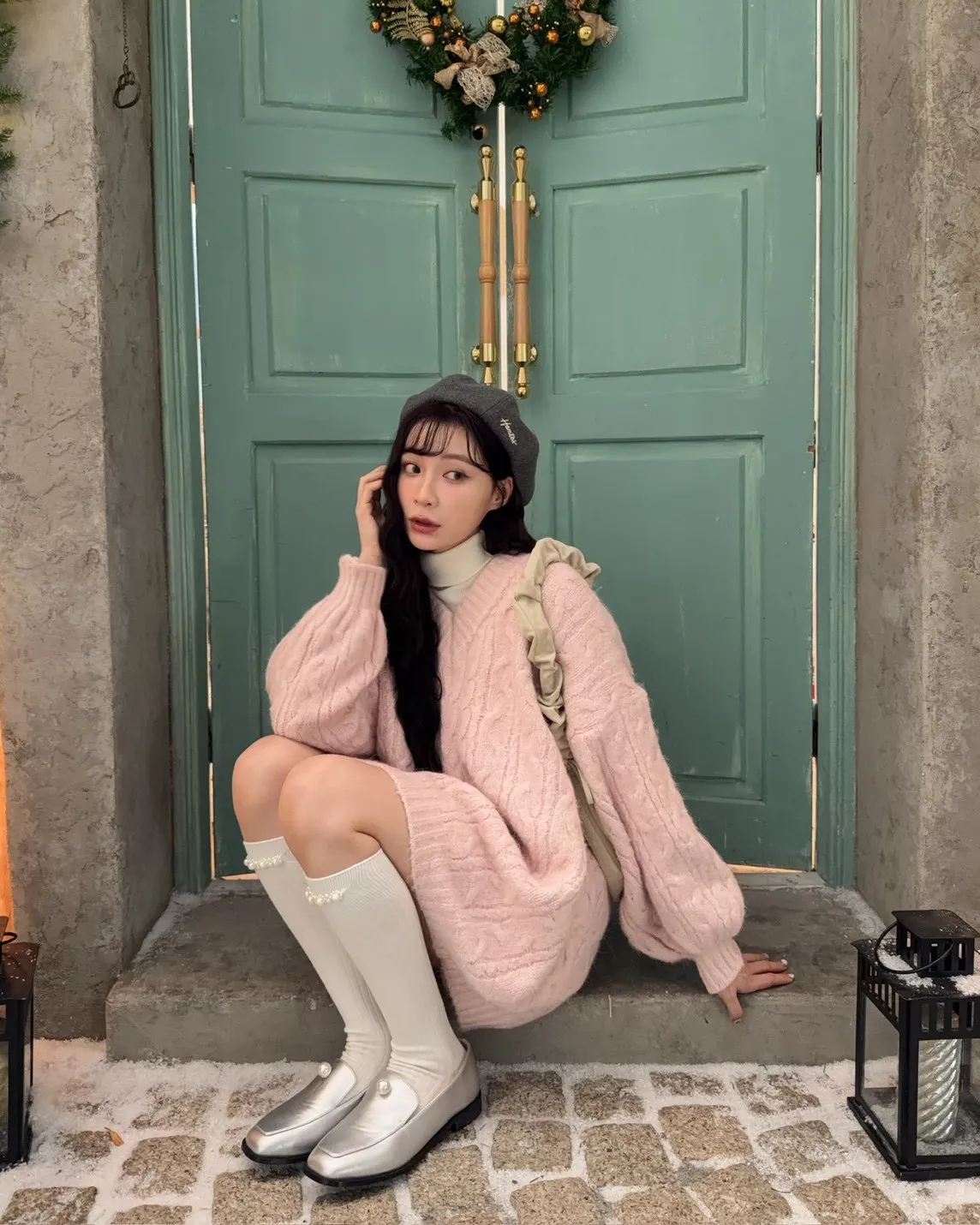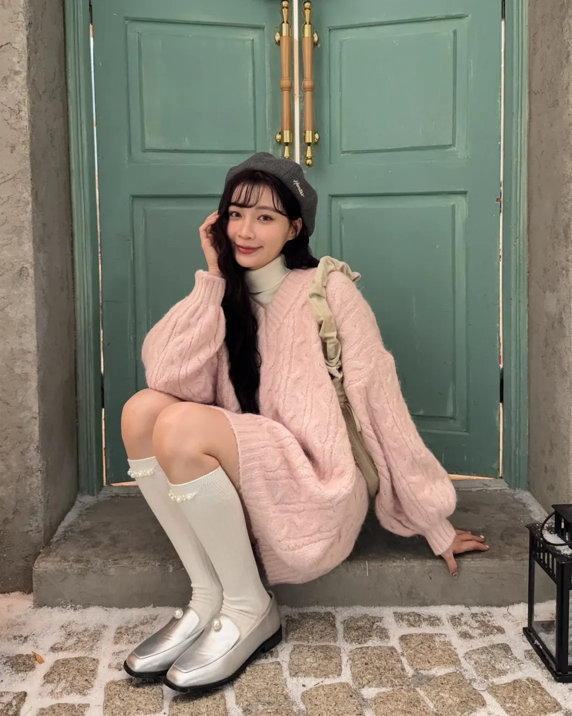 X0062酸甜初戀大件V領麻花毛衣(米白/粉紅/淡綠)