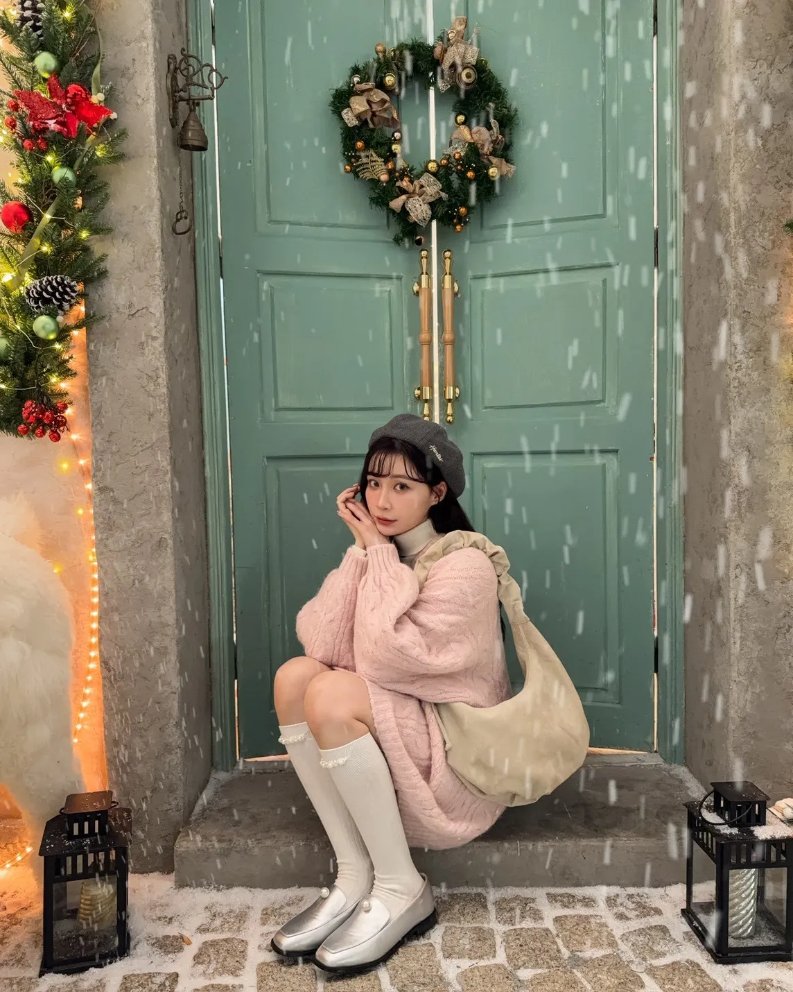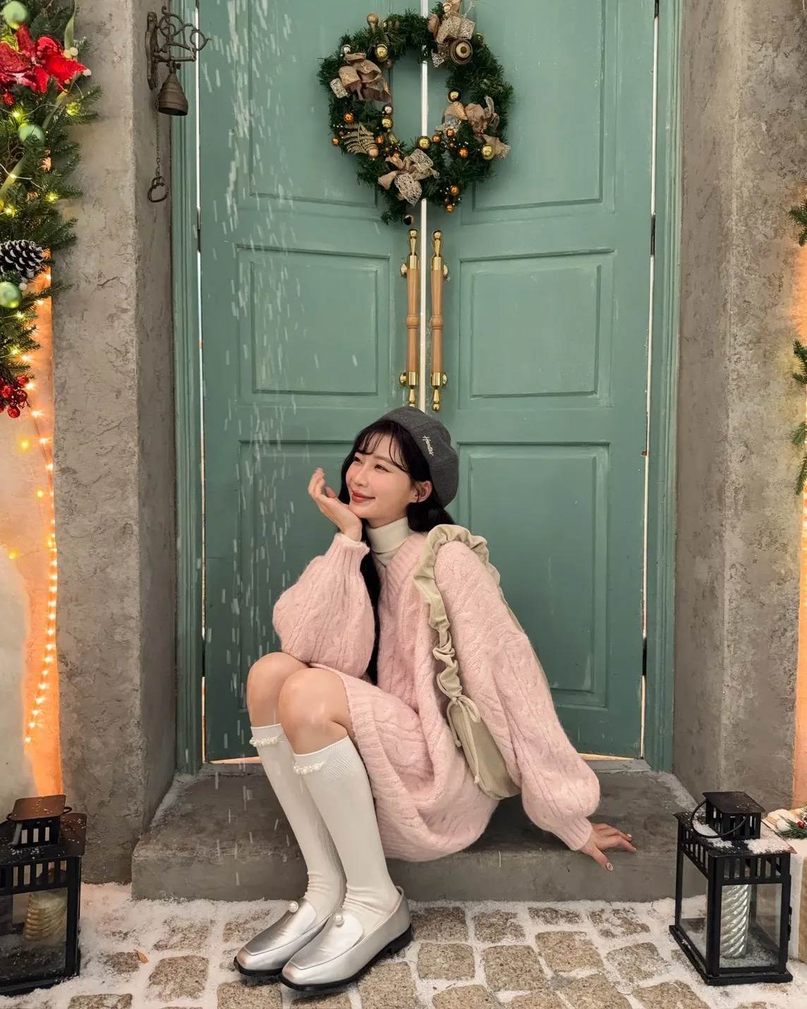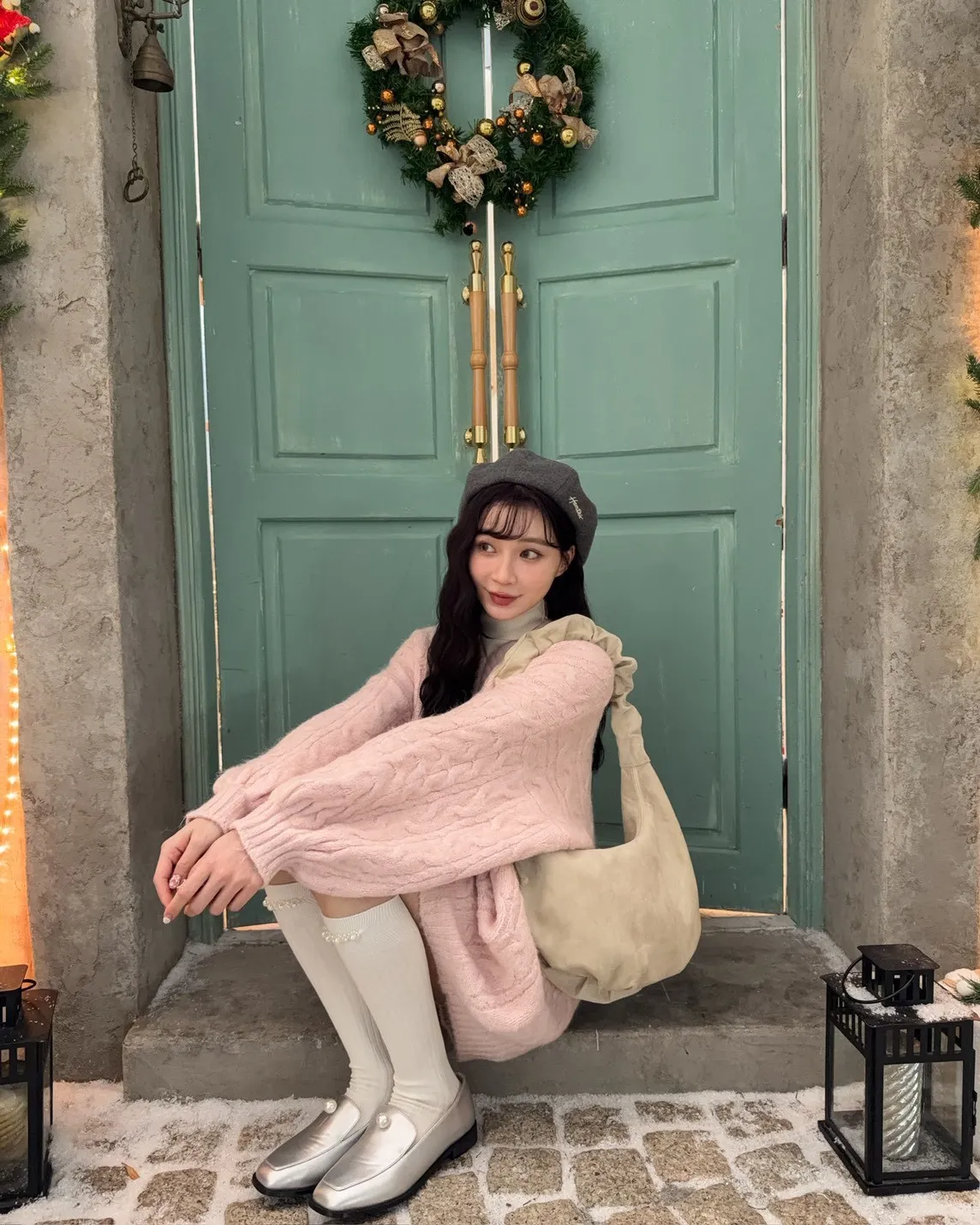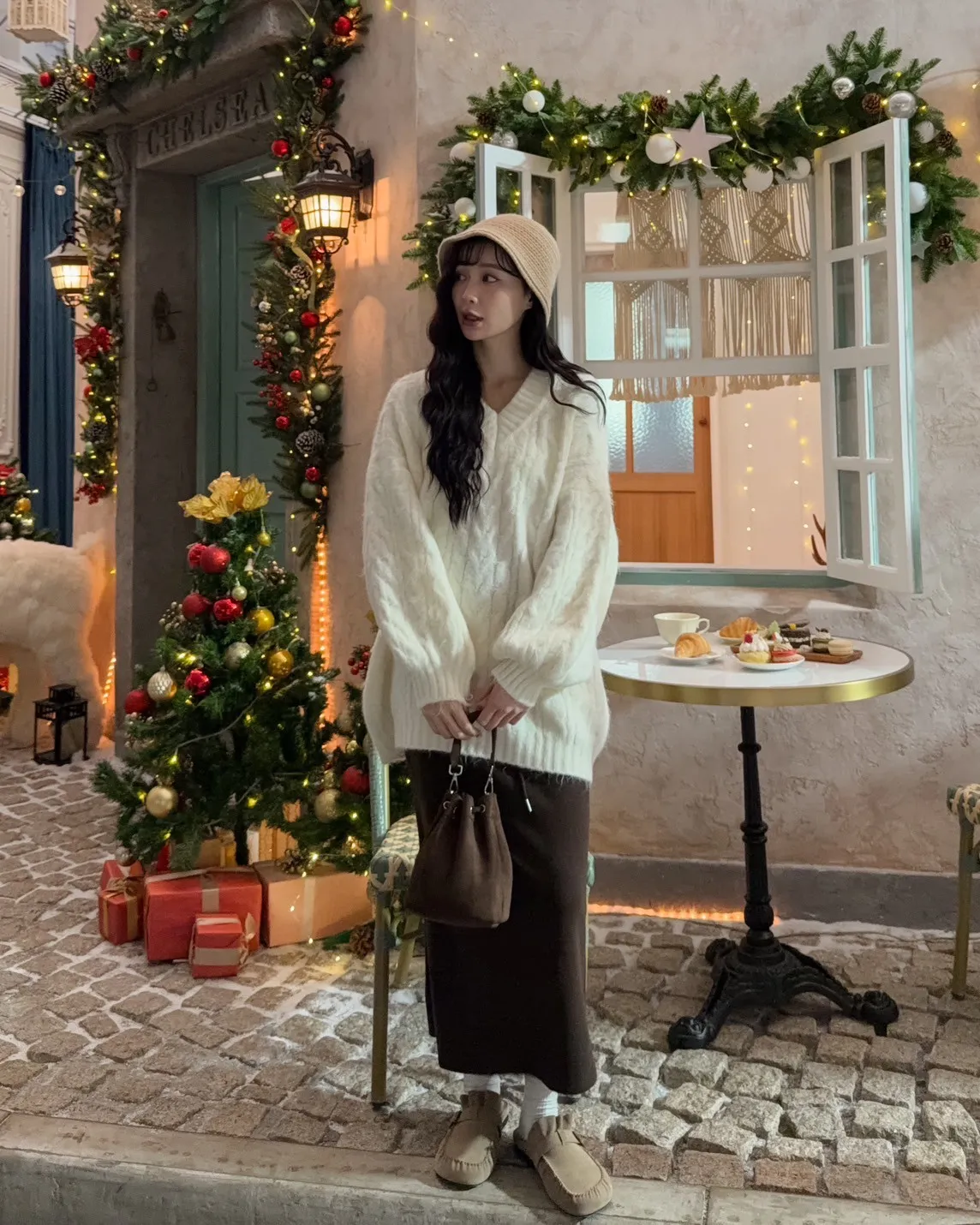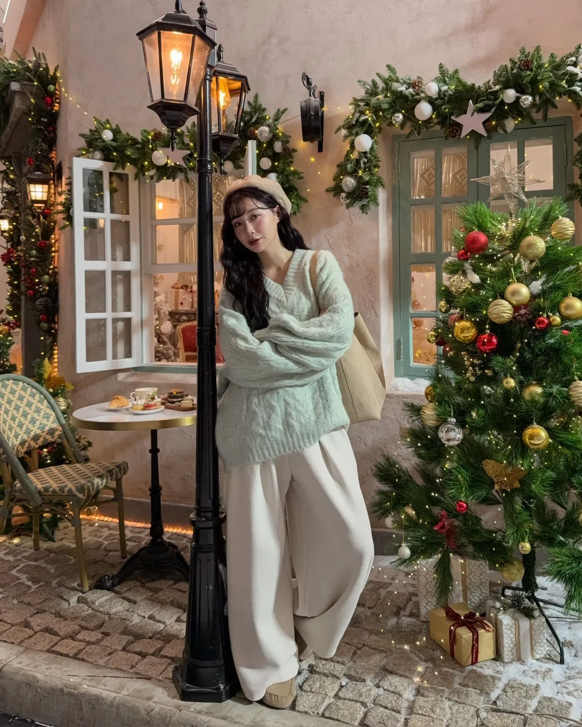 X0062酸甜初戀大件V領麻花毛衣(米白/粉紅/淡綠)