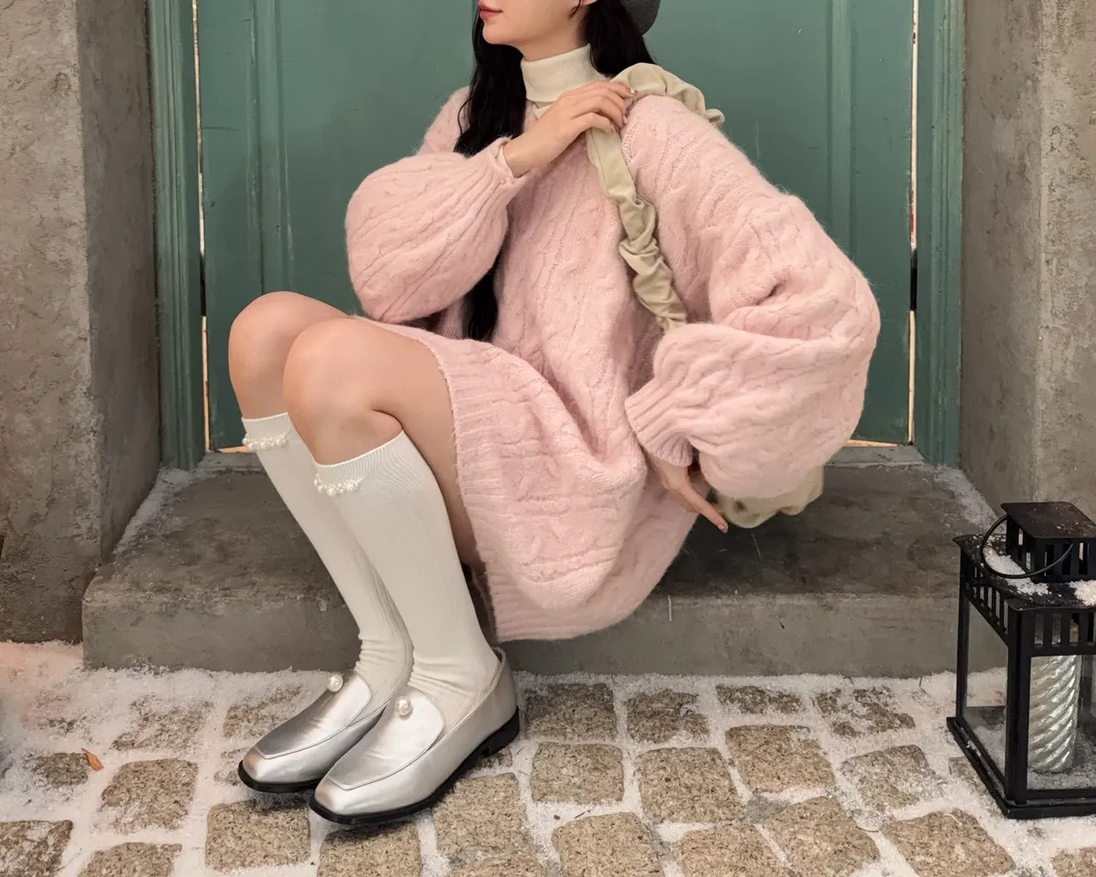 V領 立體麻花 粉嫩嫩色系 小個可當短洋穿 澎澎袖