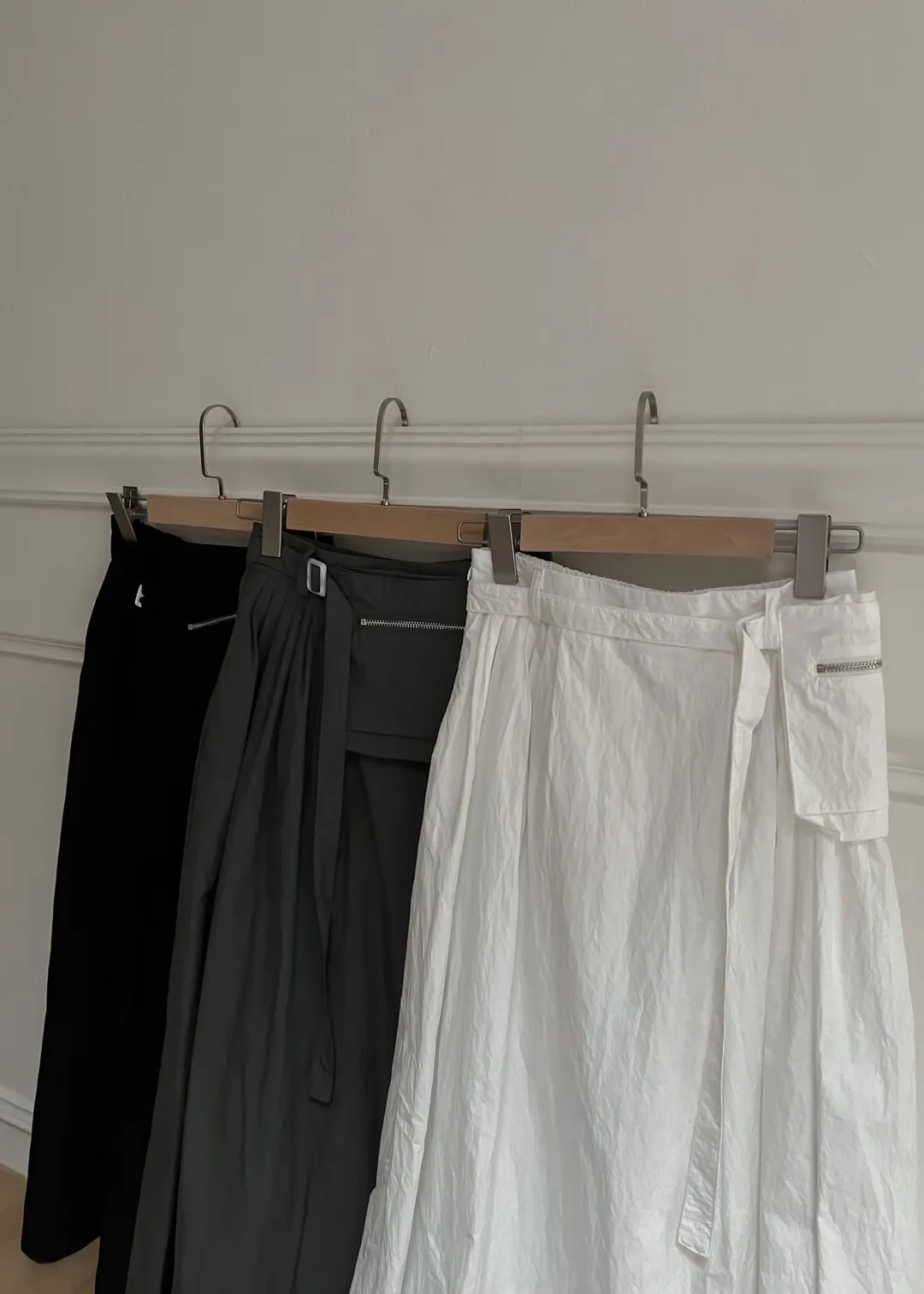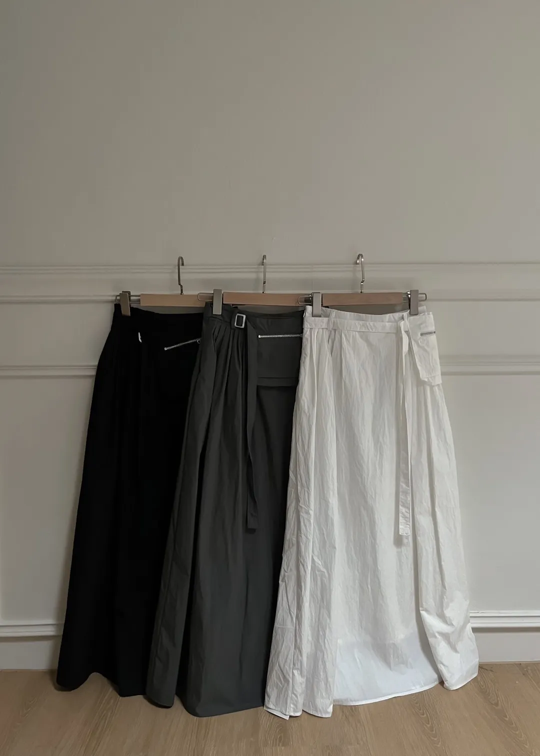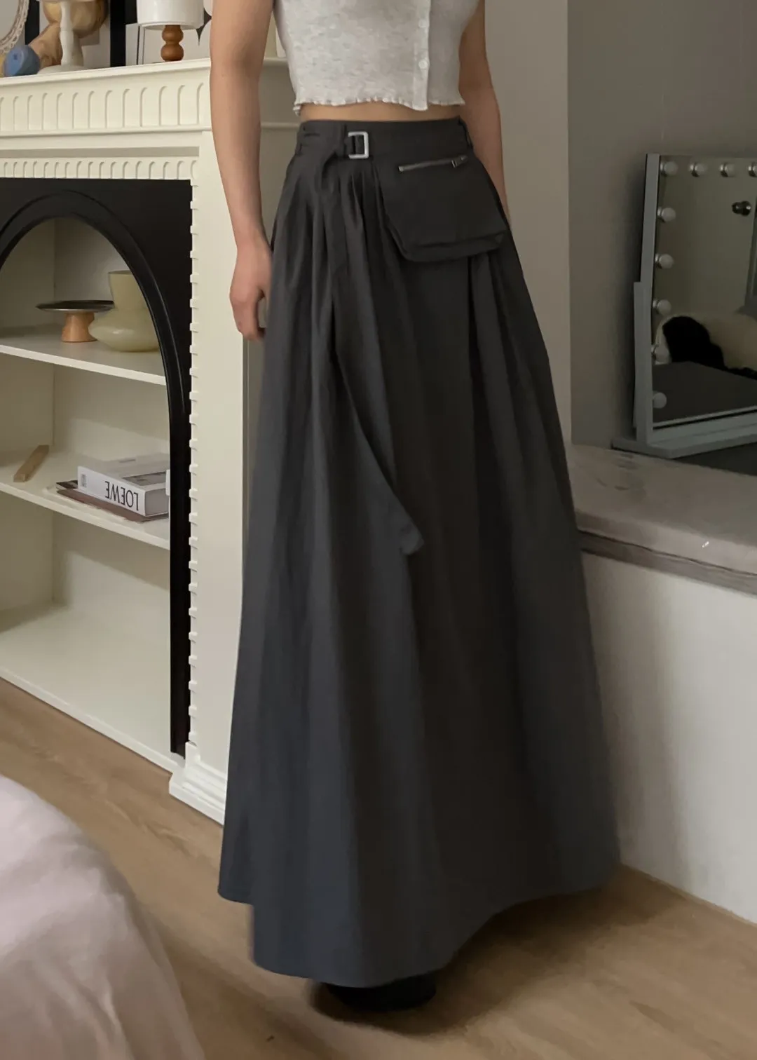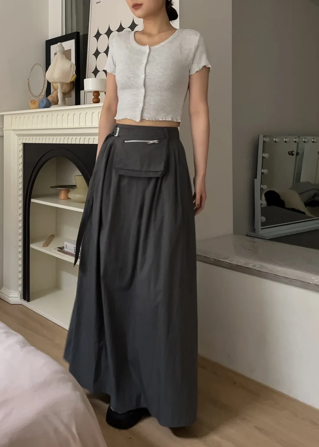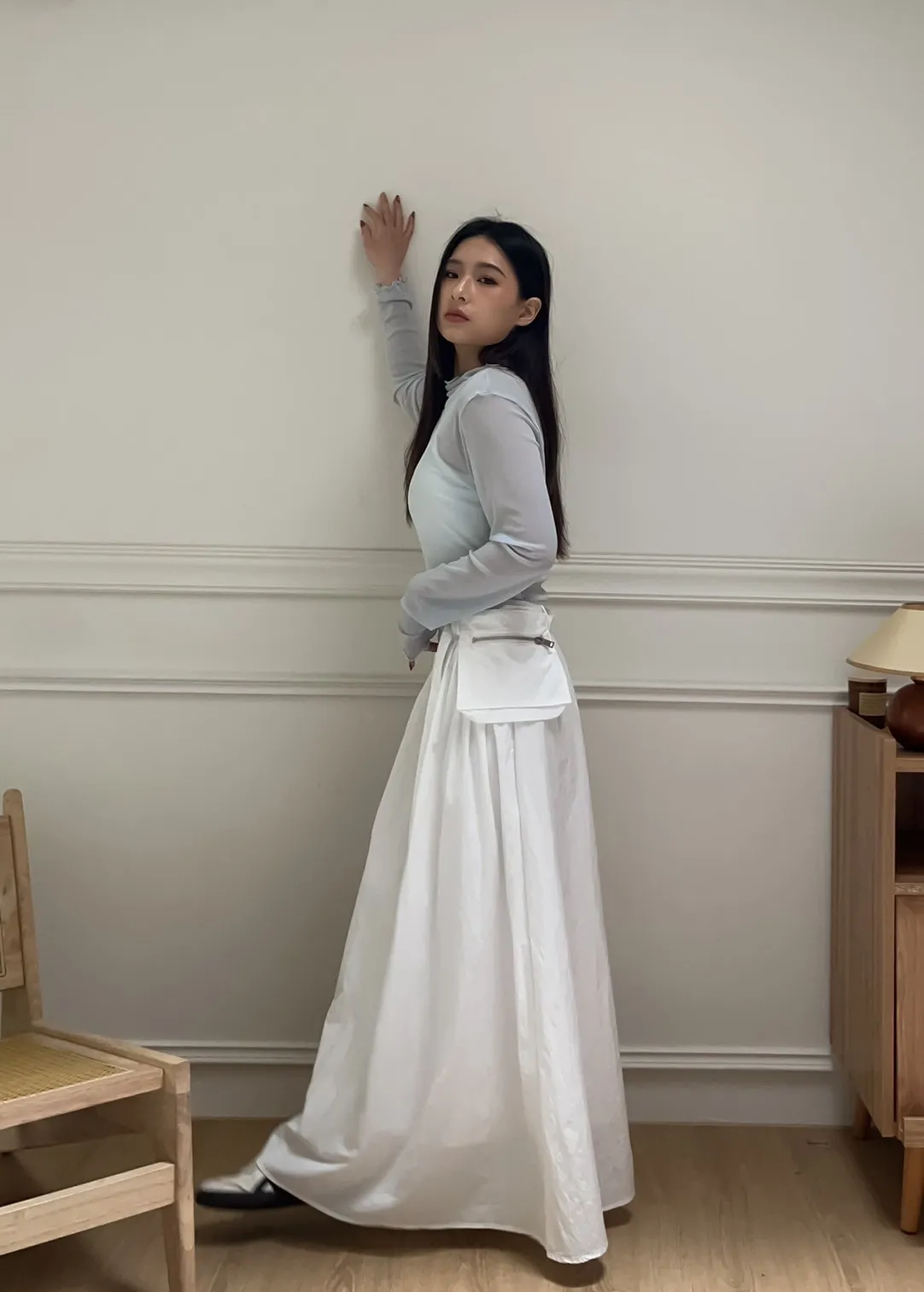 M0030(附腰包)個性打折刷刷長裙(白/灰/黑)(售完不補)