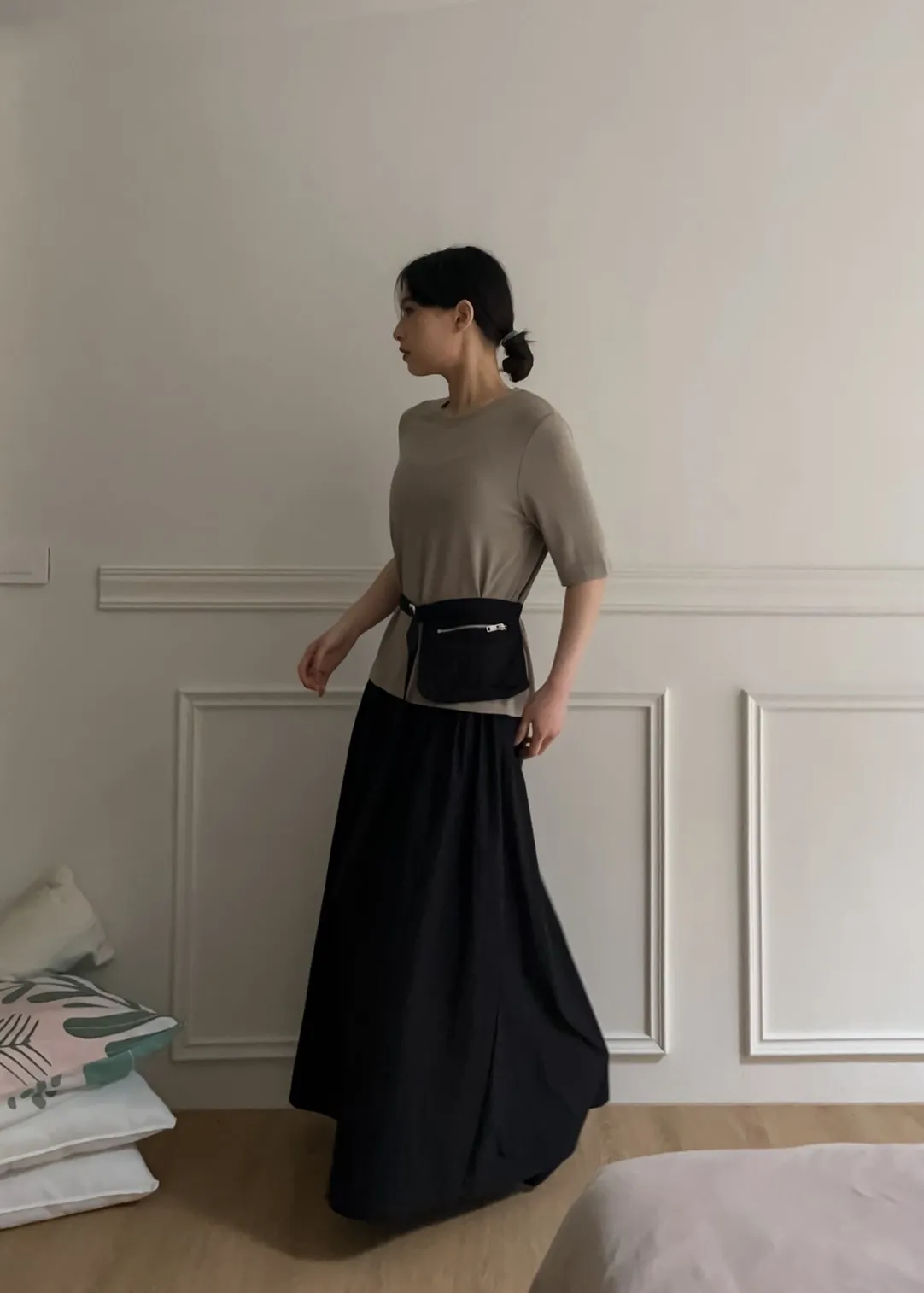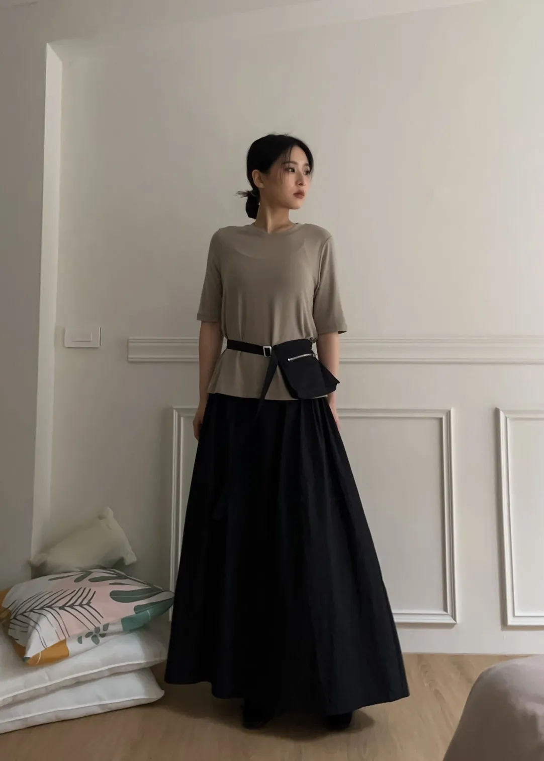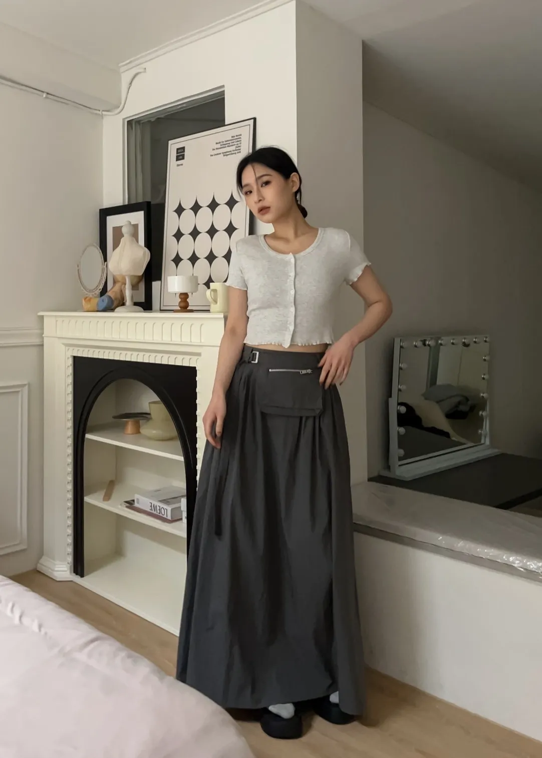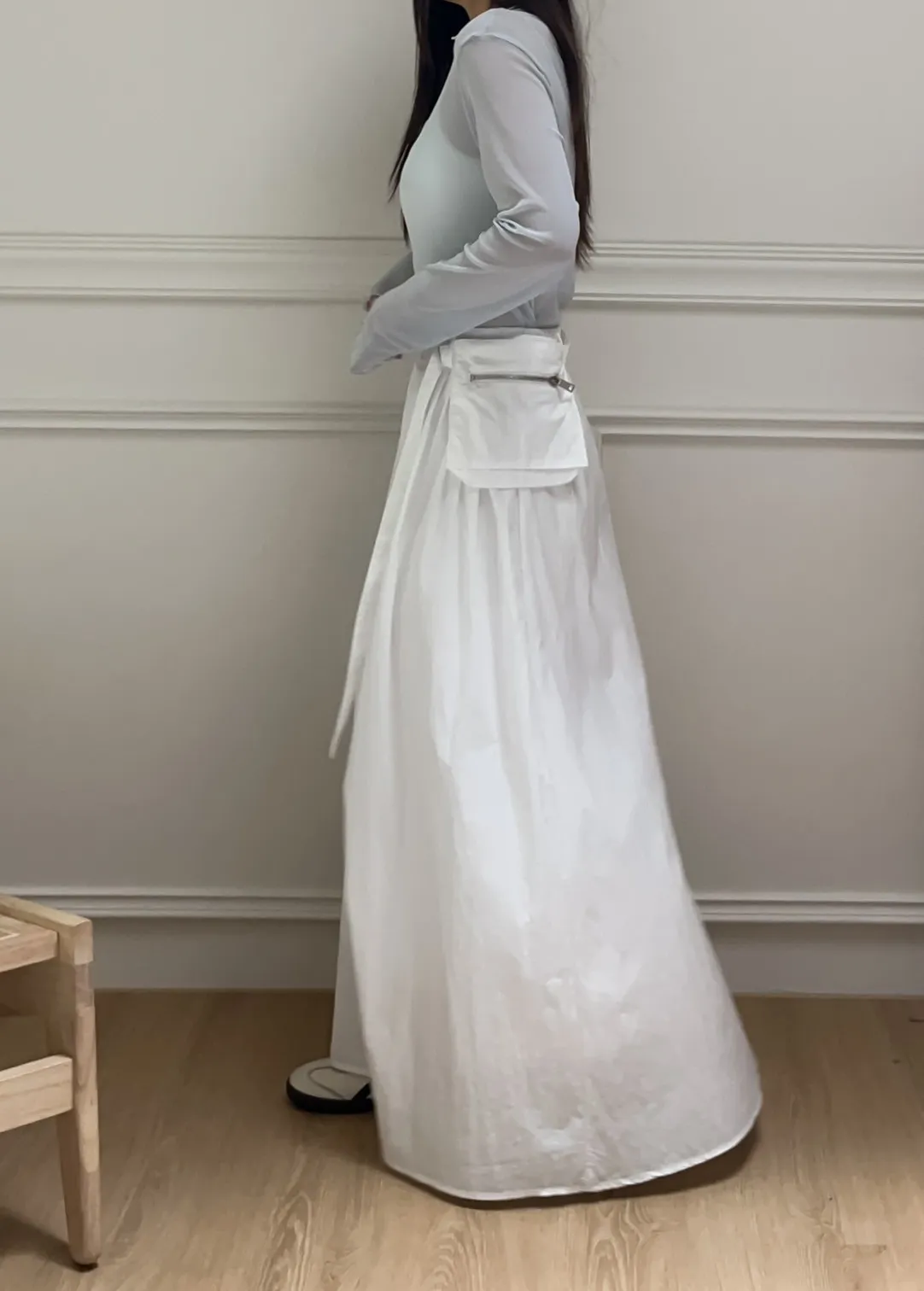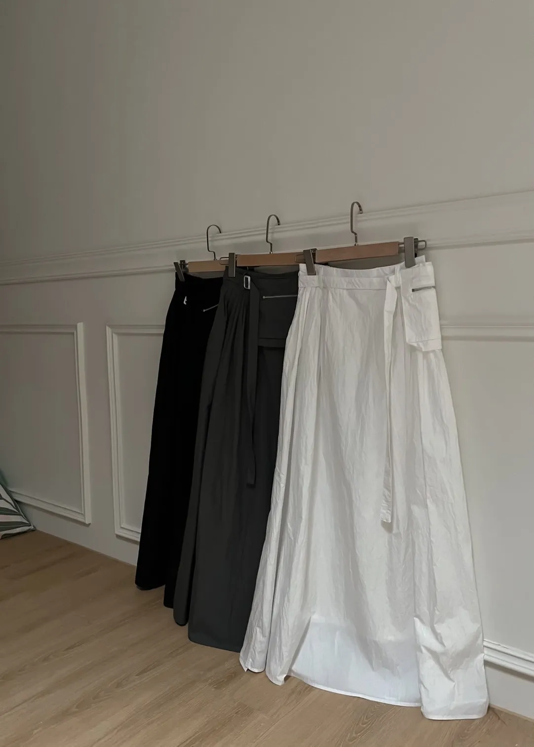 M0030(附腰包)個性打折刷刷長裙(白/灰/黑)(售完不補)