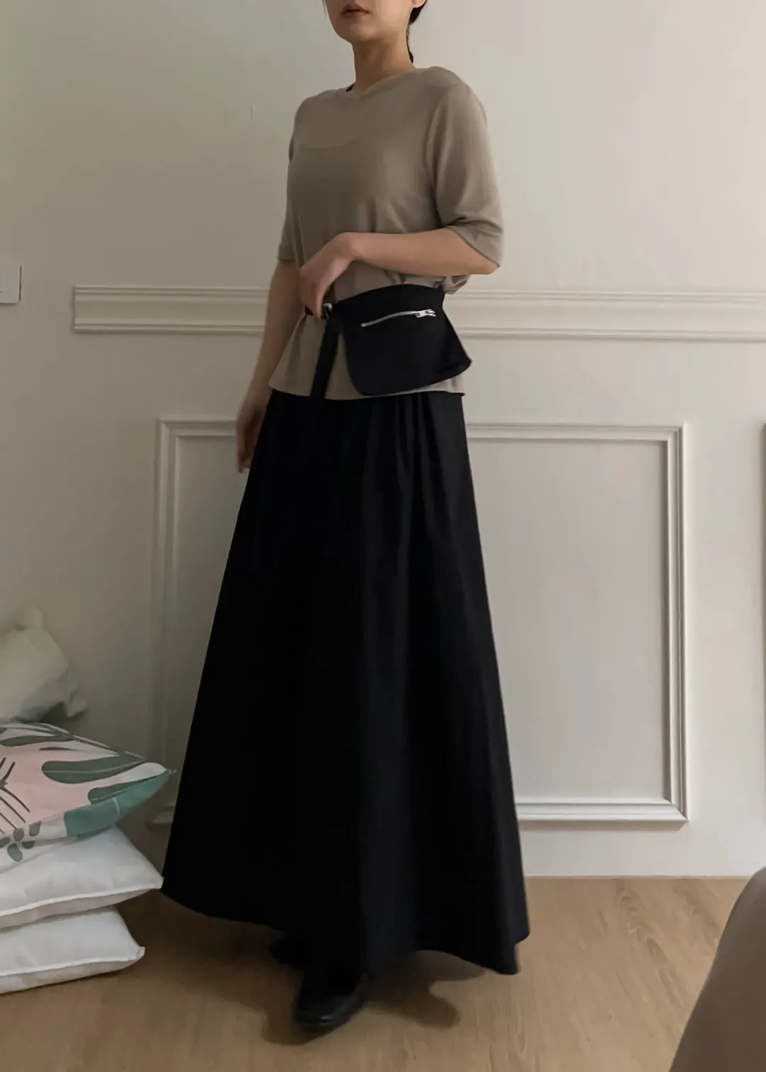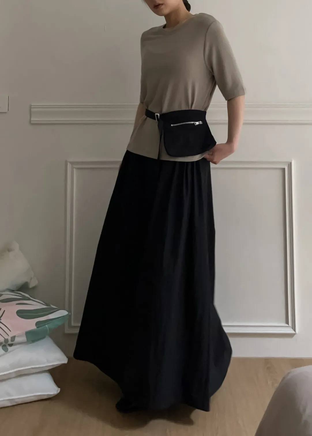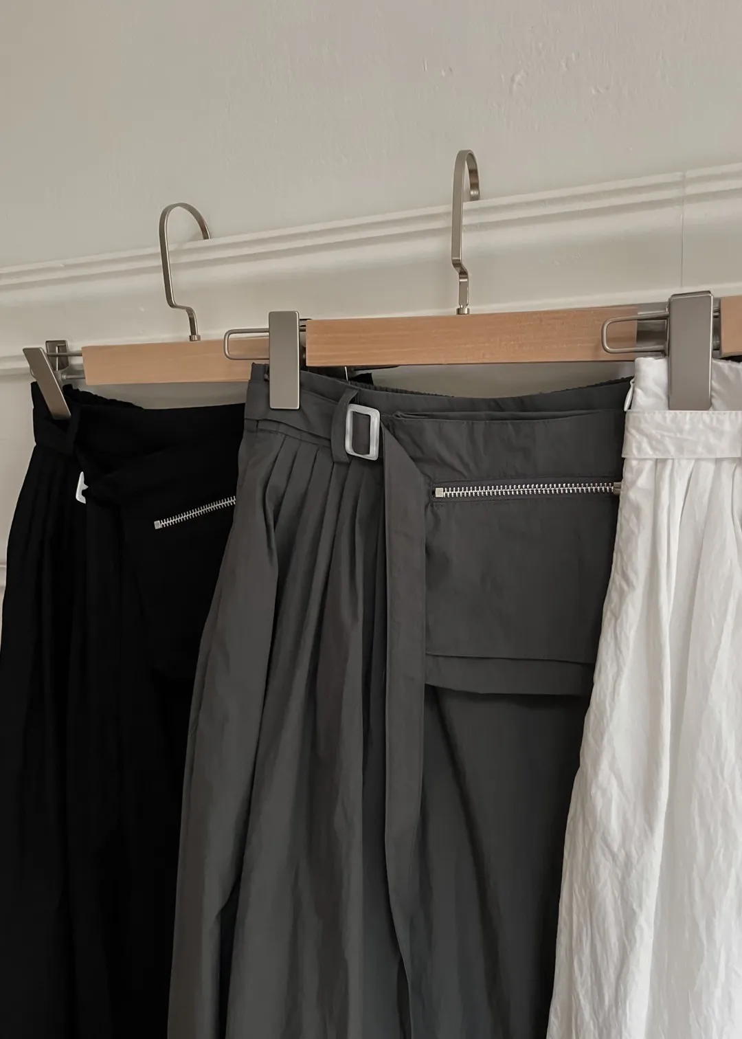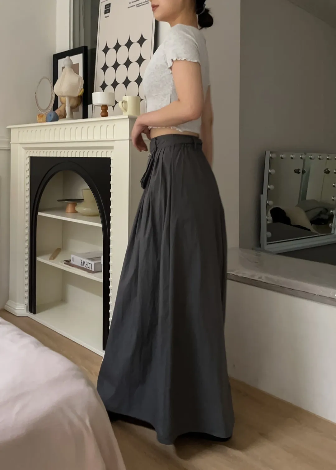 M0030(附腰包)個性打折刷刷長裙(白/灰/黑)(售完不補)