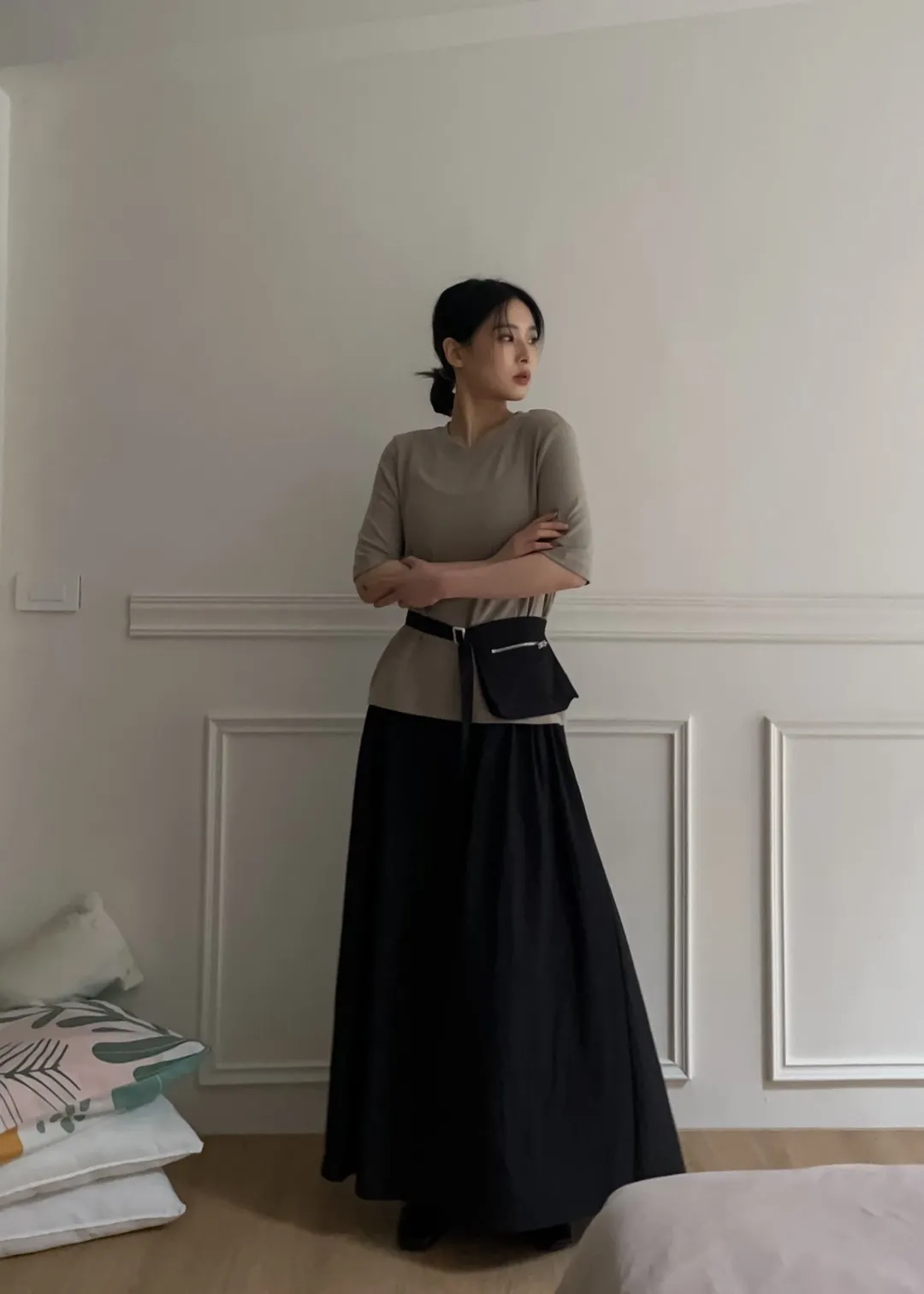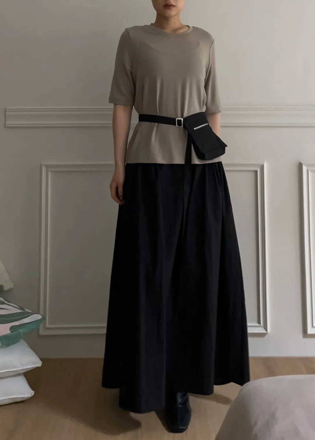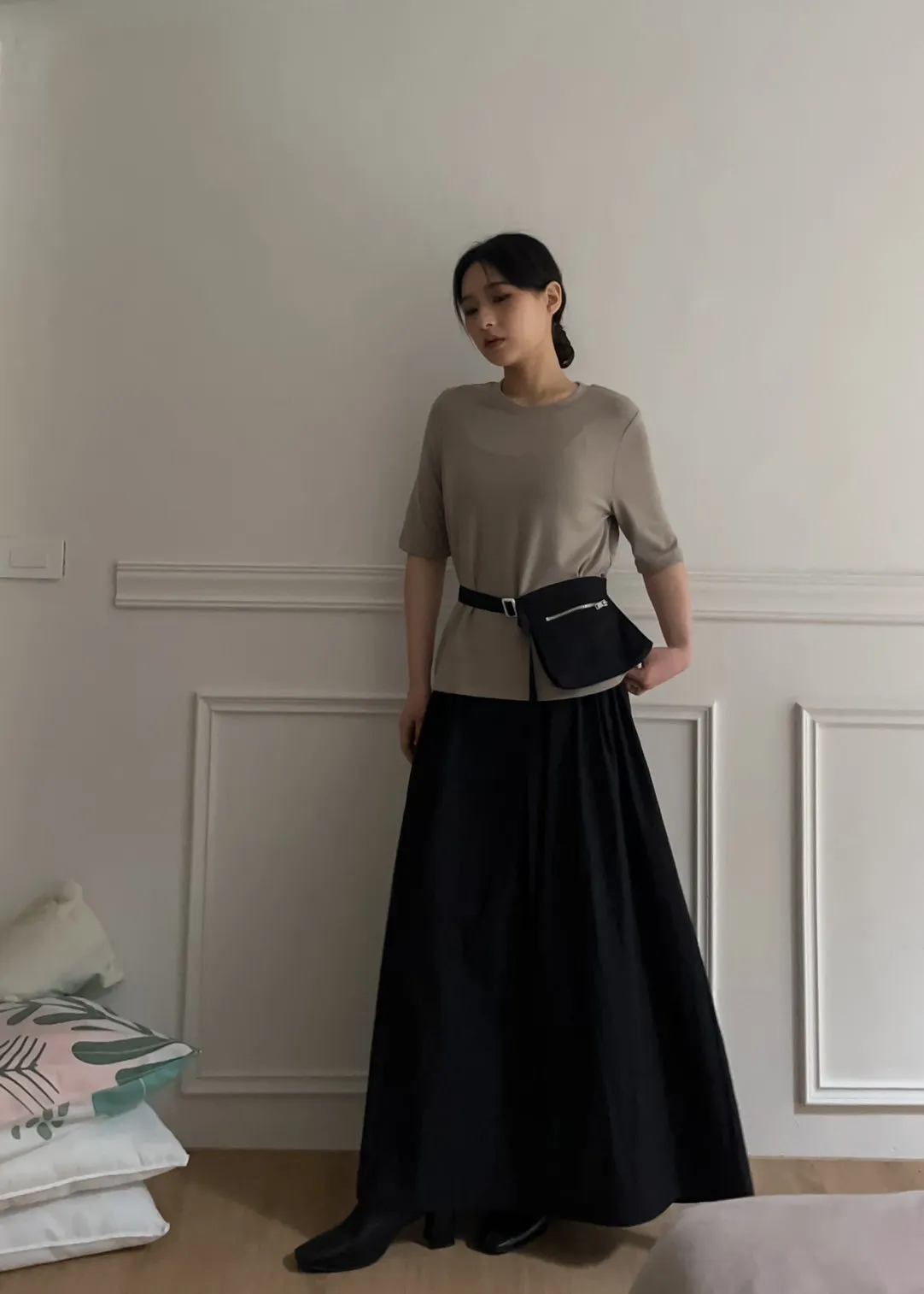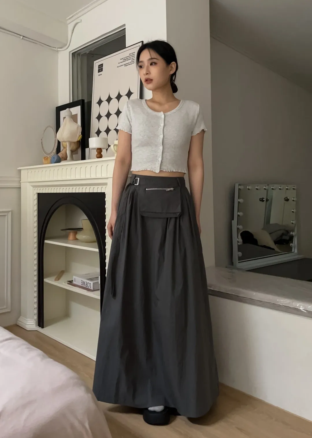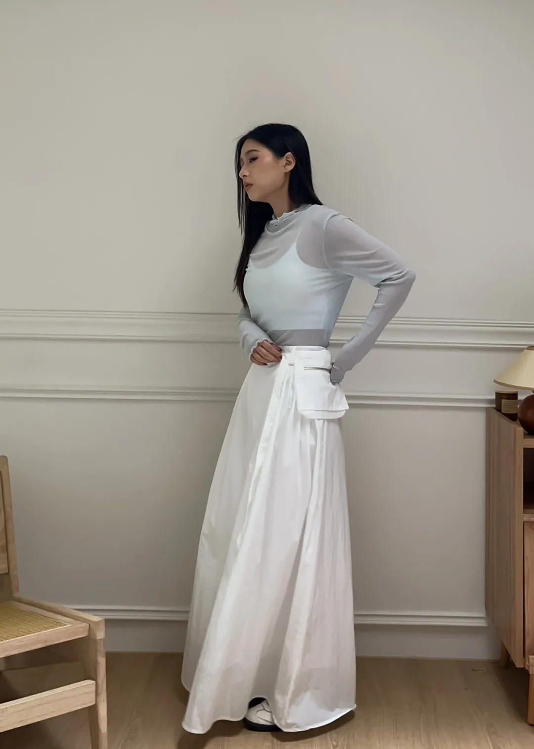 M0030(附腰包)個性打折刷刷長裙(白/灰/黑)(售完不補)