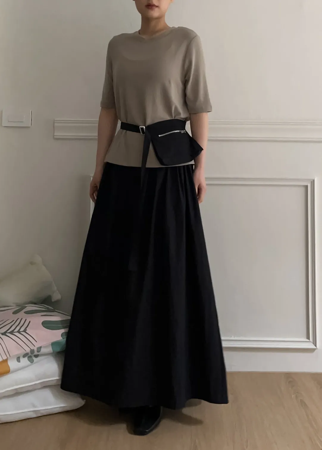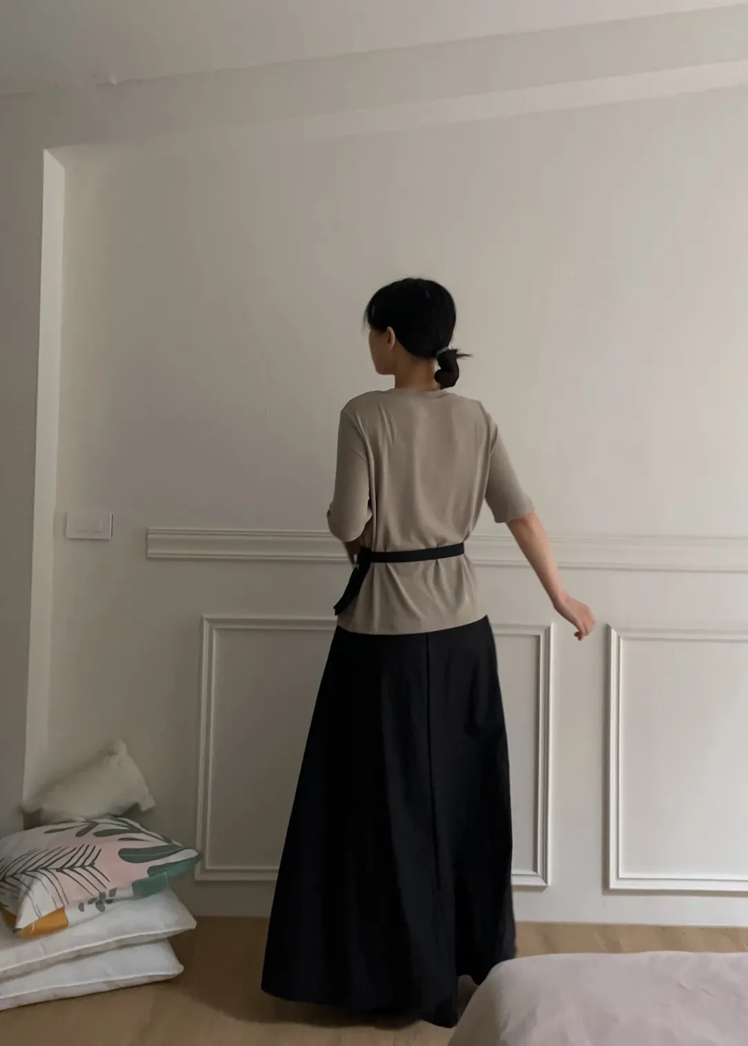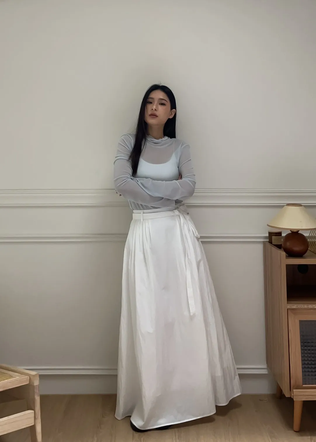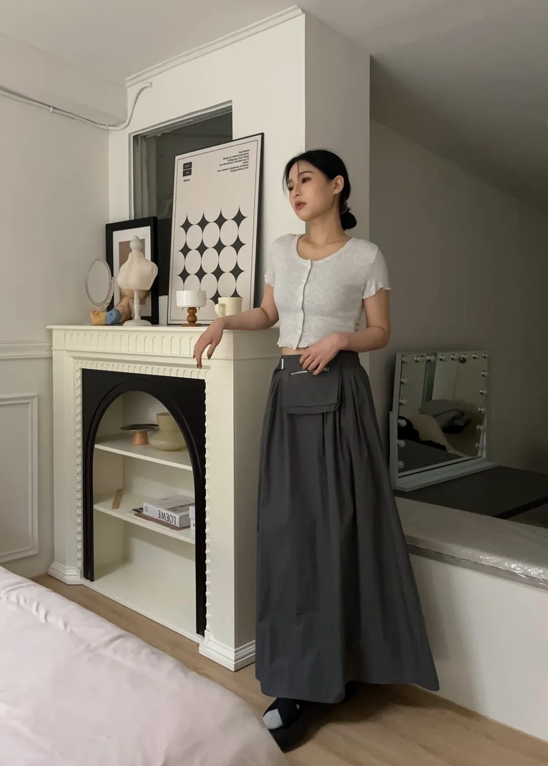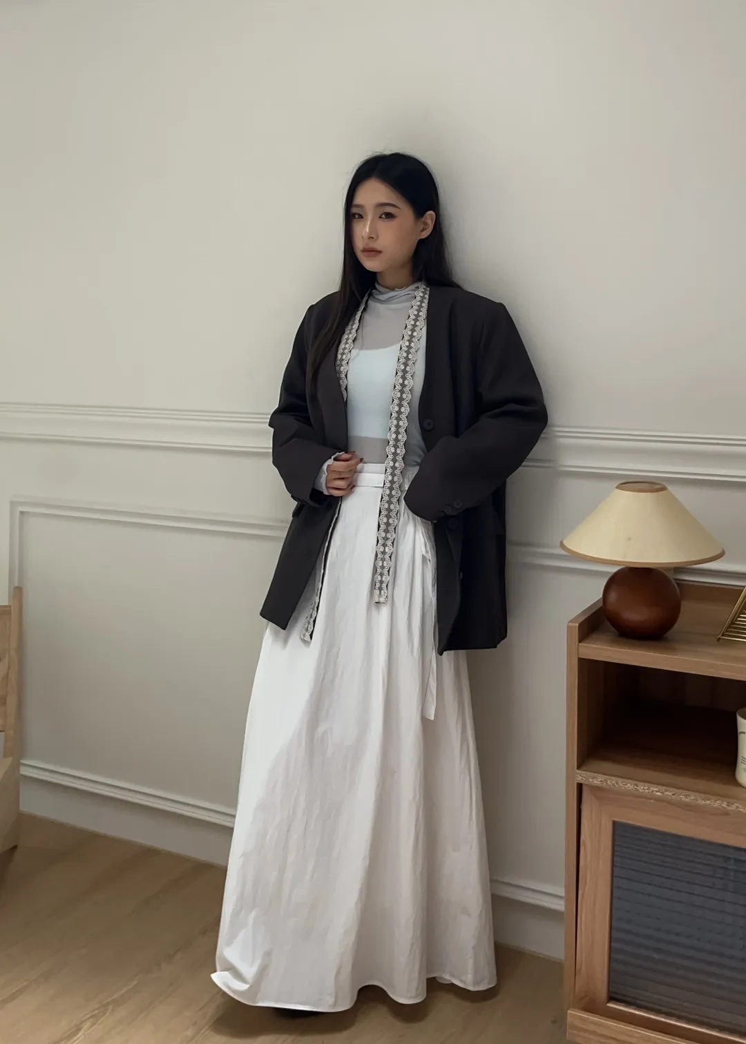 M0030(附腰包)個性打折刷刷長裙(白/灰/黑)(售完不補)